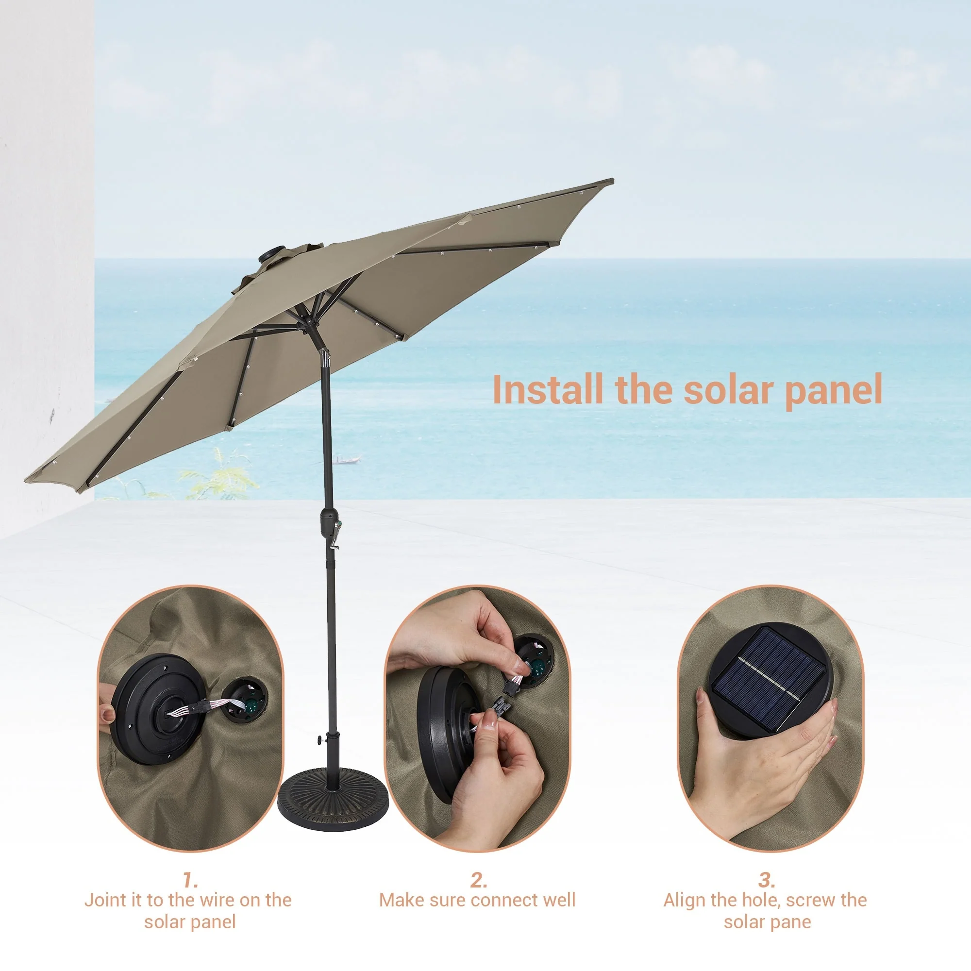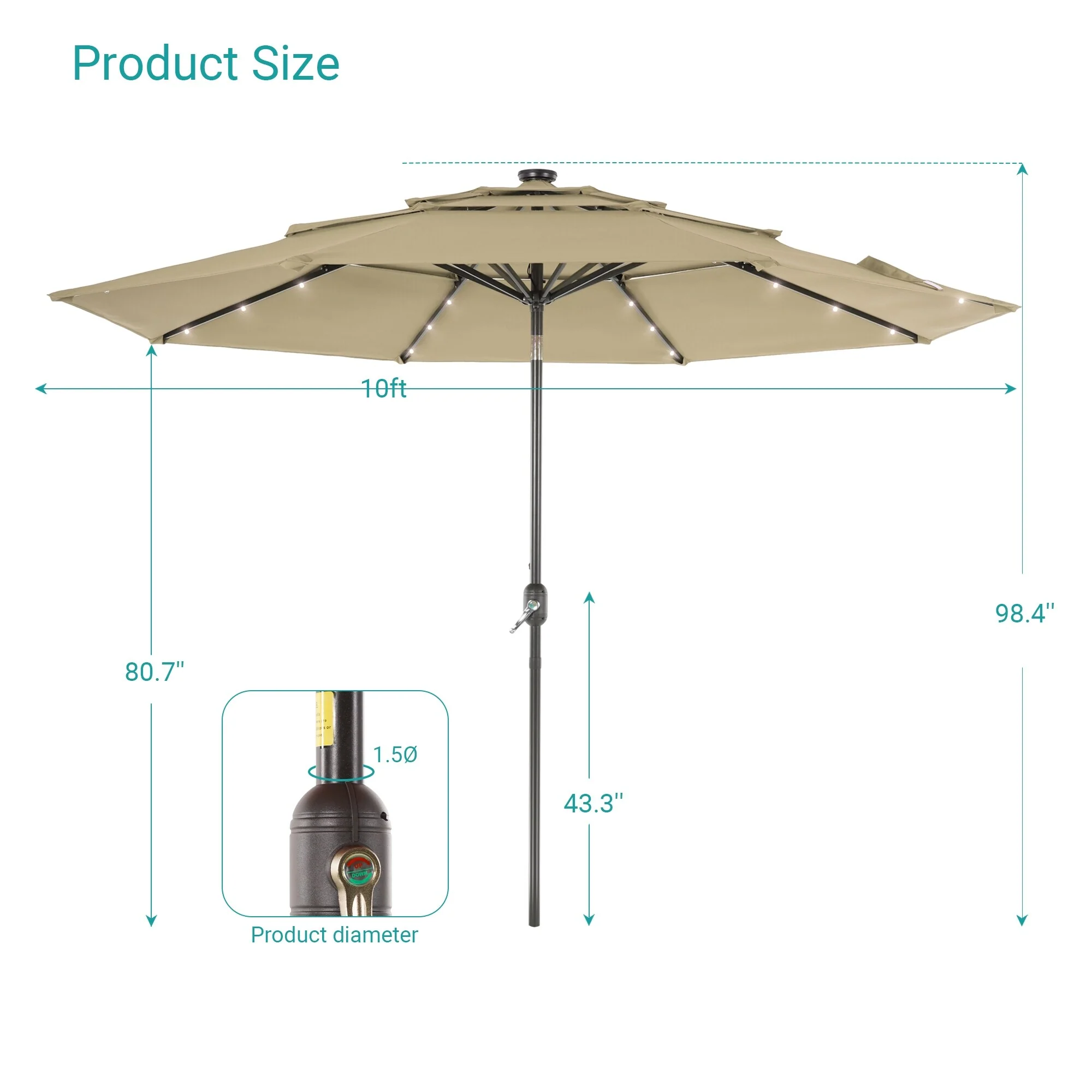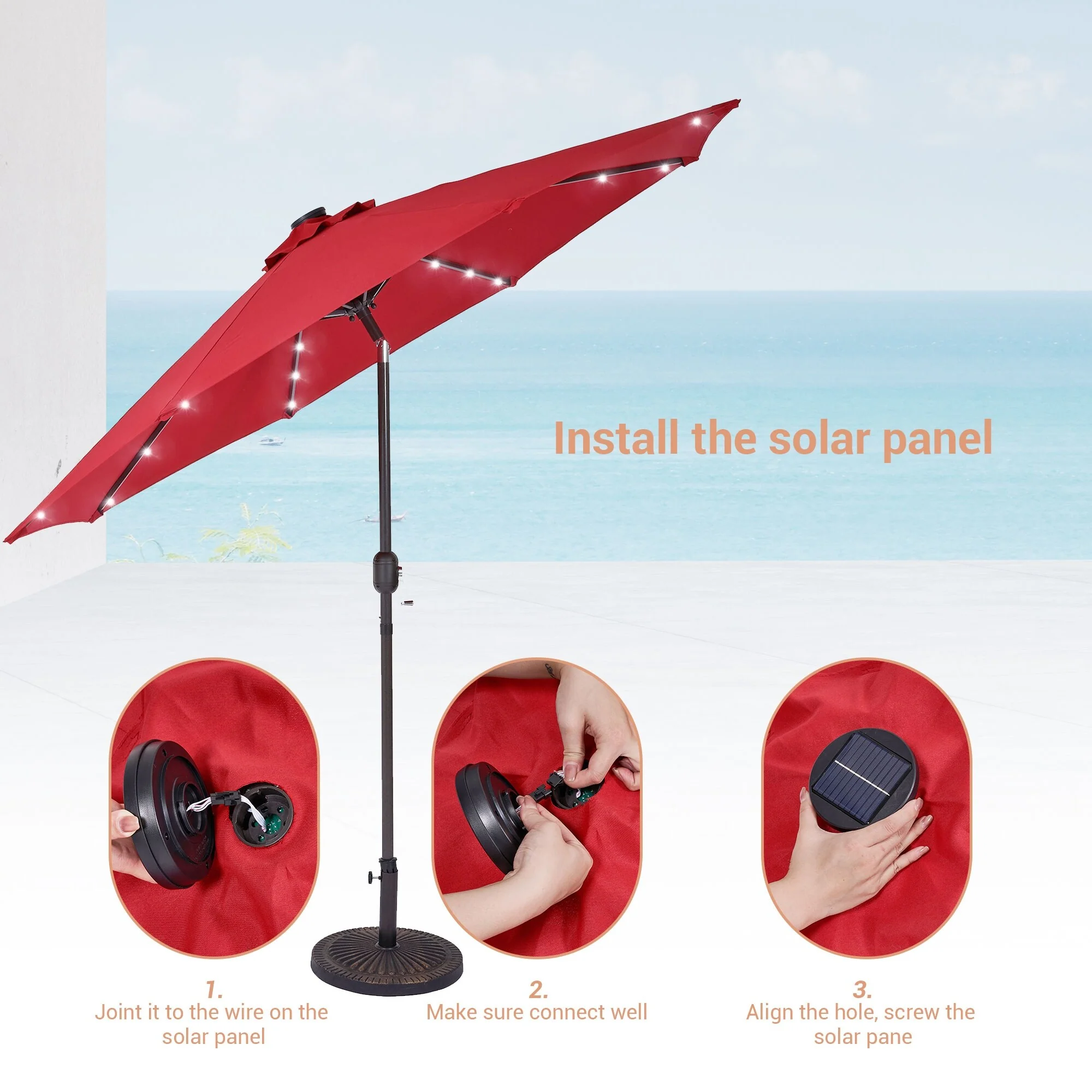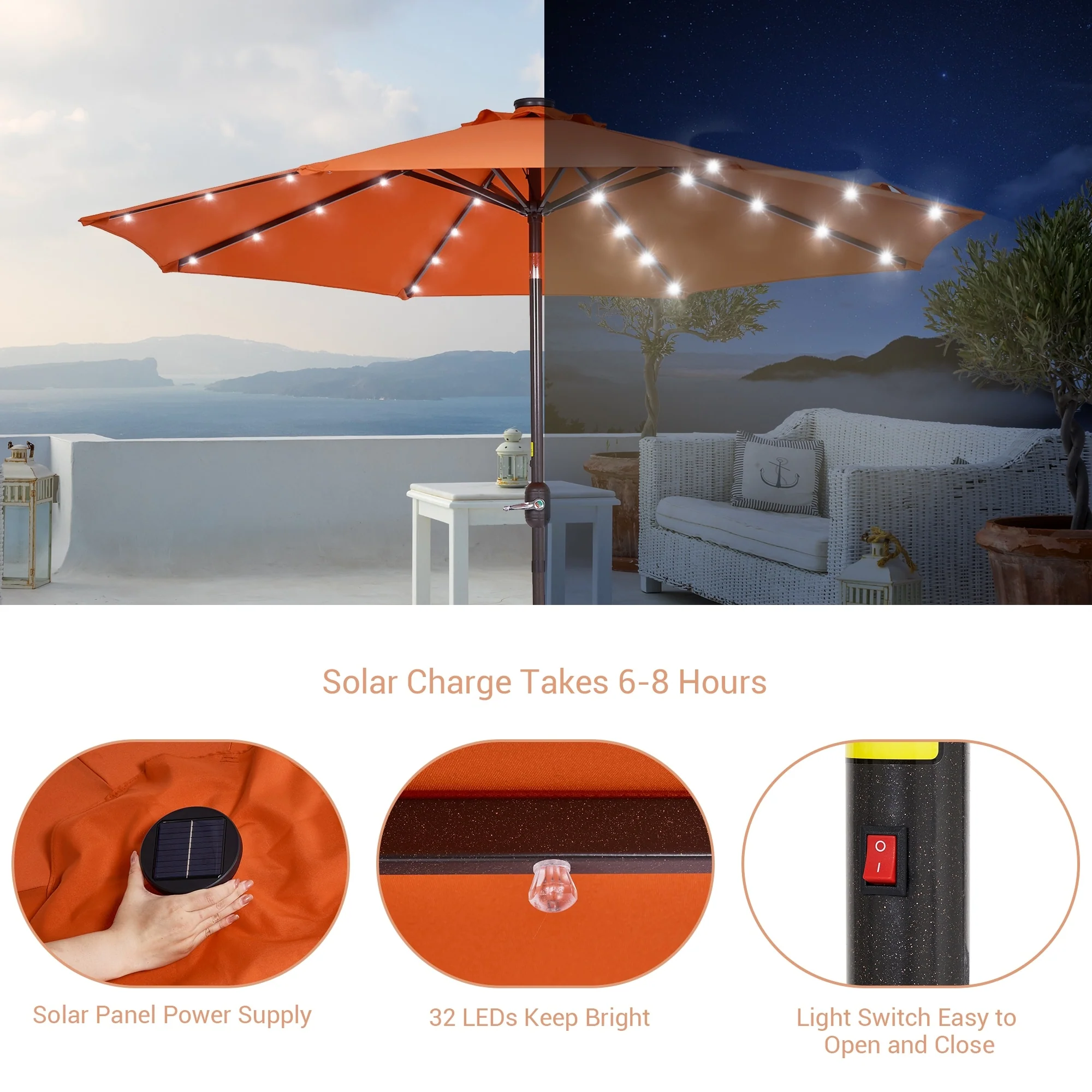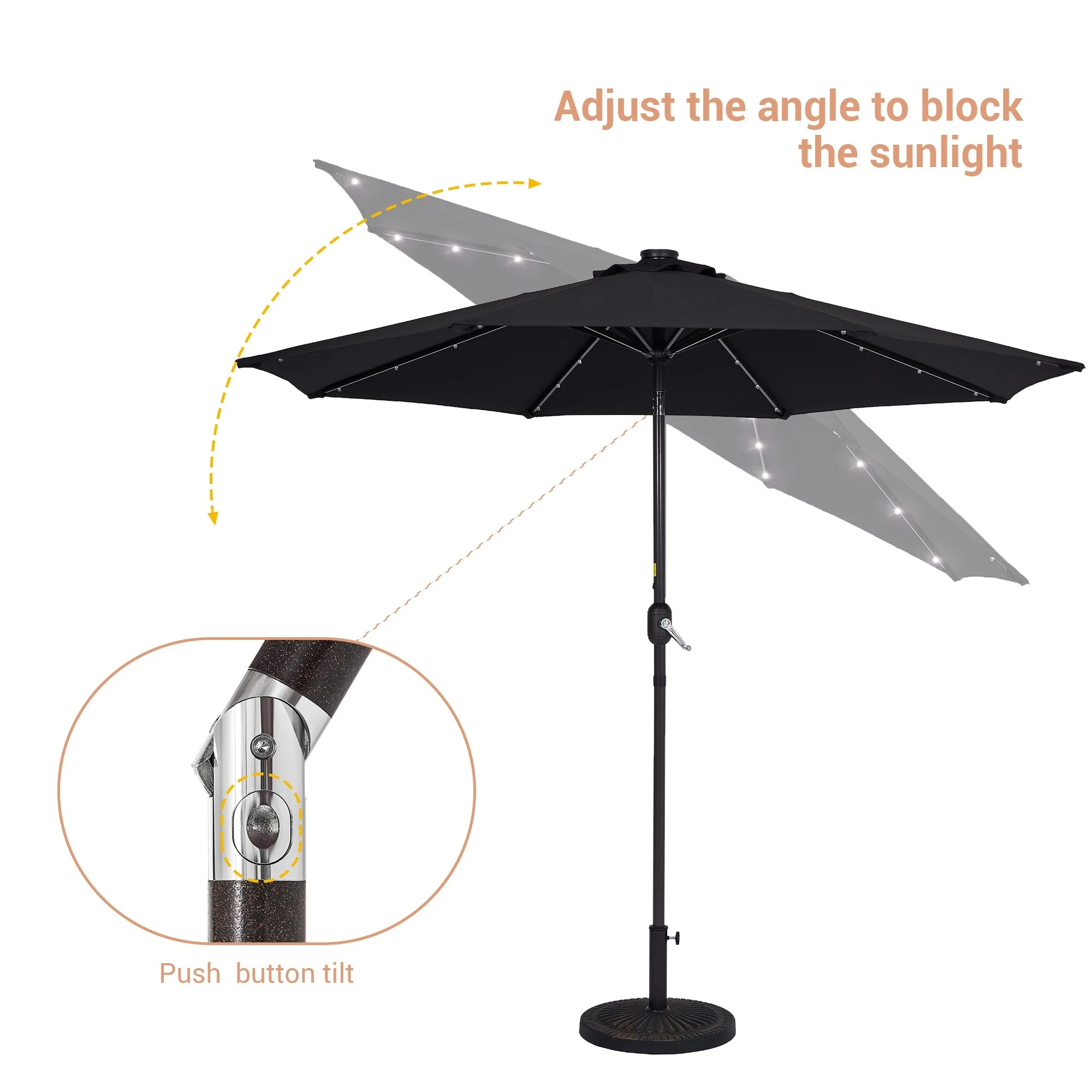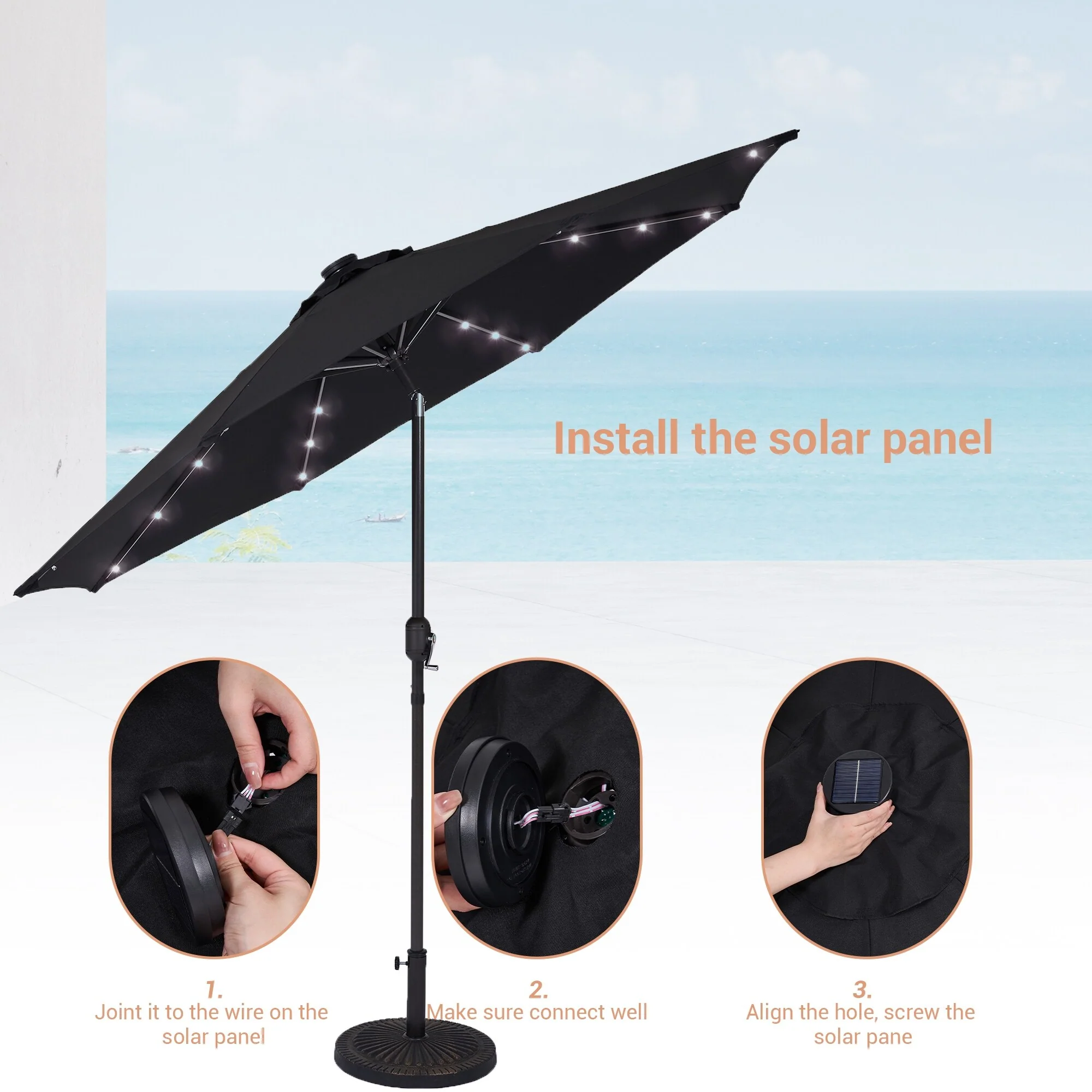 BONOSUKI 3 Tiers Patio Market Umbrella w/Solar Lights and Tilt button