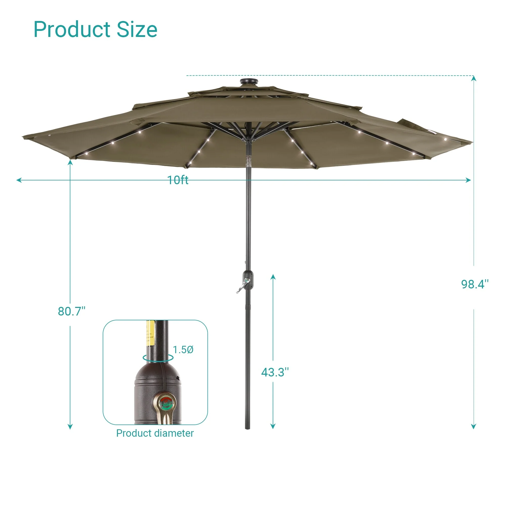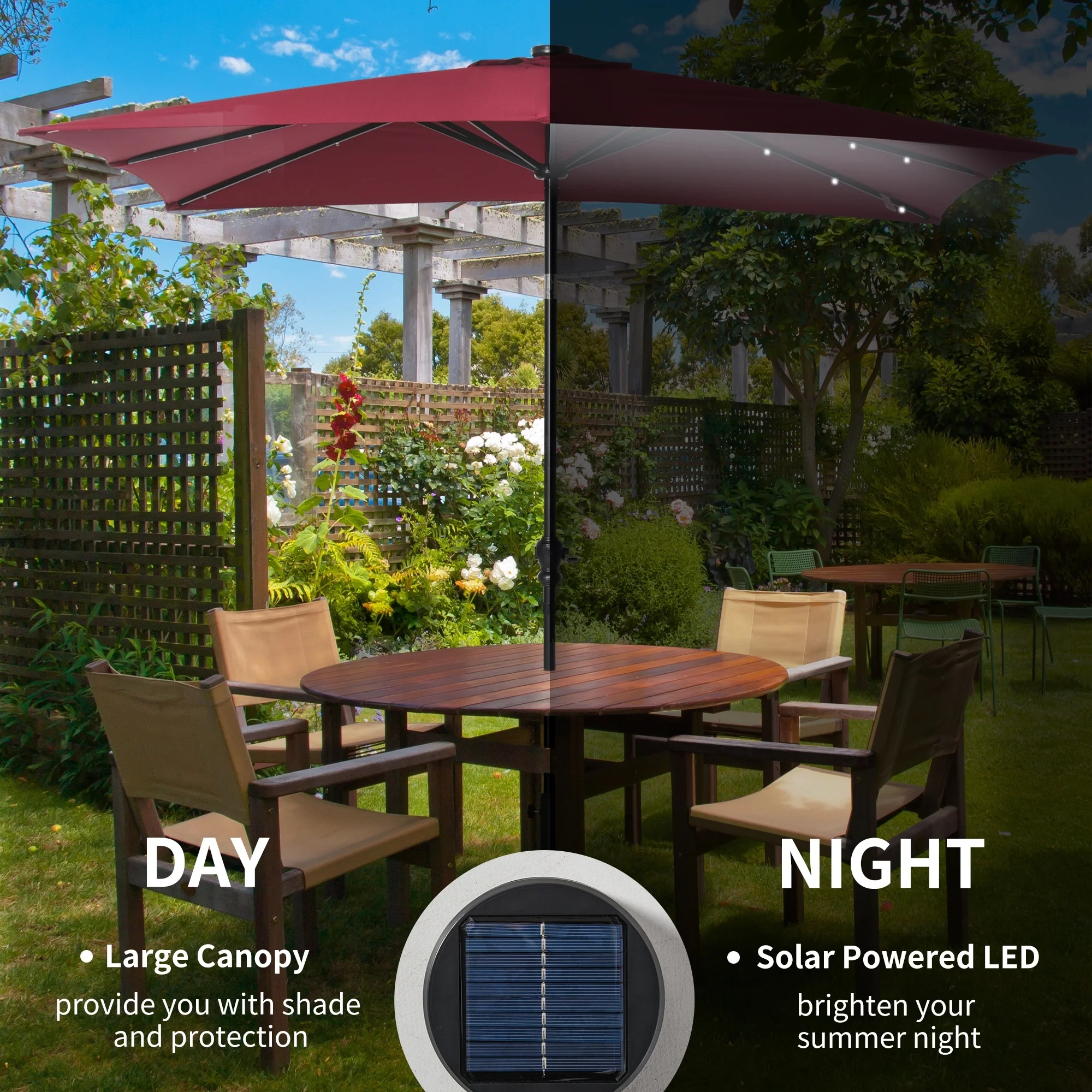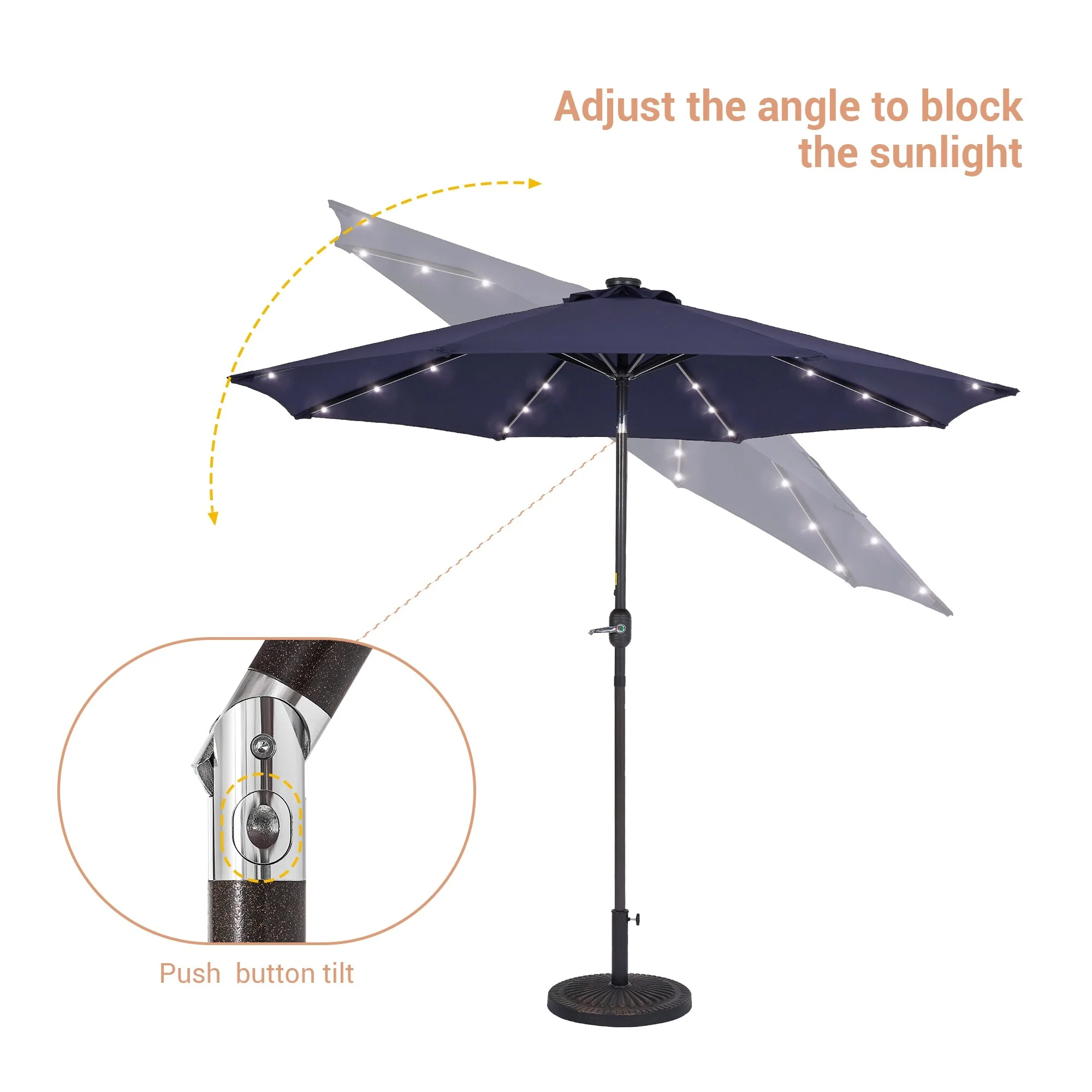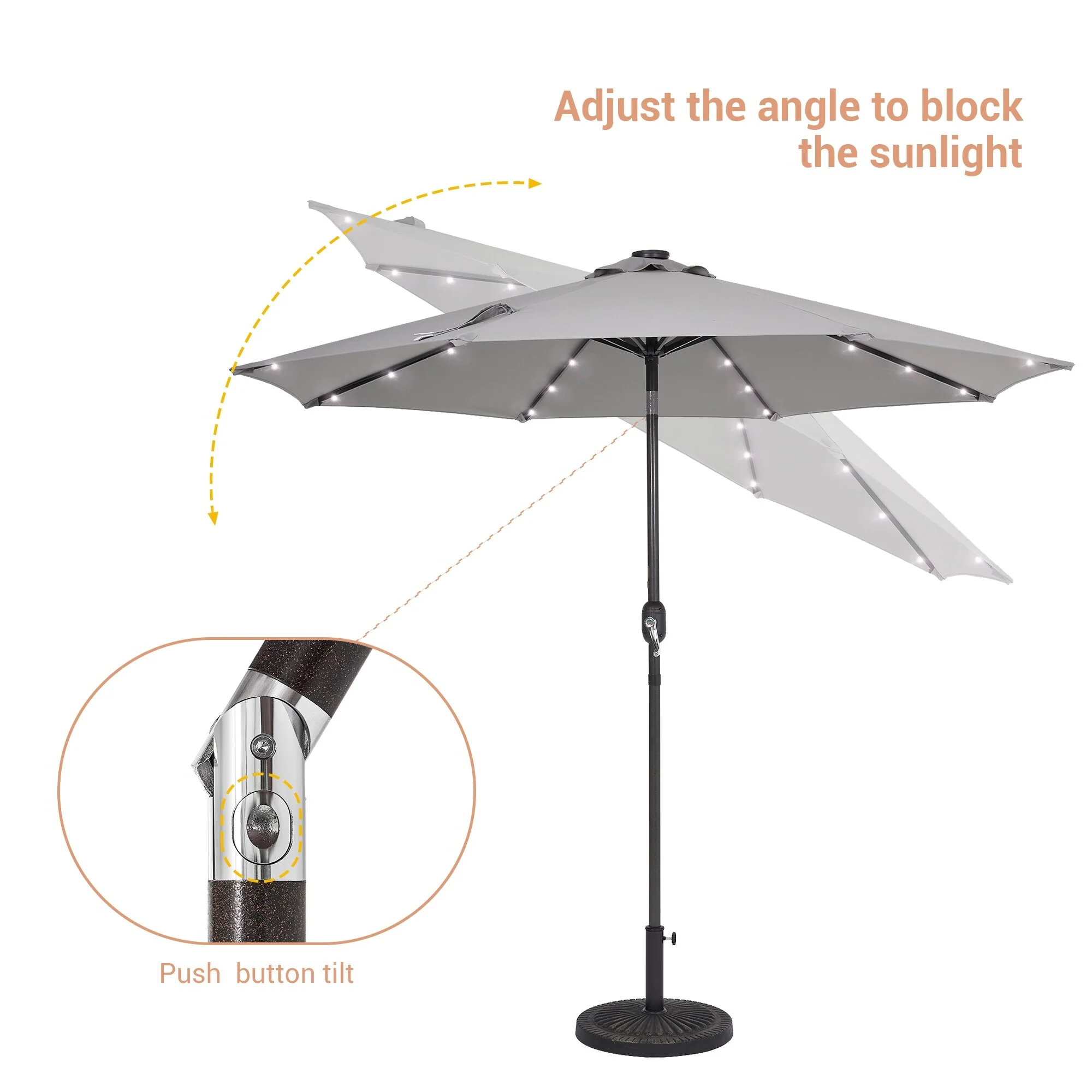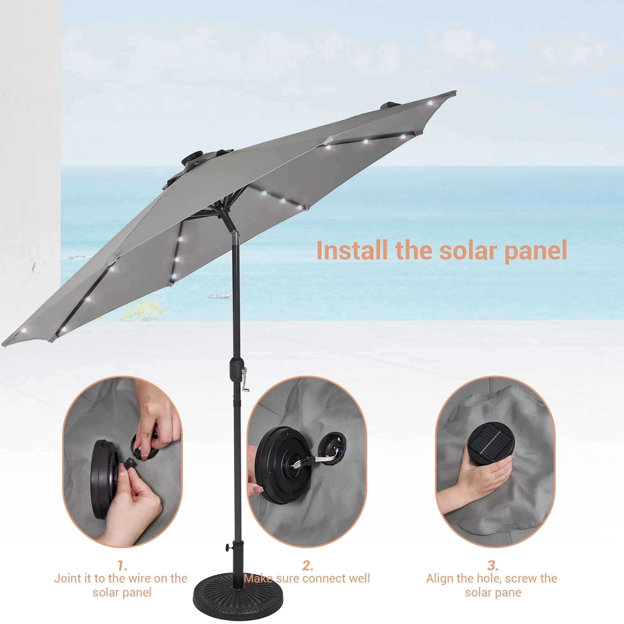 BONOSUKI 3 Tiers Patio Market Umbrella w/Solar Lights and Tilt button