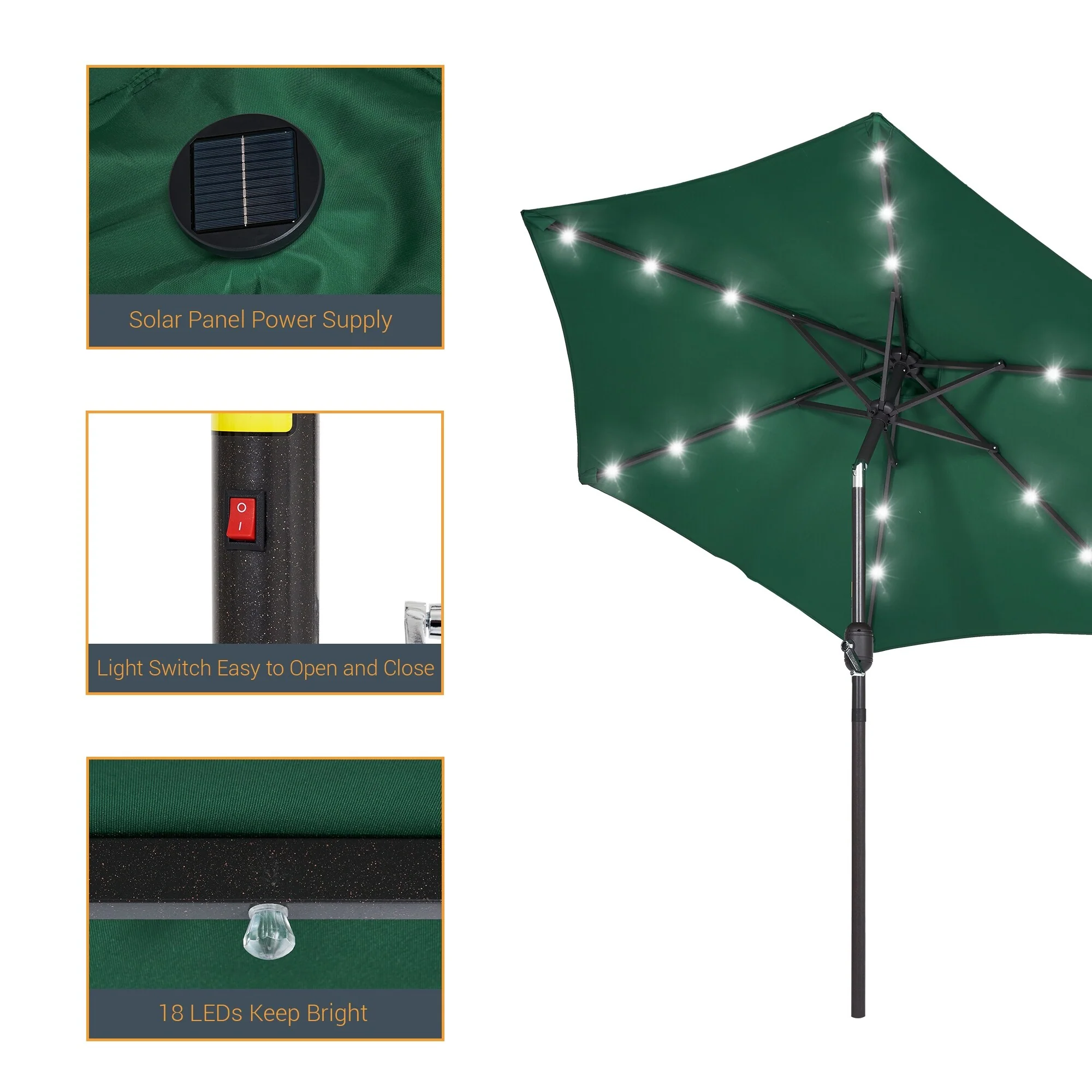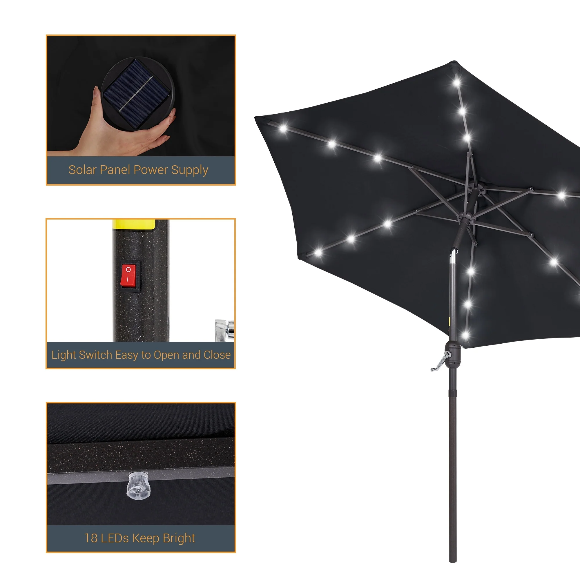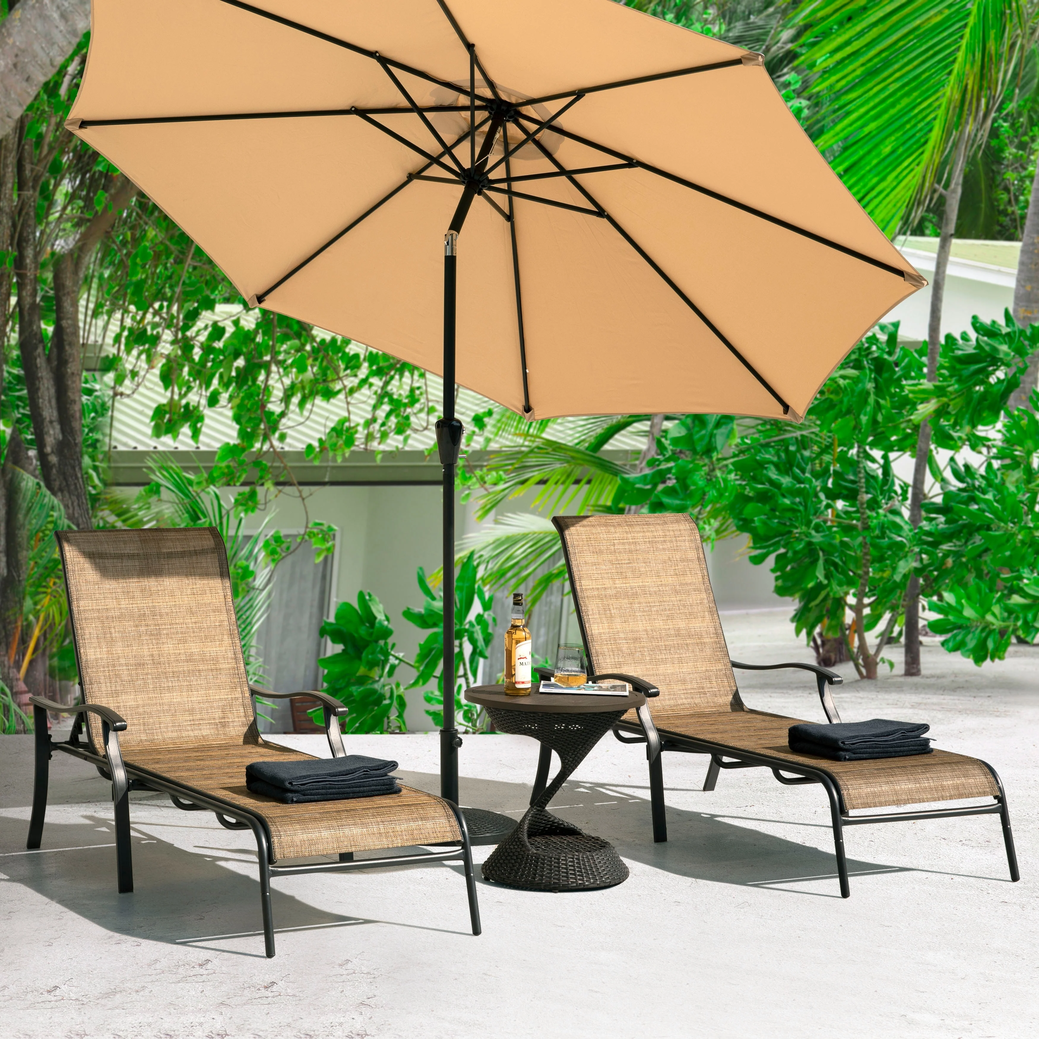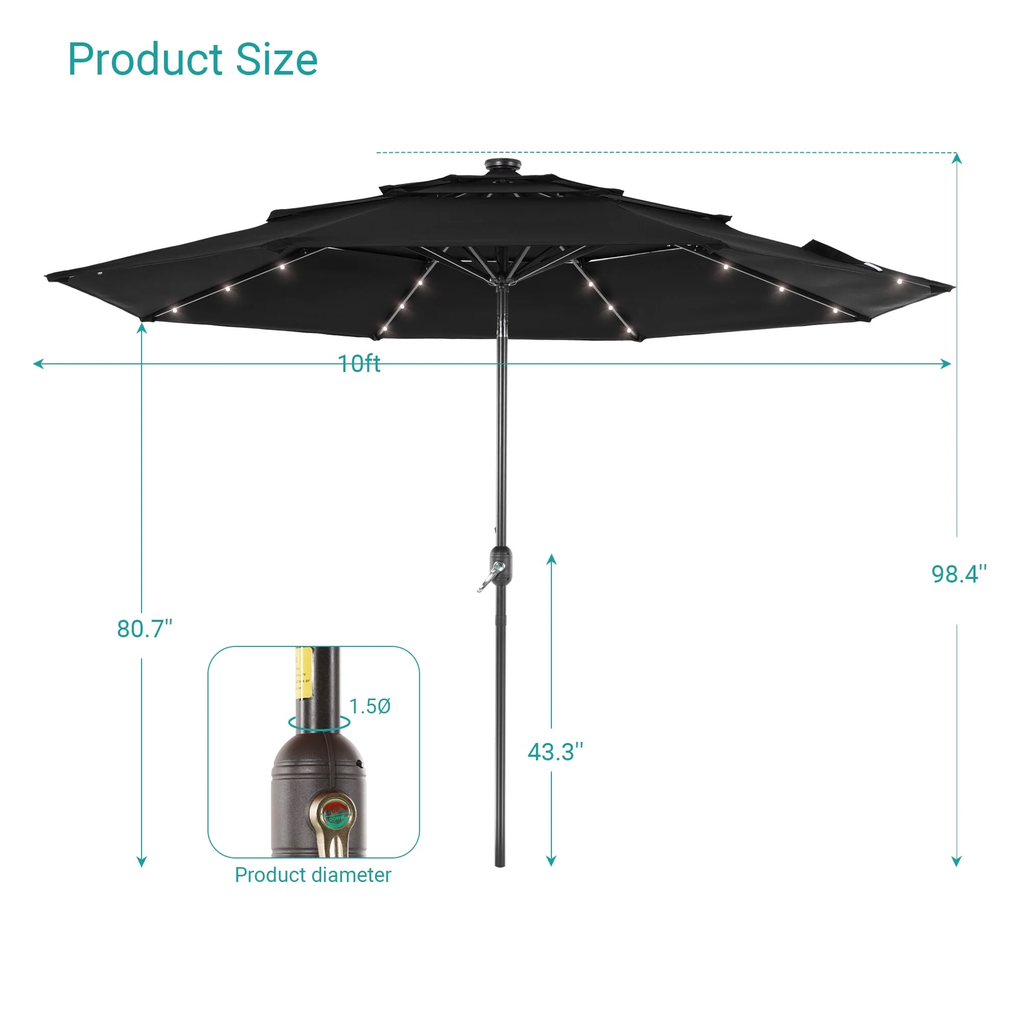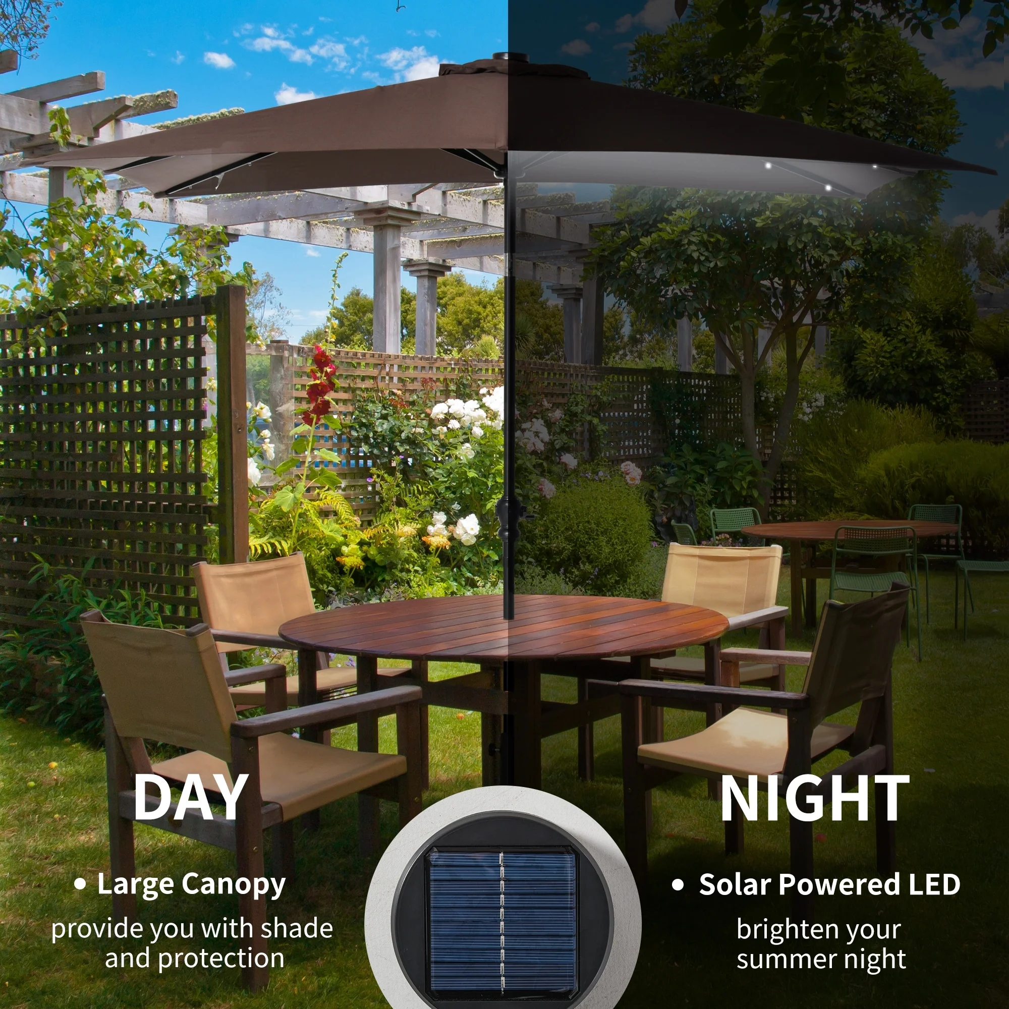 BONOSUKI 3 Tiers Patio Market Umbrella w/Solar Lights and Tilt button