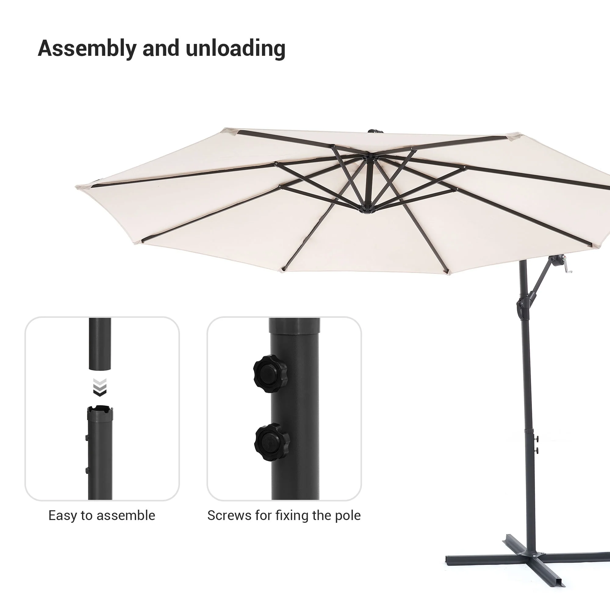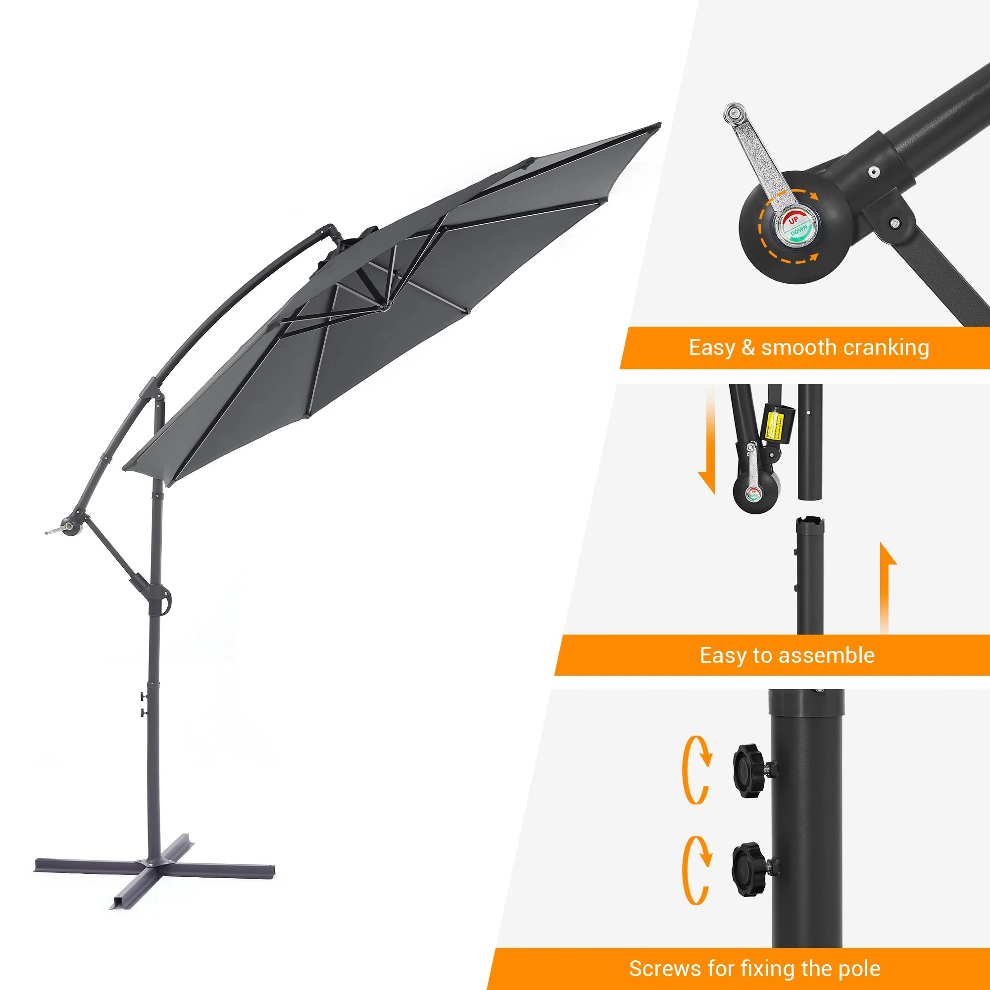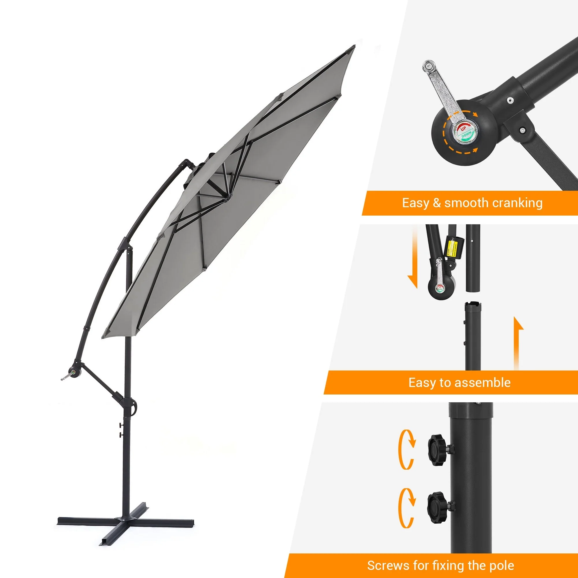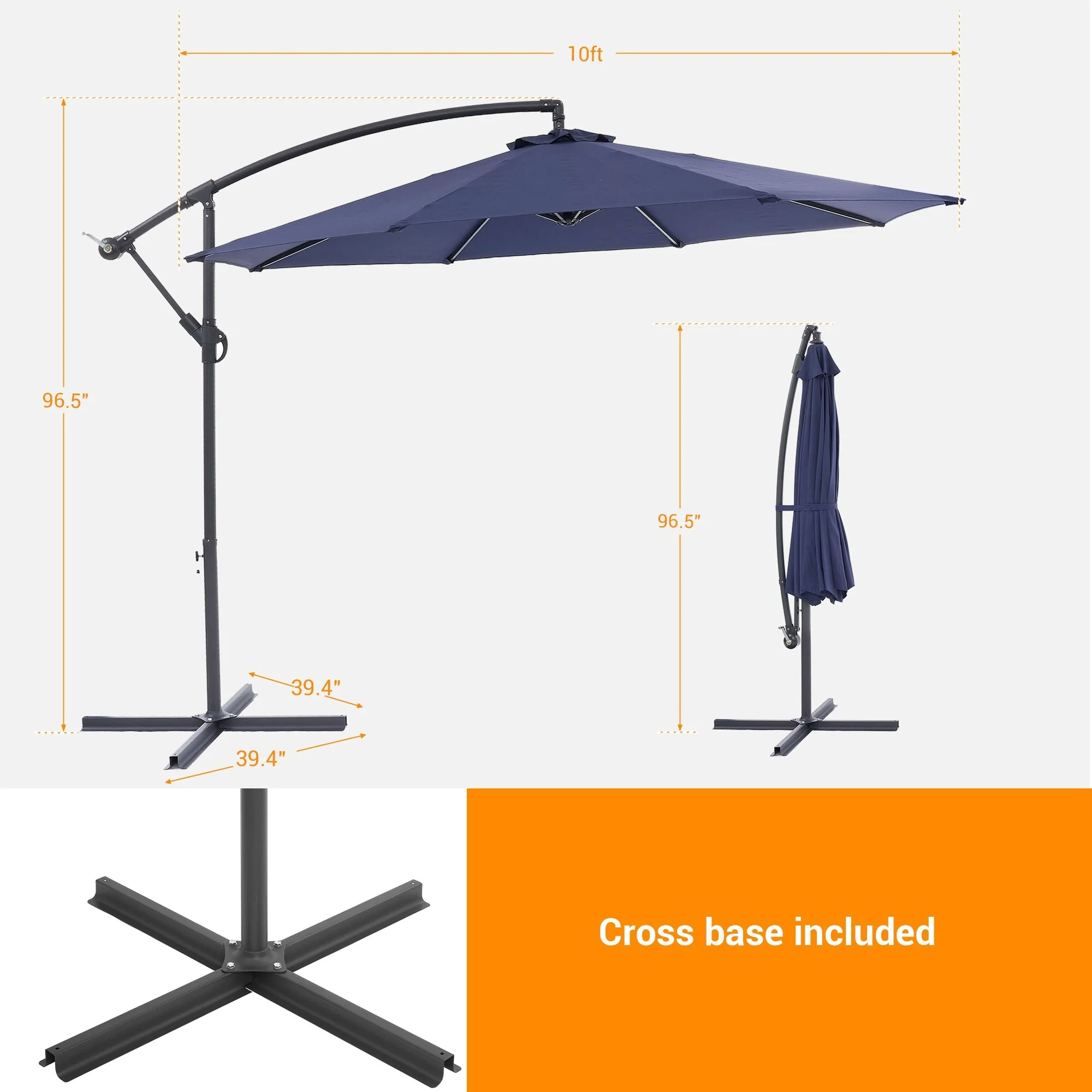 10ft Steel Crank Lift Hanging Offset Cantilever Umbrella
