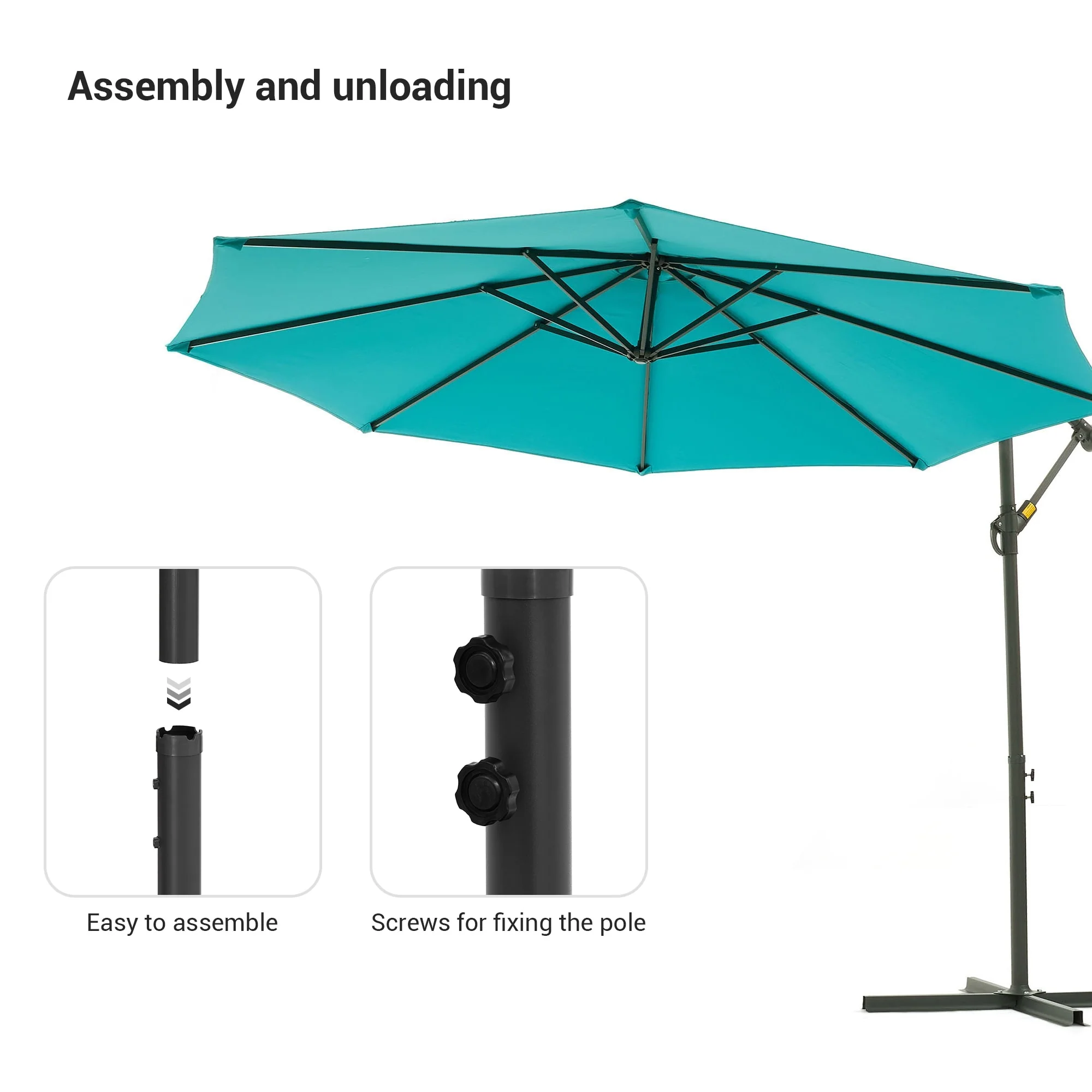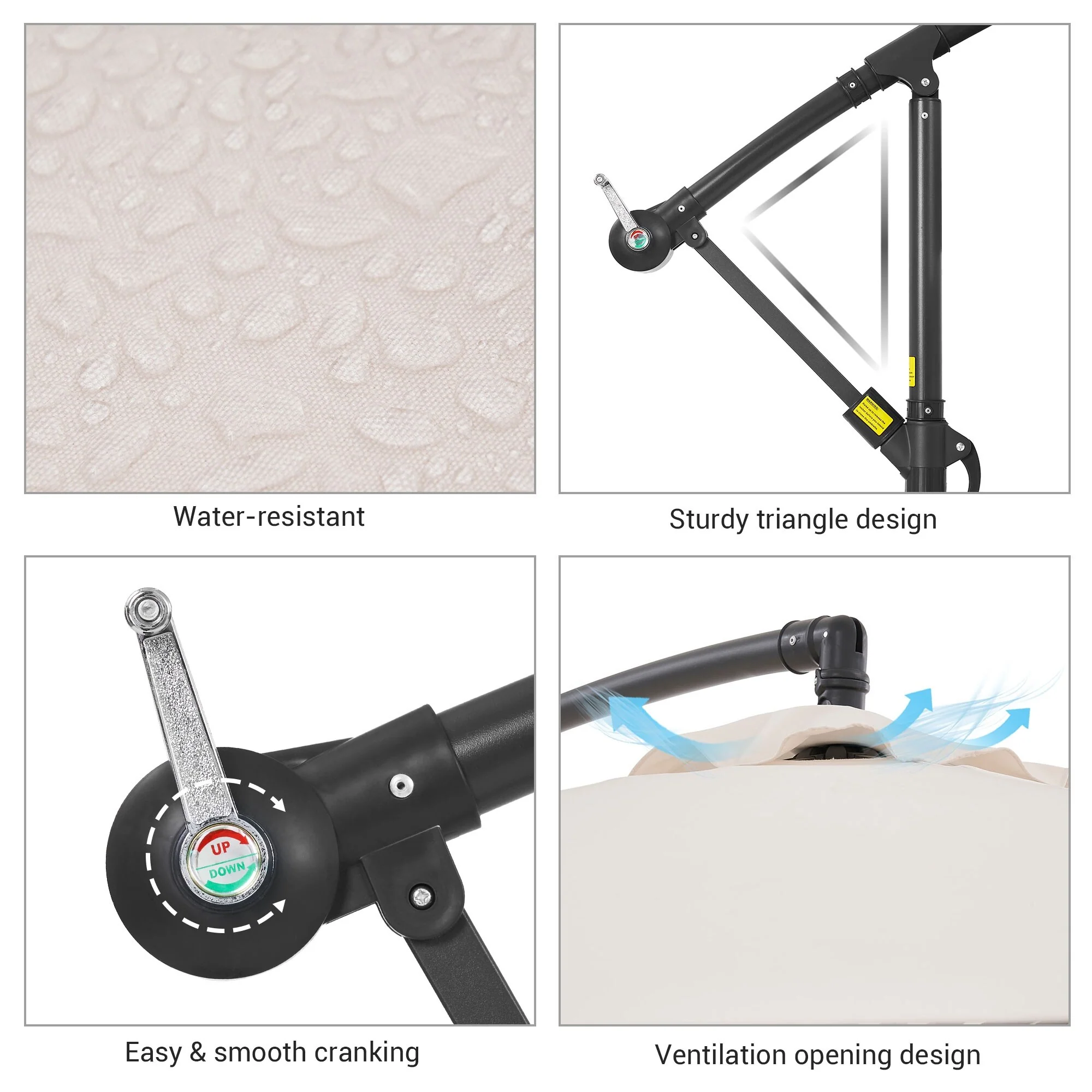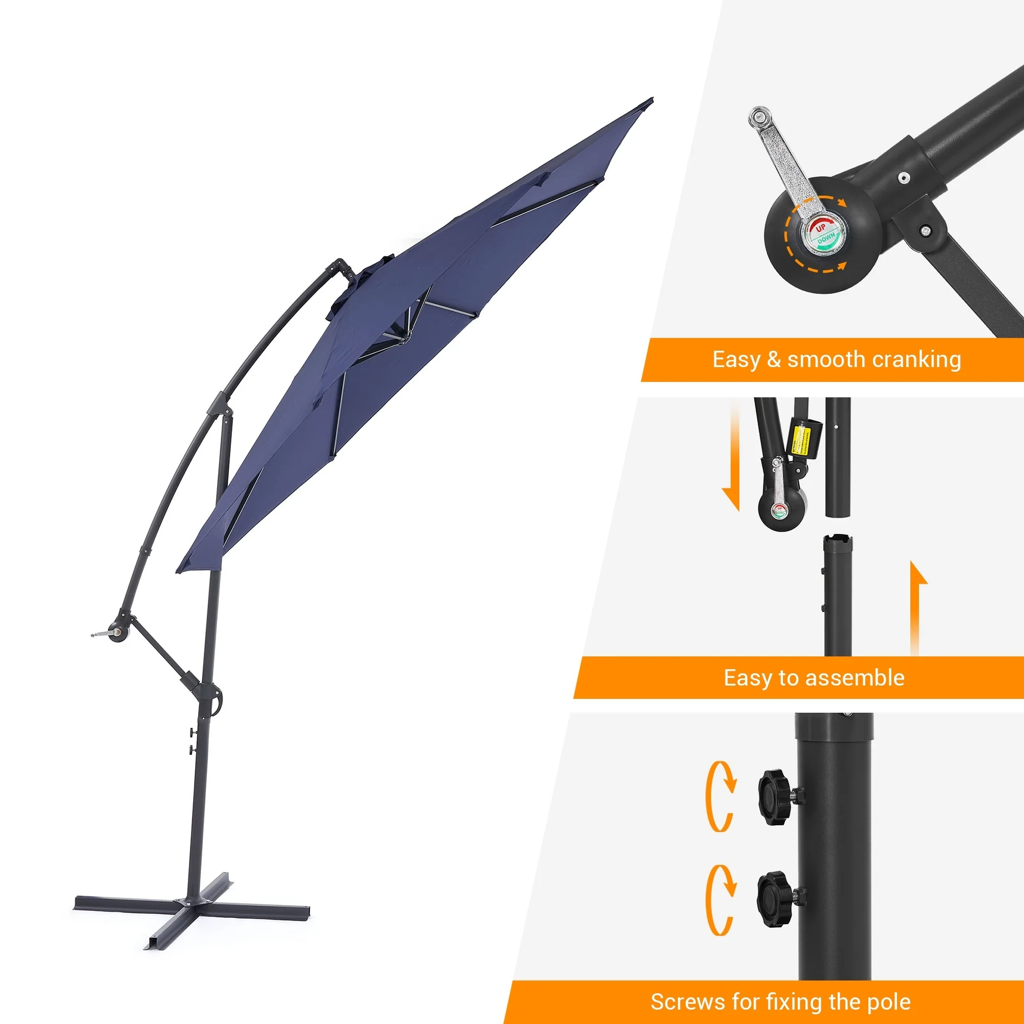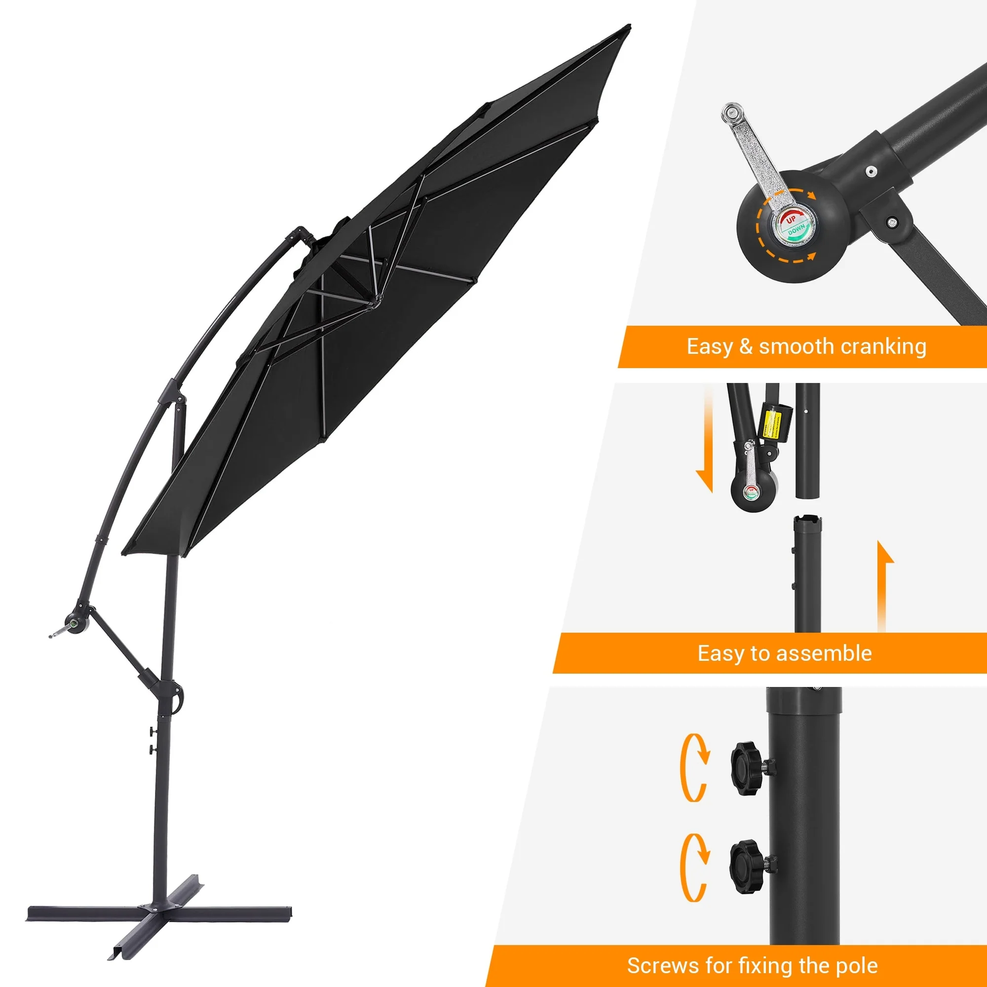 10ft Steel Crank Lift Hanging Offset Cantilever Umbrella