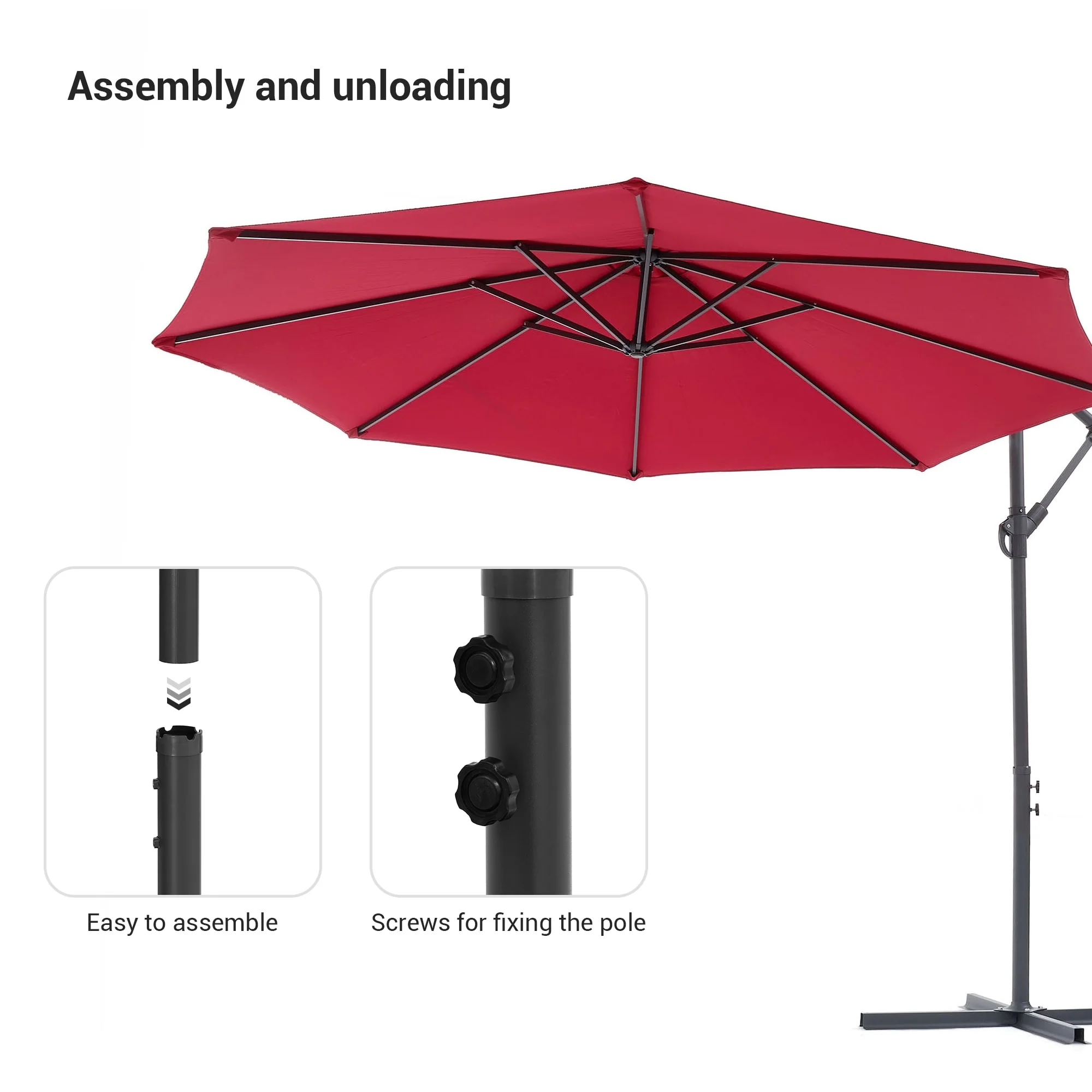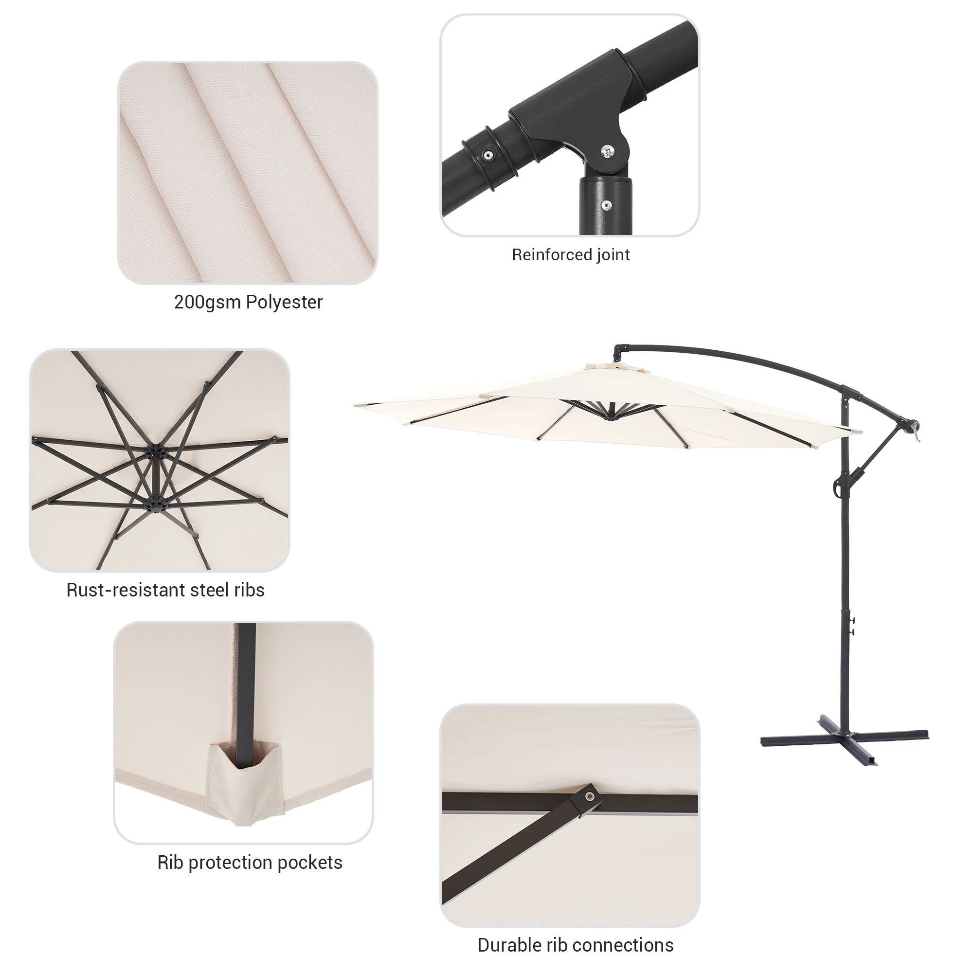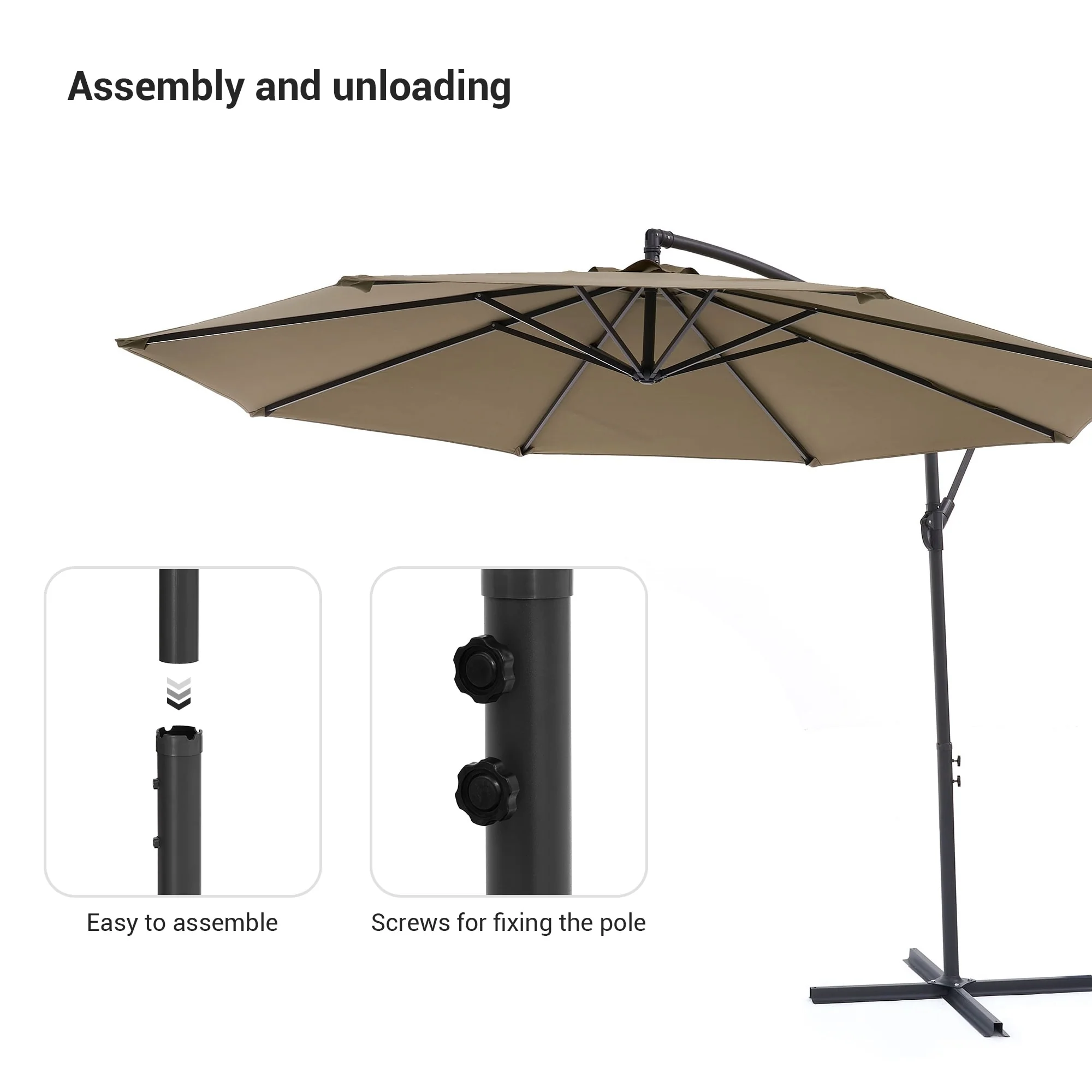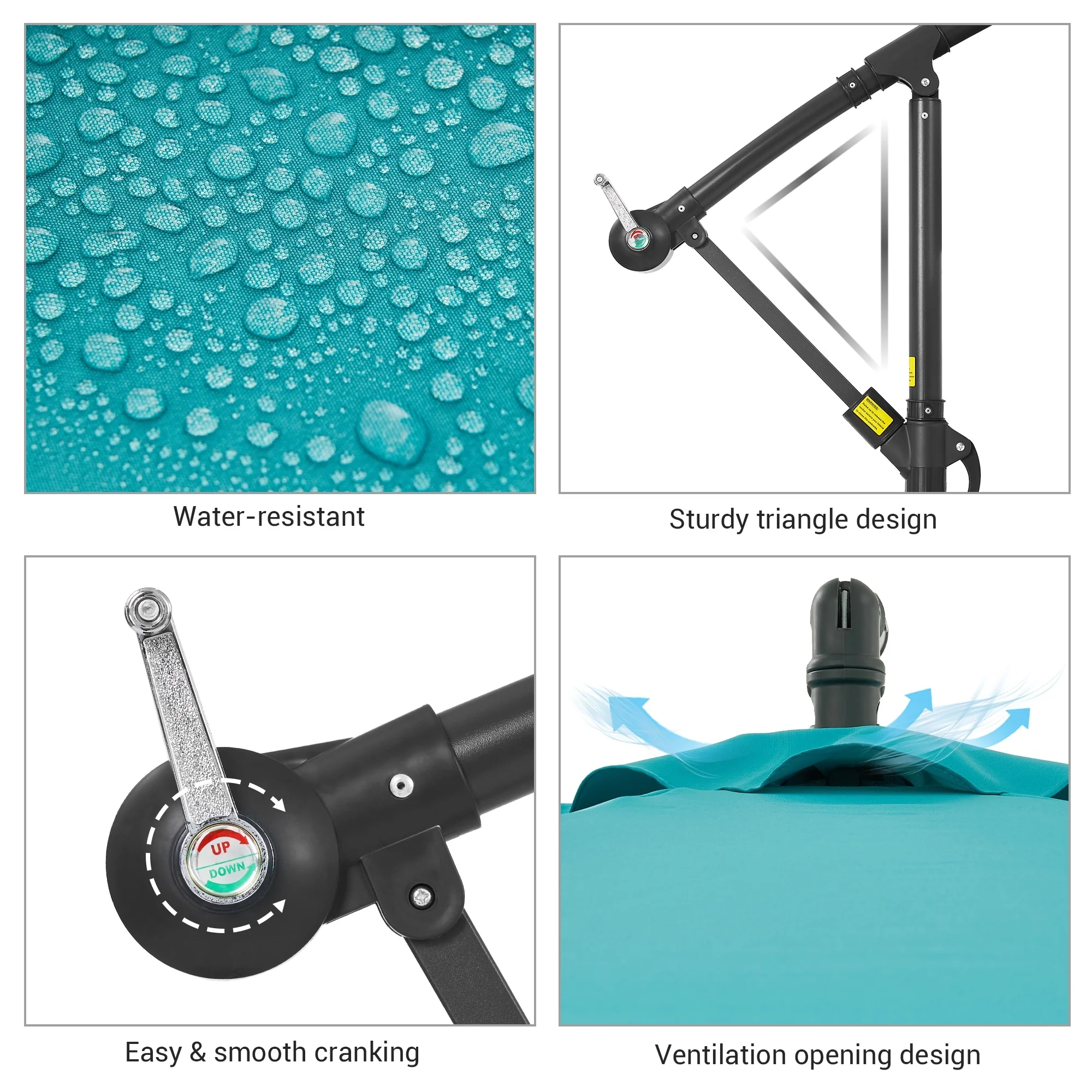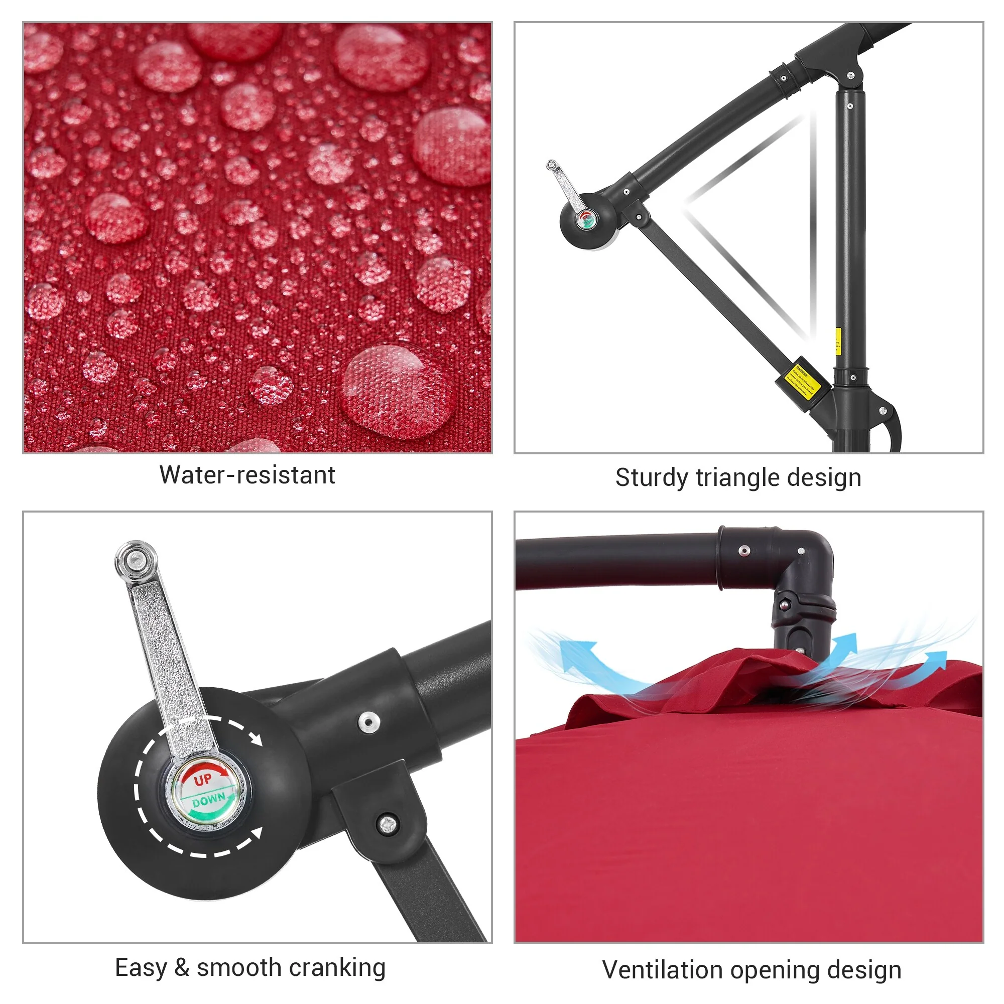 10ft Steel Crank Lift Hanging Offset Cantilever Umbrella