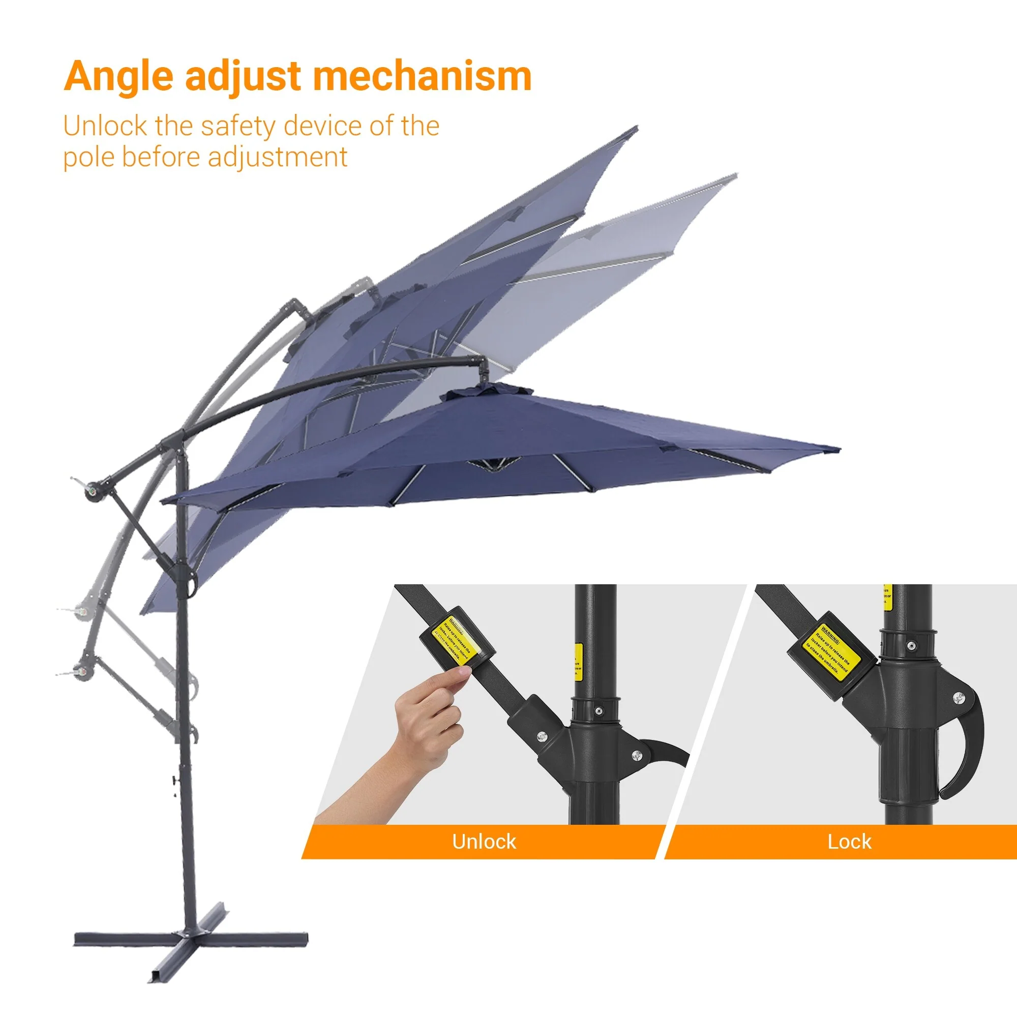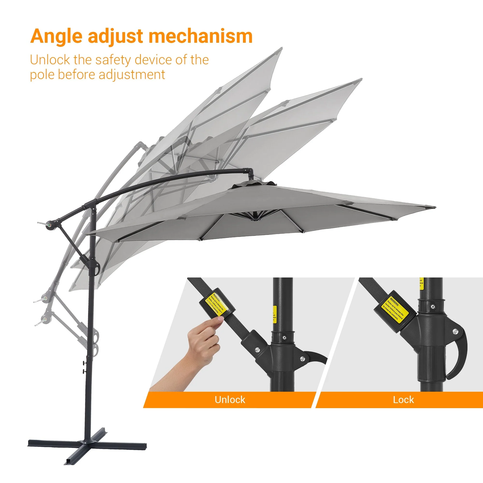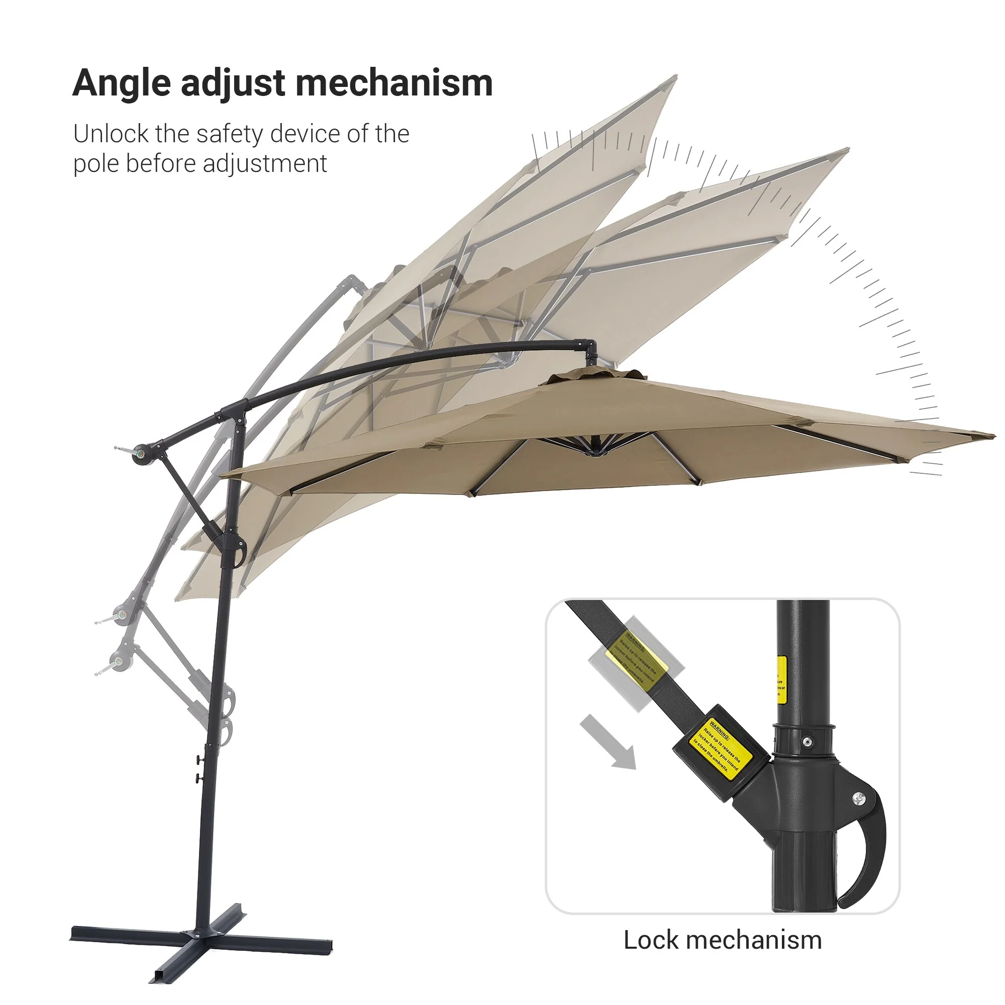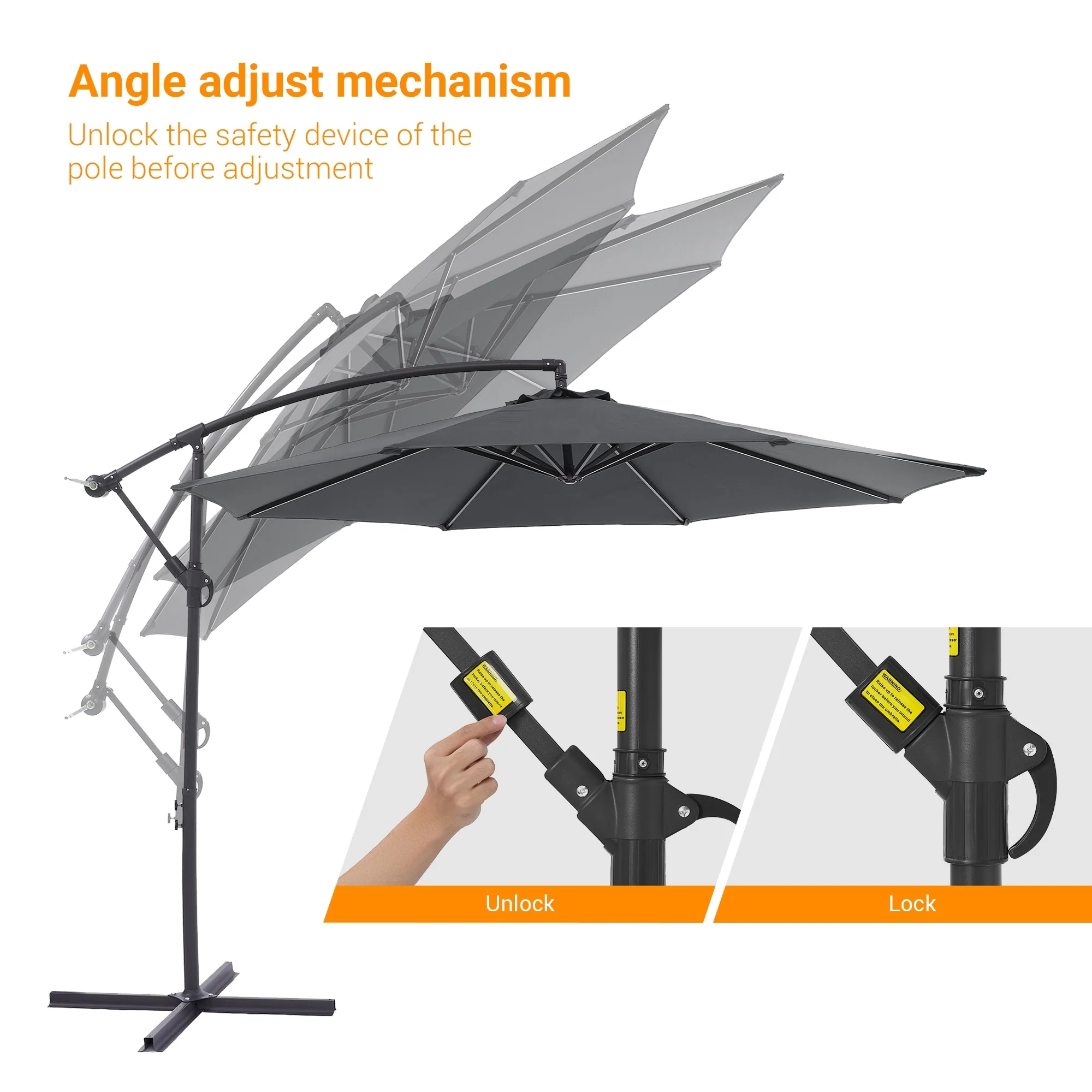 10ft Steel Crank Lift Hanging Offset Cantilever Umbrella