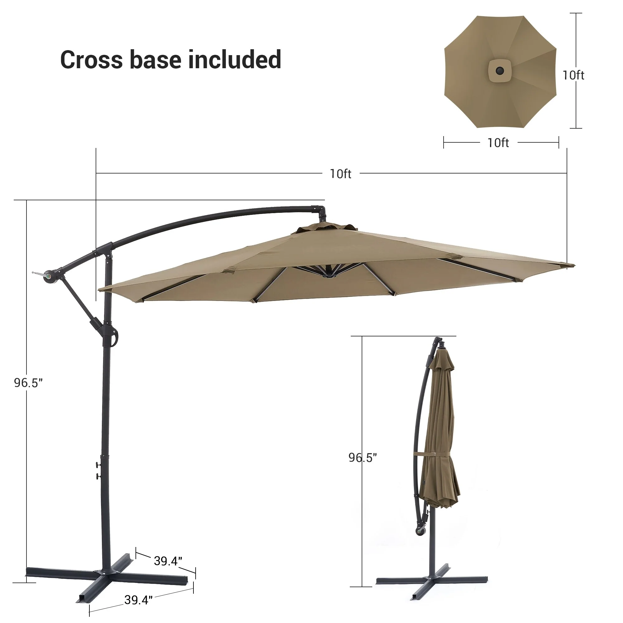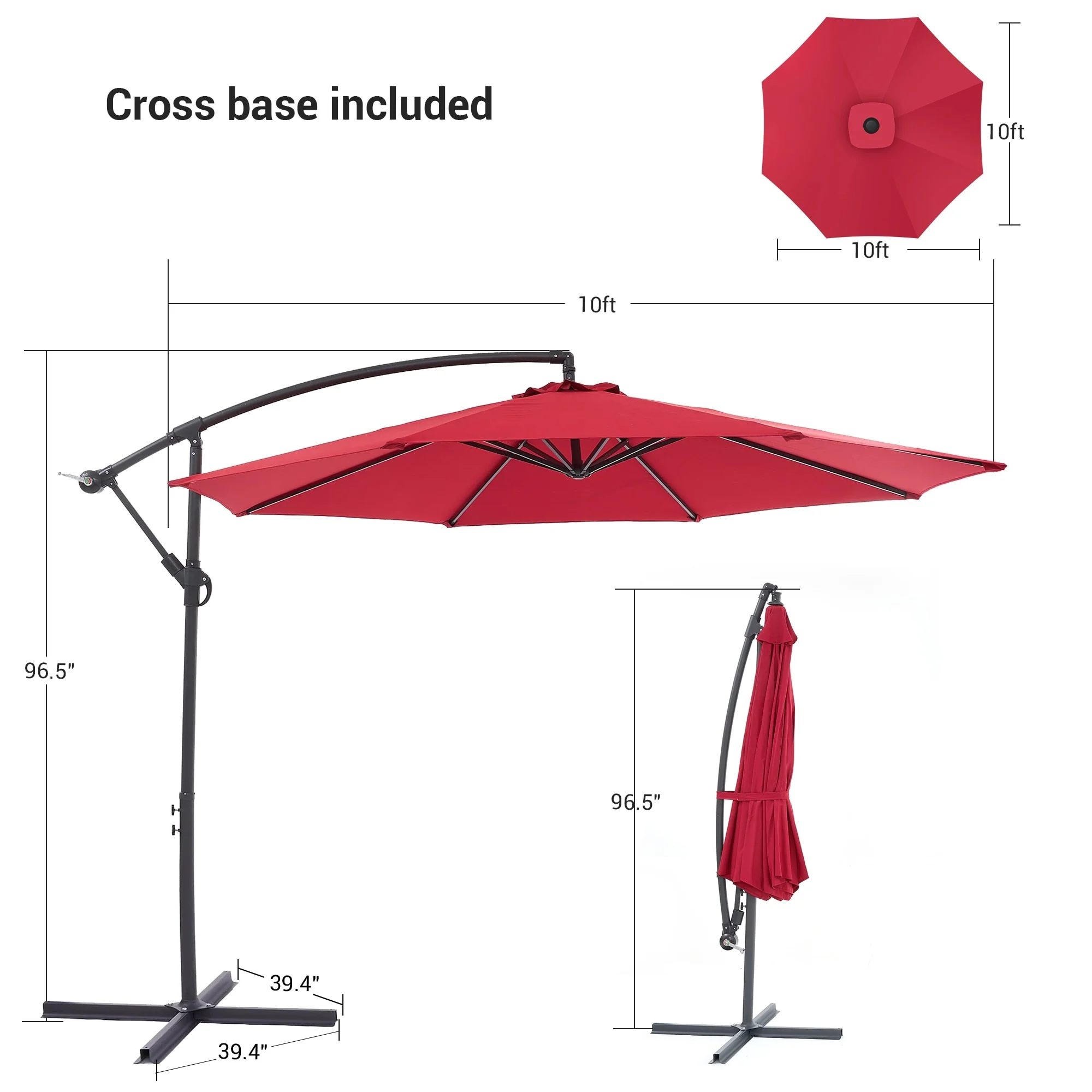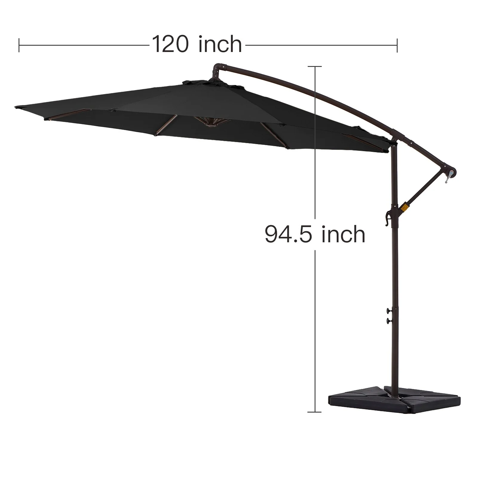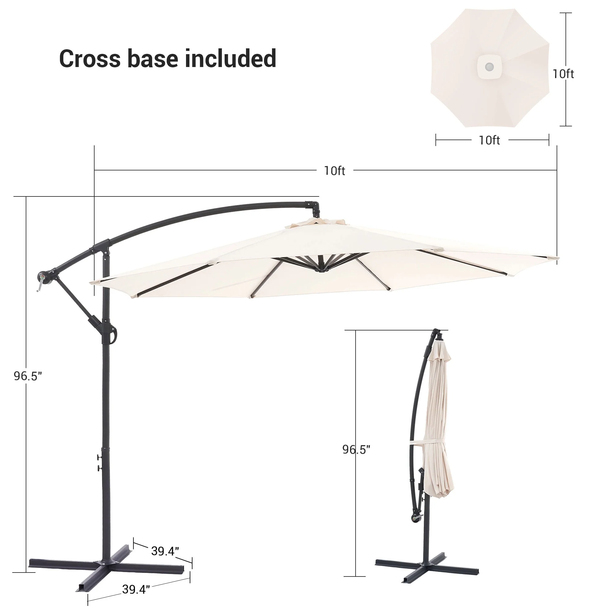 10 ft Steel Crank-lift Cantilever Umbrella With Weighted Base