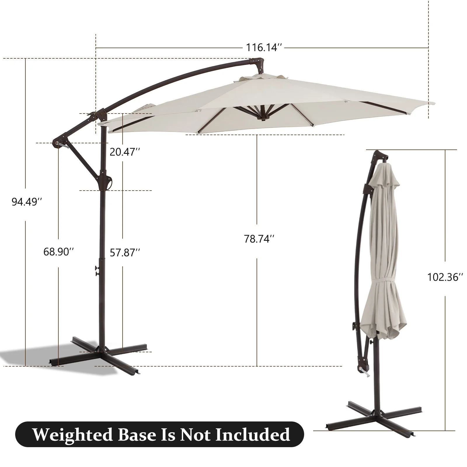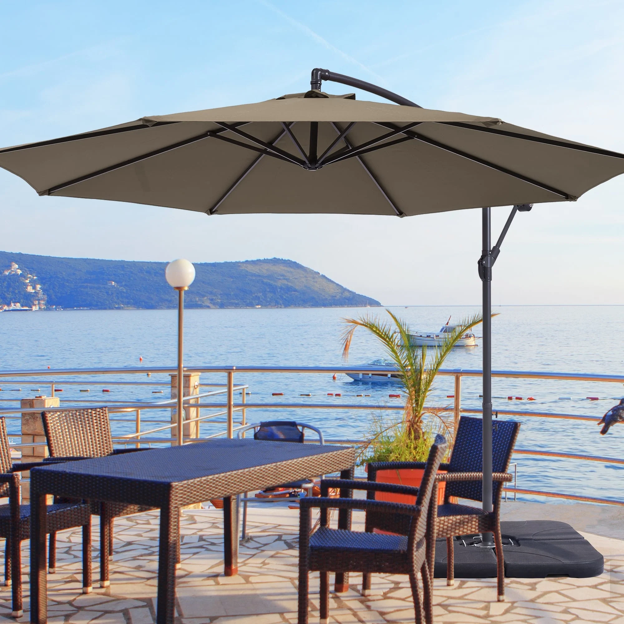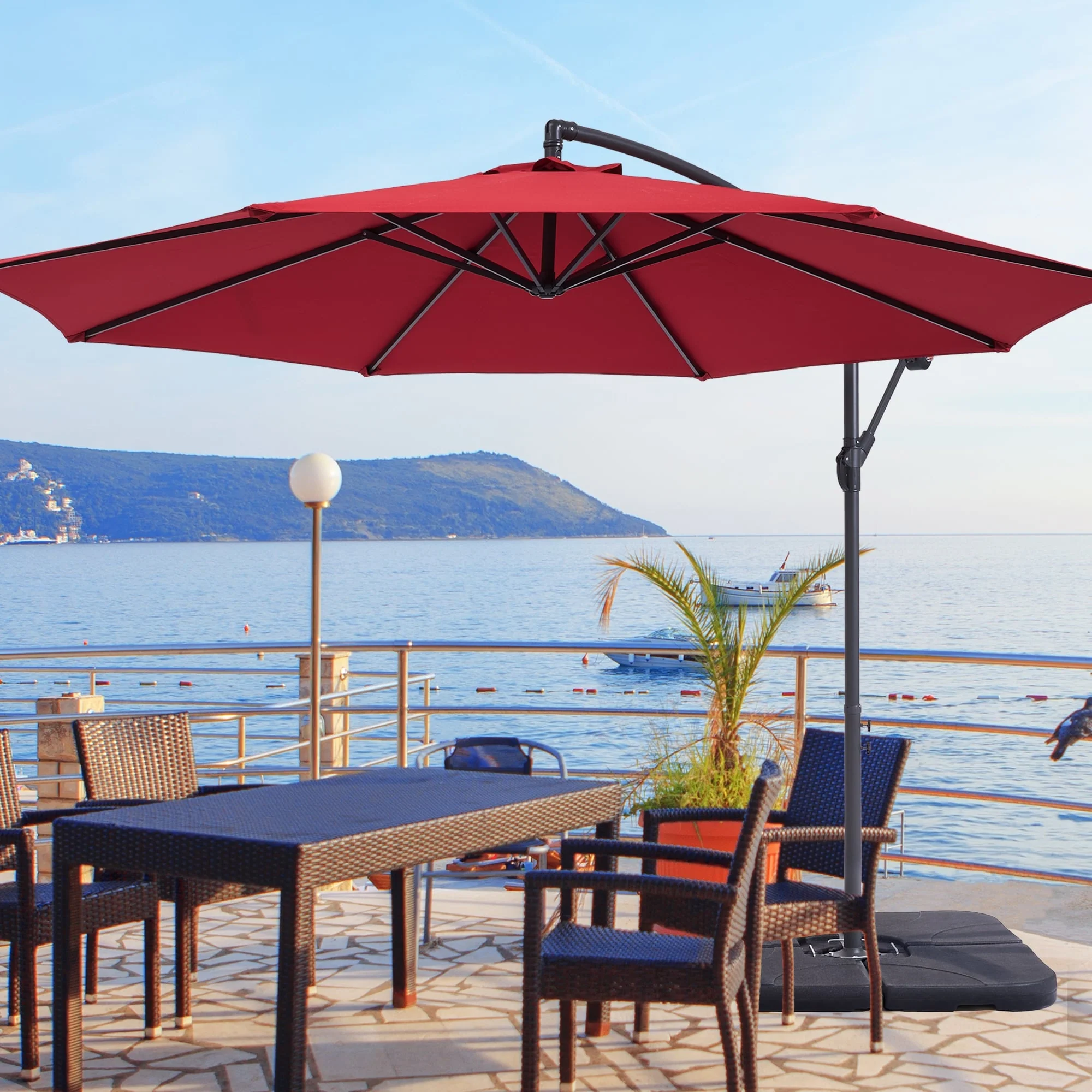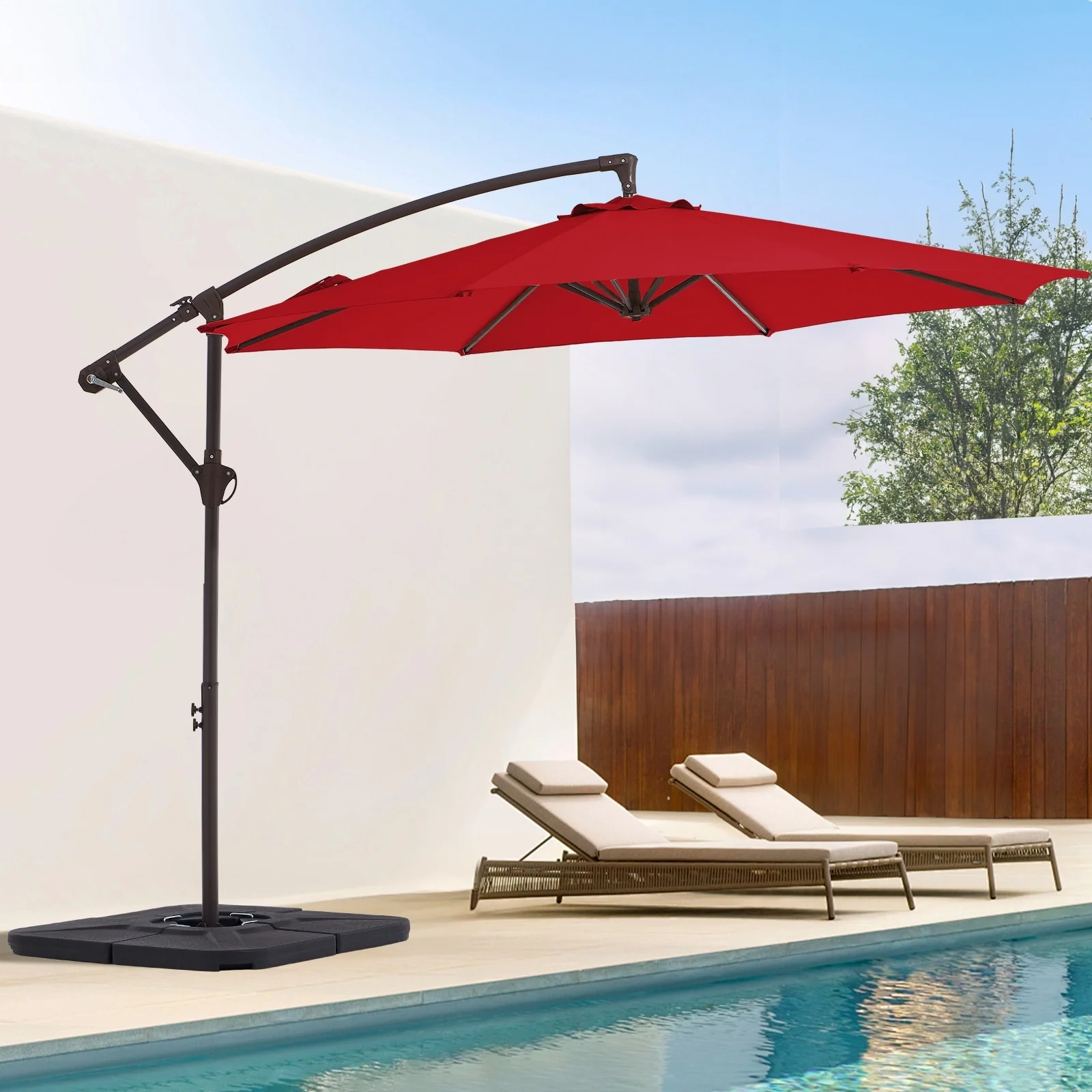 10 ft Steel Crank-lift Cantilever Umbrella With Weighted Base