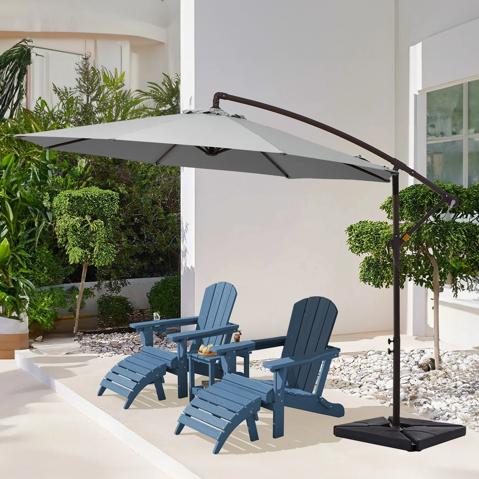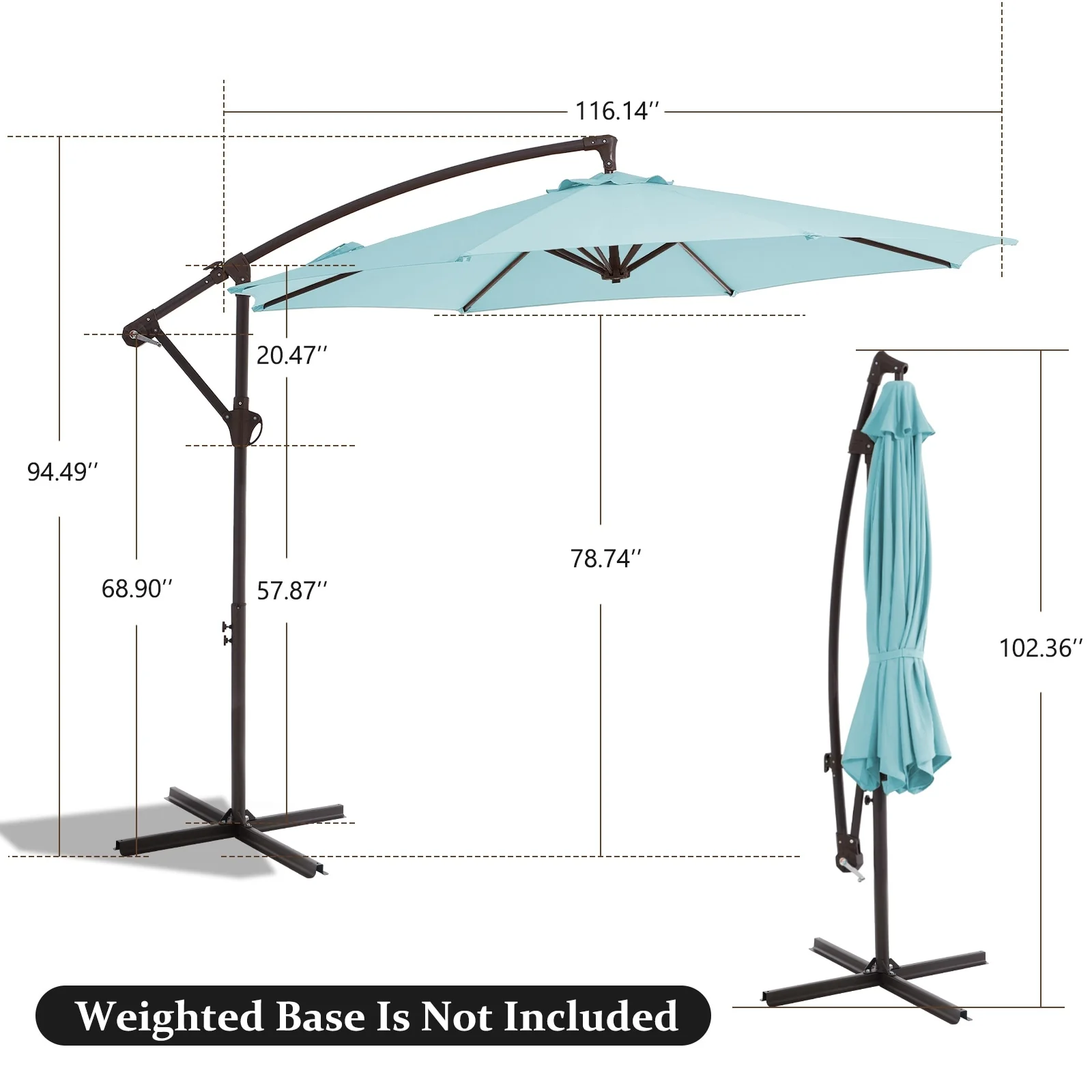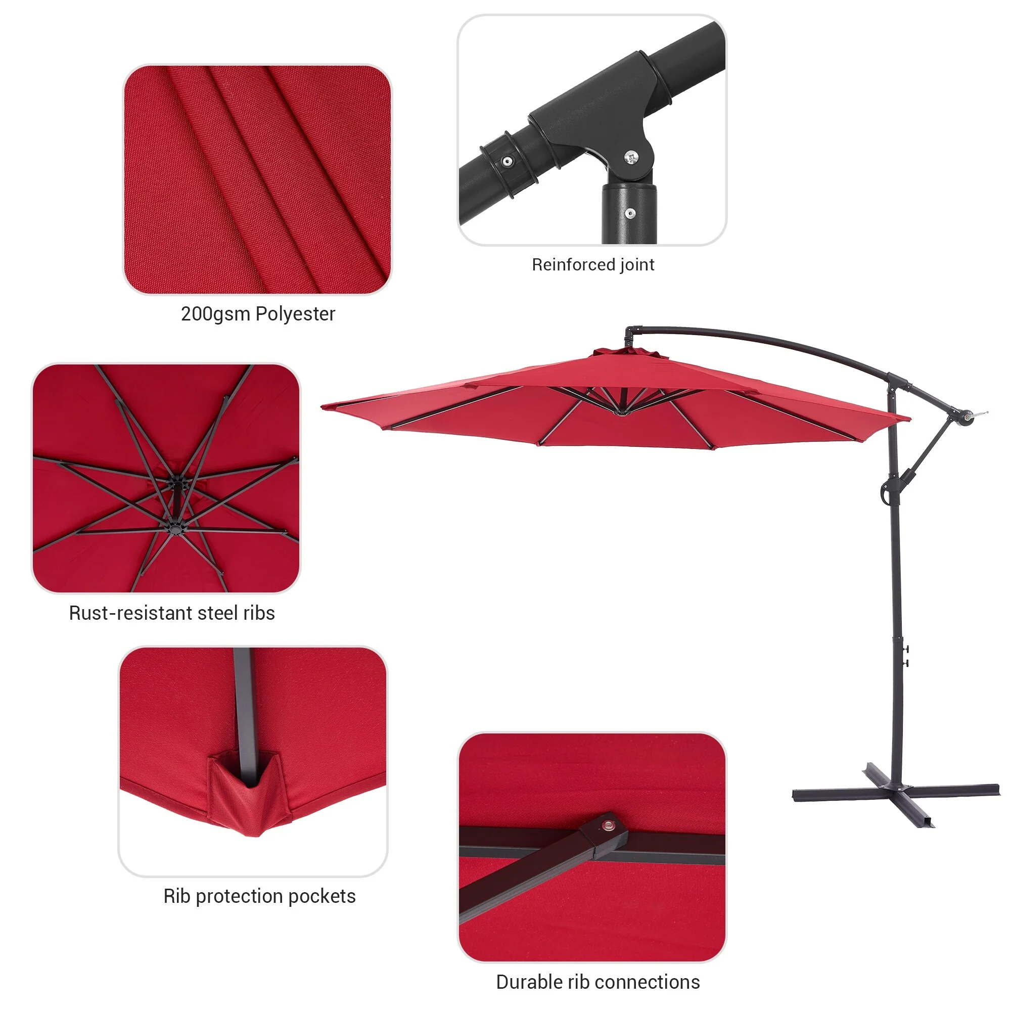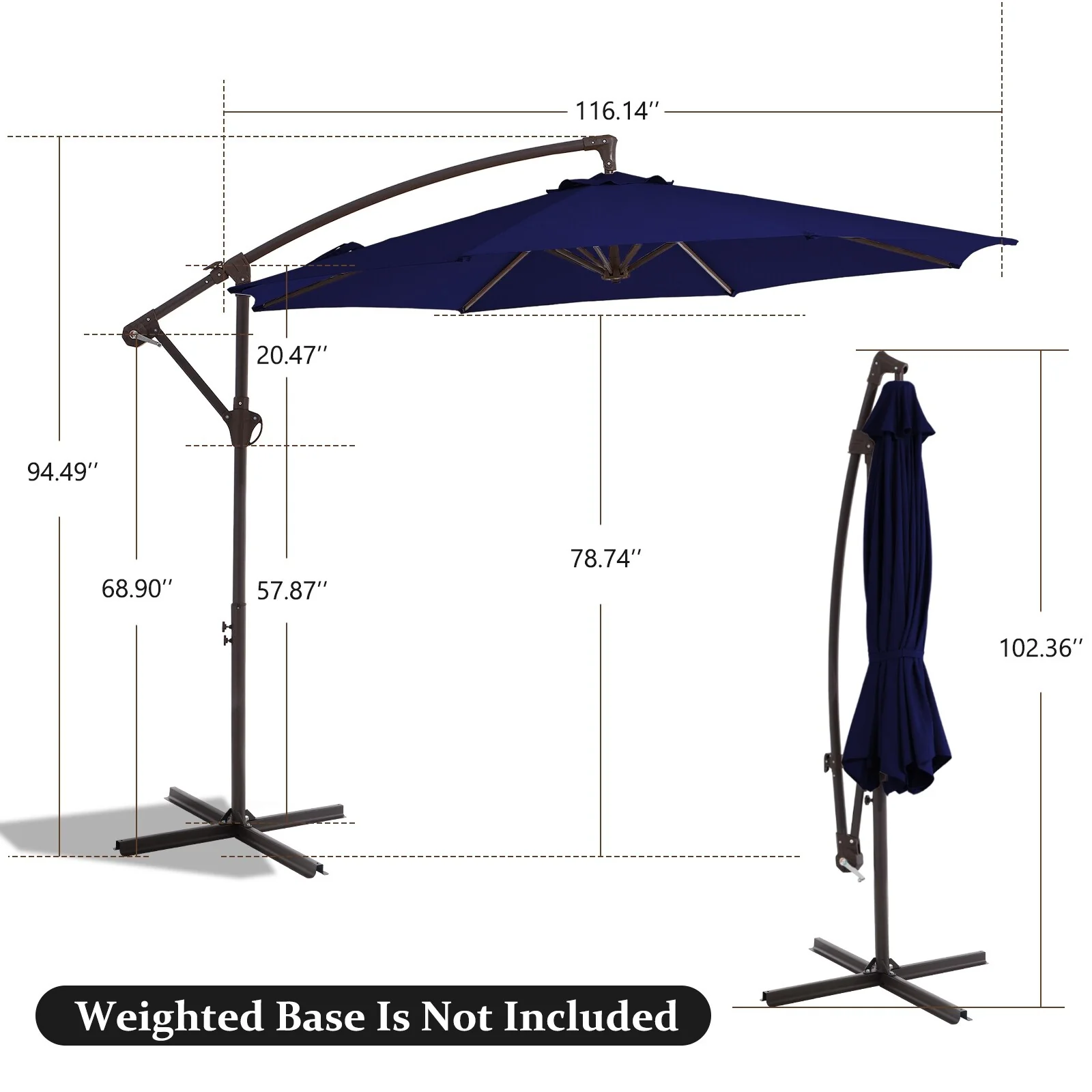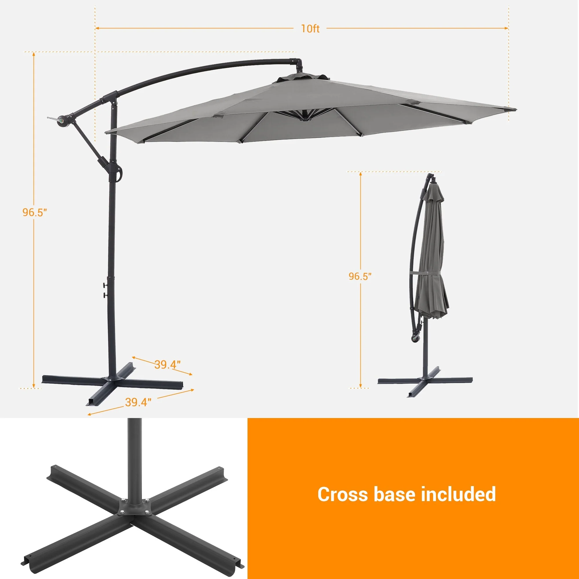 10 ft Steel Crank-lift Cantilever Umbrella With Weighted Base