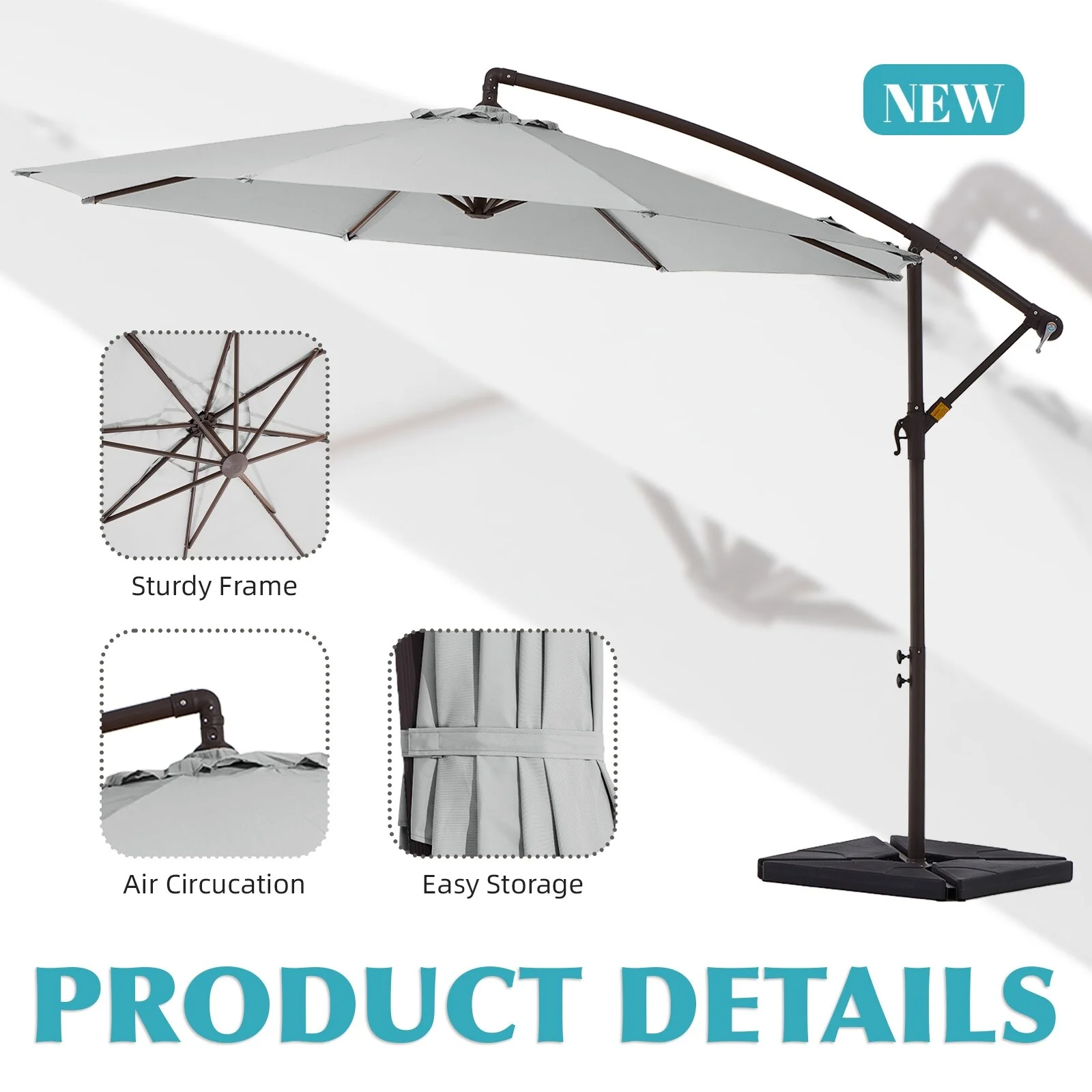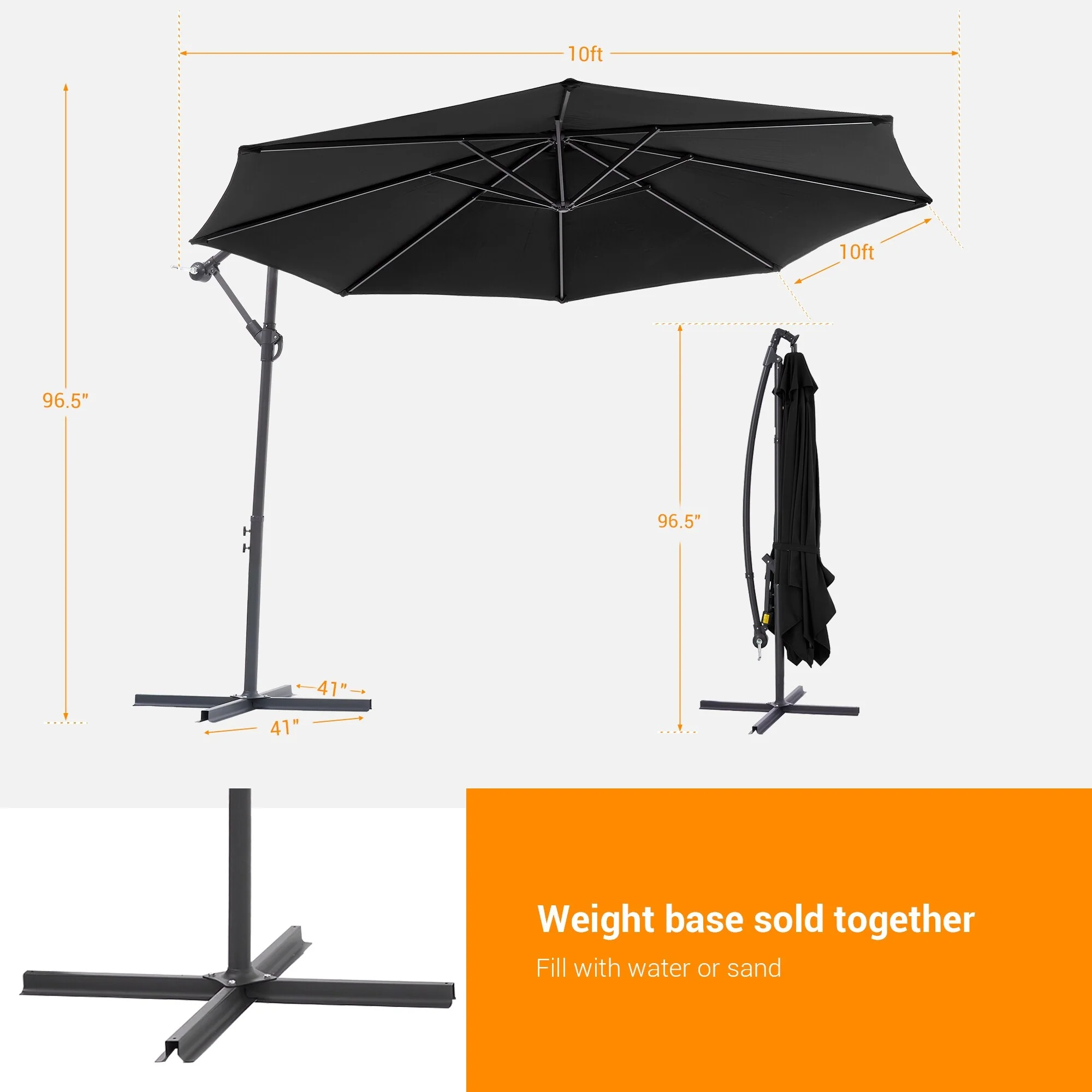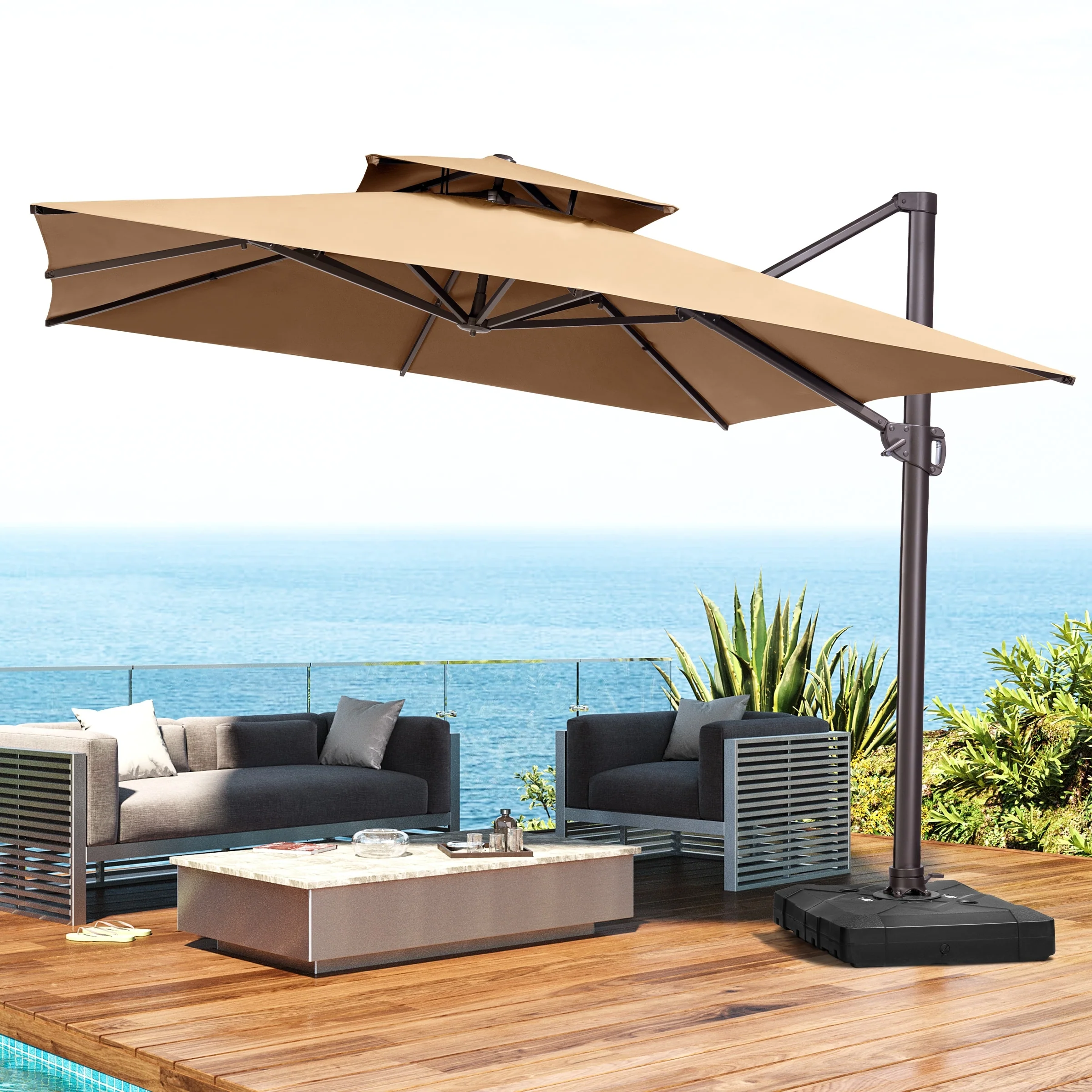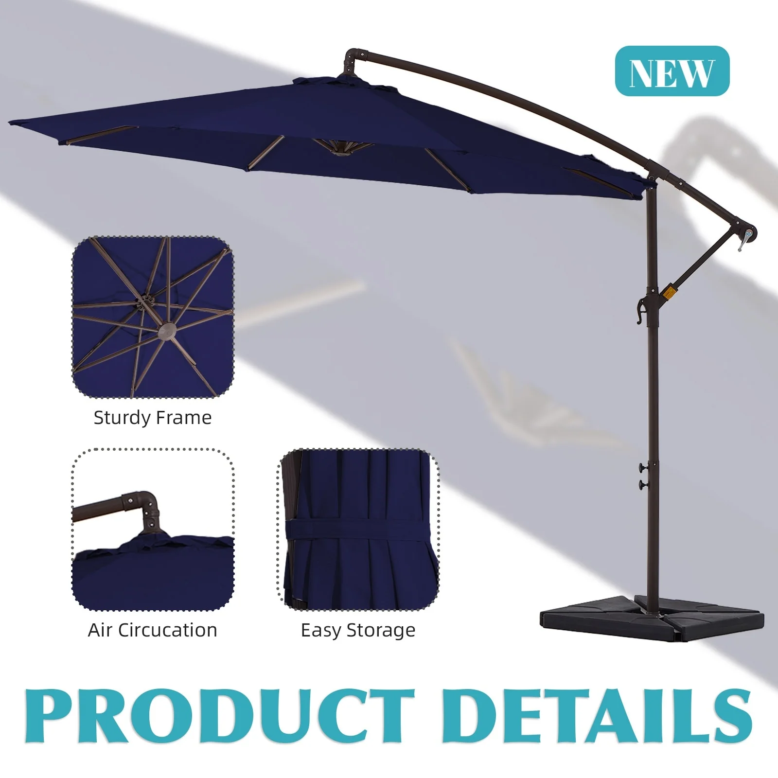 10 ft Steel Crank-lift Cantilever Umbrella With Weighted Base