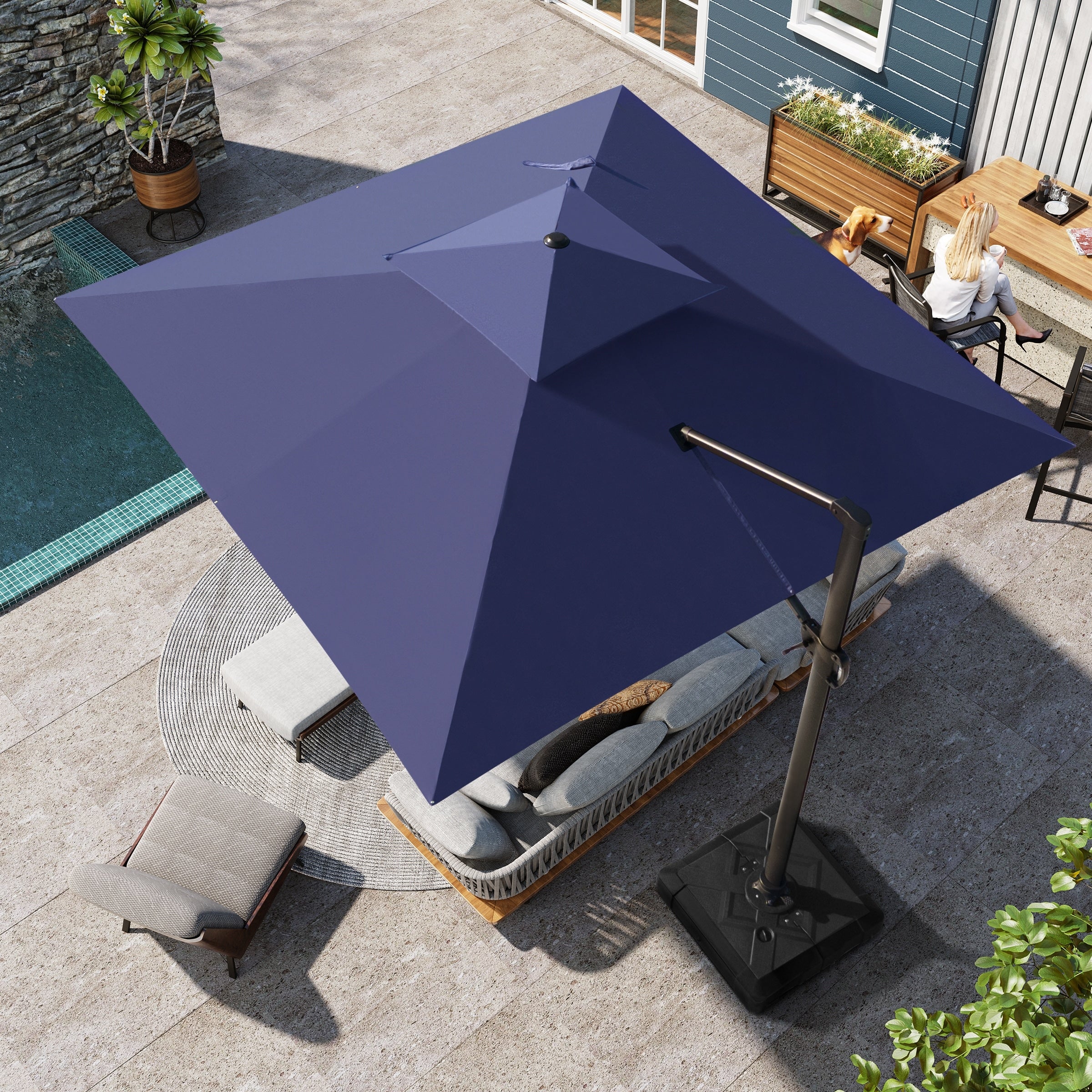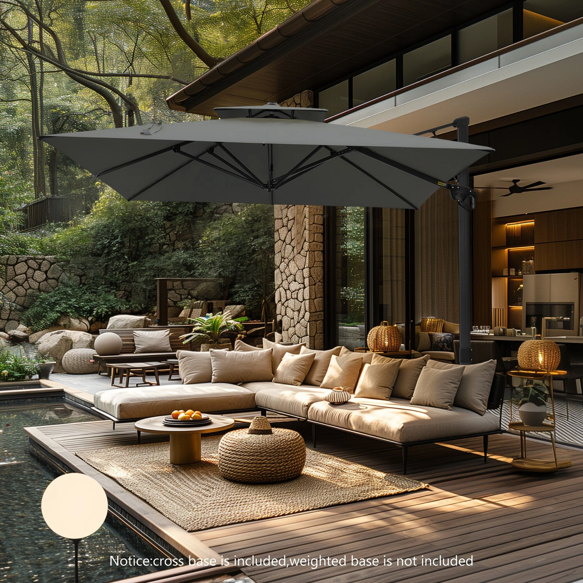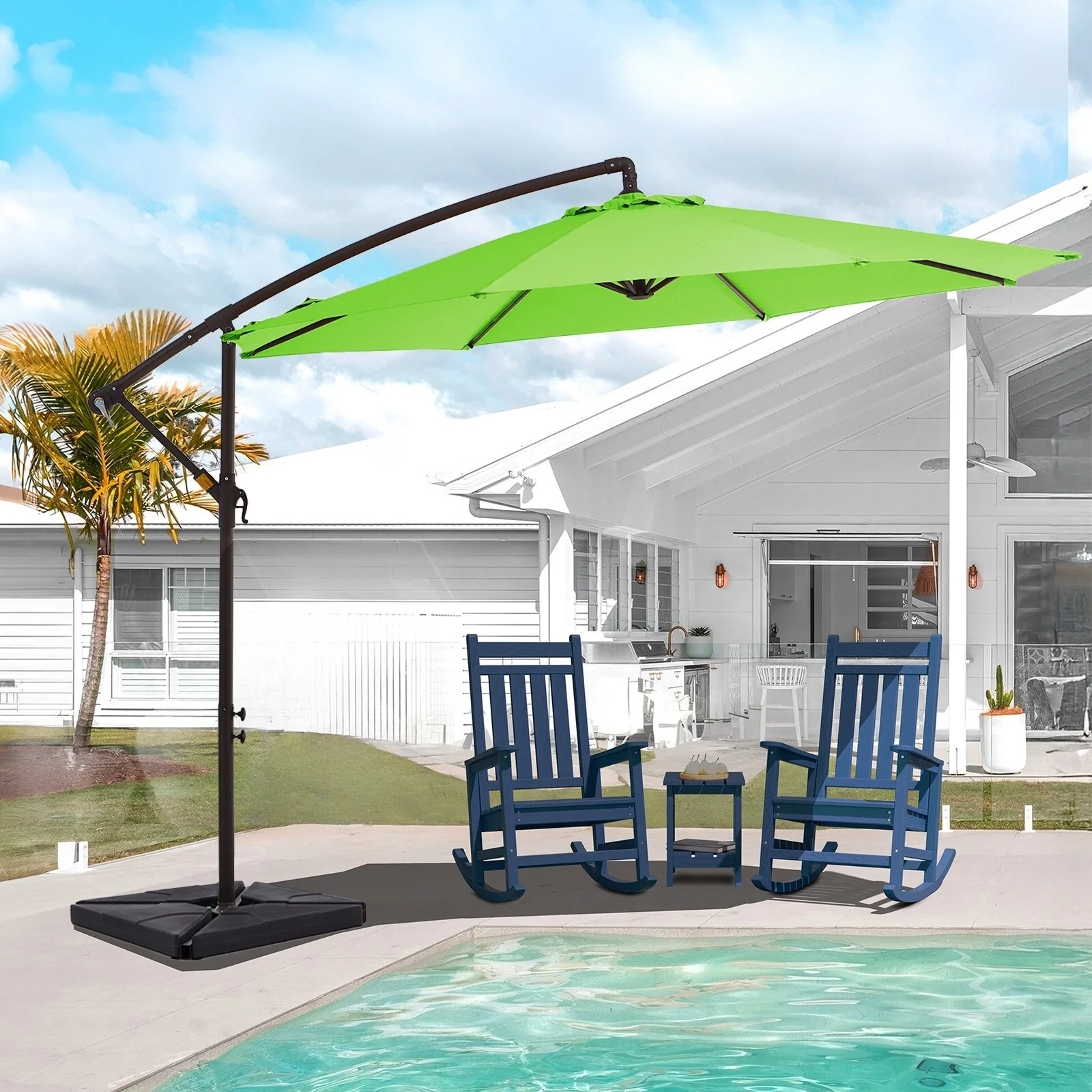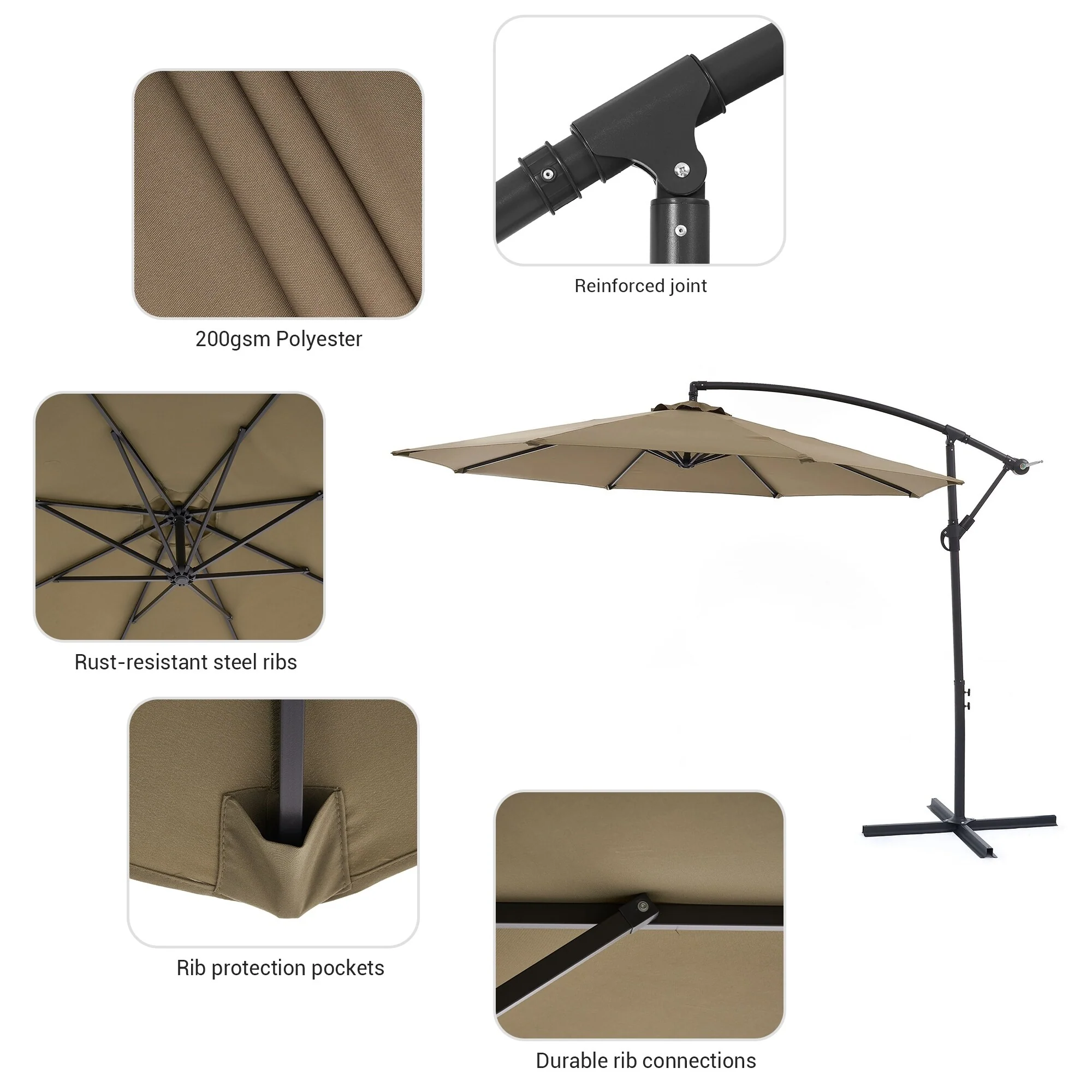 10 ft Steel Crank-lift Cantilever Umbrella With Weighted Base