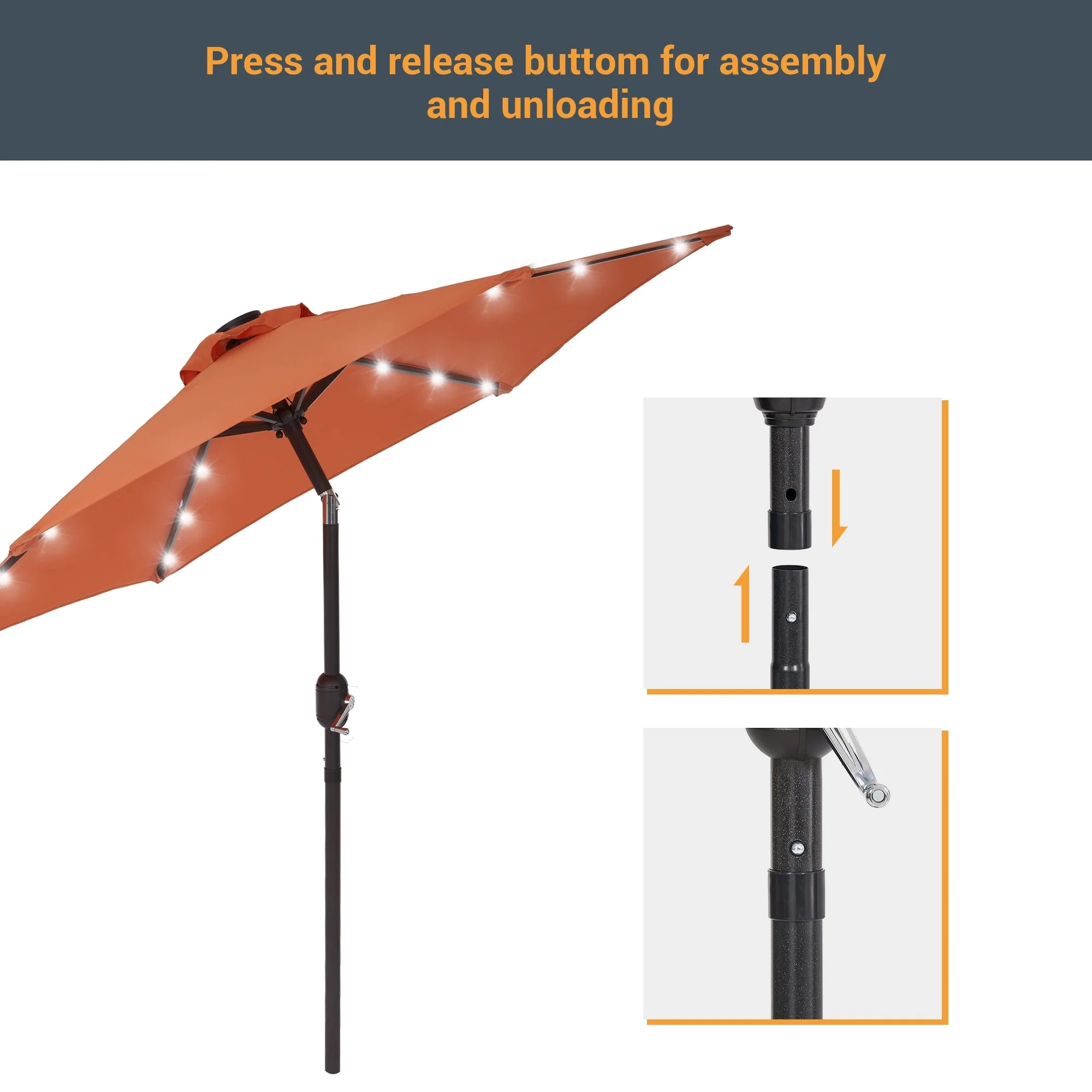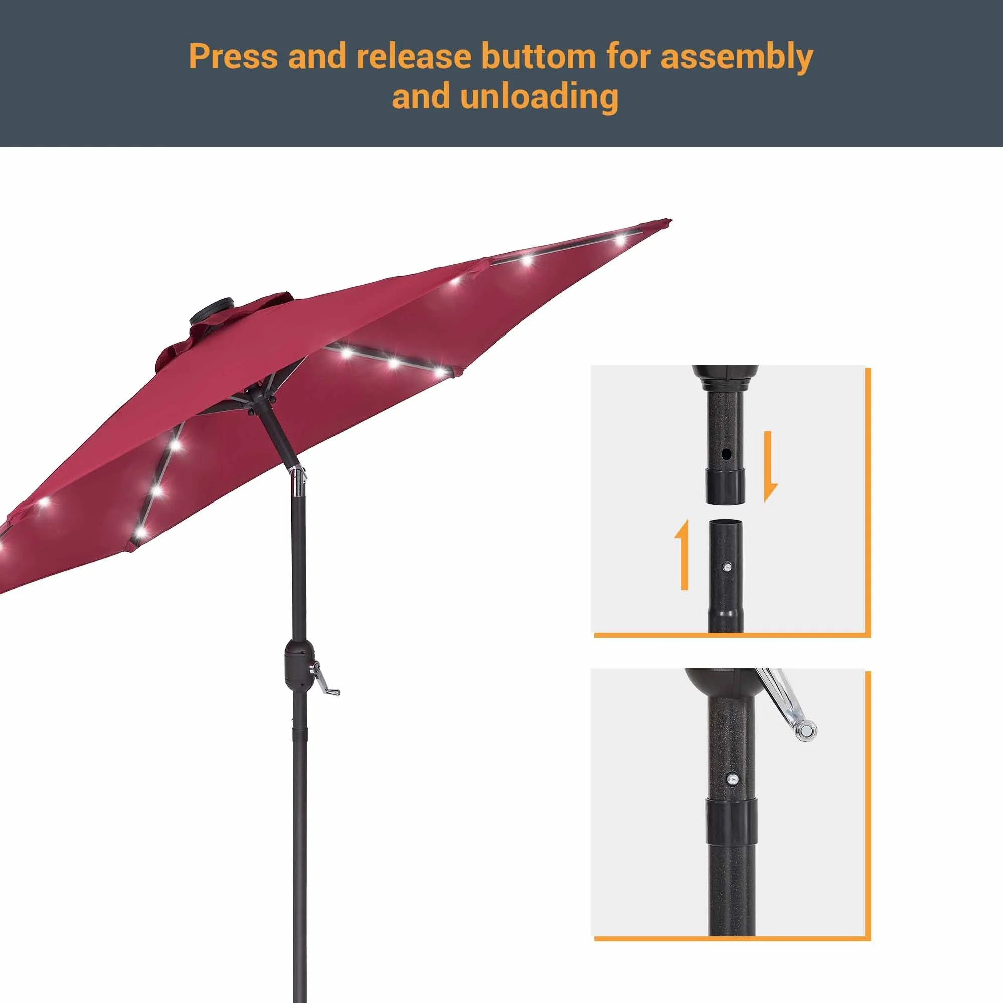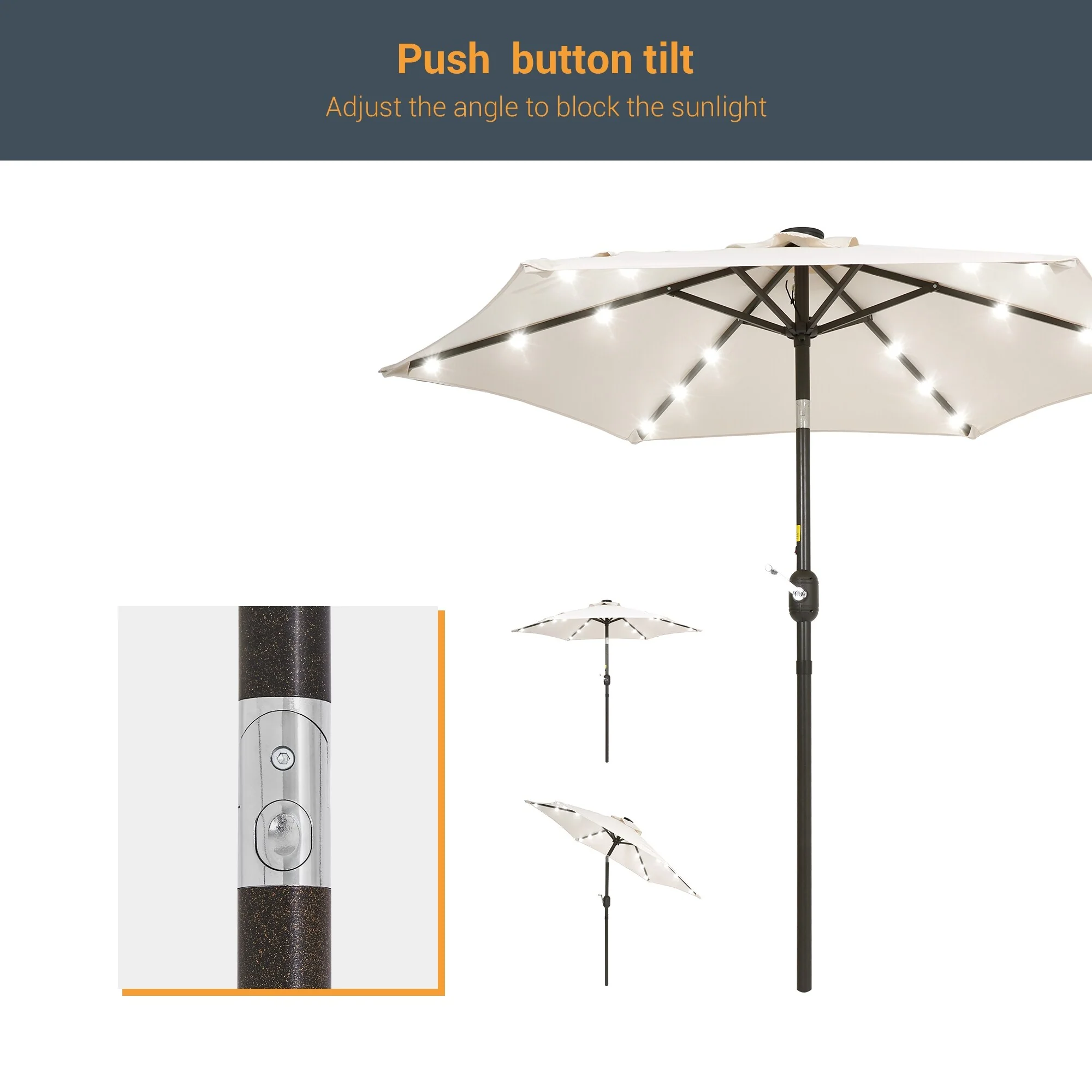 LIVOOSUN Patio 7.5 FT LED Market Umbrella,Table Umbrella w/Tilt Button