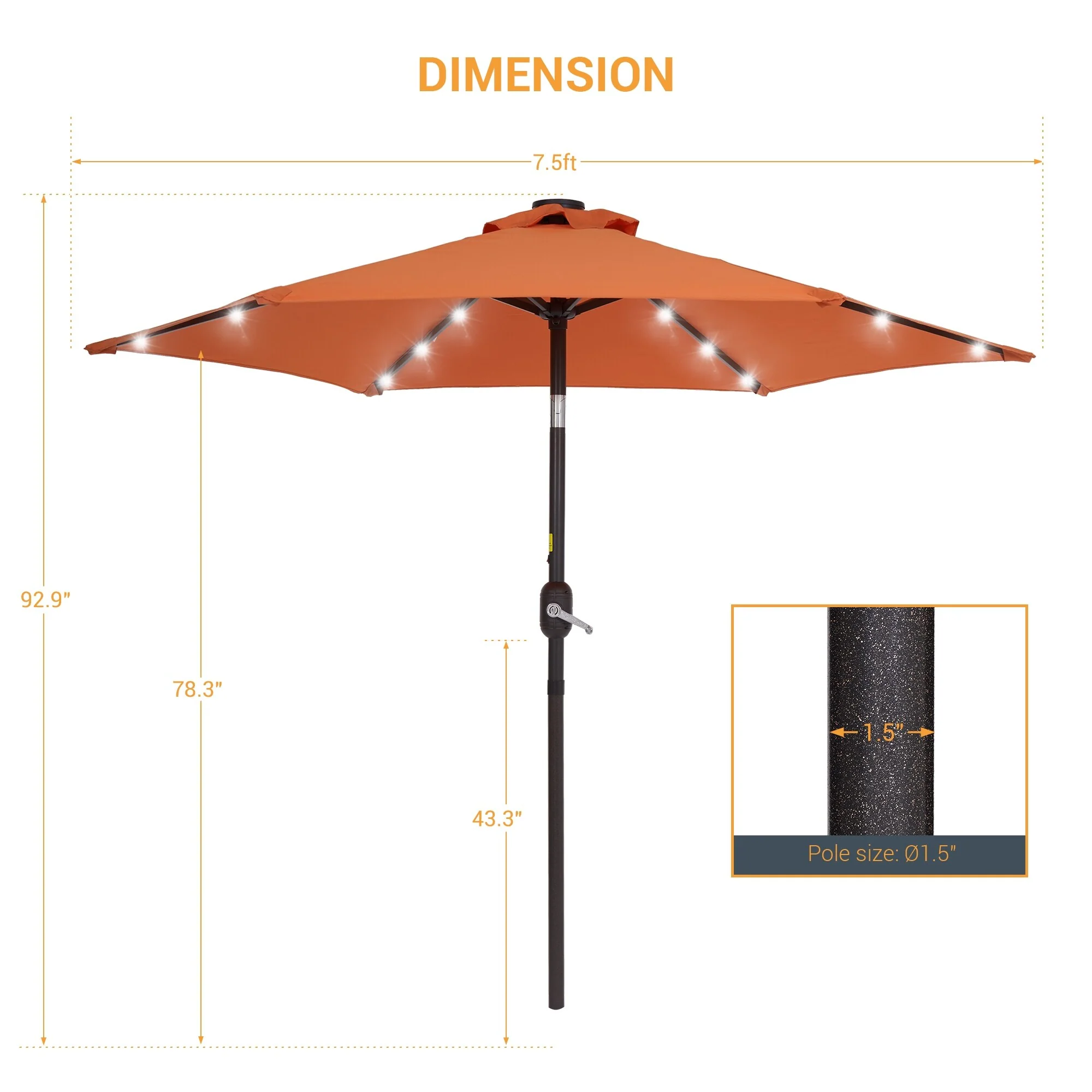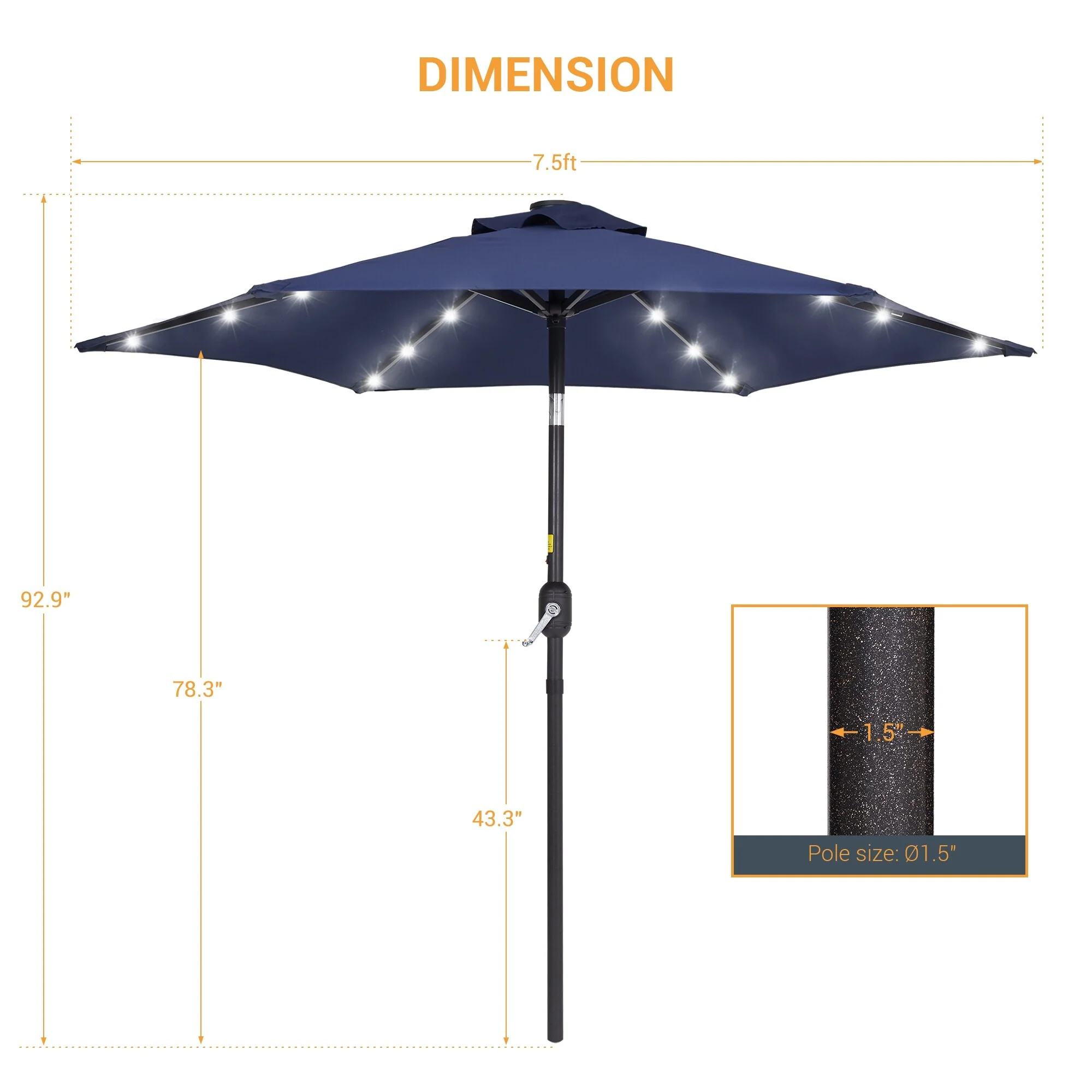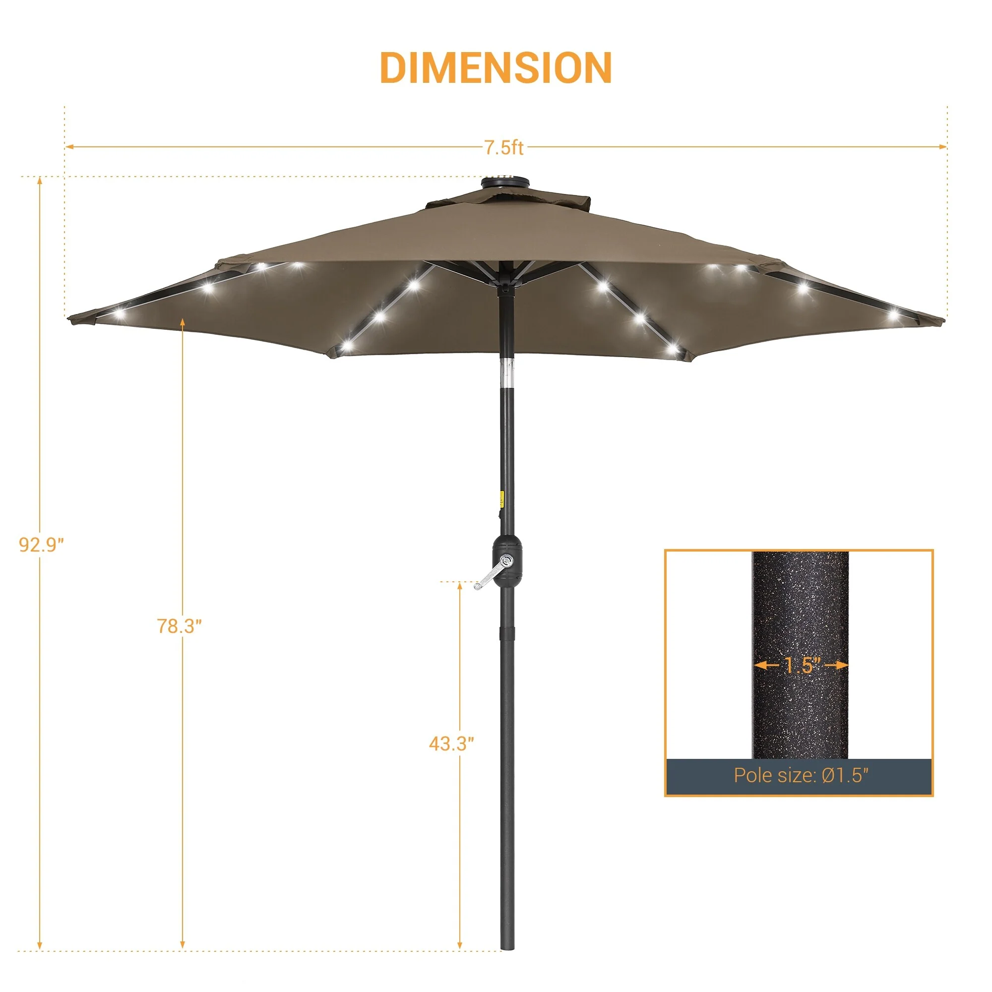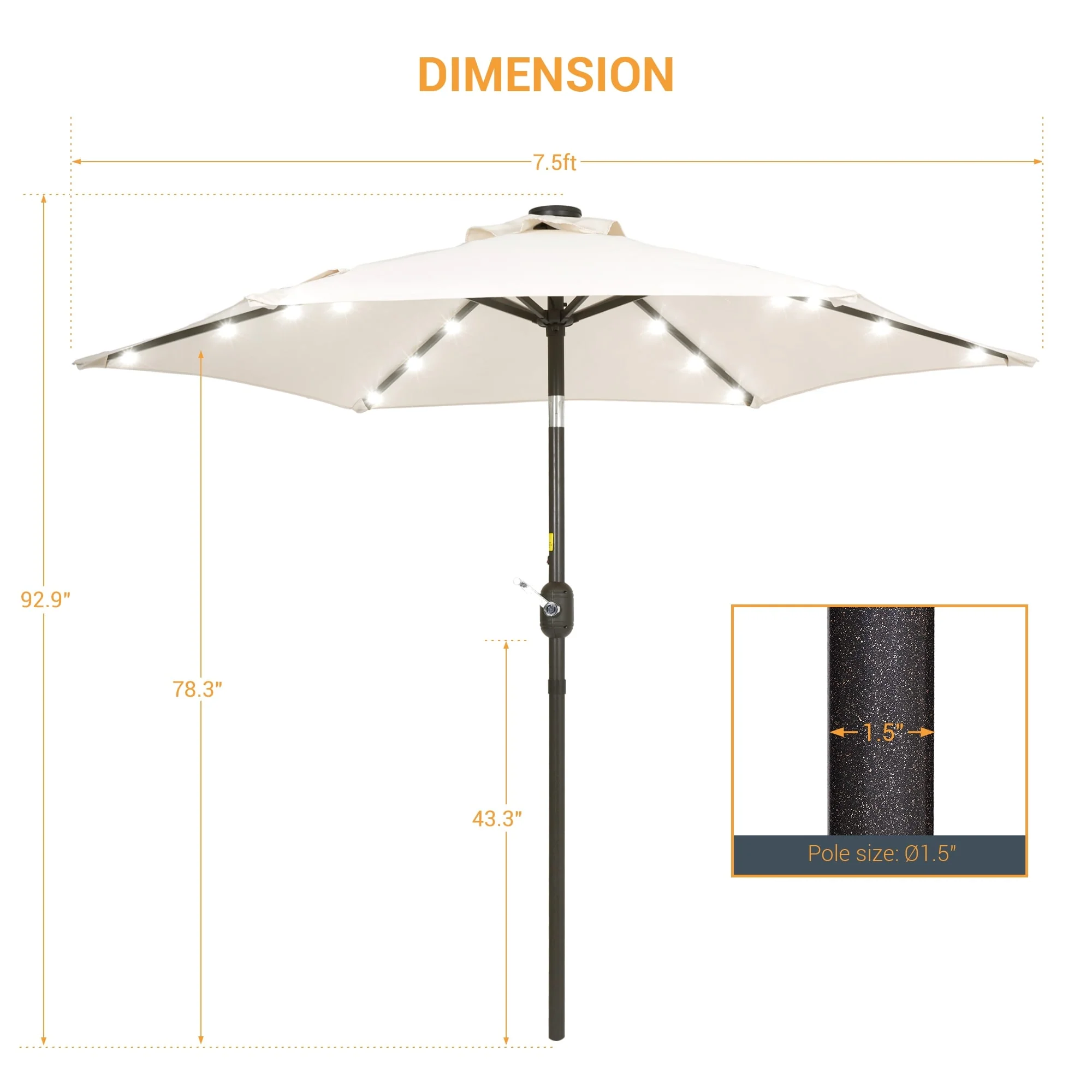 LIVOOSUN Patio 7.5 FT LED Market Umbrella,Table Umbrella w/Tilt Button