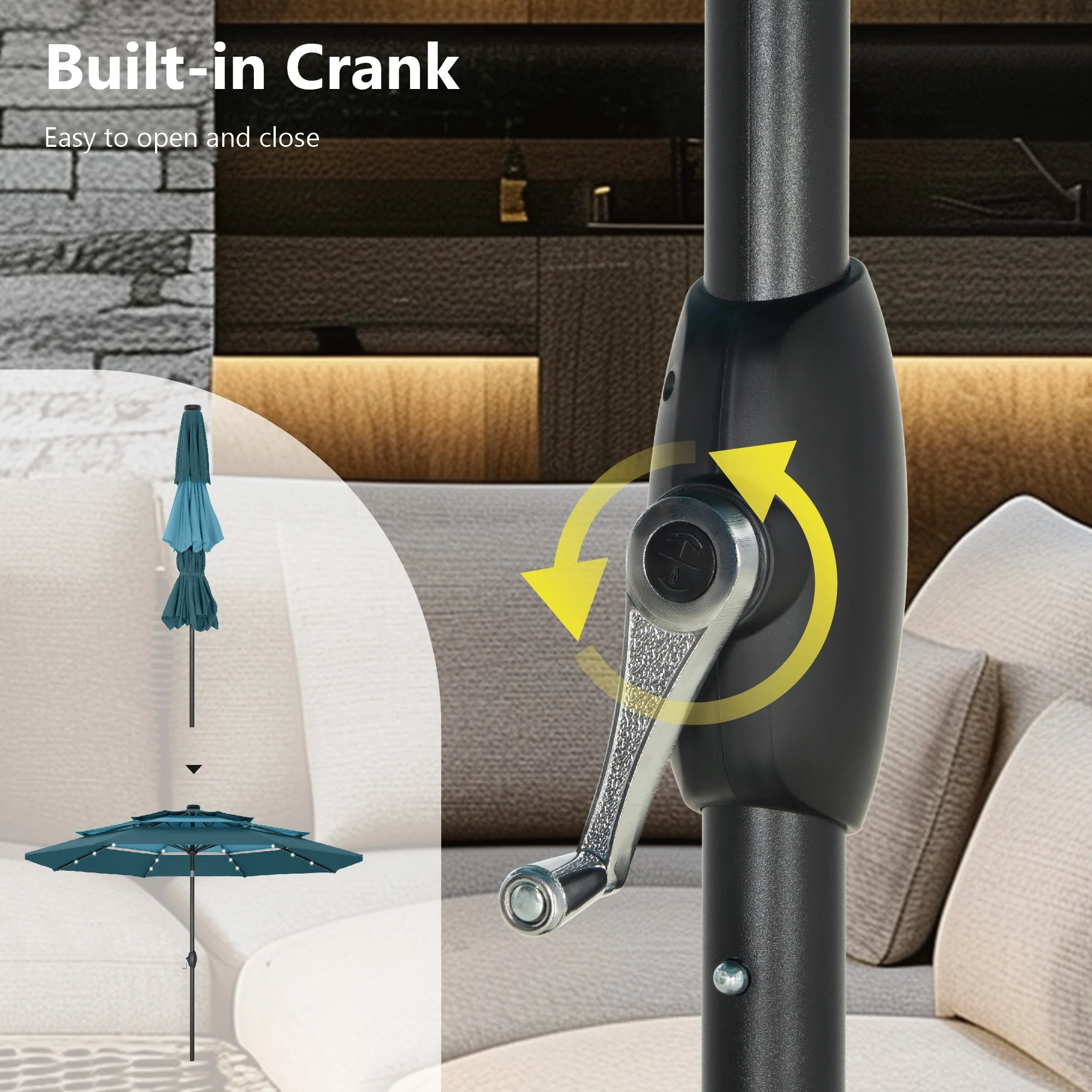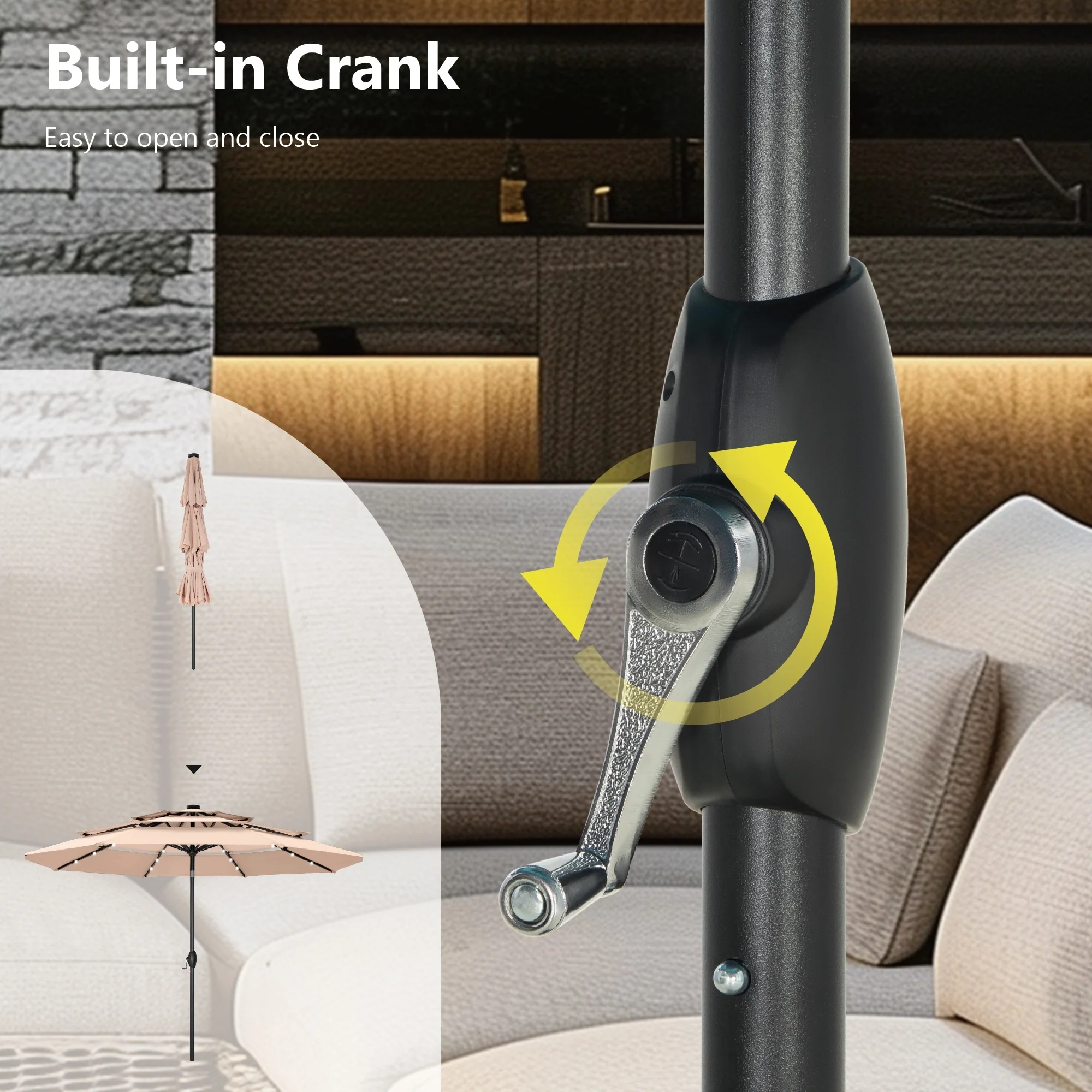 MAISON ARTS 10ft 3 Tier Auto-tilt Patio Umbrella Outdoor Double Vented Umbrella with LED Lights