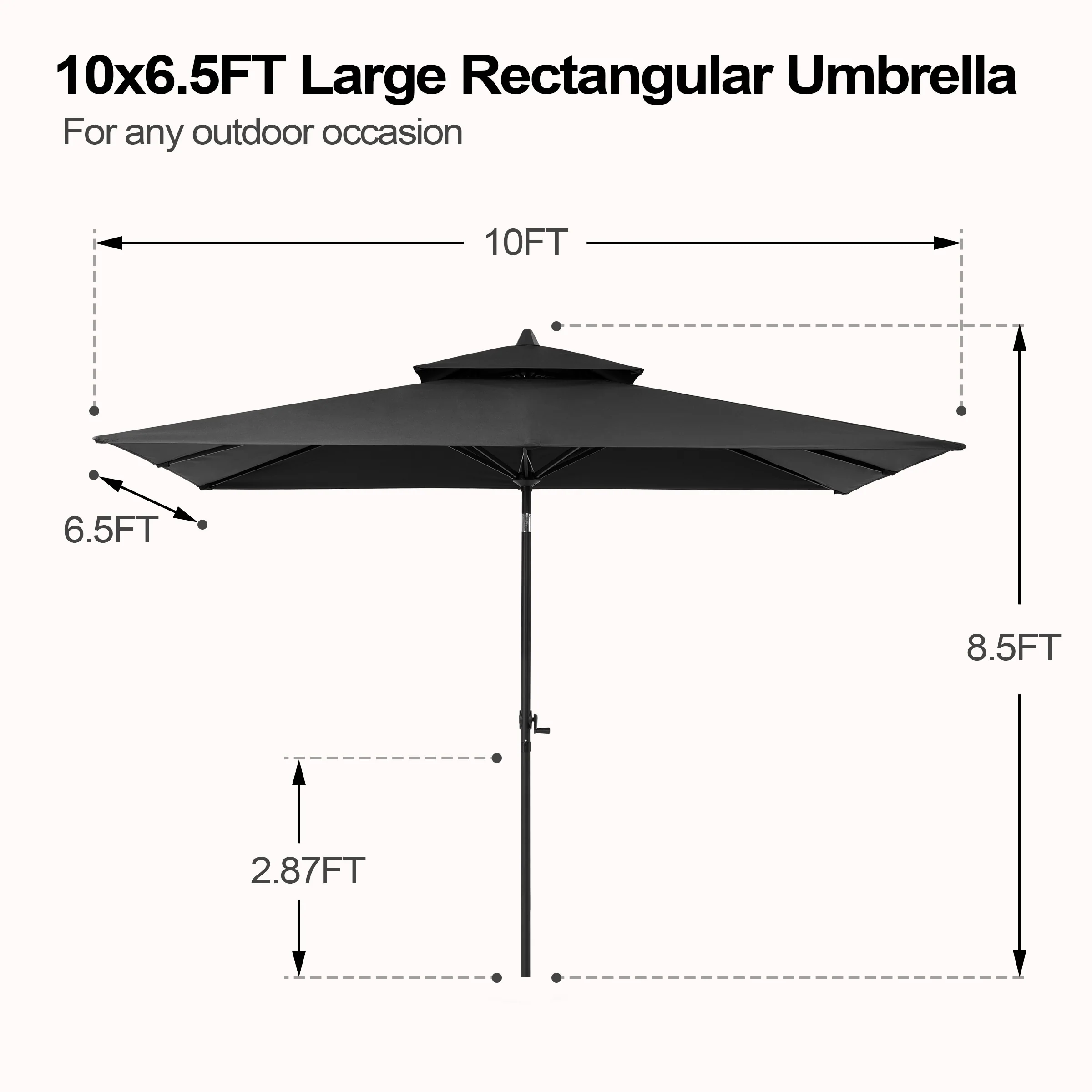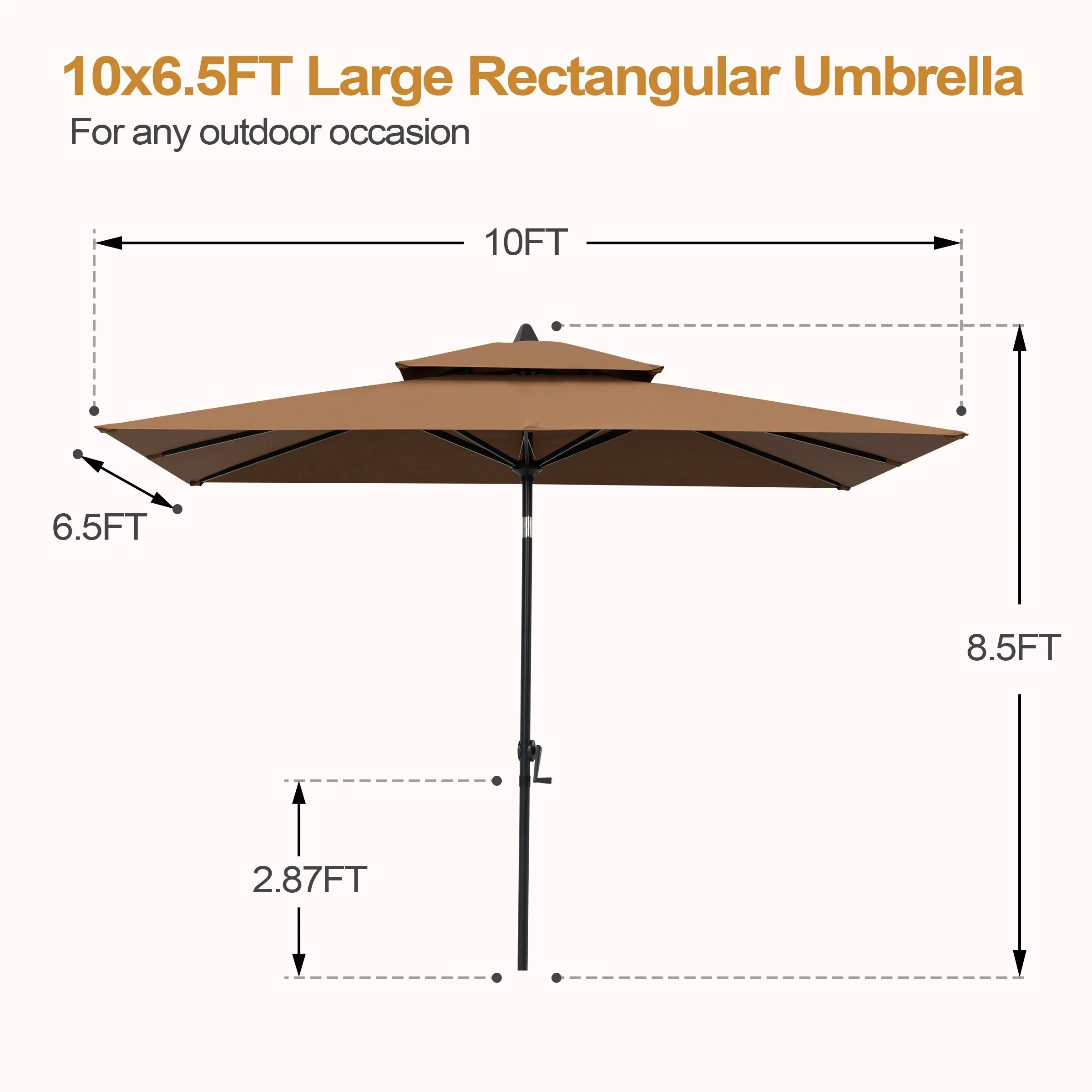 VredHom 10 x 6.5 Ft Double Top Market Patio Umbrella with Tilt-and-Crank