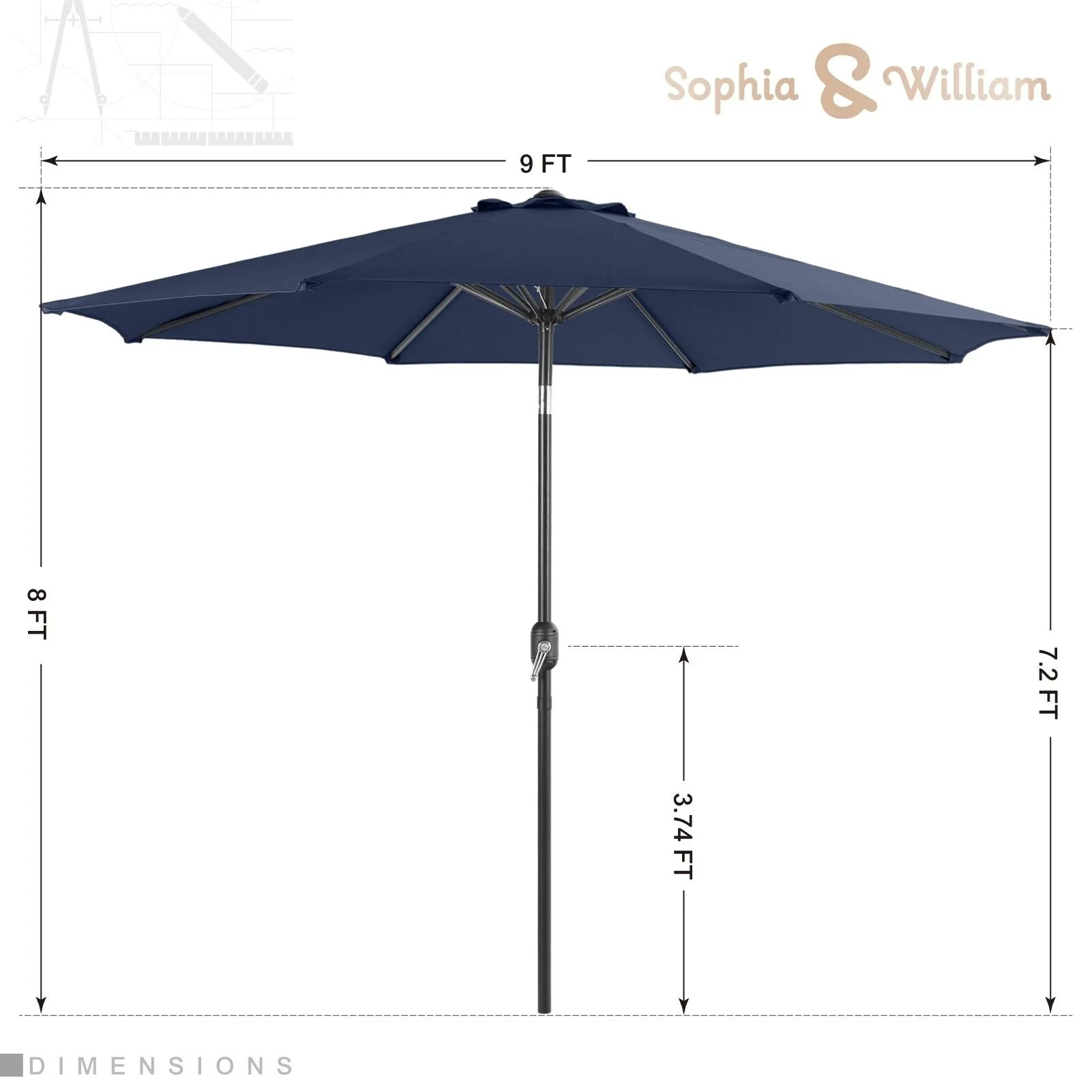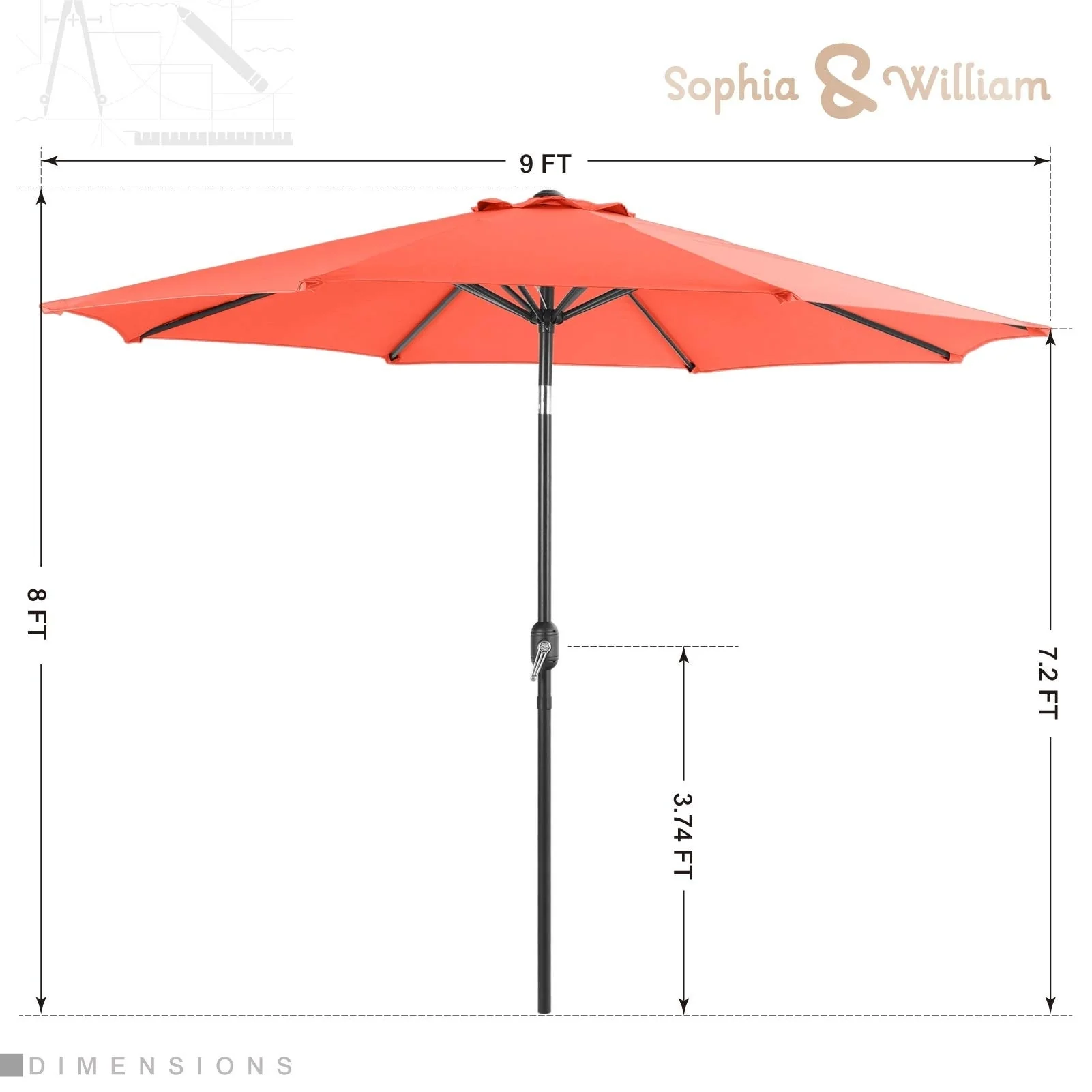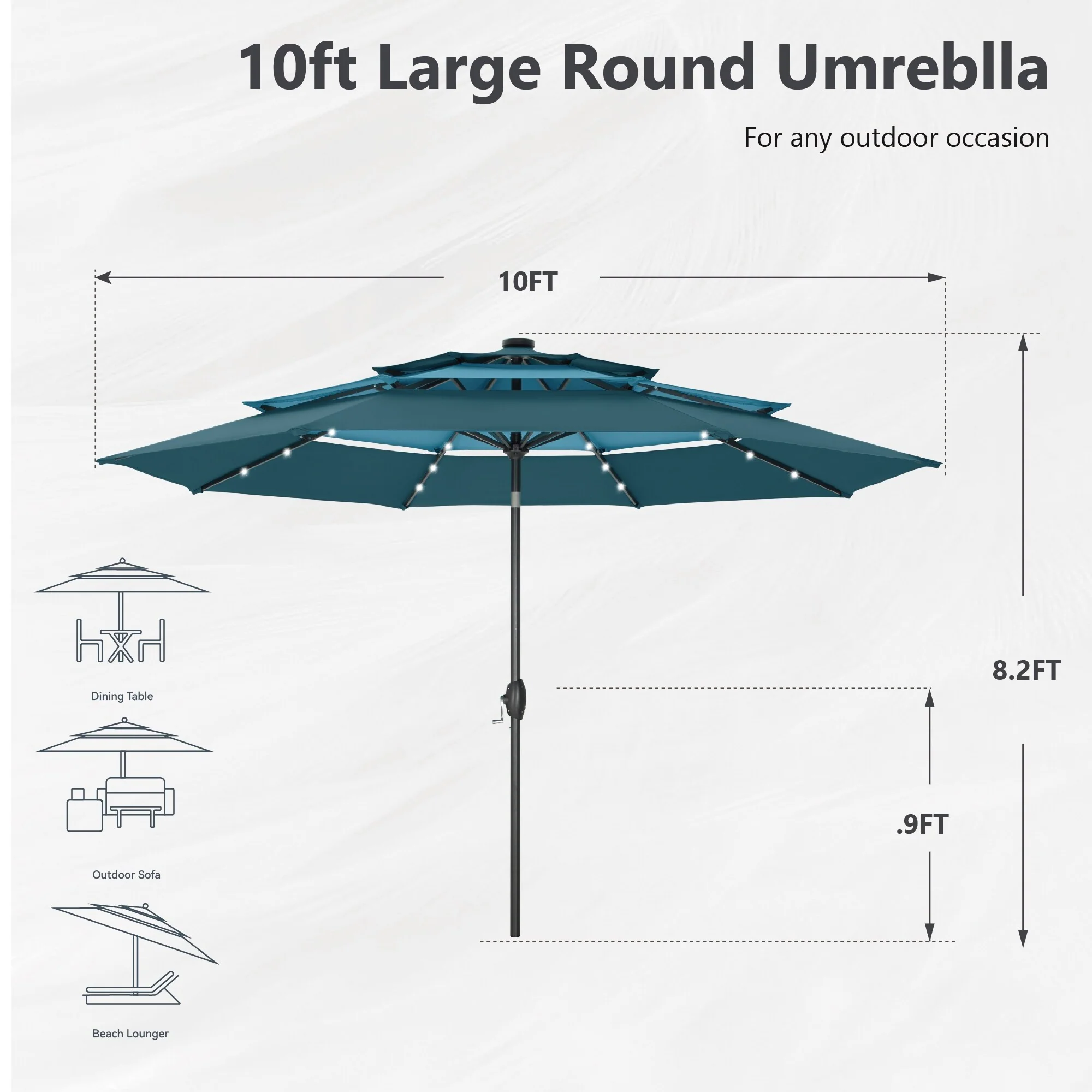 10ft Patio Market Umbrella with Crank & Tilt,UV-Risistant