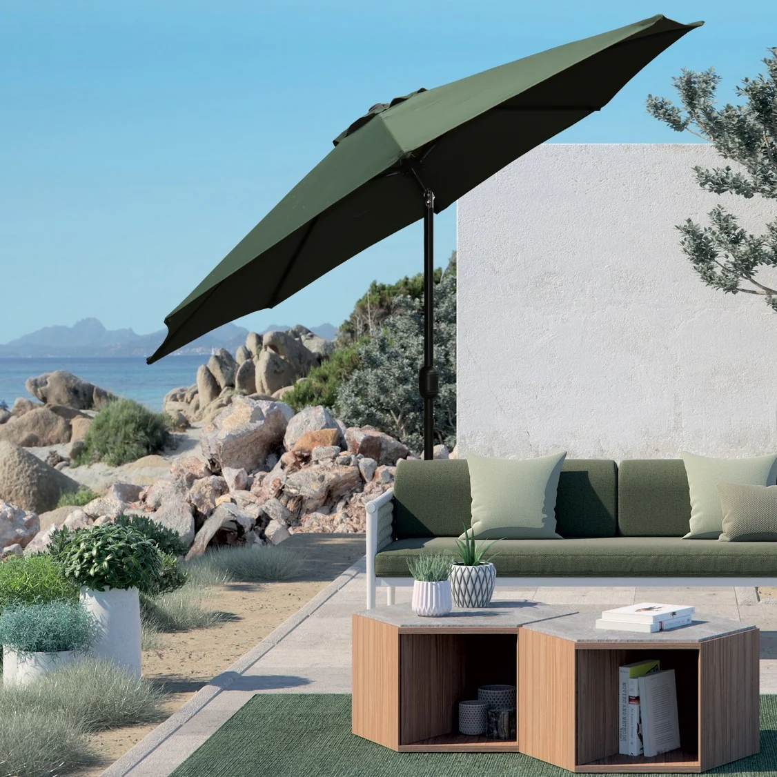 SimplyShade Catalina Rectangle Black Push Button Tilt Umbrella