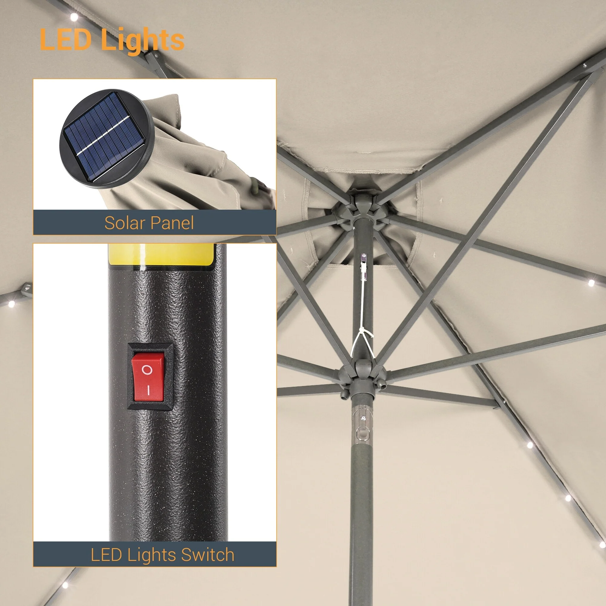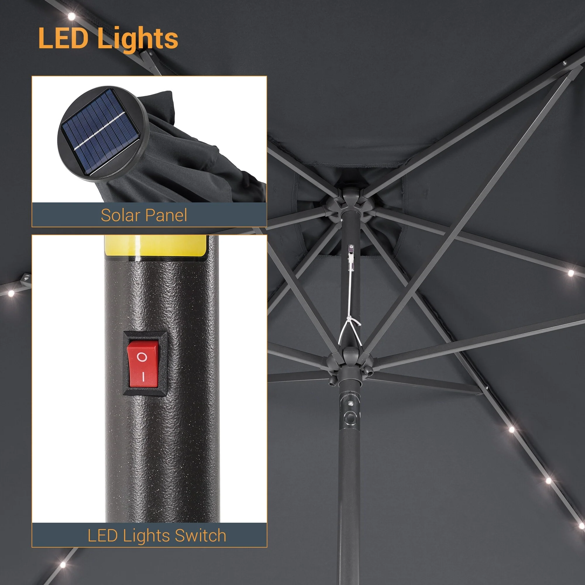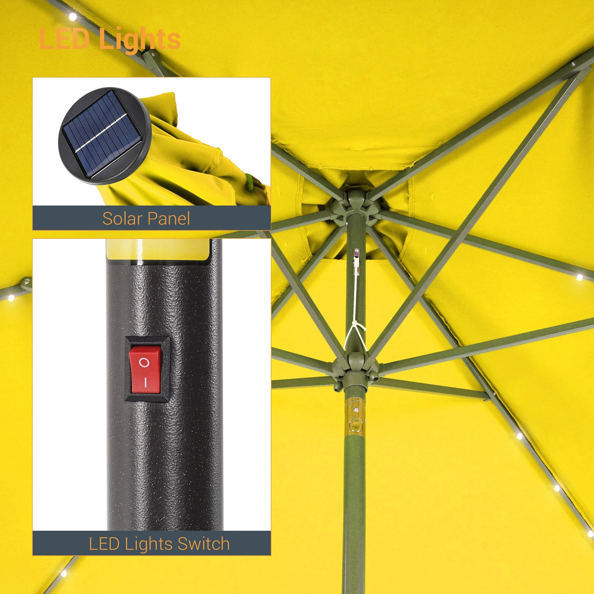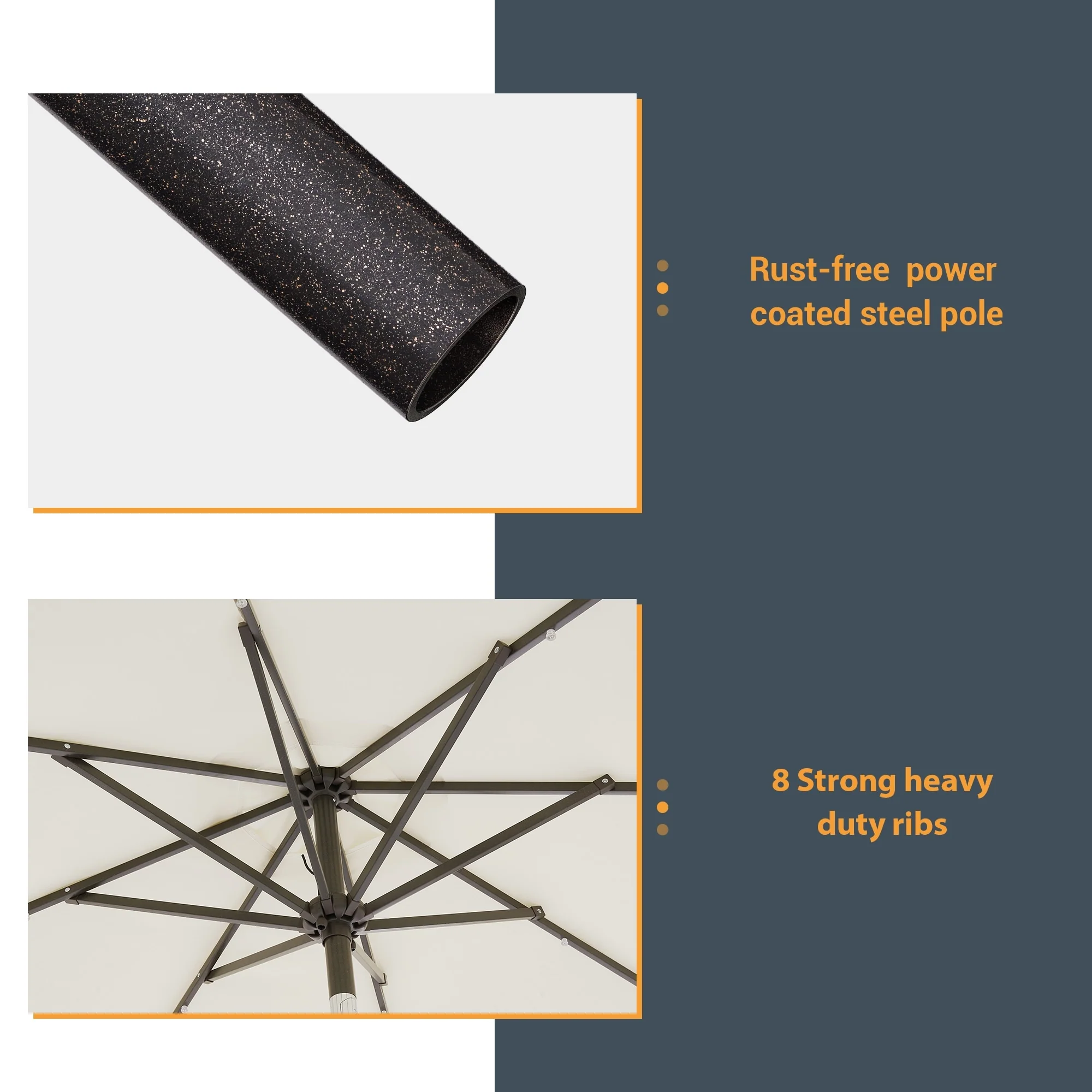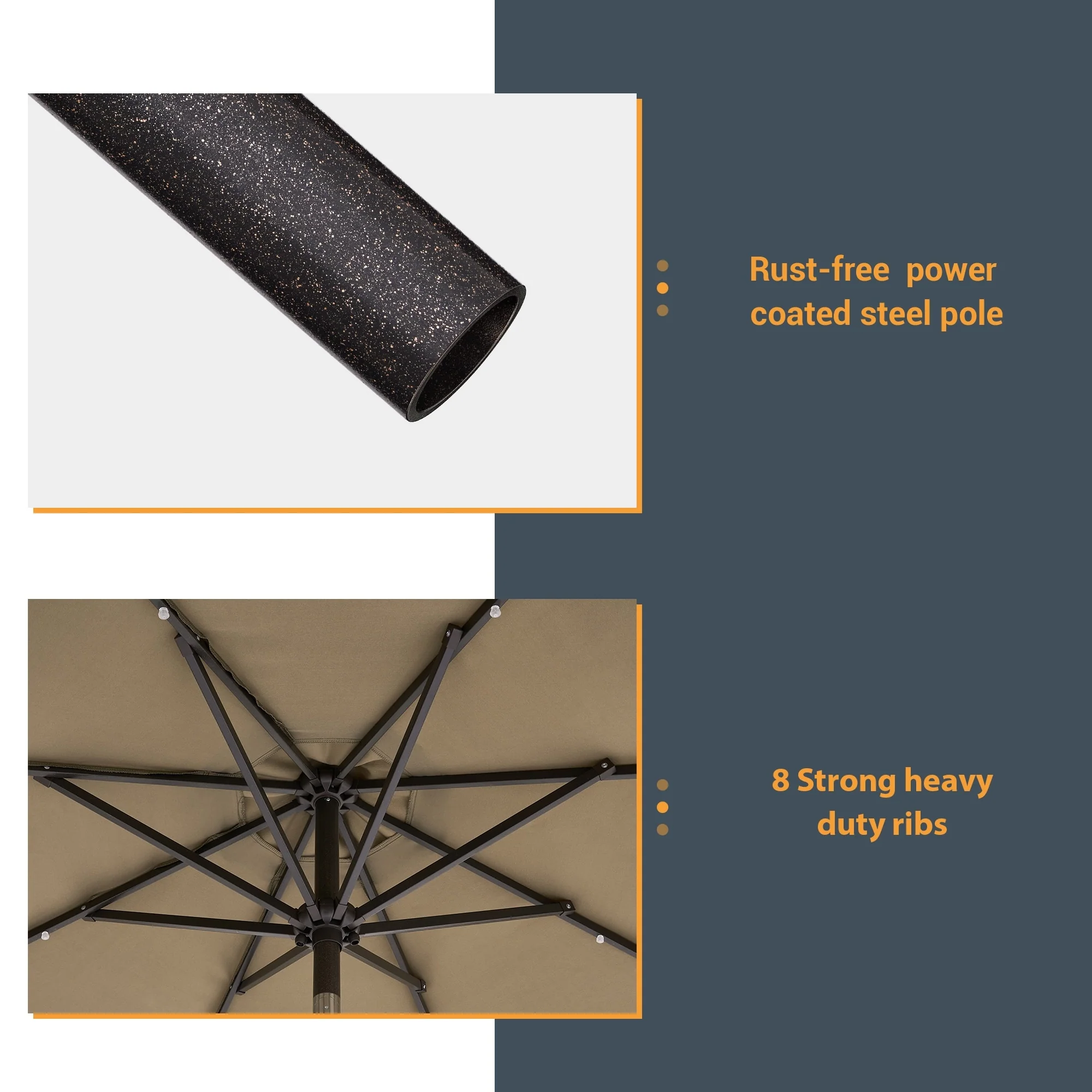 LIVOOSUN 9Ft Patio LED Market Umbrella Outdoor Table Steel Umbrella