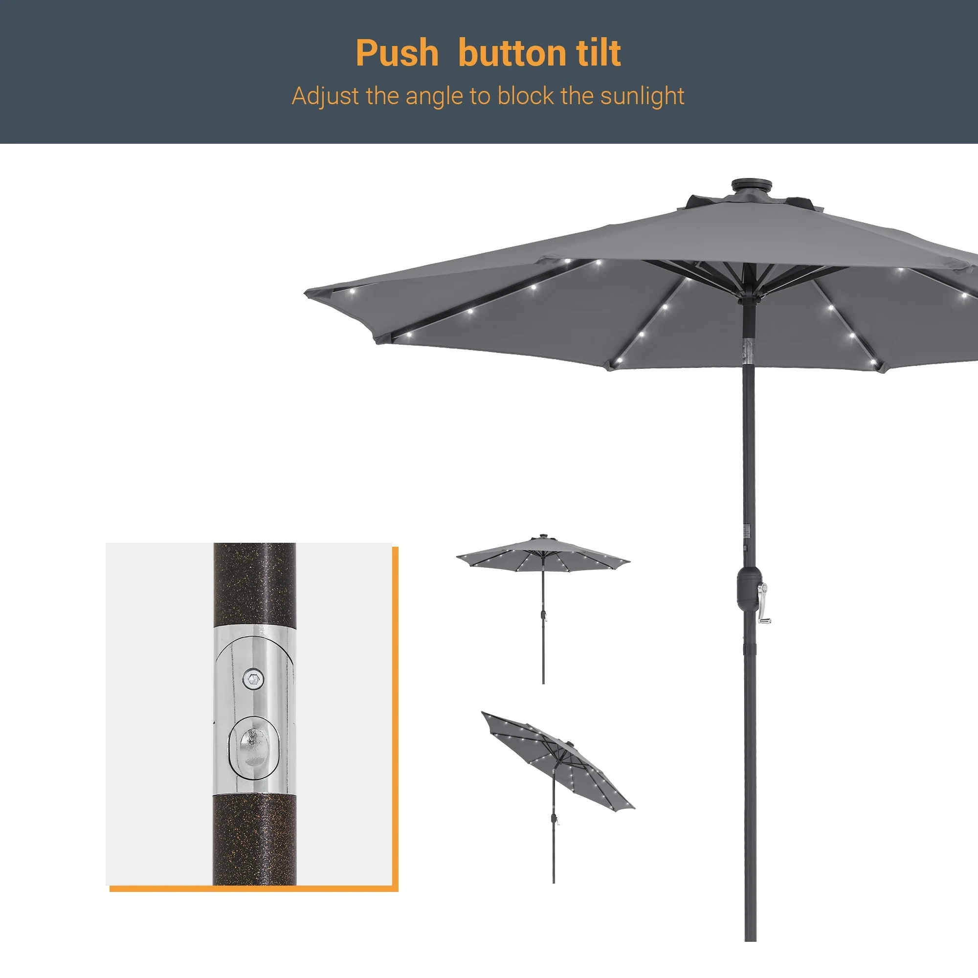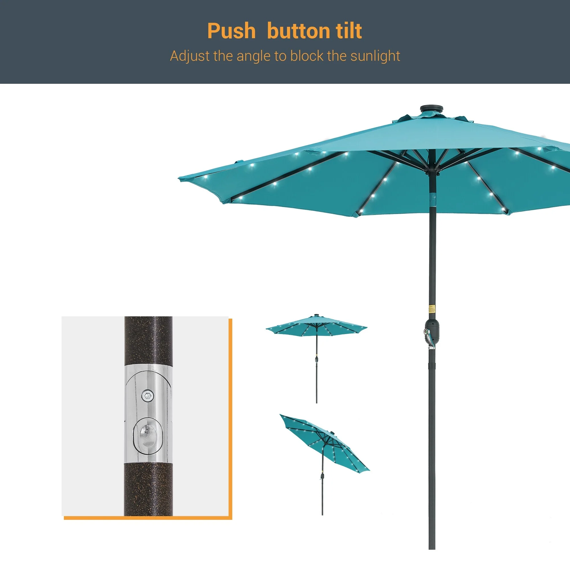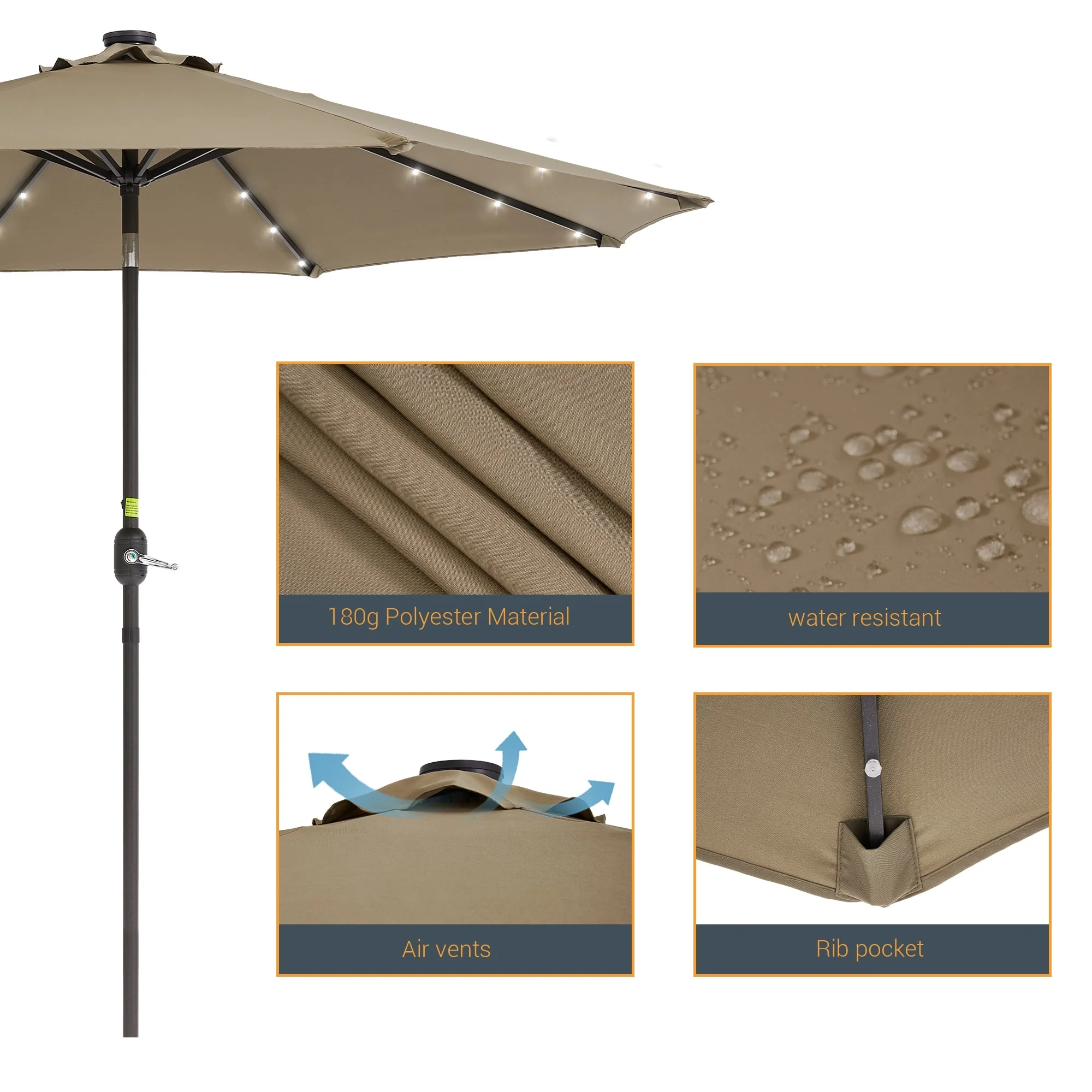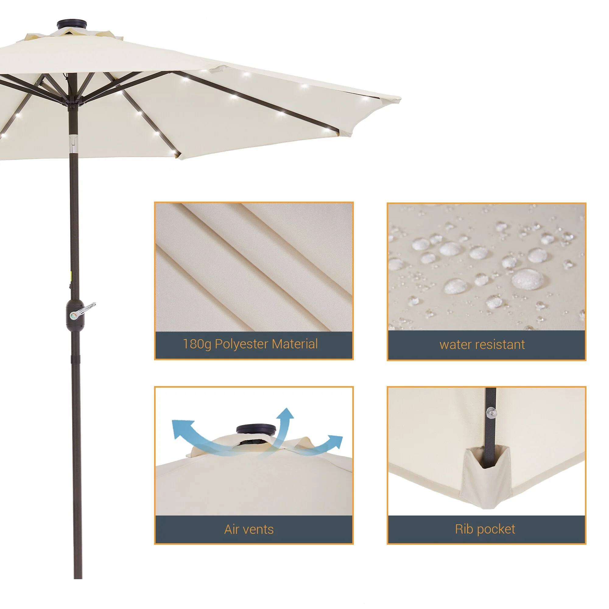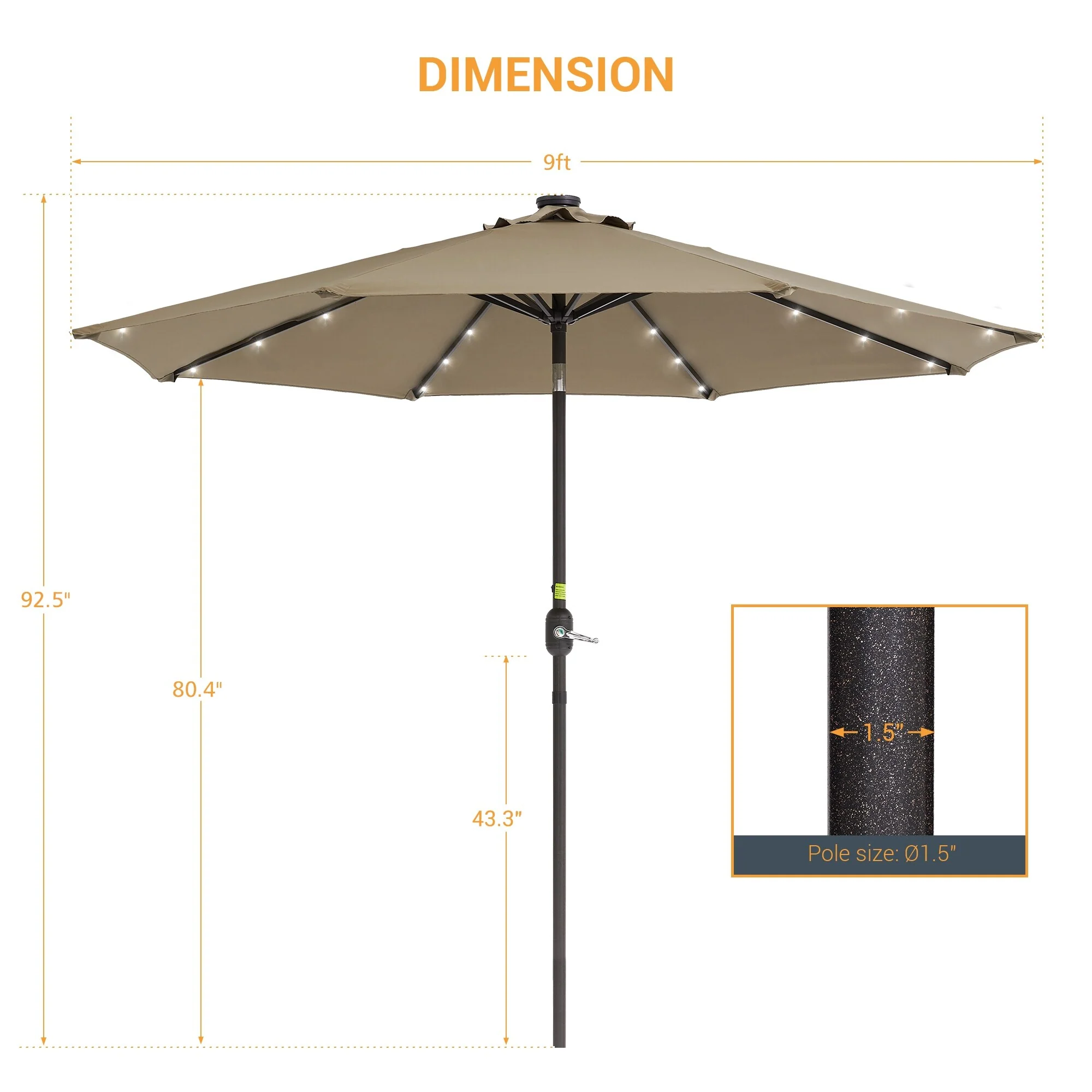 LIVOOSUN 9Ft Patio LED Market Umbrella Outdoor Table Steel Umbrella