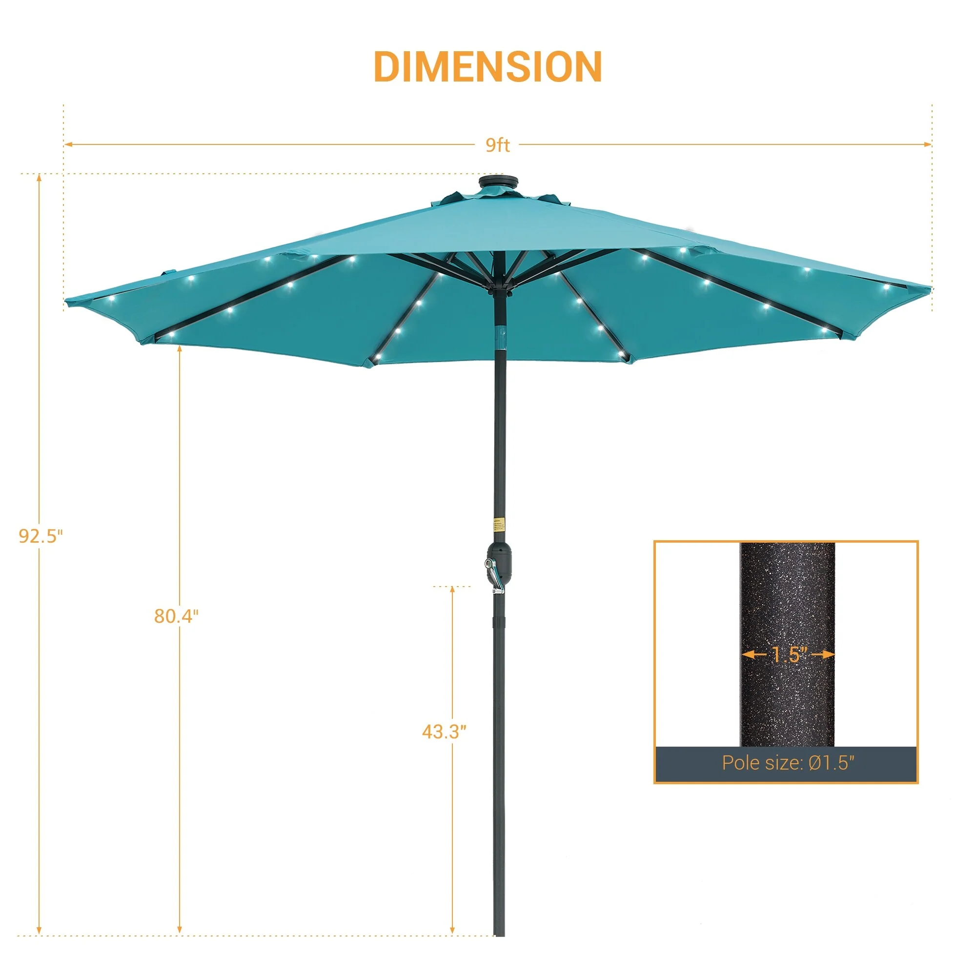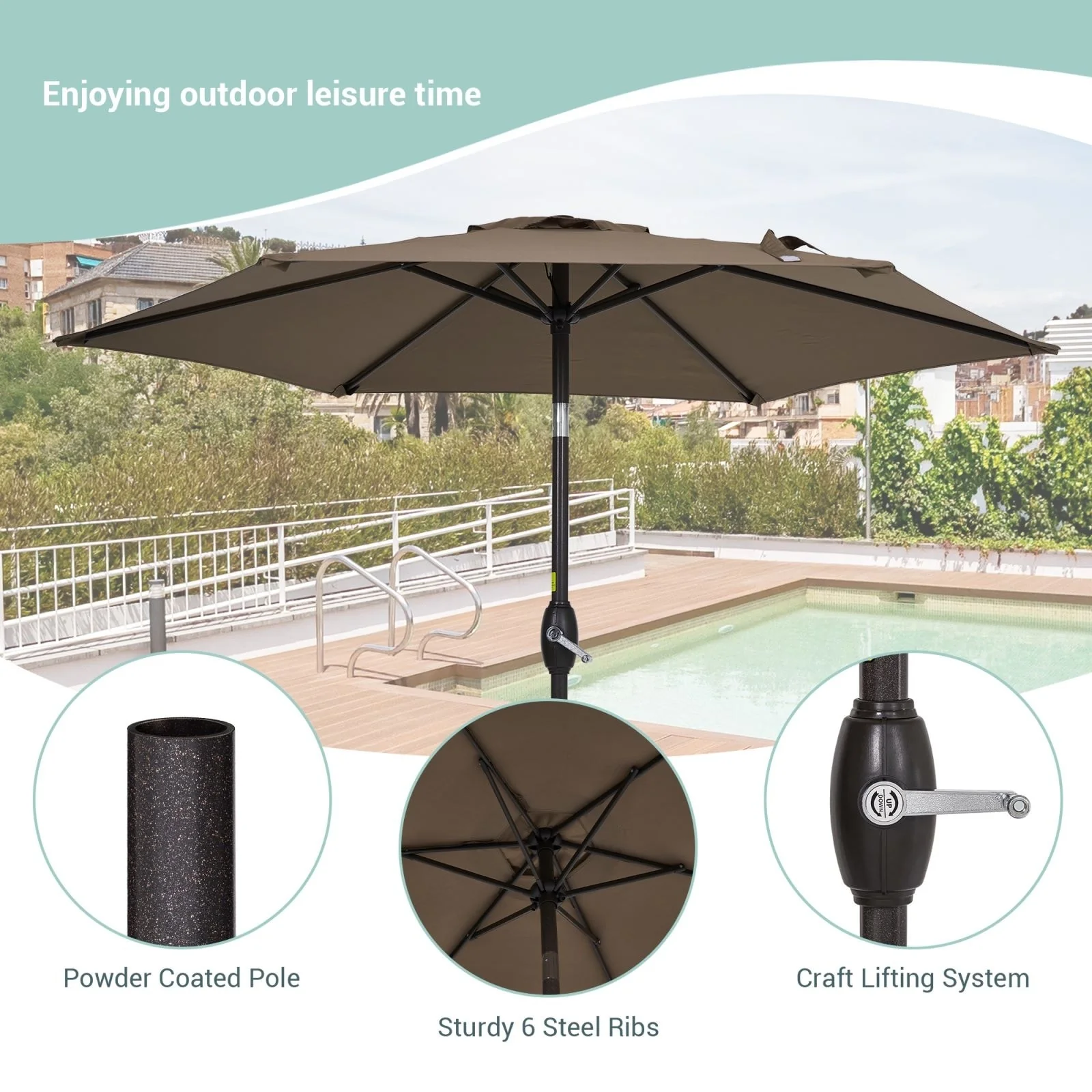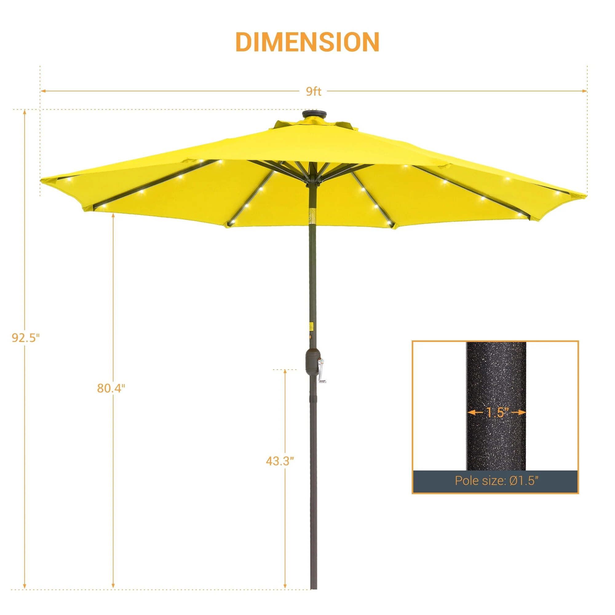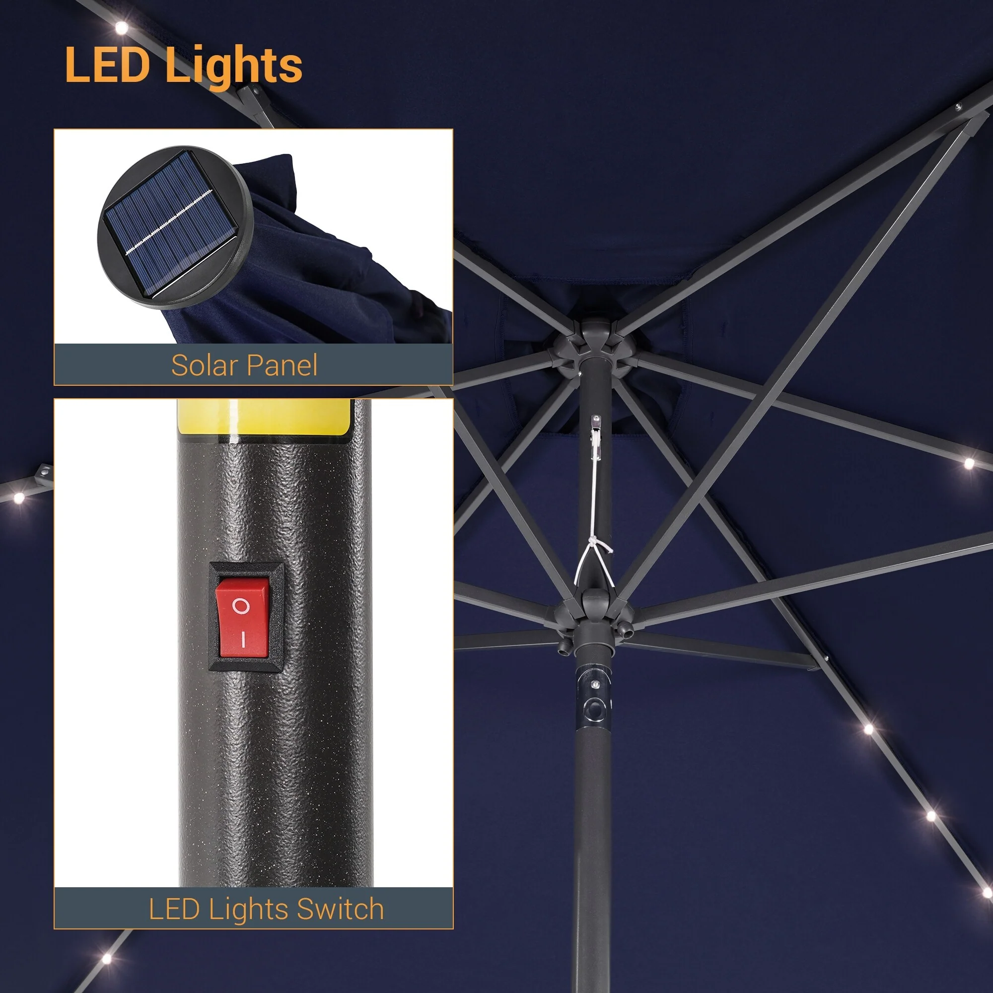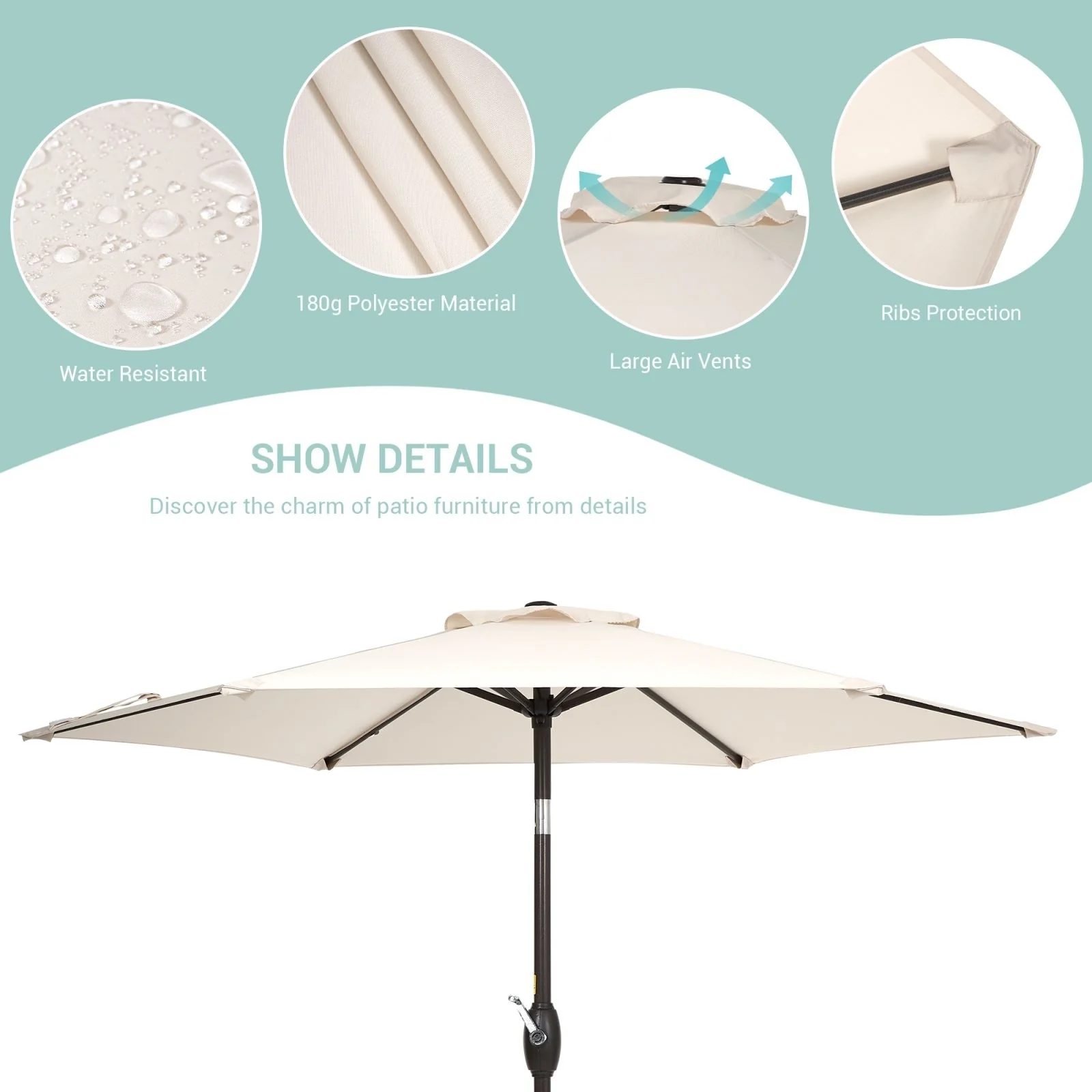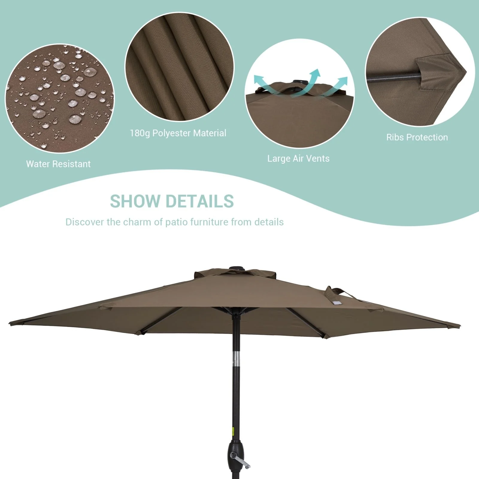 LIVOOSUN 9Ft Patio LED Market Umbrella Outdoor Table Steel Umbrella