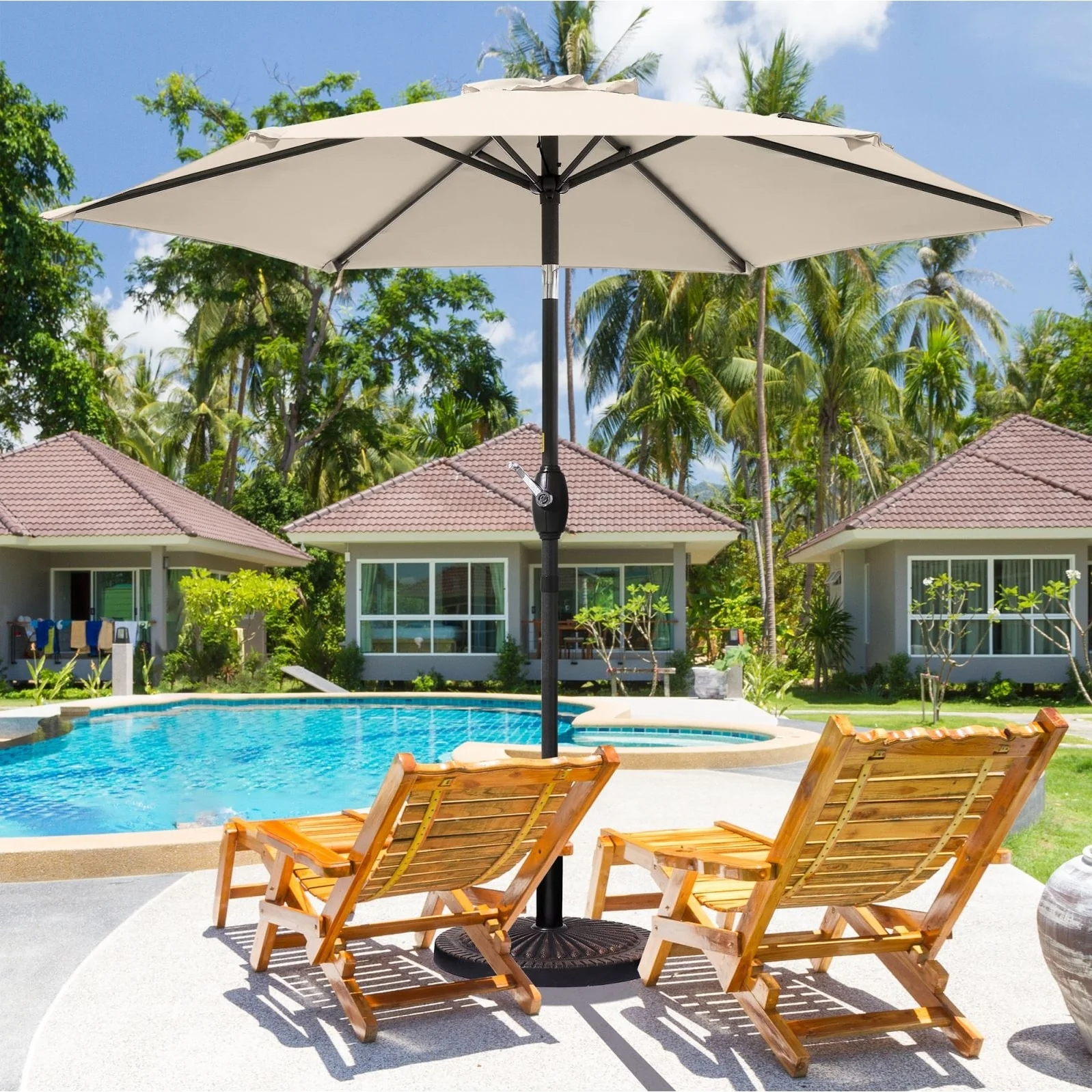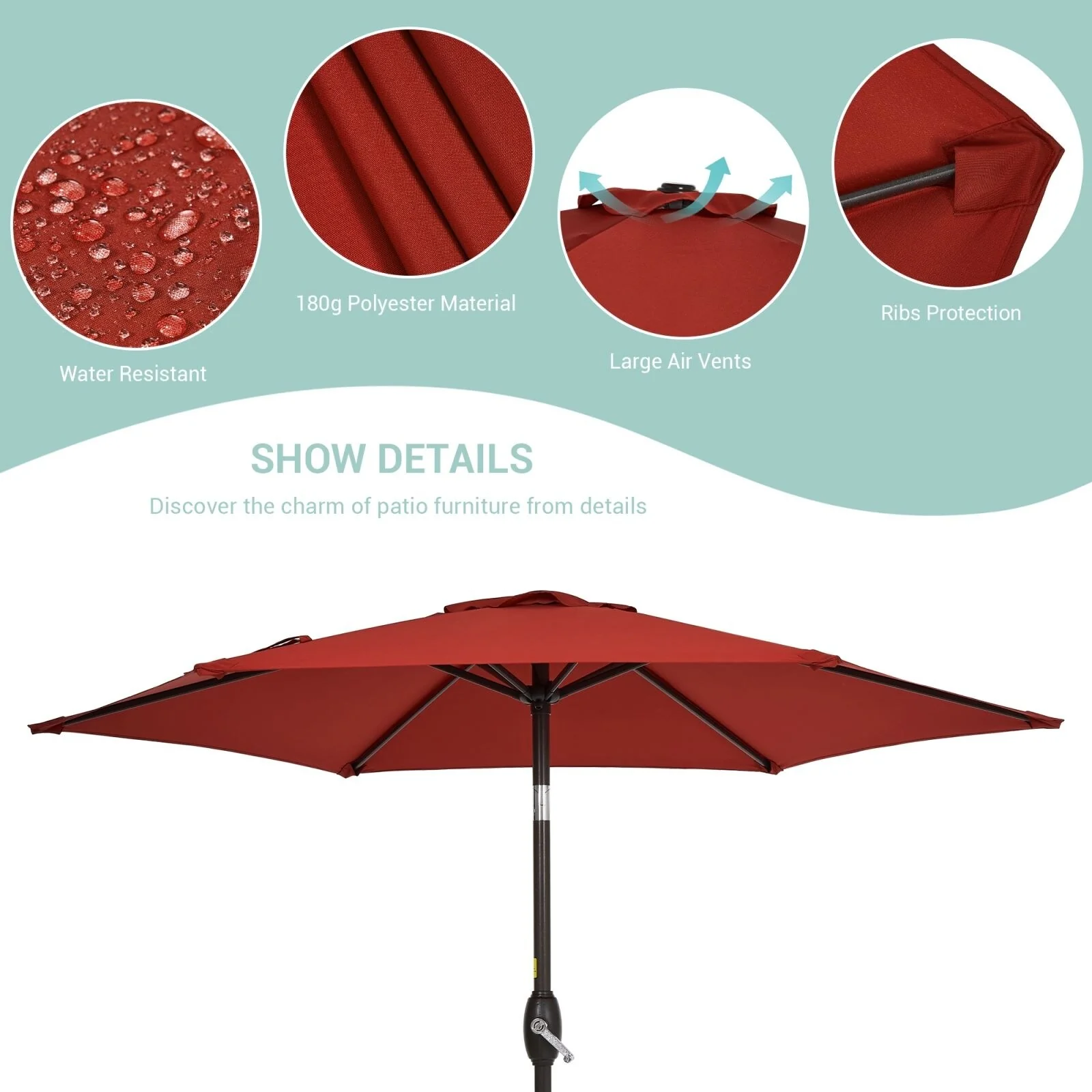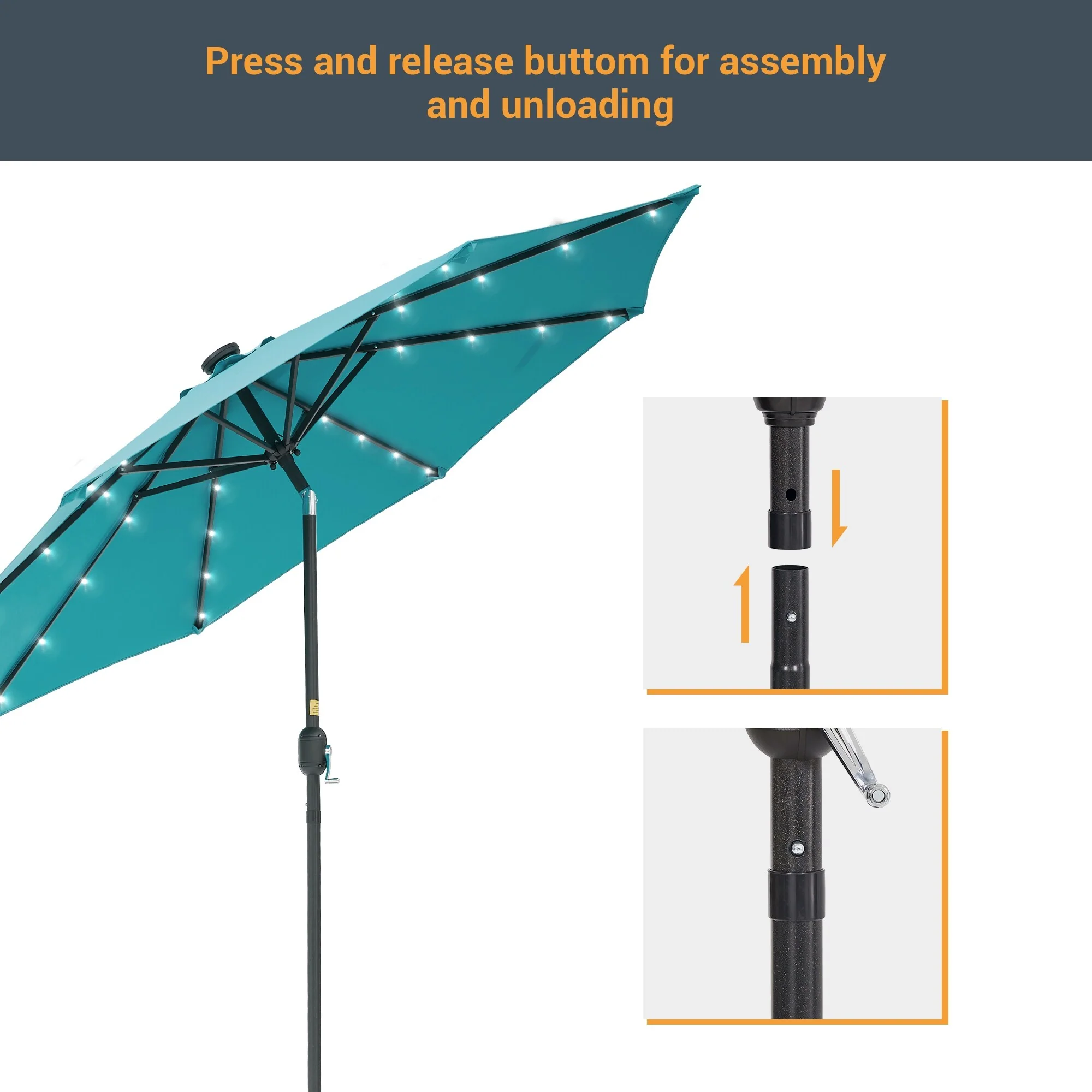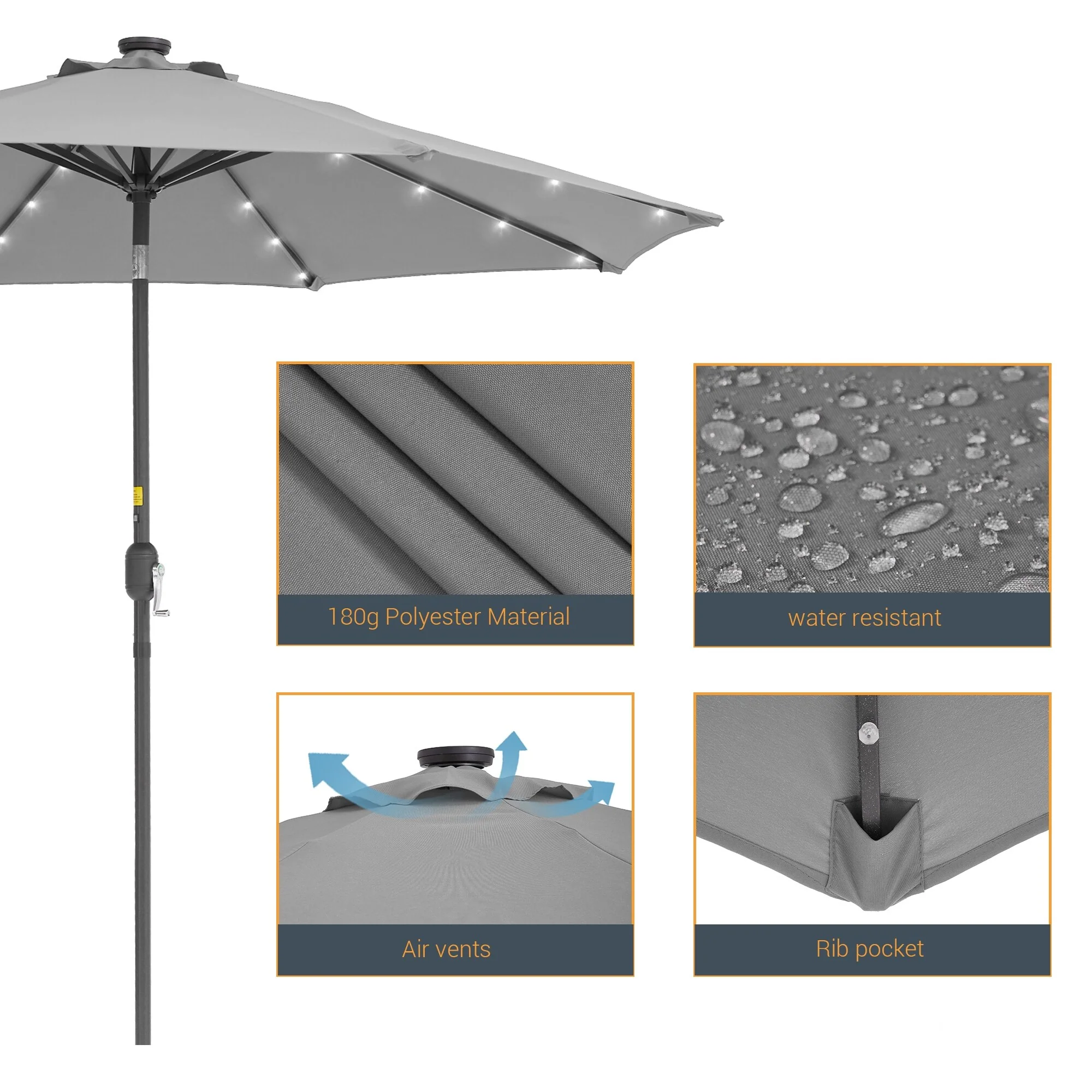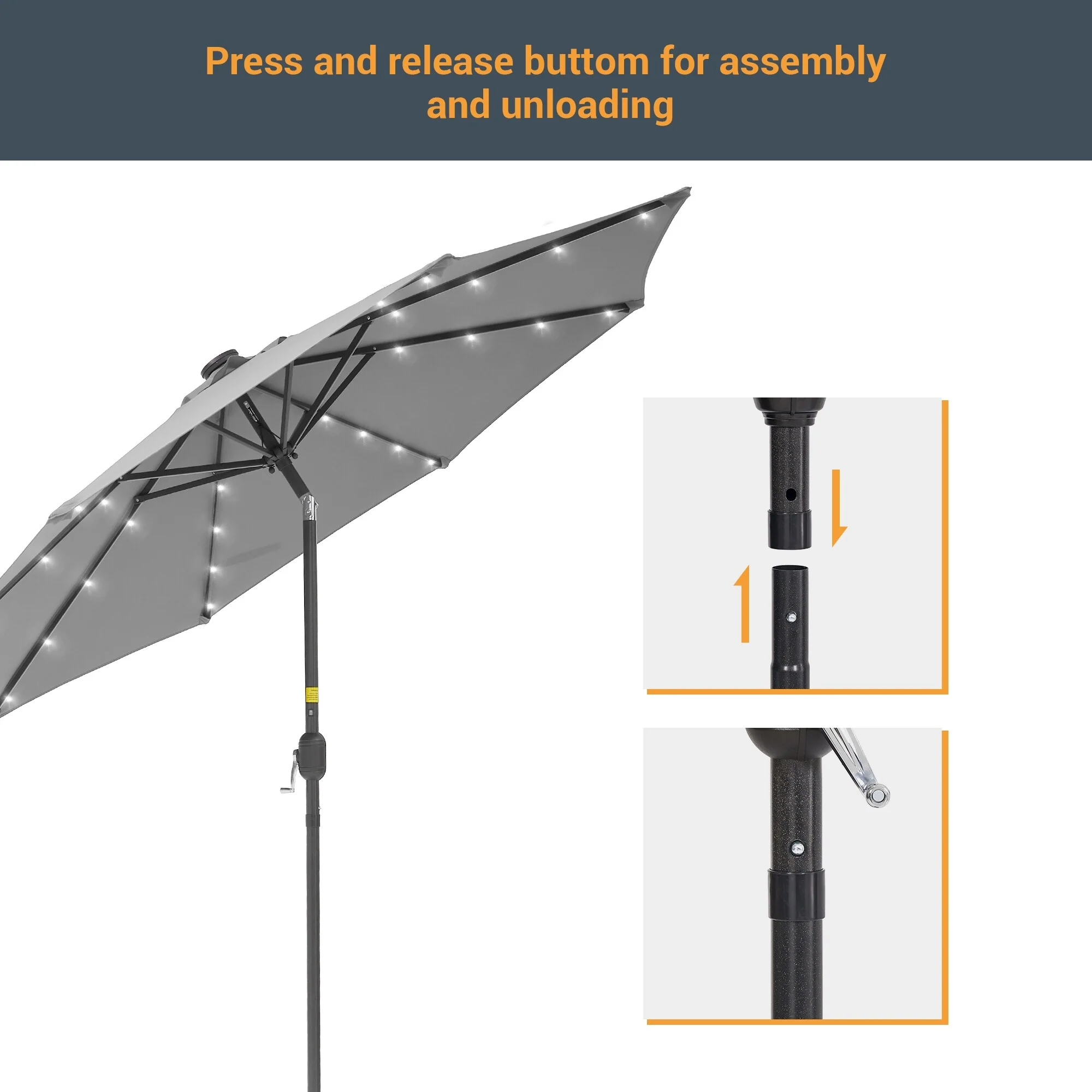 LIVOOSUN 9Ft Patio LED Market Umbrella Outdoor Table Steel Umbrella