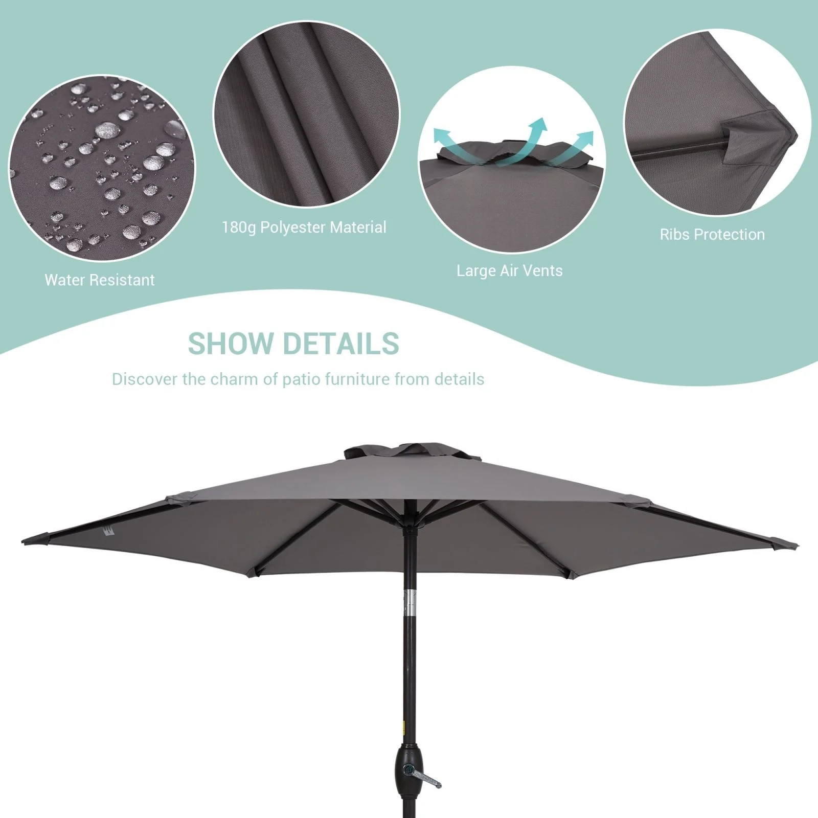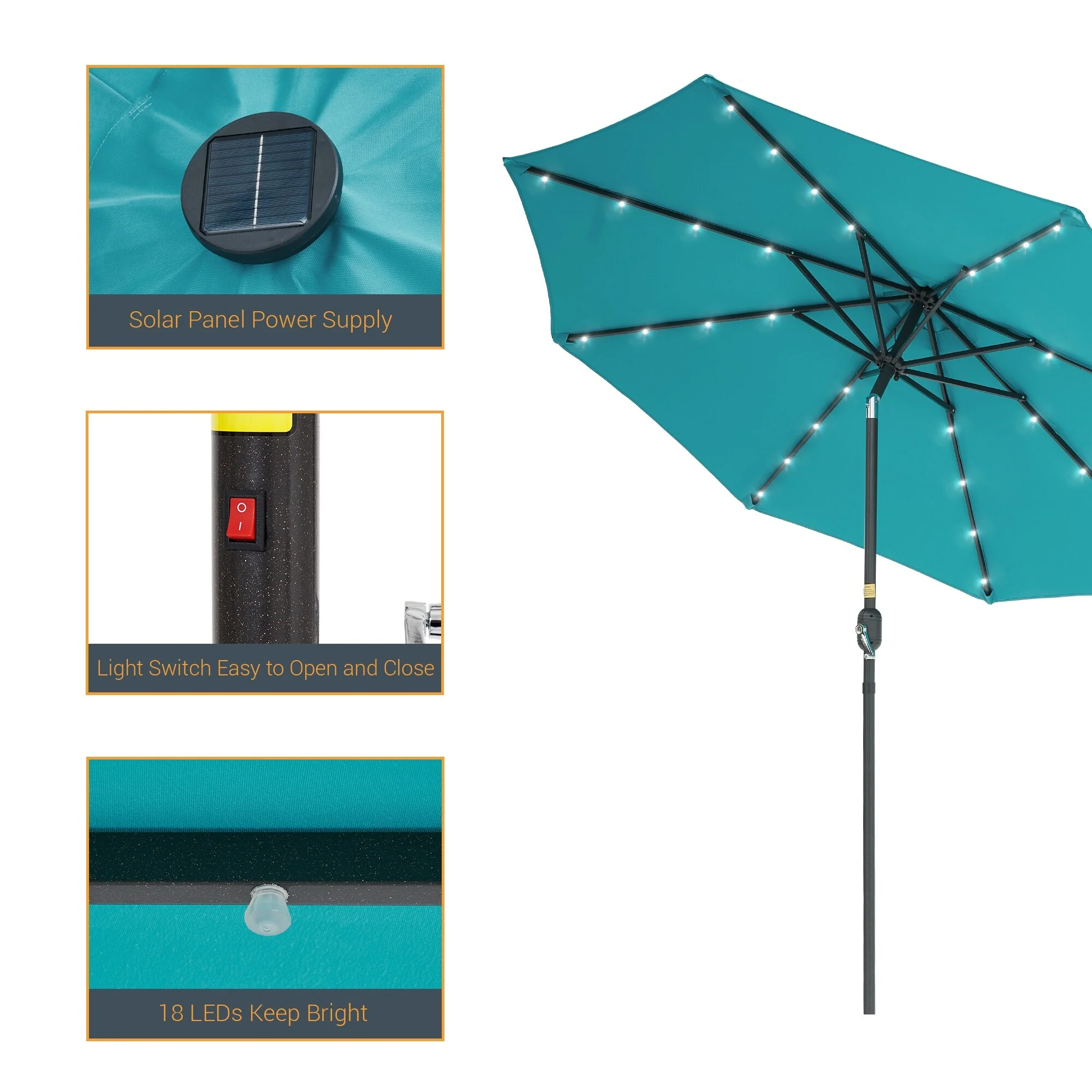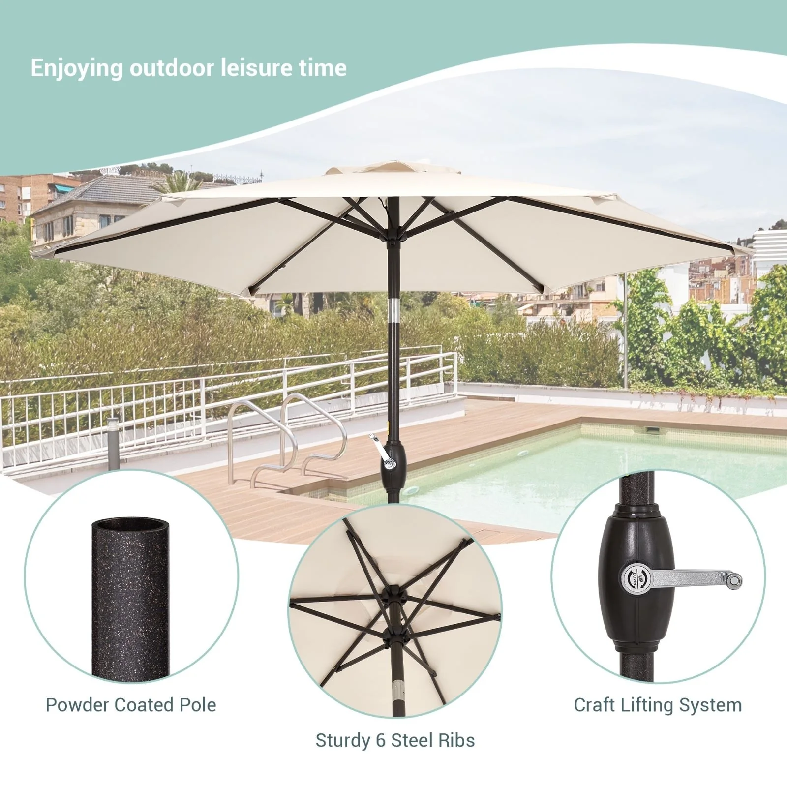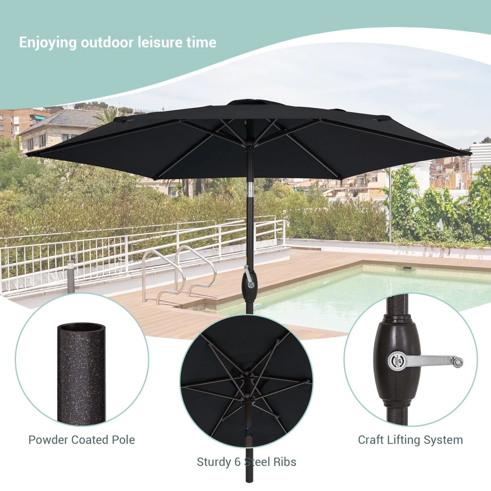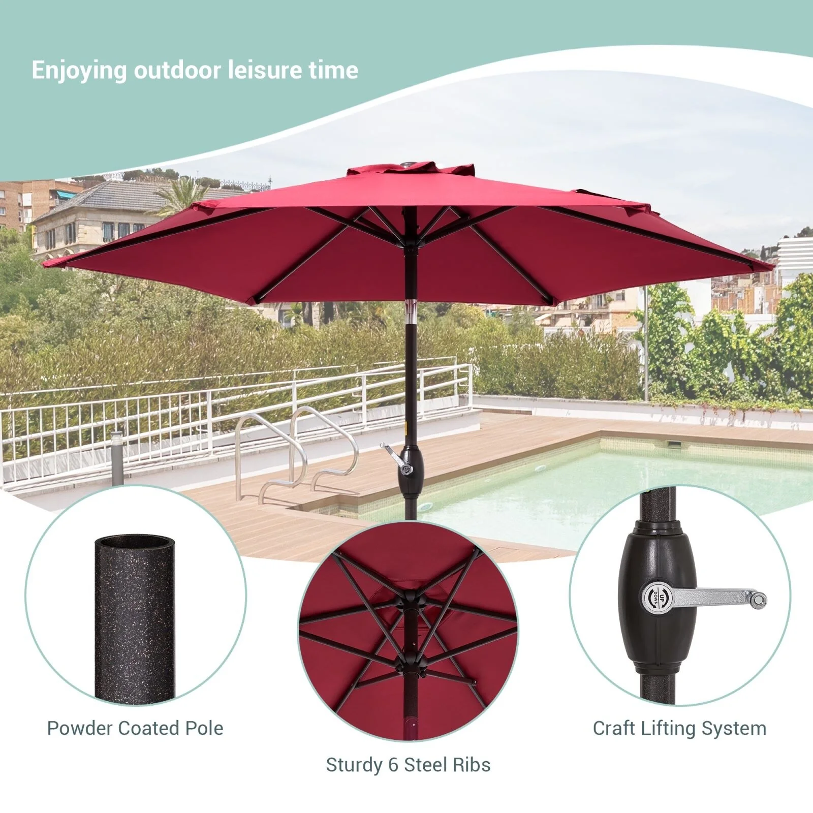 LIVOOSUN 9Ft Patio LED Market Umbrella Outdoor Table Steel Umbrella