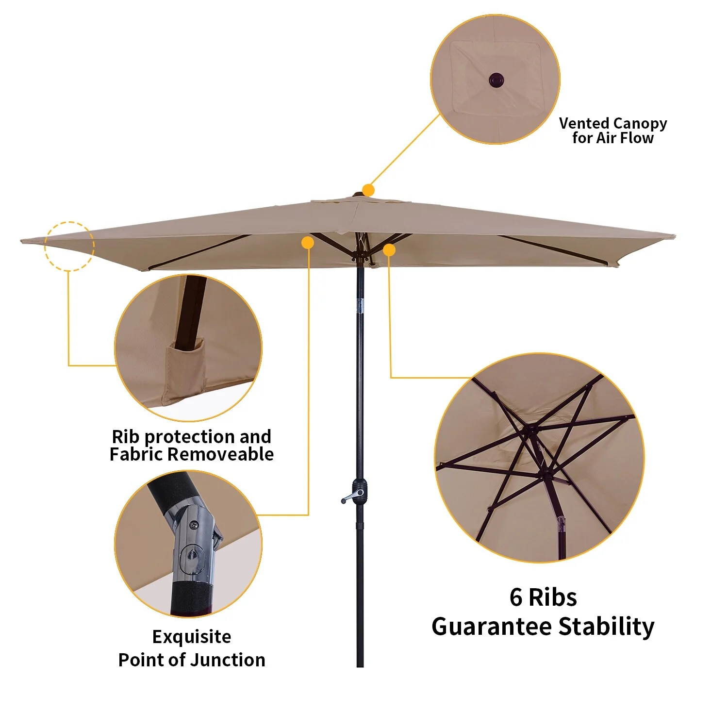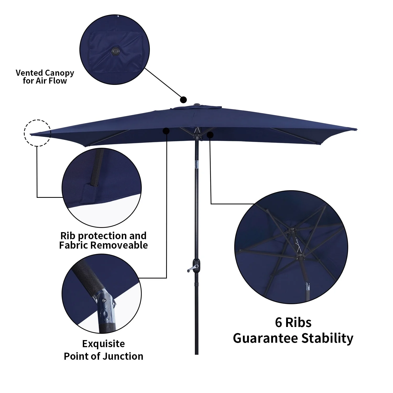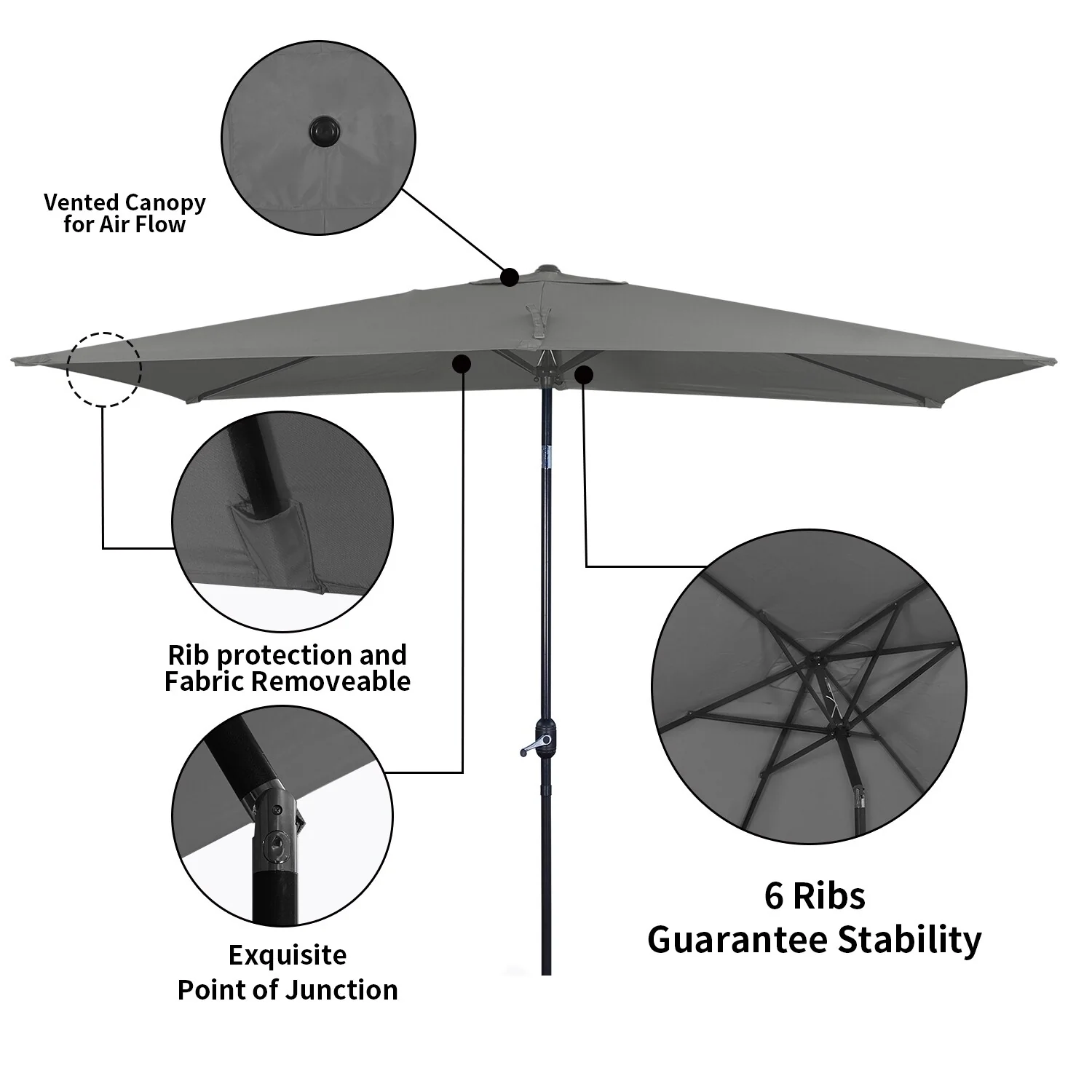 Rectangle Patio Outdoor Table Umbrella with Solution-Dyed Canopy
