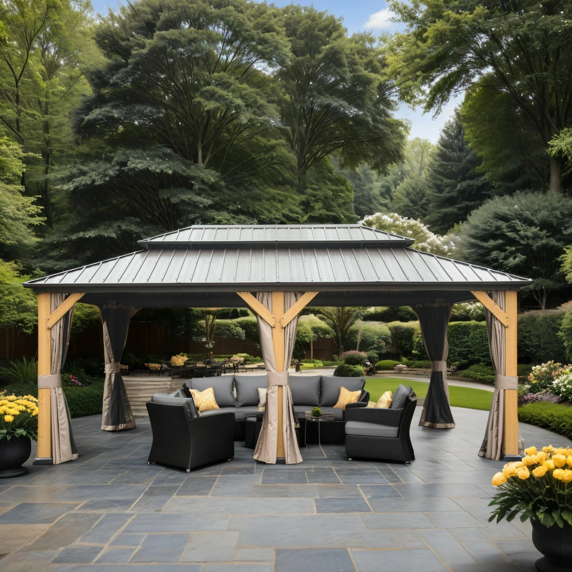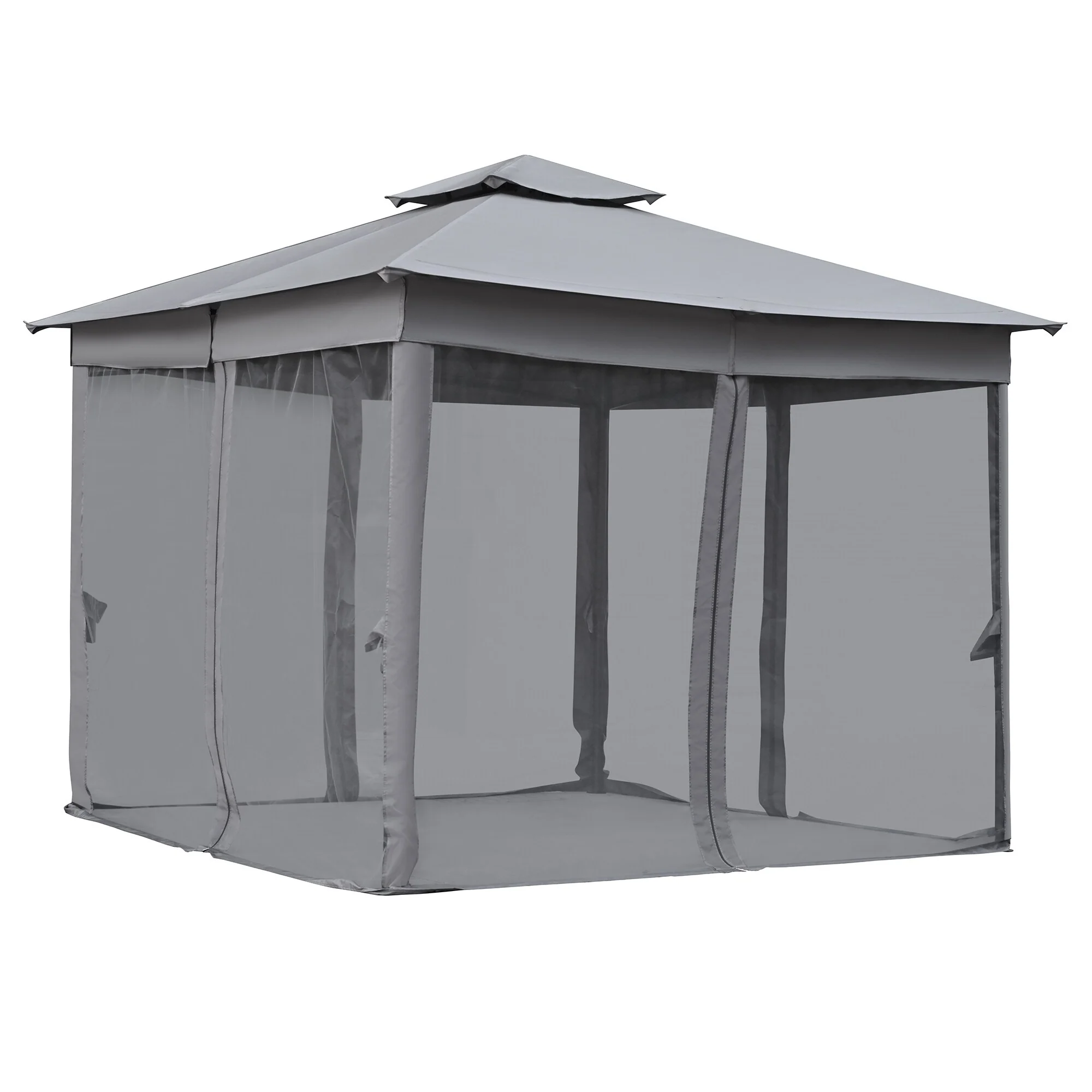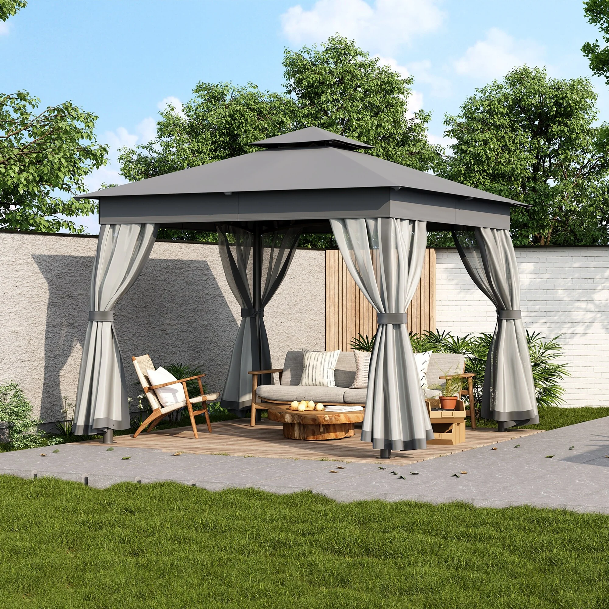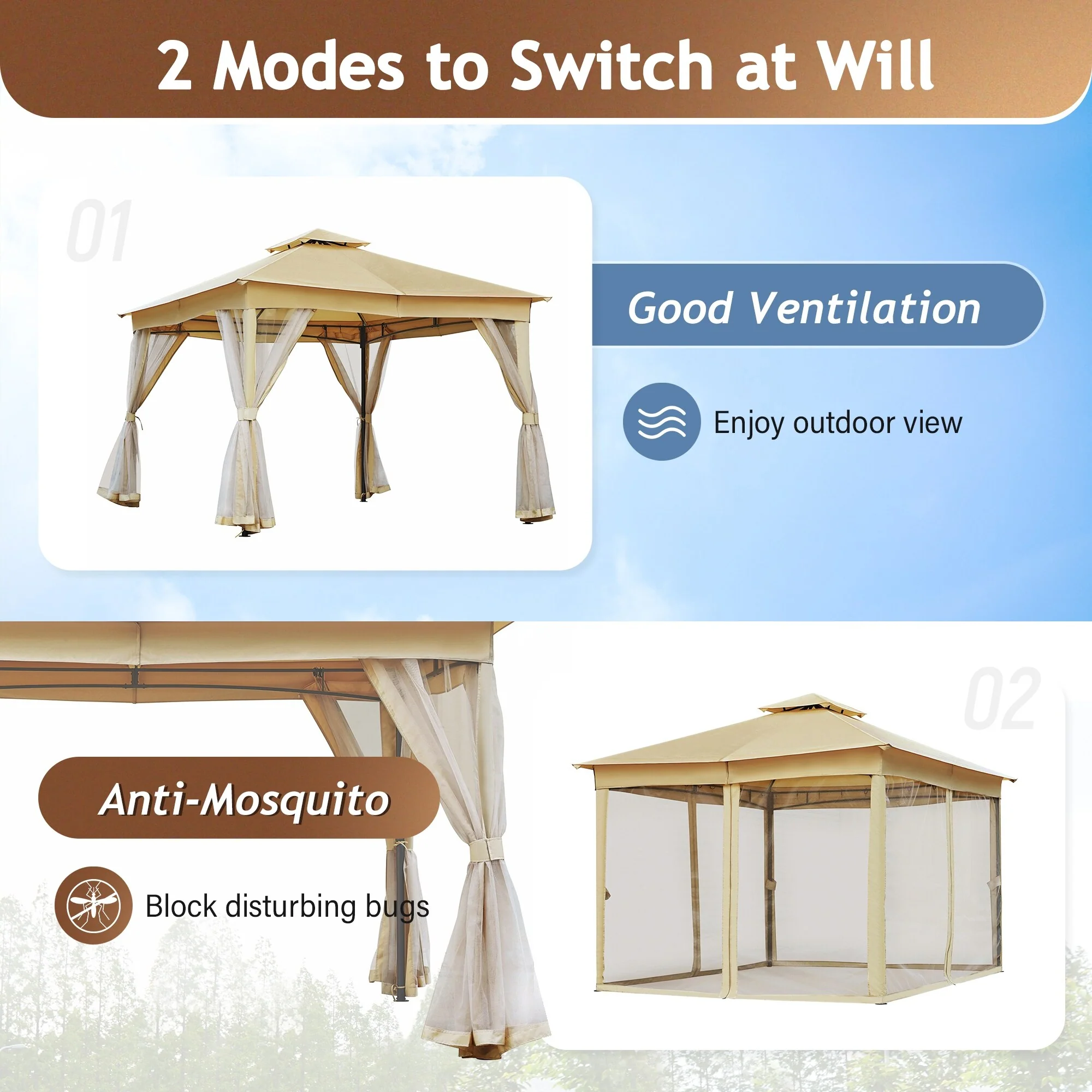10x10 Outdoor Gazebo Tent with Double Roofs, Patio Gazebo with Mosquito Netting