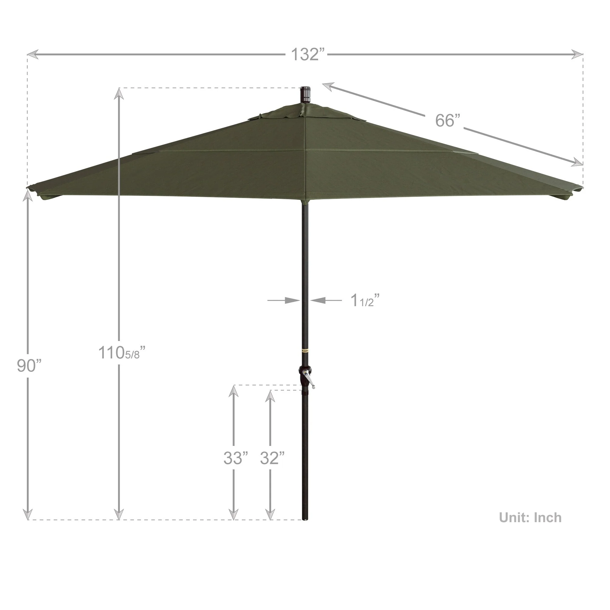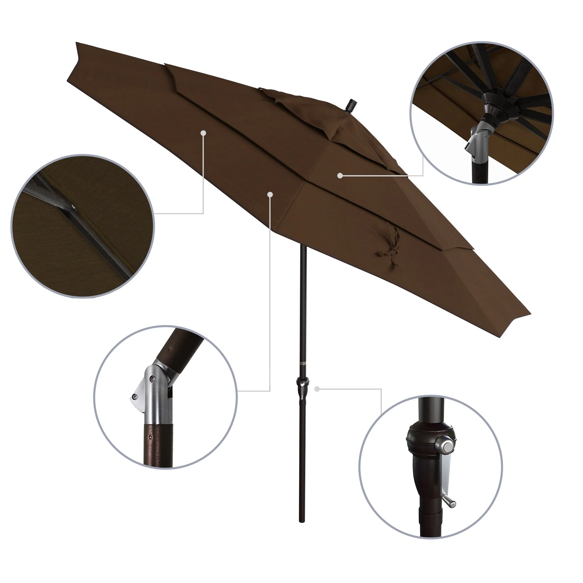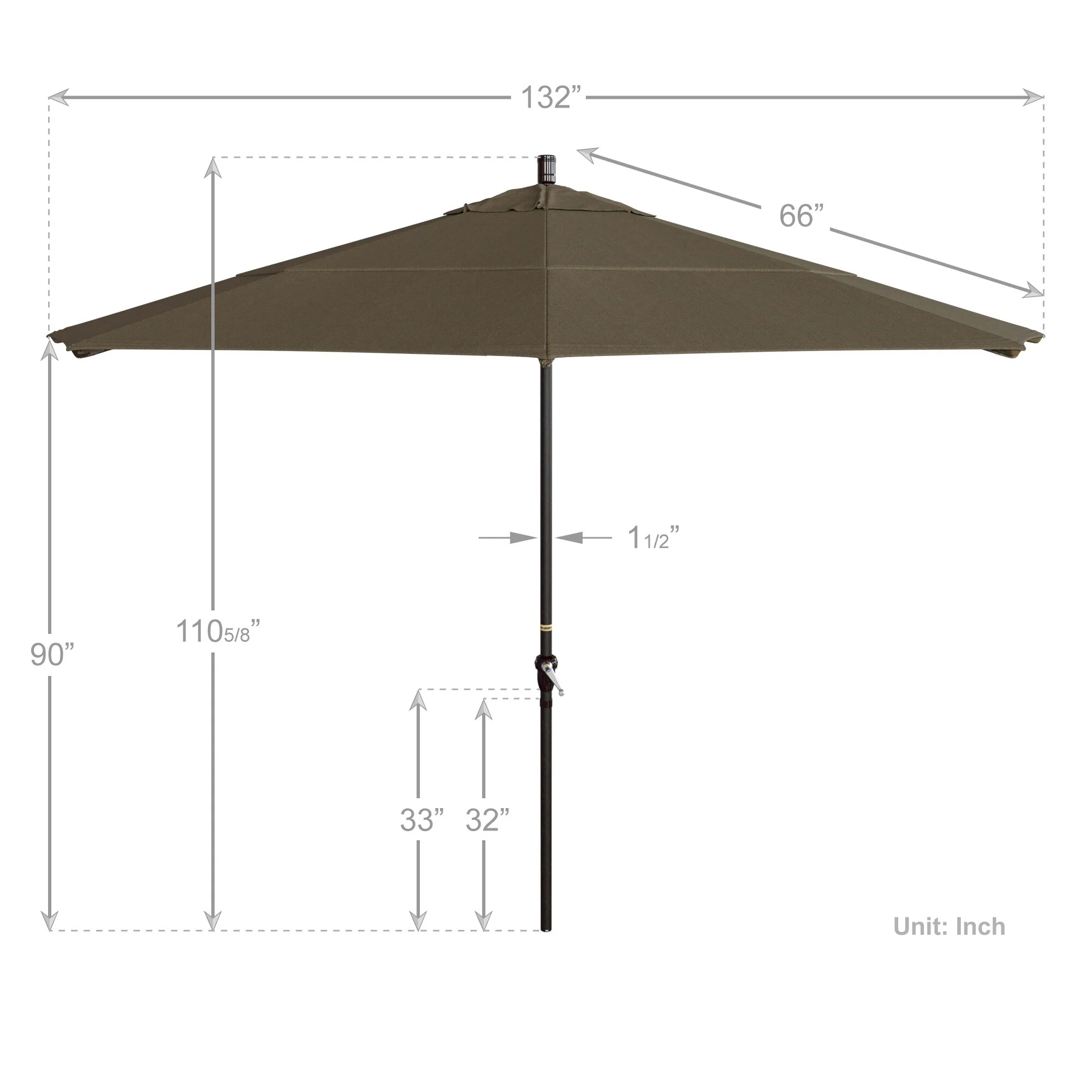 California Umbrella 11' Round Aluminum Crank Open Auto Tlit Patio Umbrella, Bronze Finish, Double Wind Vent.