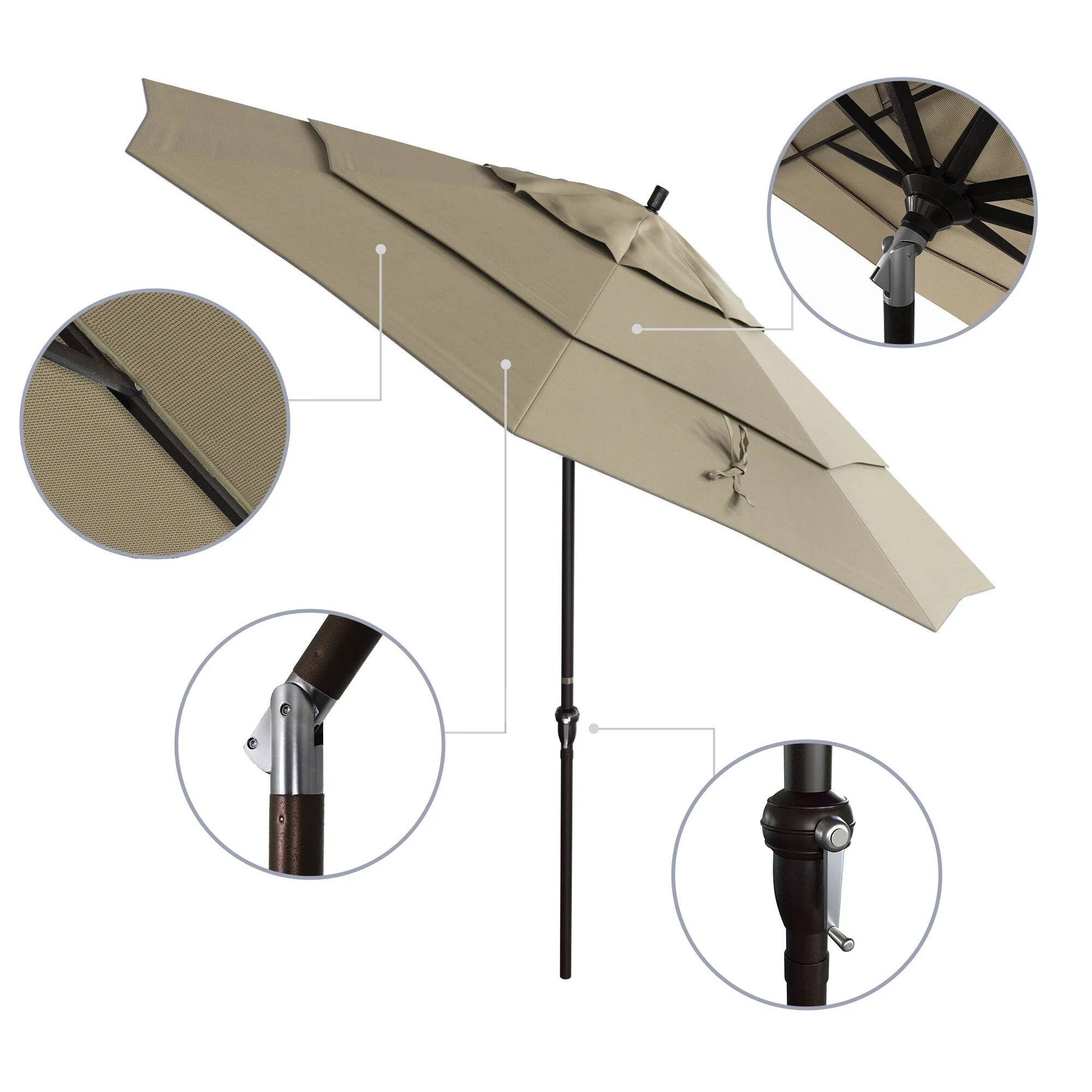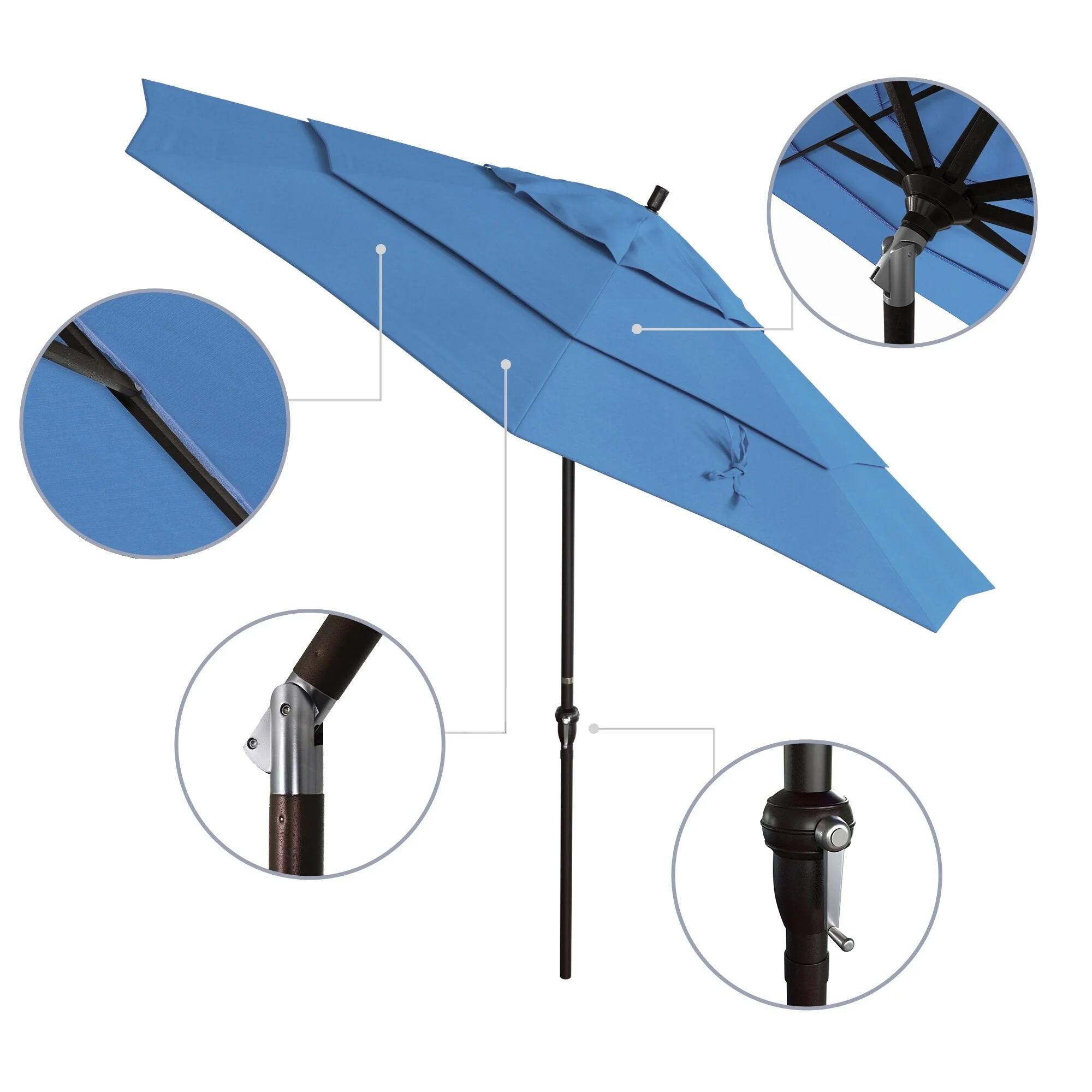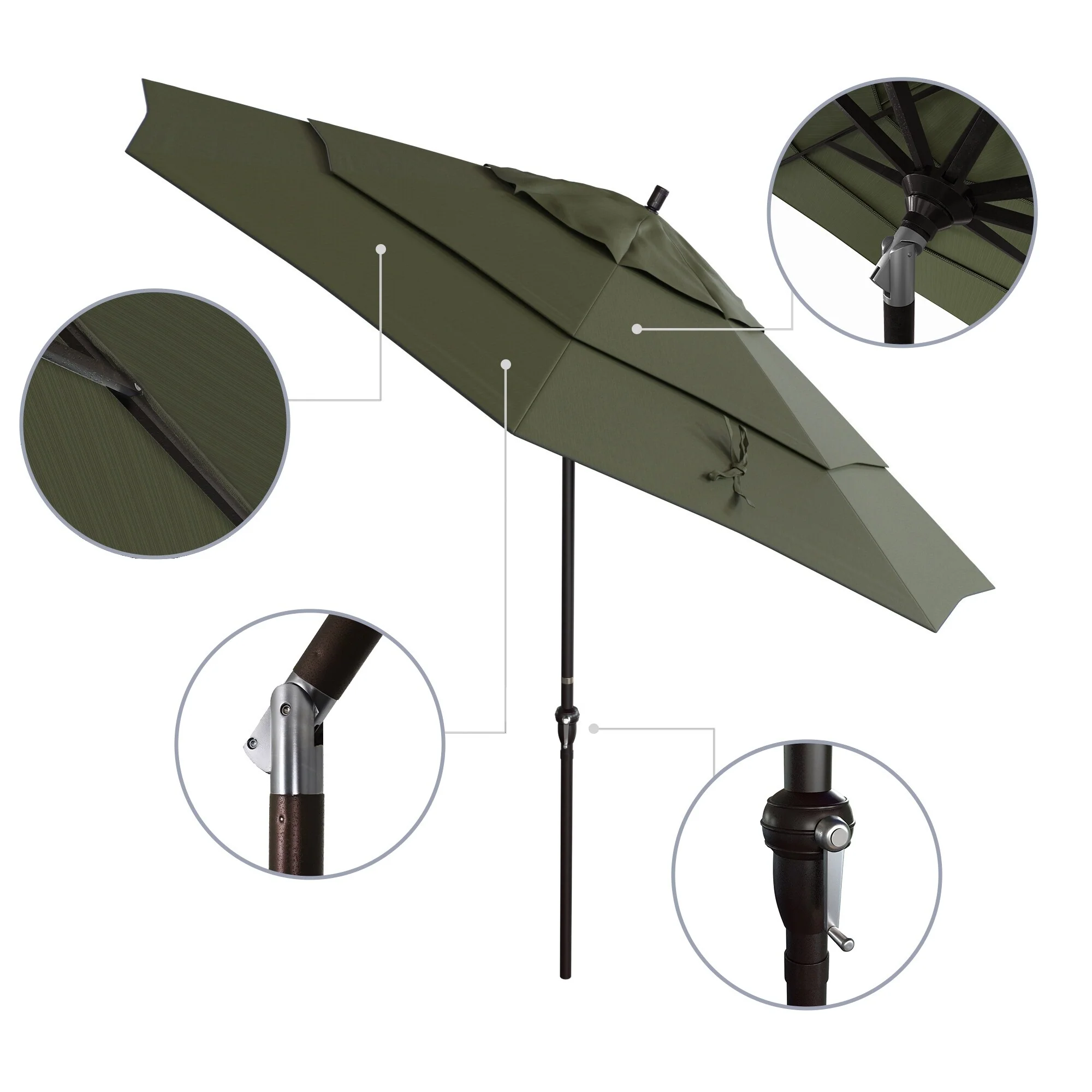 California Umbrella 11' Round Aluminum Crank Open Auto Tlit Patio Umbrella, Bronze Finish, Double Wind Vent.