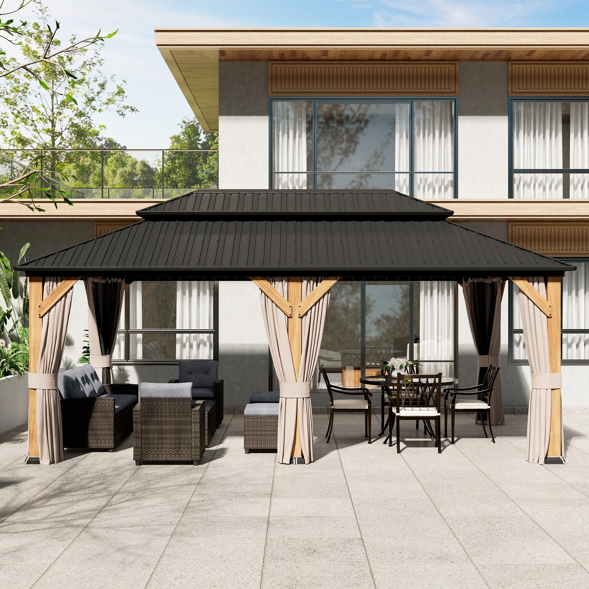 12x20 ft Outdoor Cedar Wood Frame Gazebo with Curtains and Netting