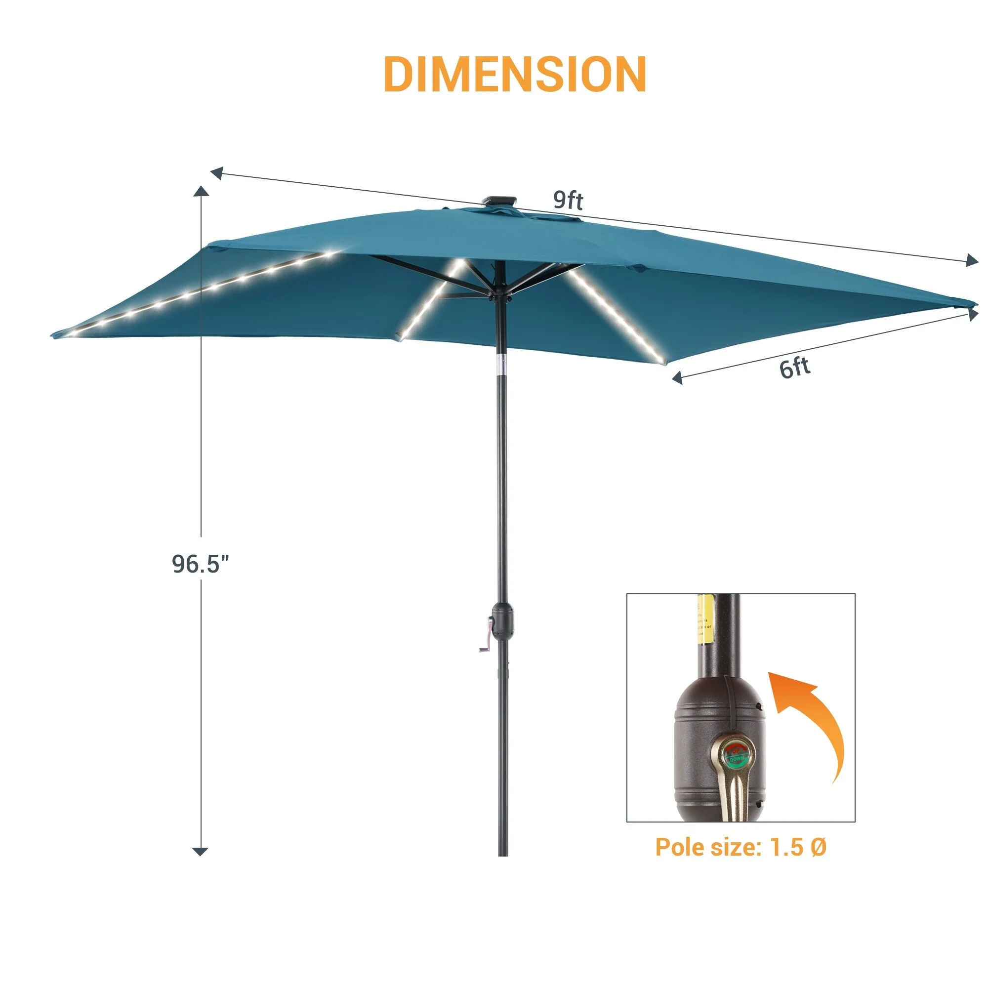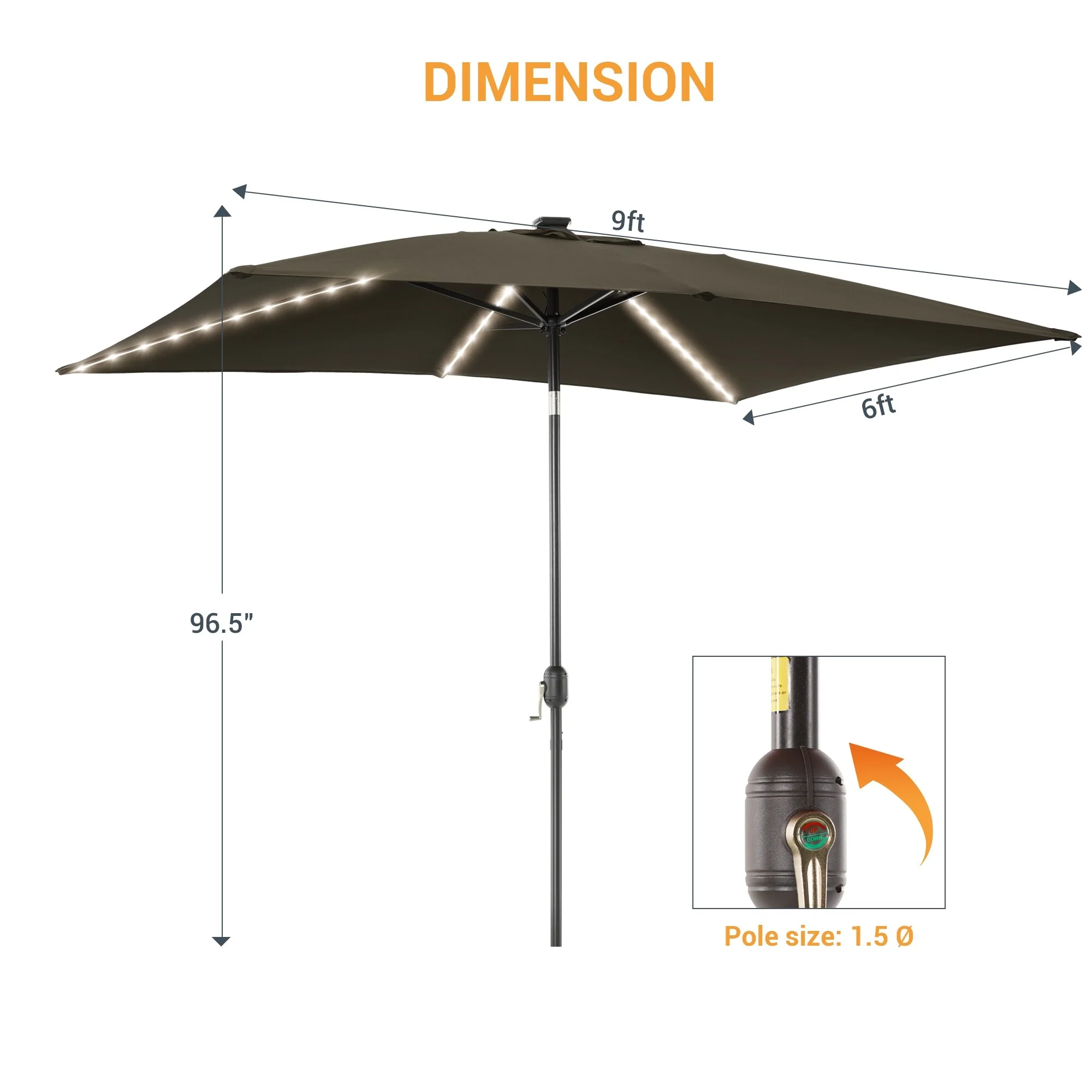 LIVOOSUN 6x9Ft LED Patio Umbrella Weather Resistant Table Umbrella