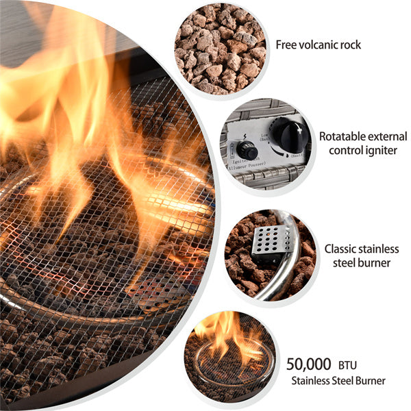 Safe: 50,000 BTU fire pit table has CSA certification and a safety valve, so don't worry about safety when using it. Using propane fuel to provide stable and green burning, so you no longer suffer from ash and smoke.