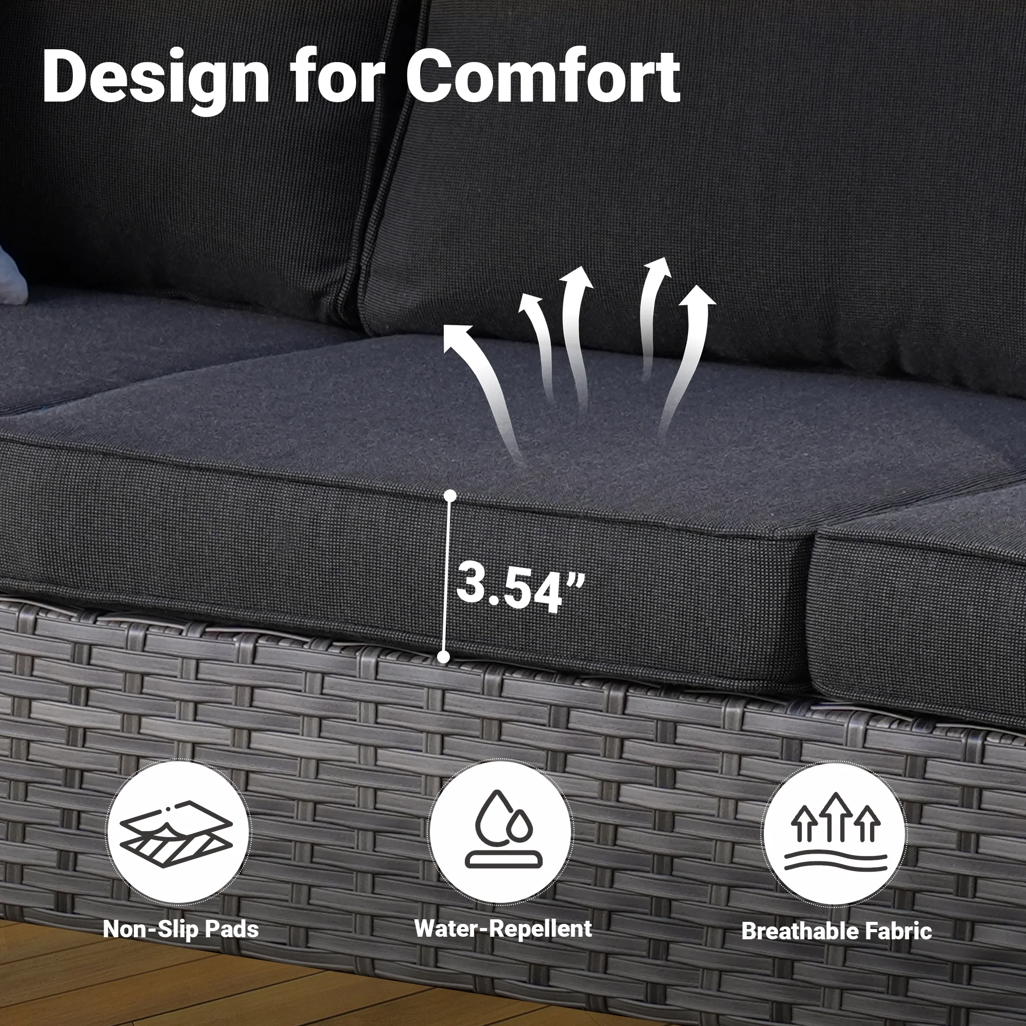 Sturdy & Practical:Indulge in a cozy yet modern experience with spacious armrests and deep seats. Long-lasting wicker guarantees durability, erasing worries of wear over time.
