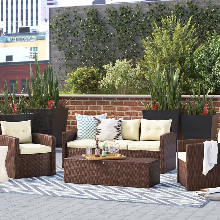 Buckholtz 4 - Person Square Outdoor Dining Set with Cushions