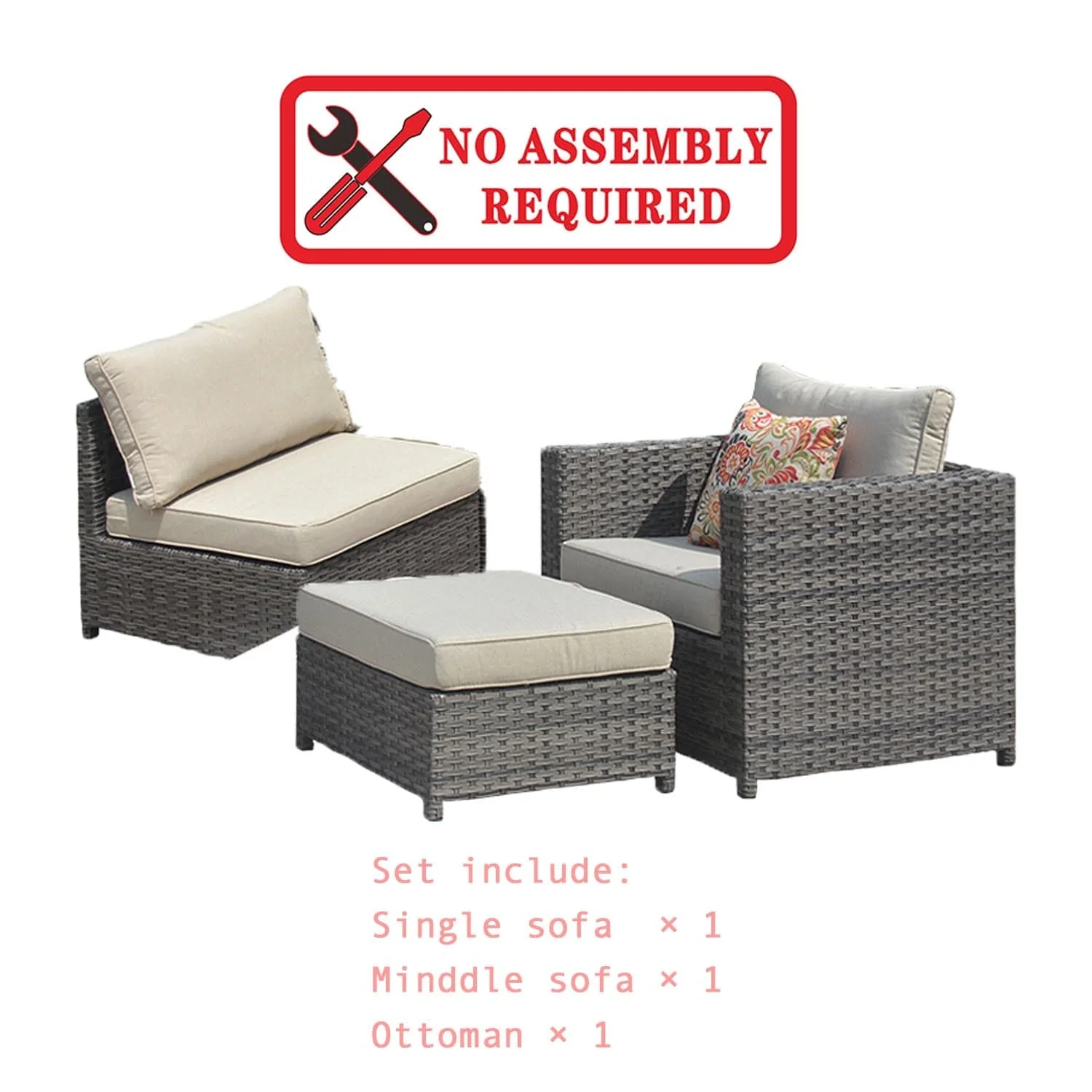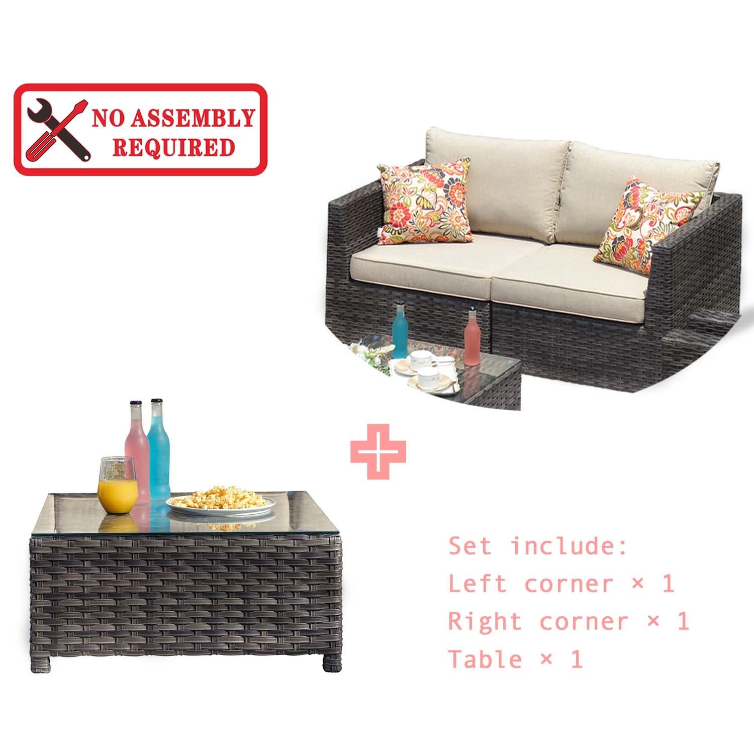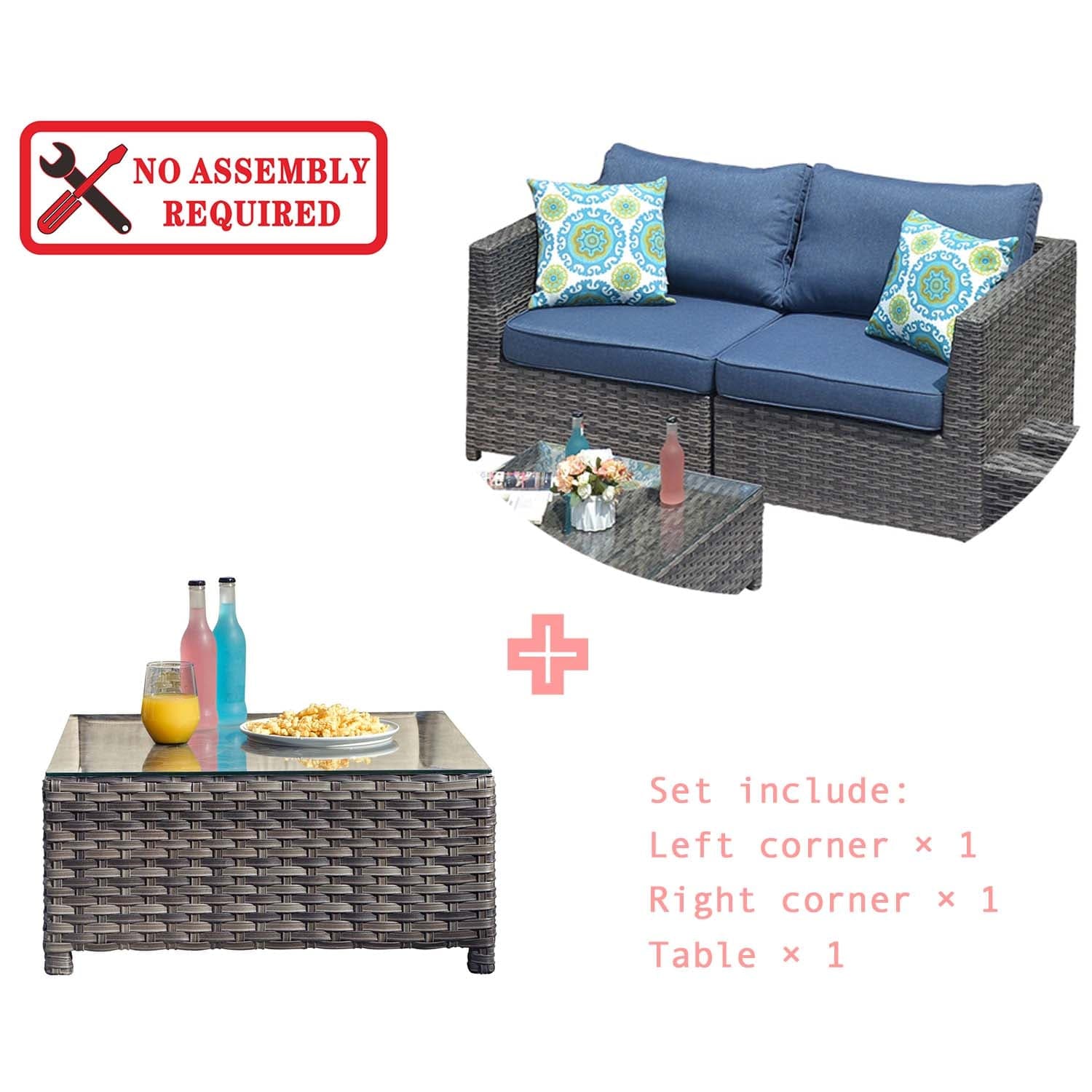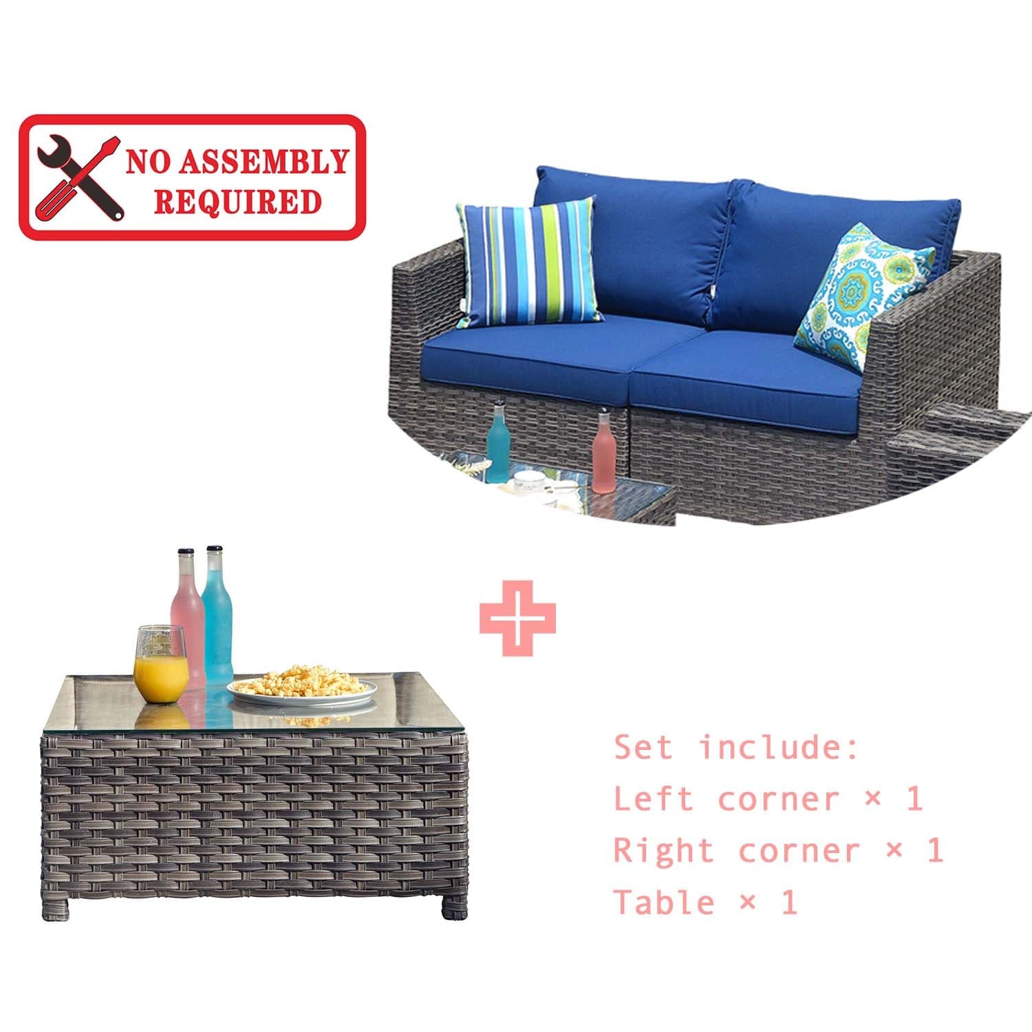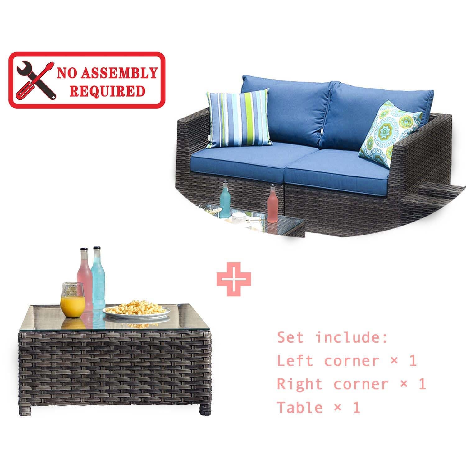 Ovios Patio Furniture Set Bigger Size 3-Piece Couch with Table, King Series, Fully Assembled