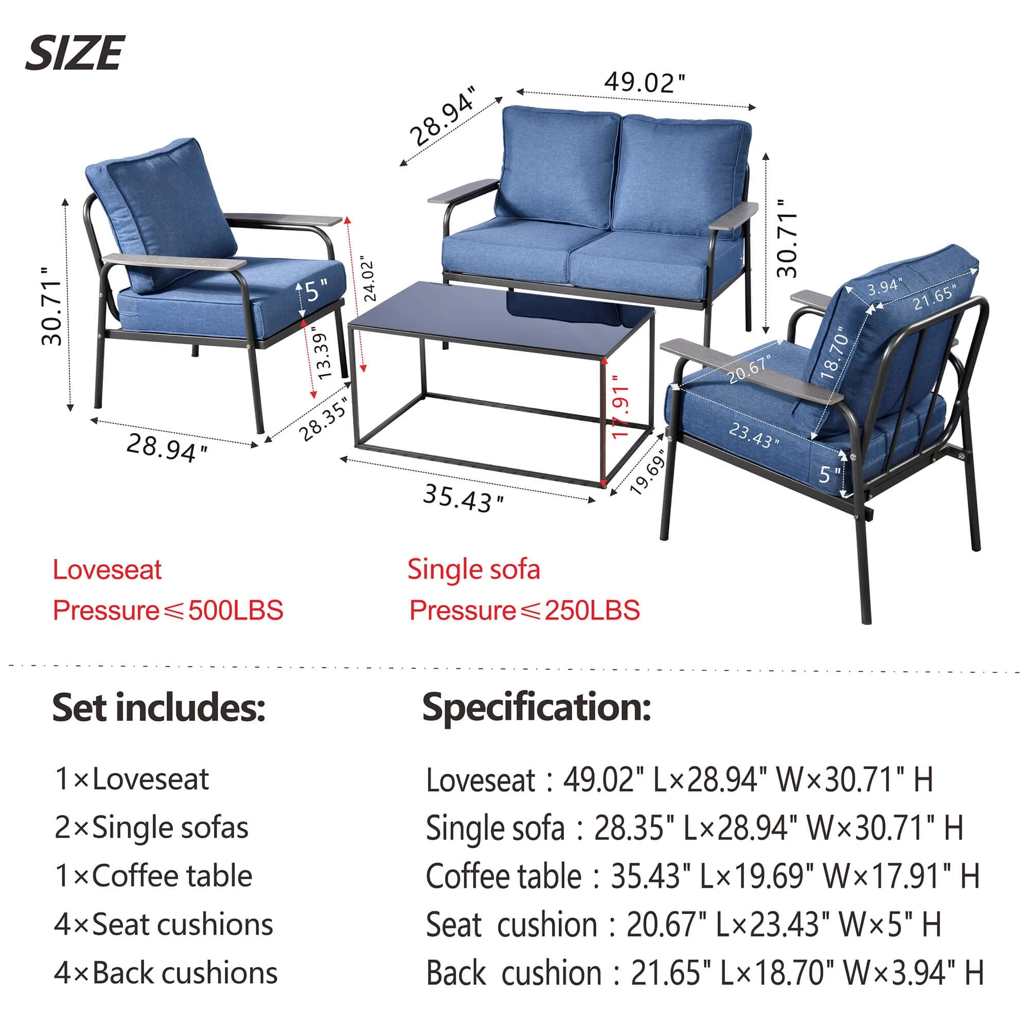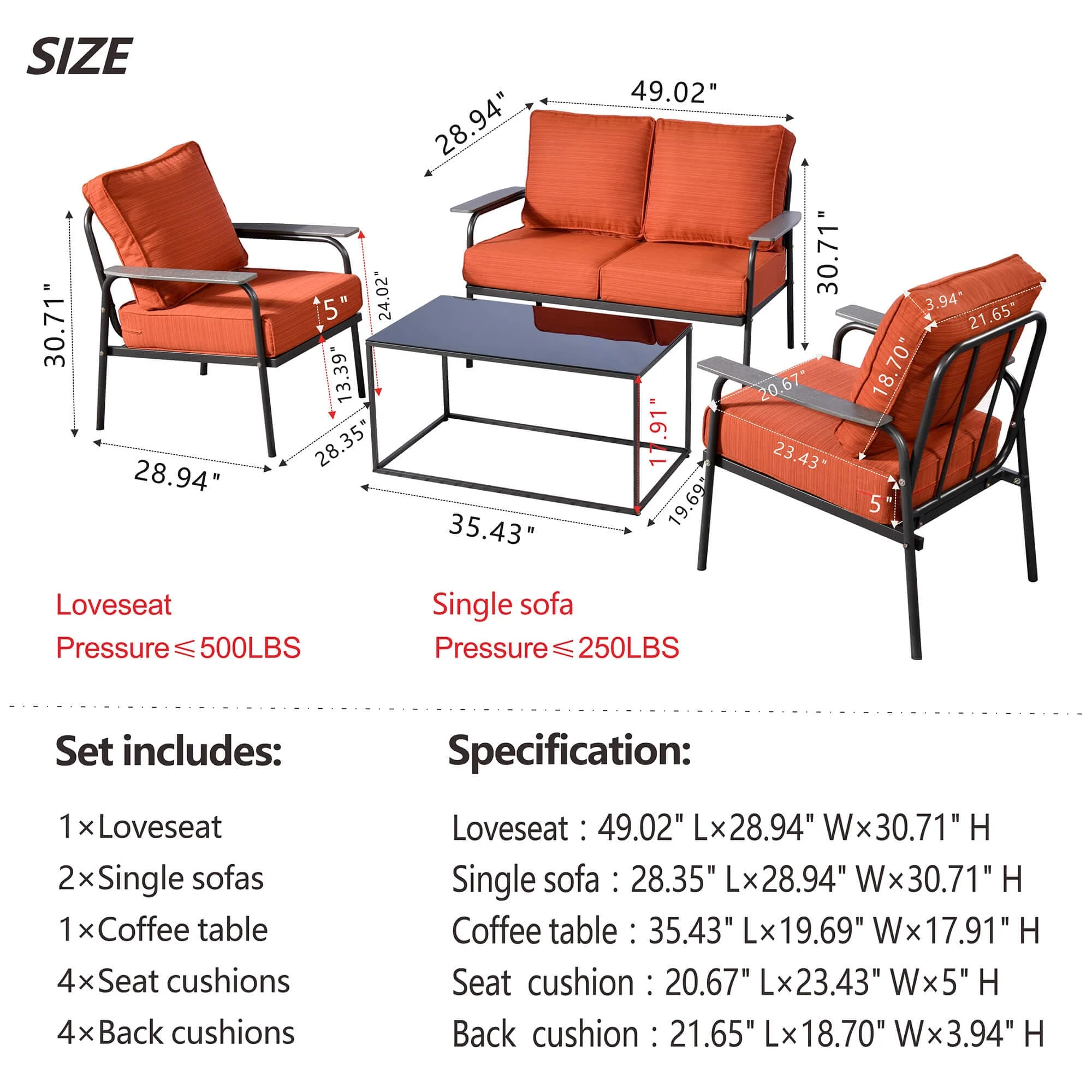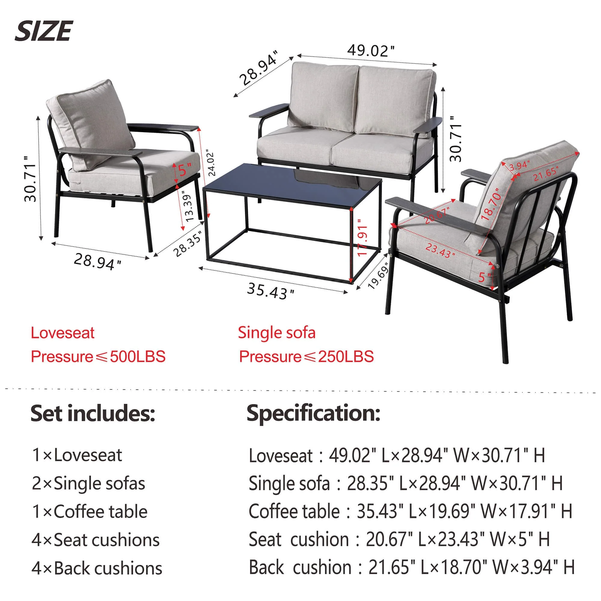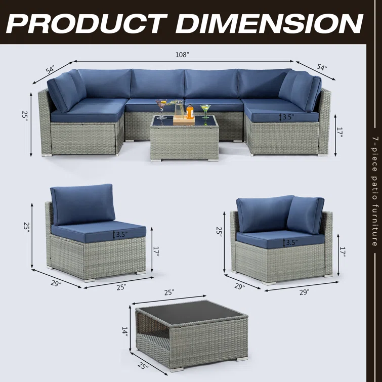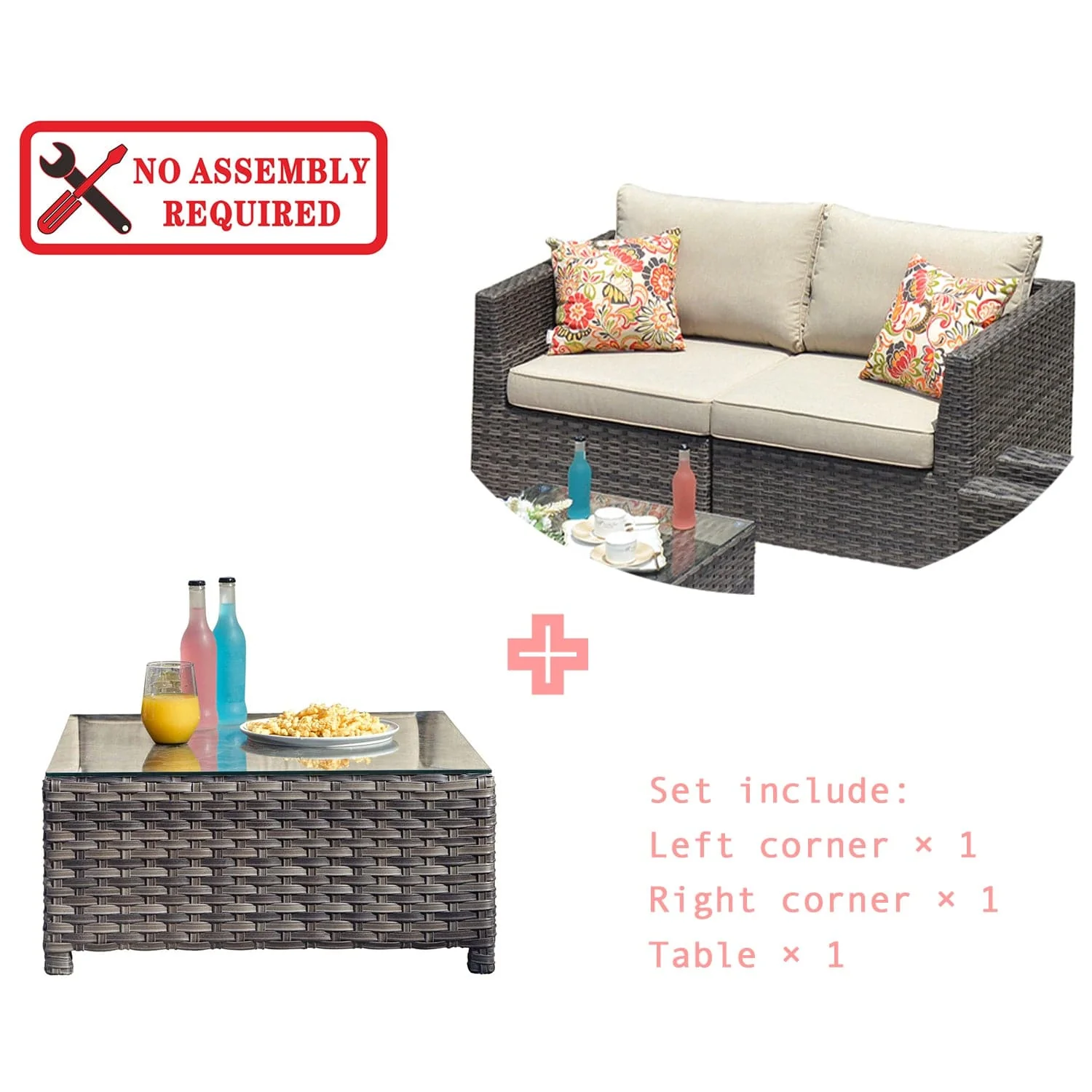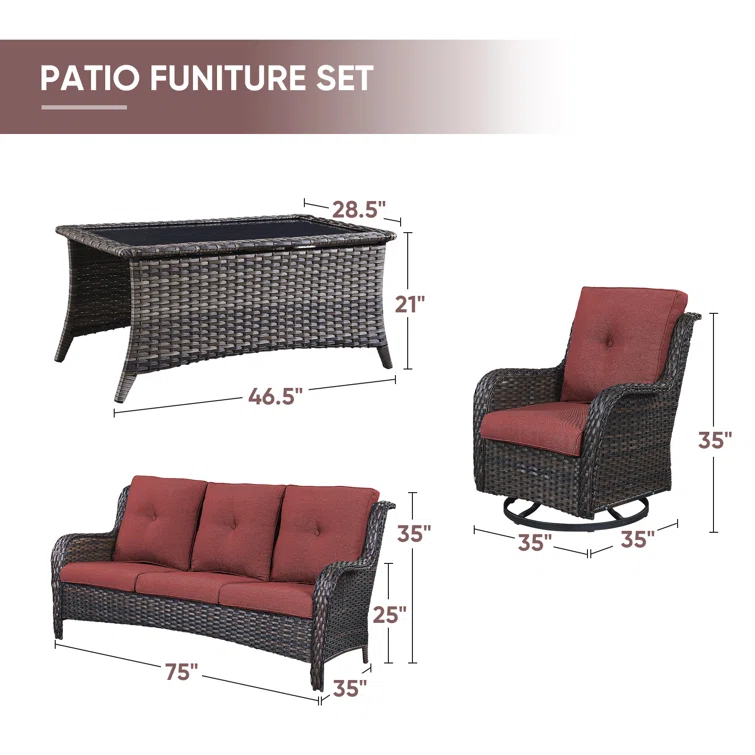 Ovios Patio Furniture Set Bigger Size 3-Piece Couch with Table, King Series, Fully Assembled