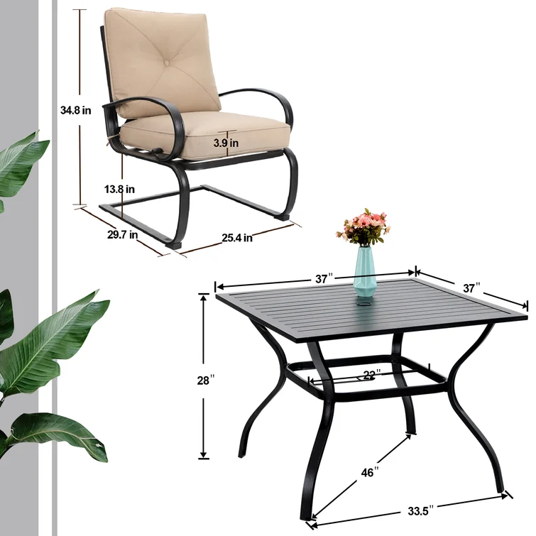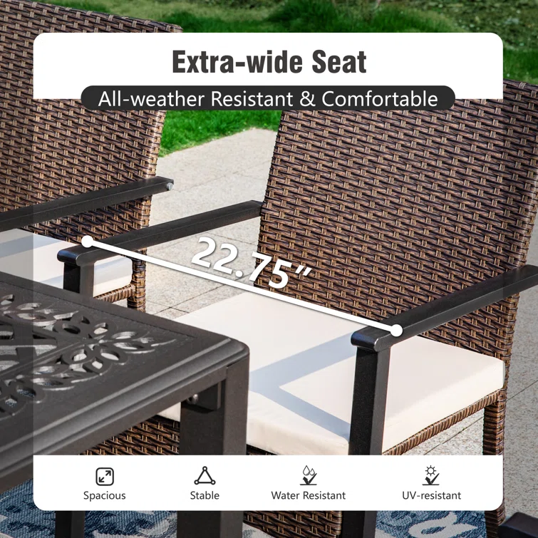 Ovios Outdoor Bistro Table Set 4 Piece with 5'' Cushion, Olefin Fabric
