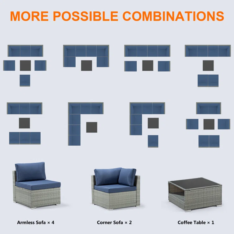 Amjad 8 Piece Rattan Seating Group with Sunbrella Cushions