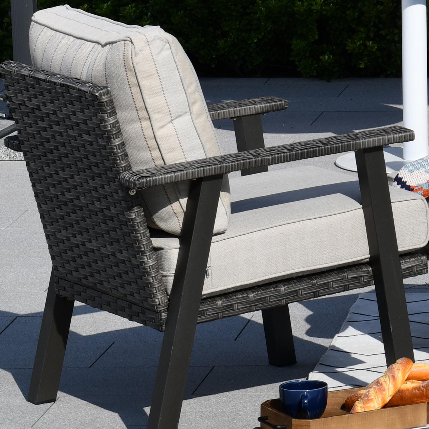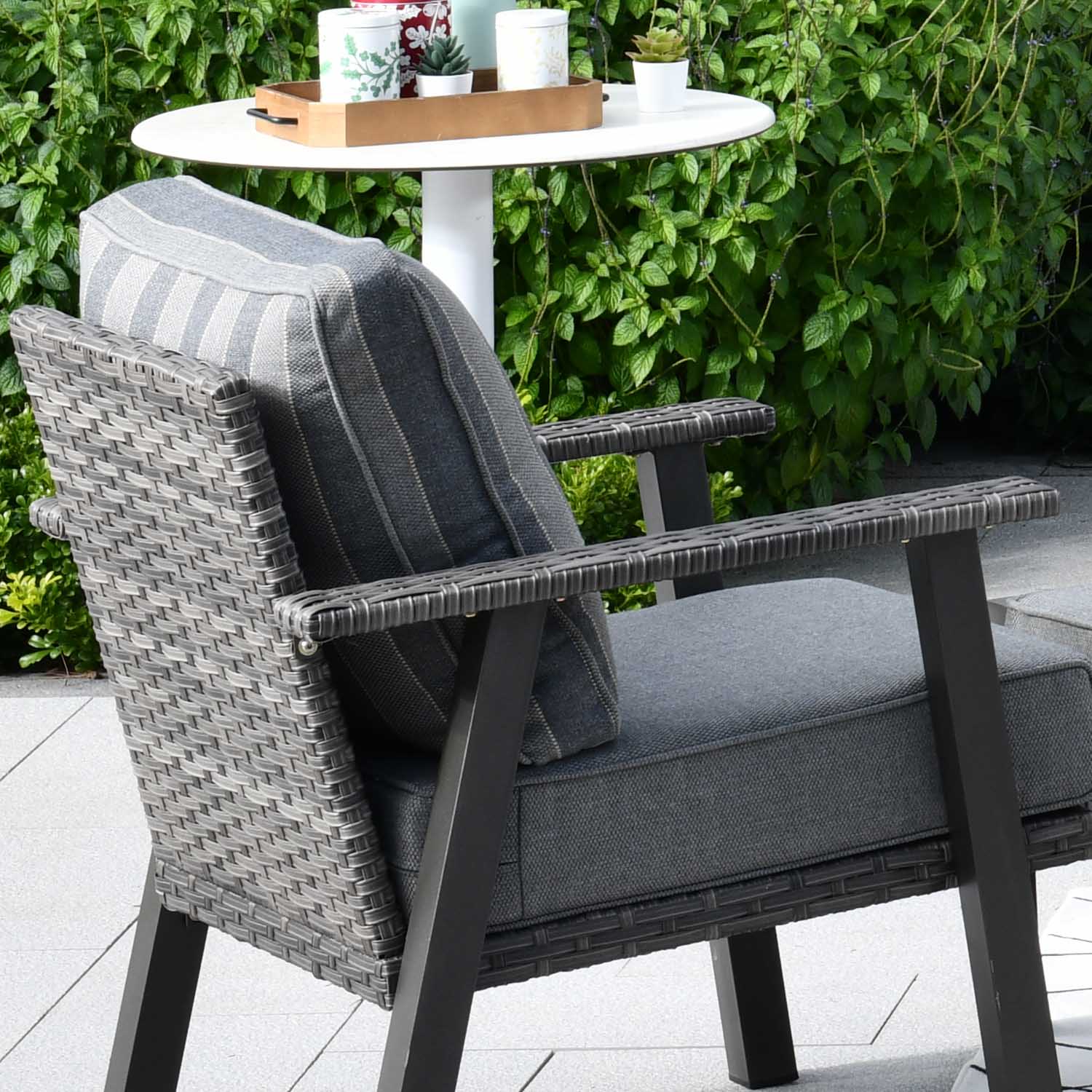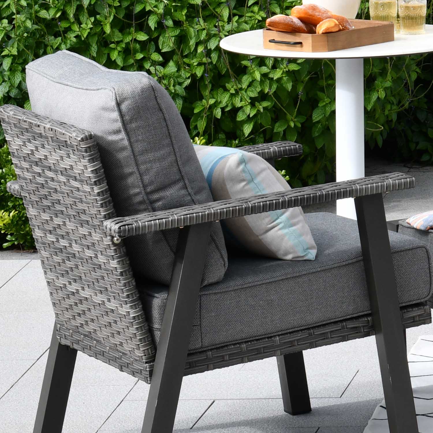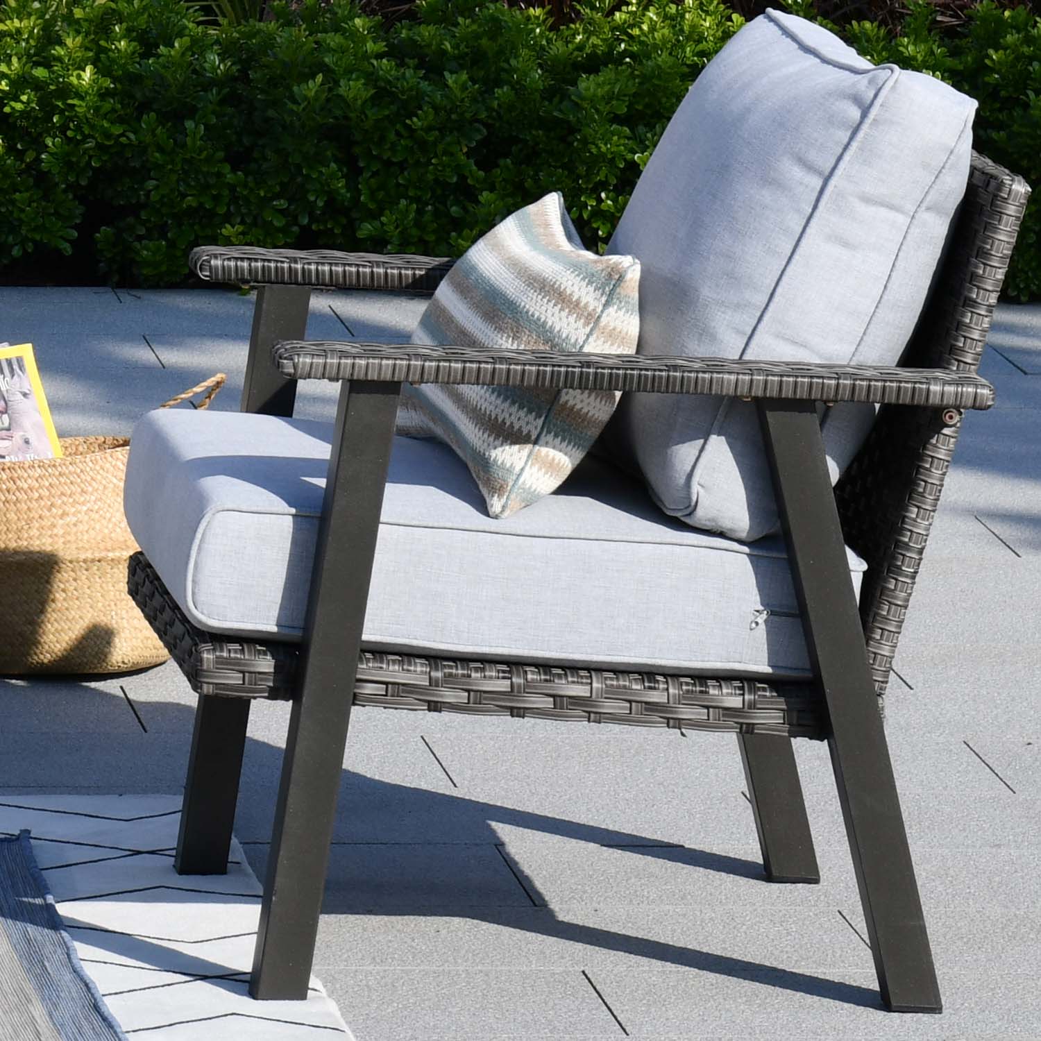 Grey Wicker Dark Grey Cushion