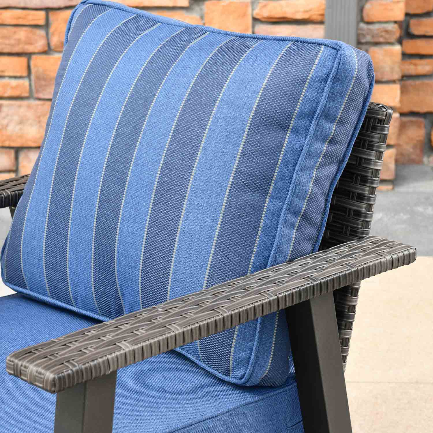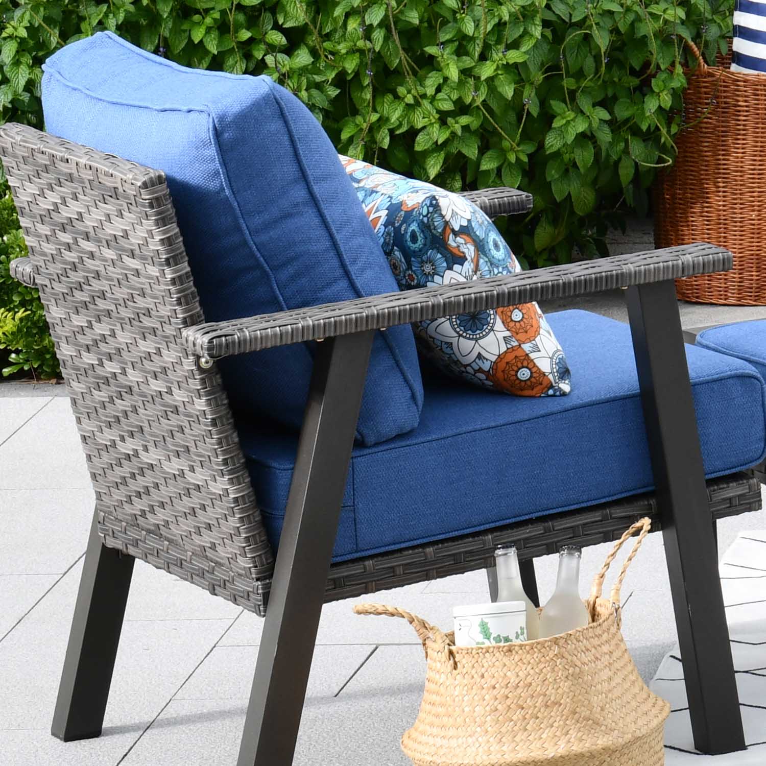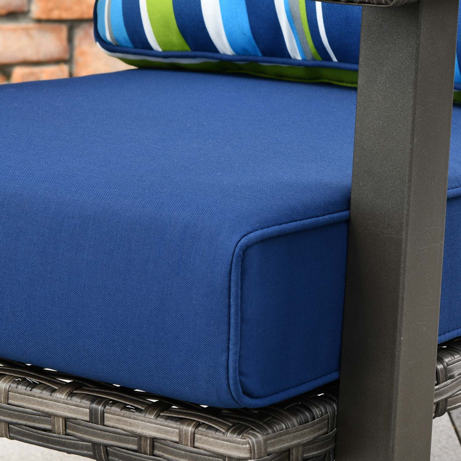 Brown Wicker Navy Blue Cushion