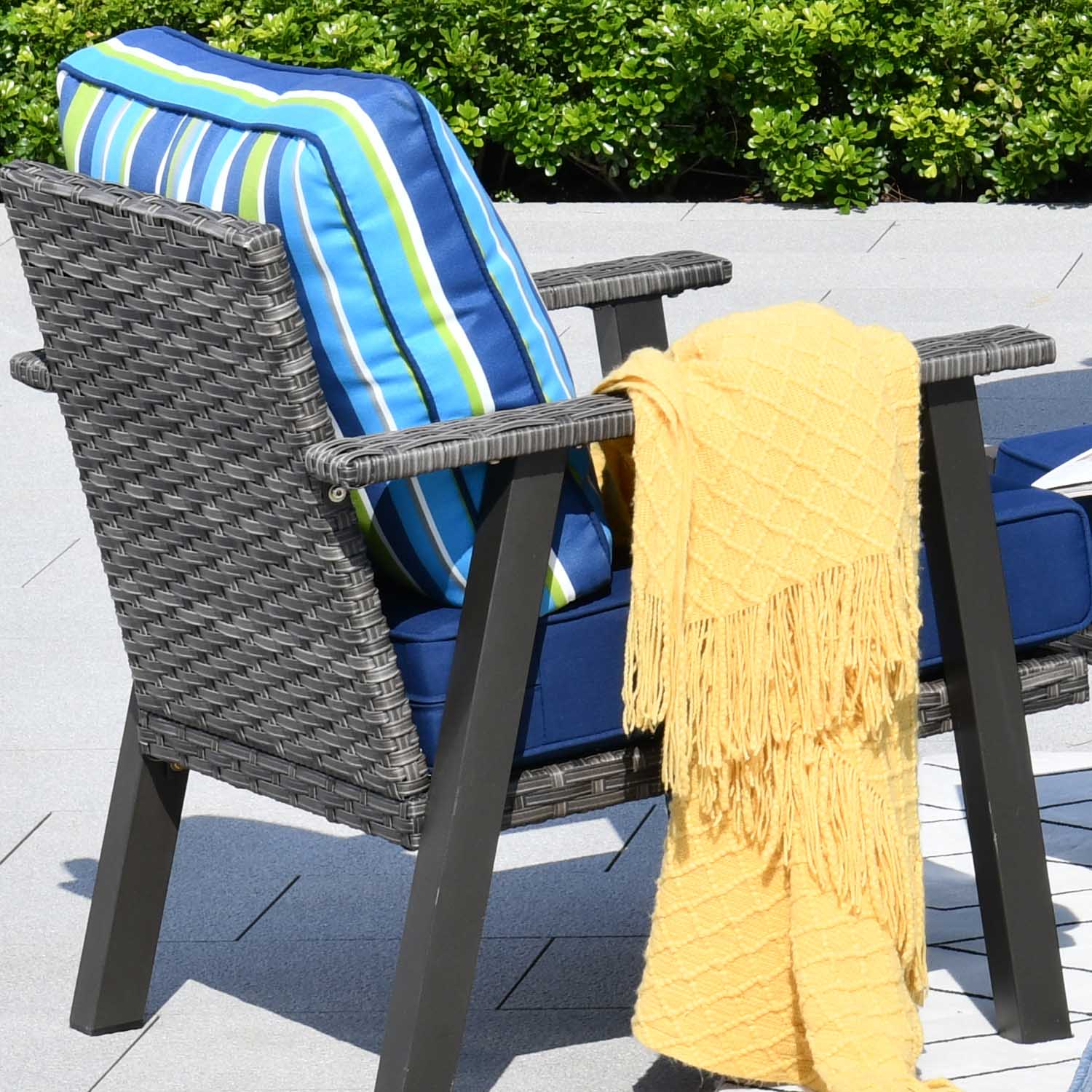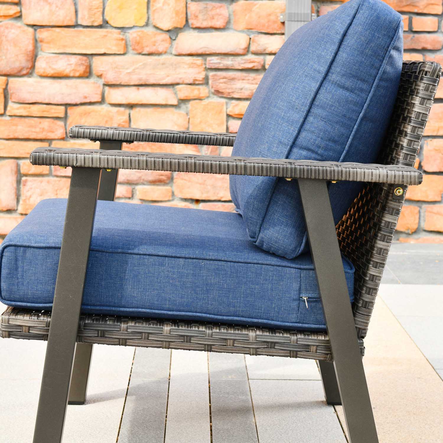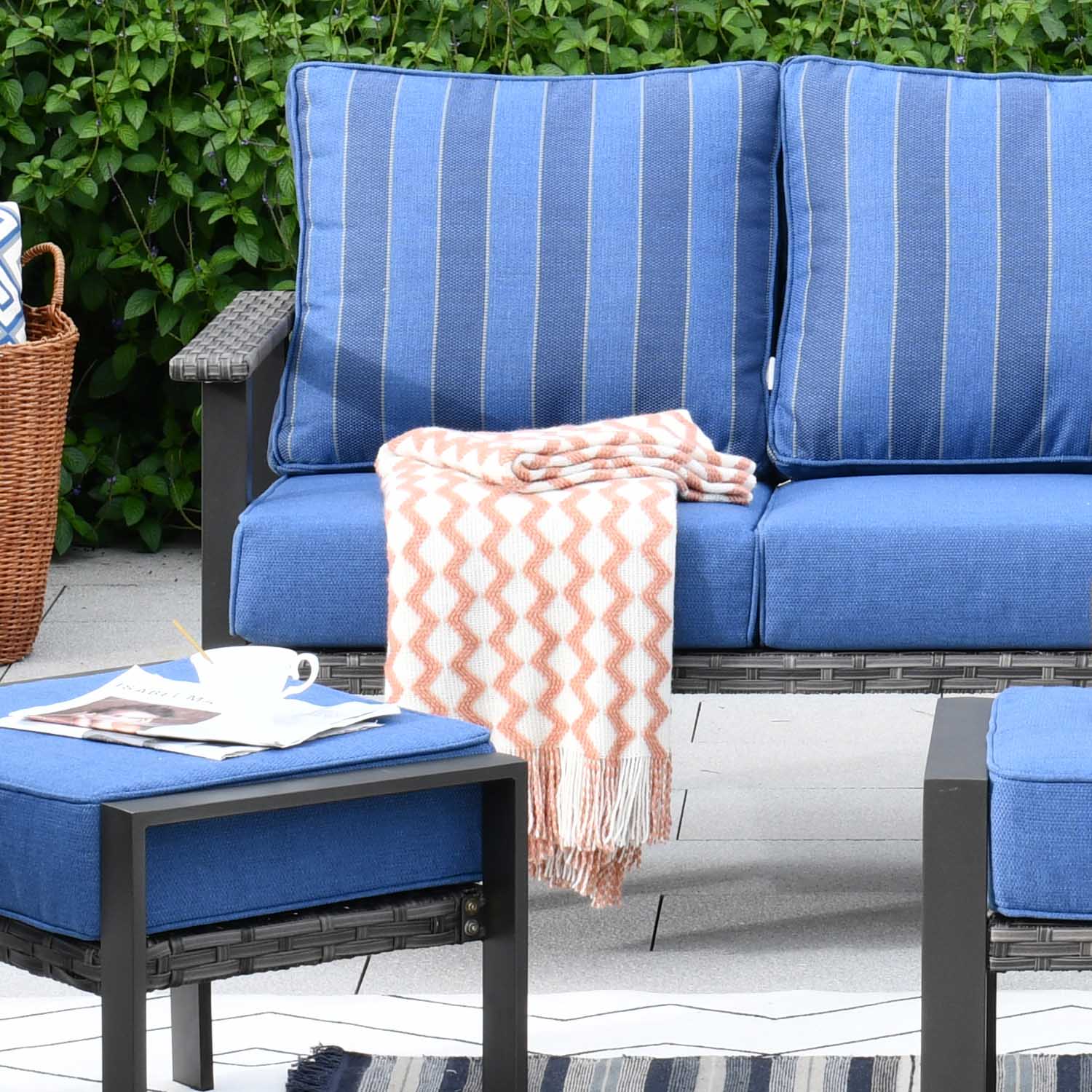 Brown Wicker Navy Blue Cushion