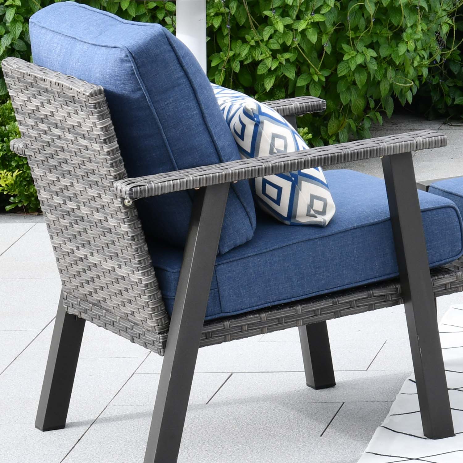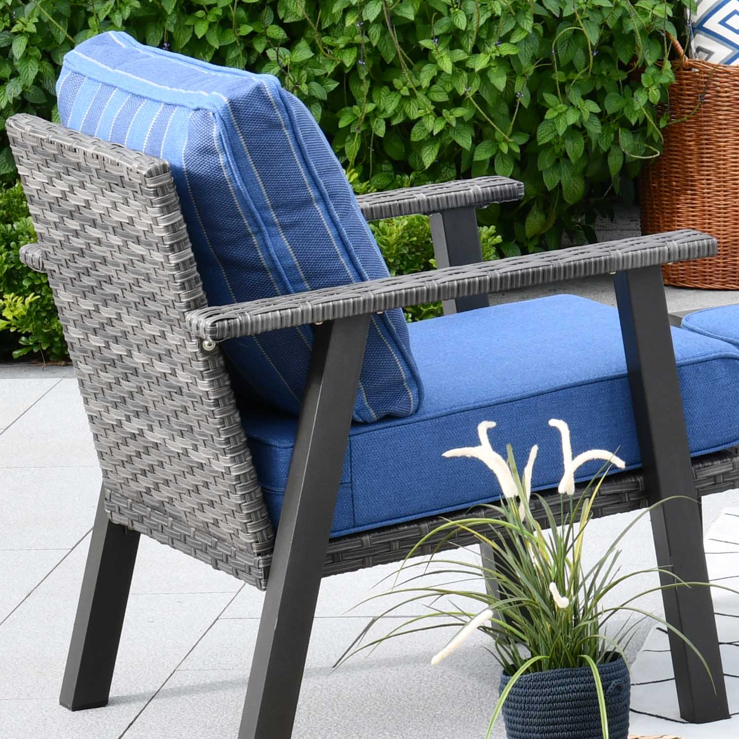 Grey Wicker Denim Blue Cushion