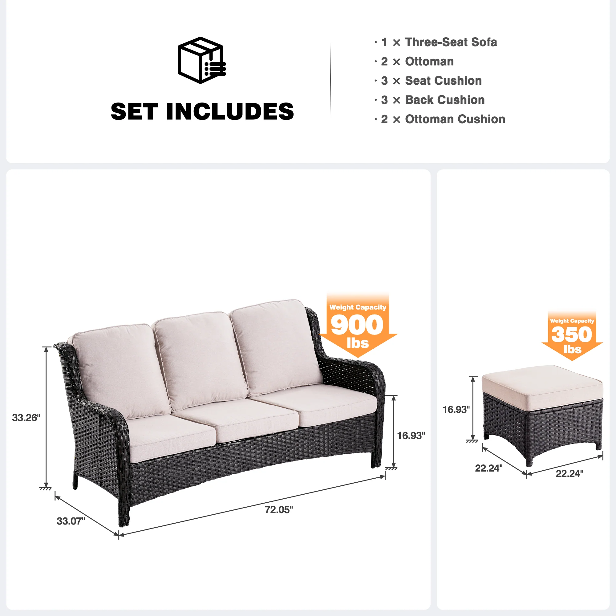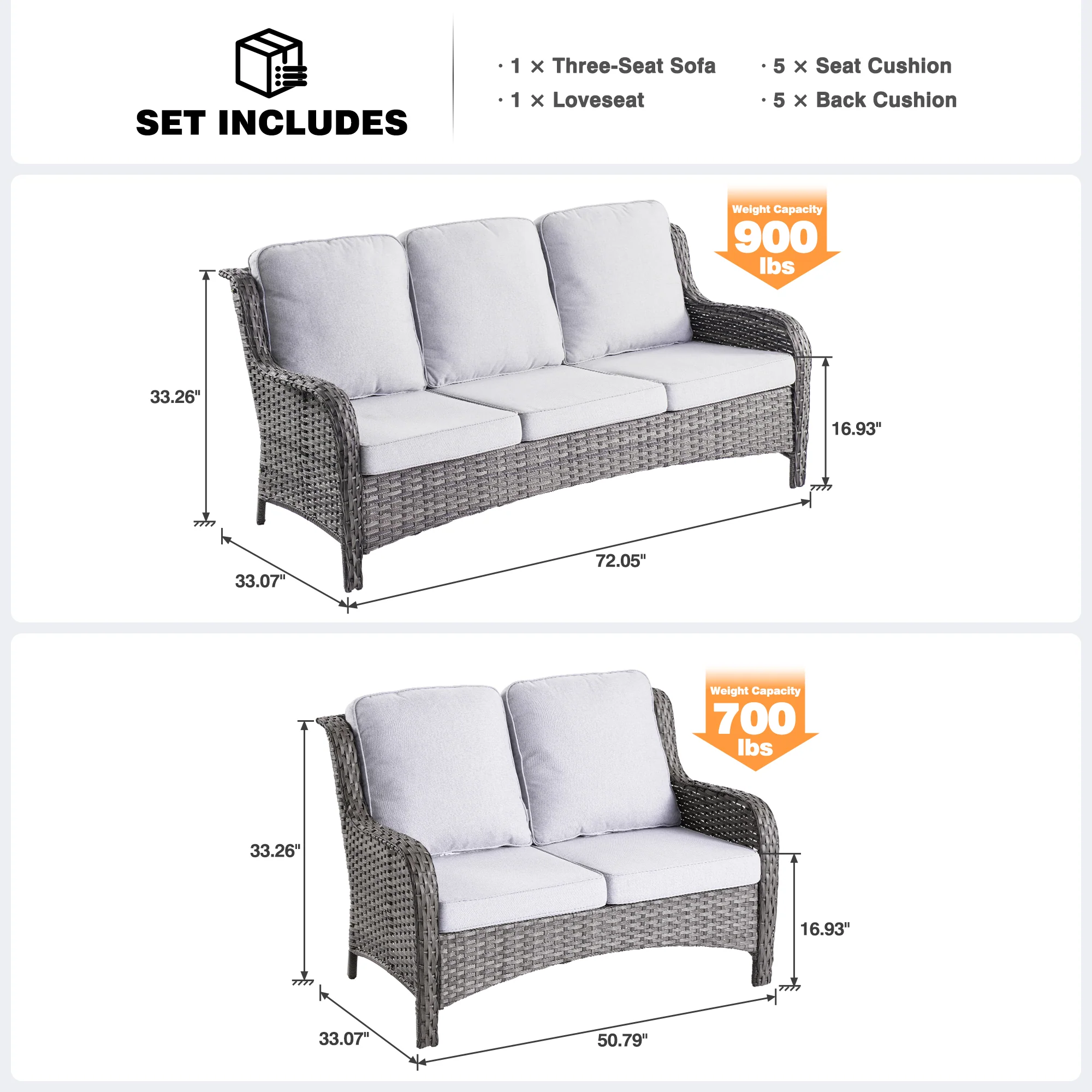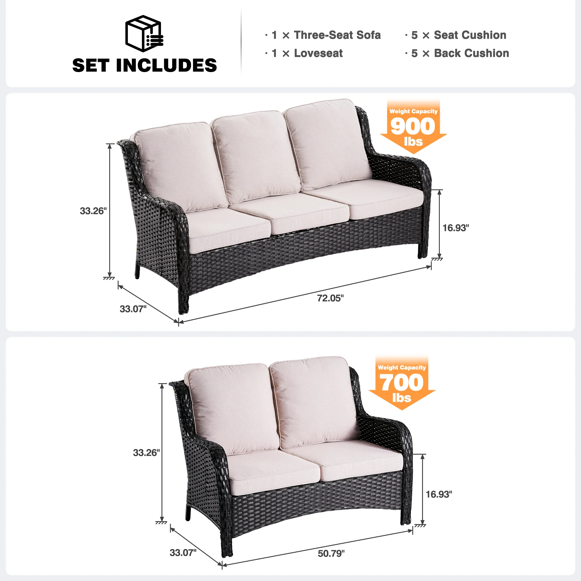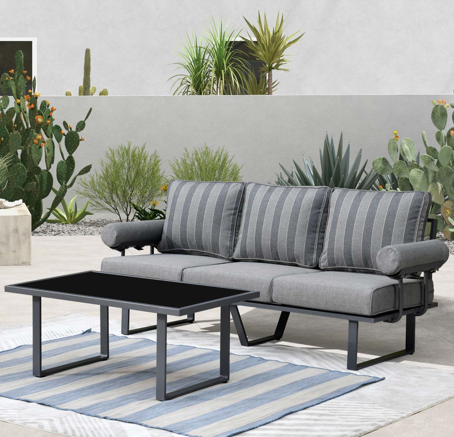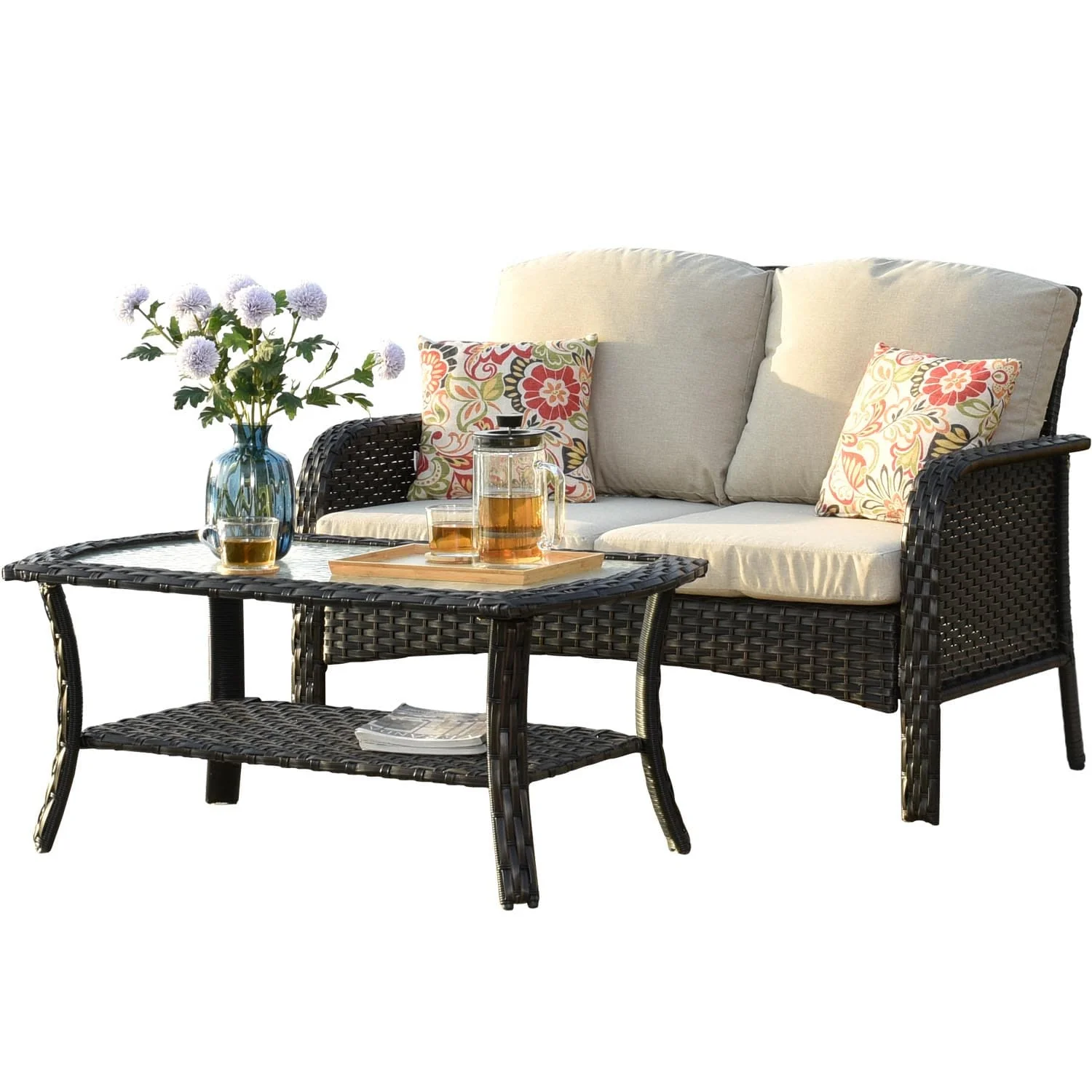 Ovios Patio Kenard 2-Piece Conversation Set with Loveseat and Three-seat Couch
