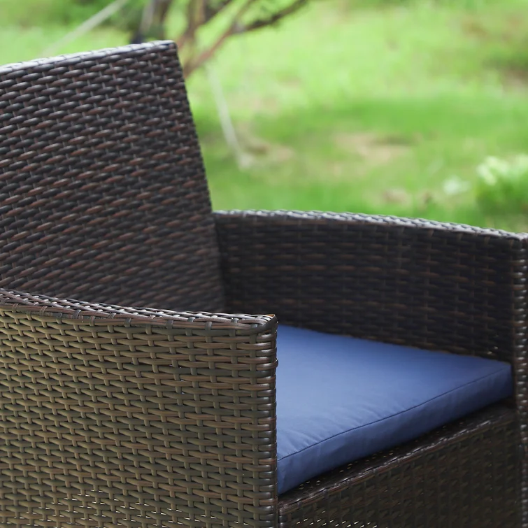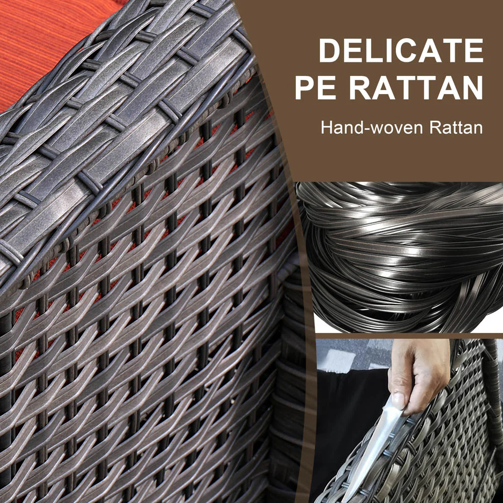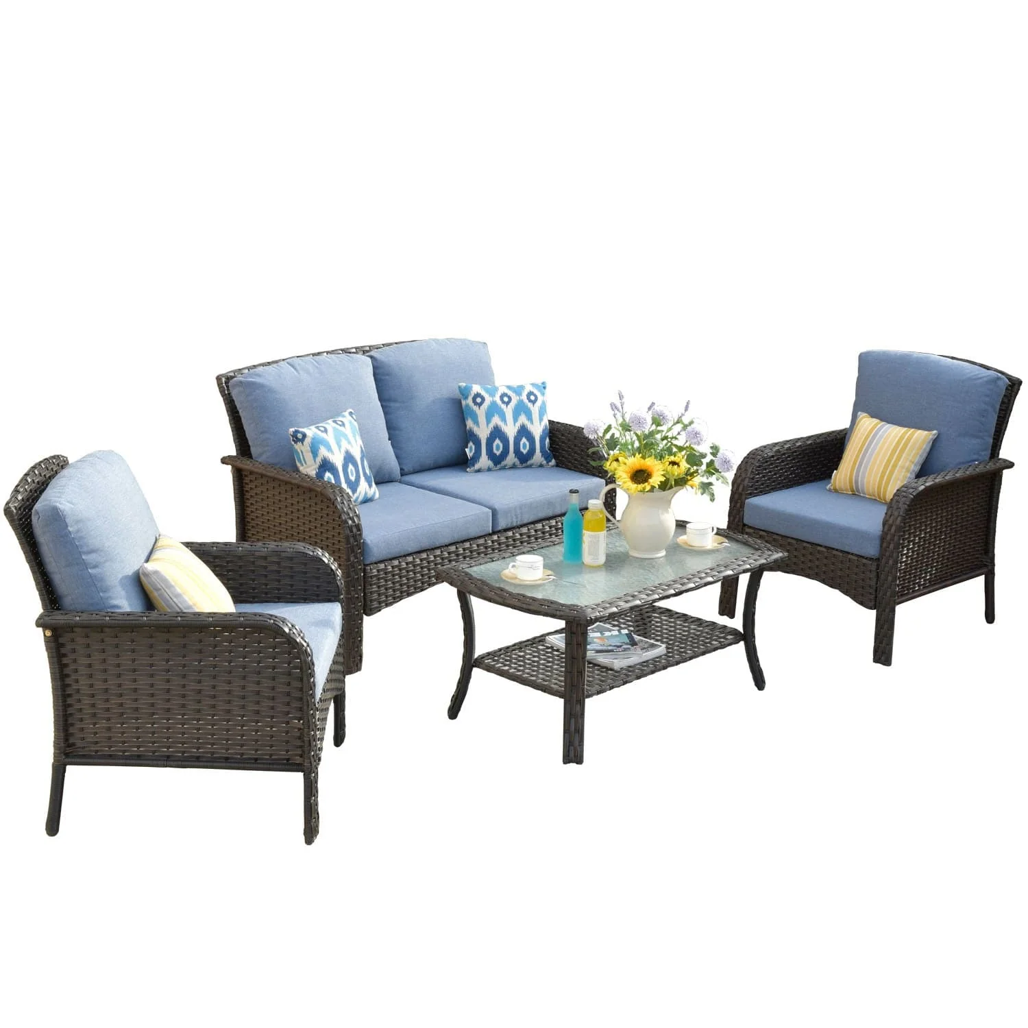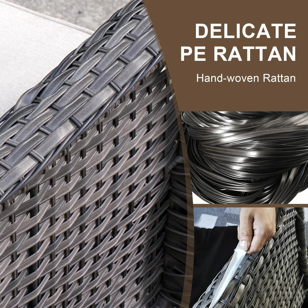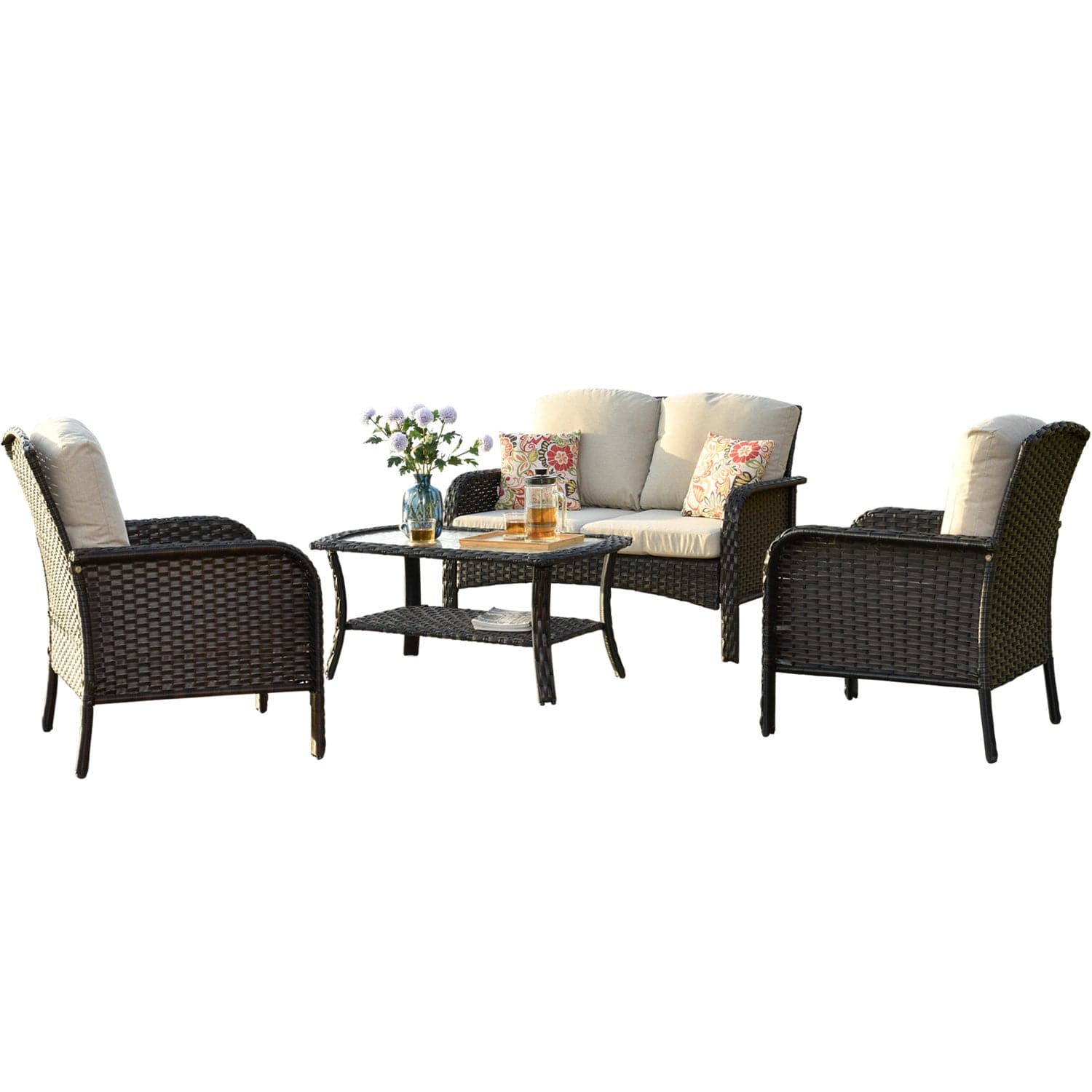 Ovios Outdoor Furniture 4 Piece High Back Brown Wicker with Cushion and Table