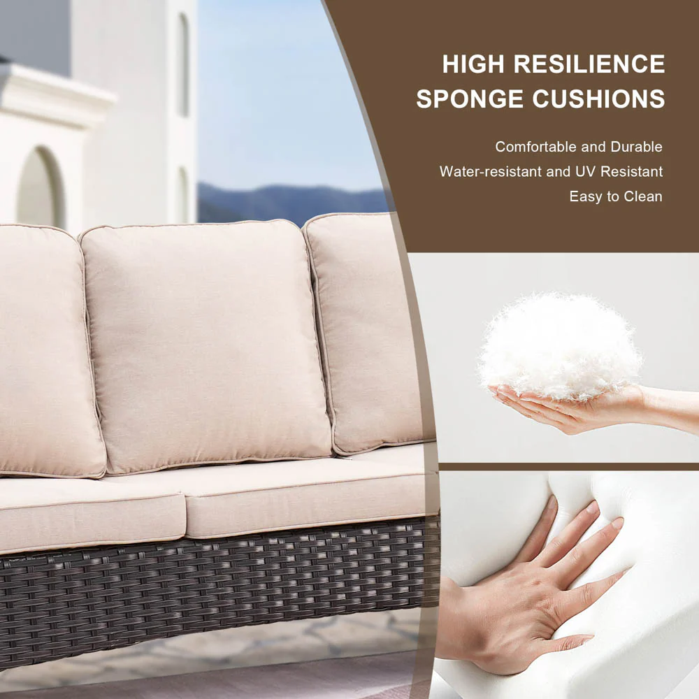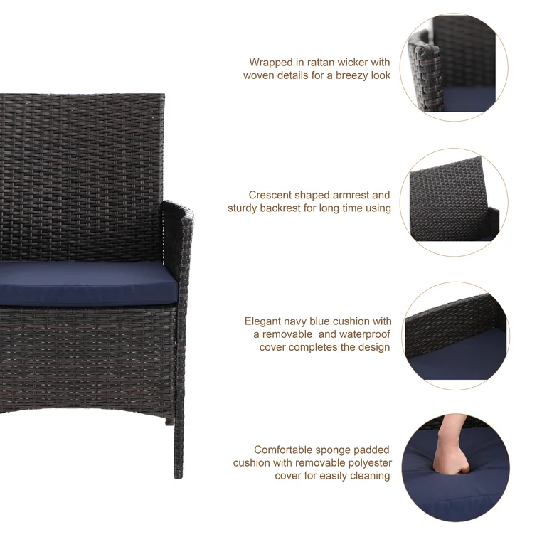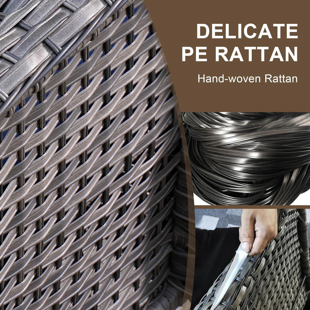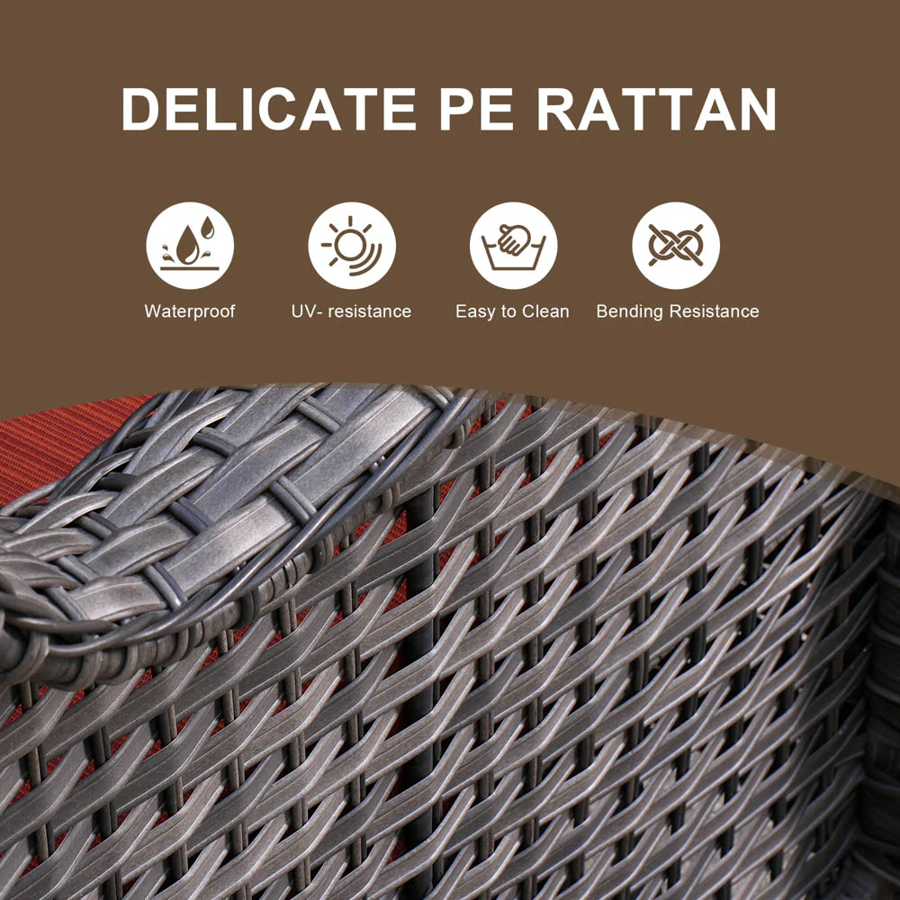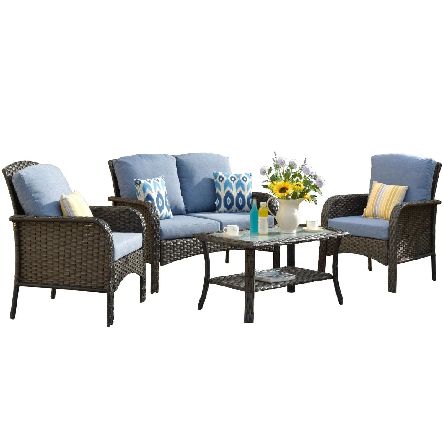 Ovios Outdoor Furniture 4 Piece High Back Brown Wicker with Cushion and Table