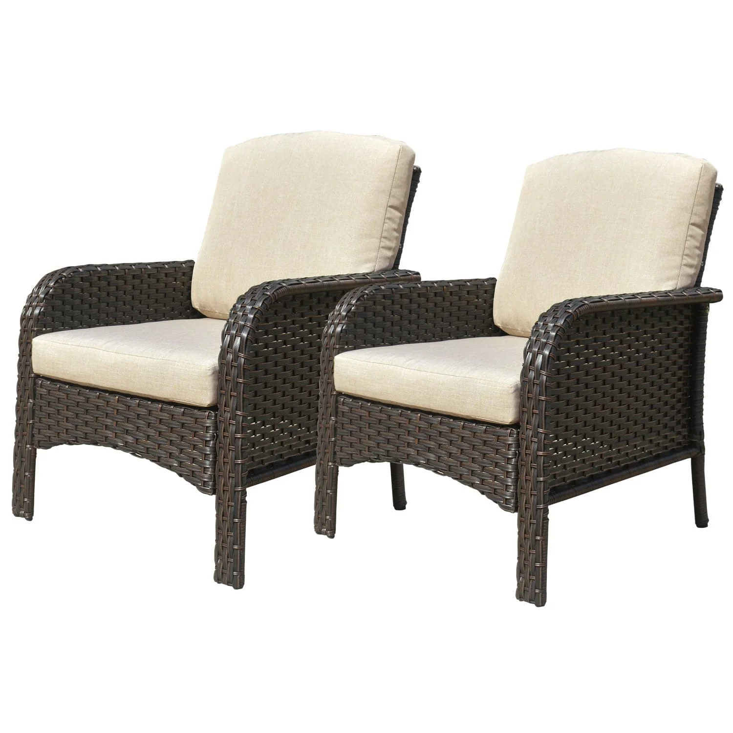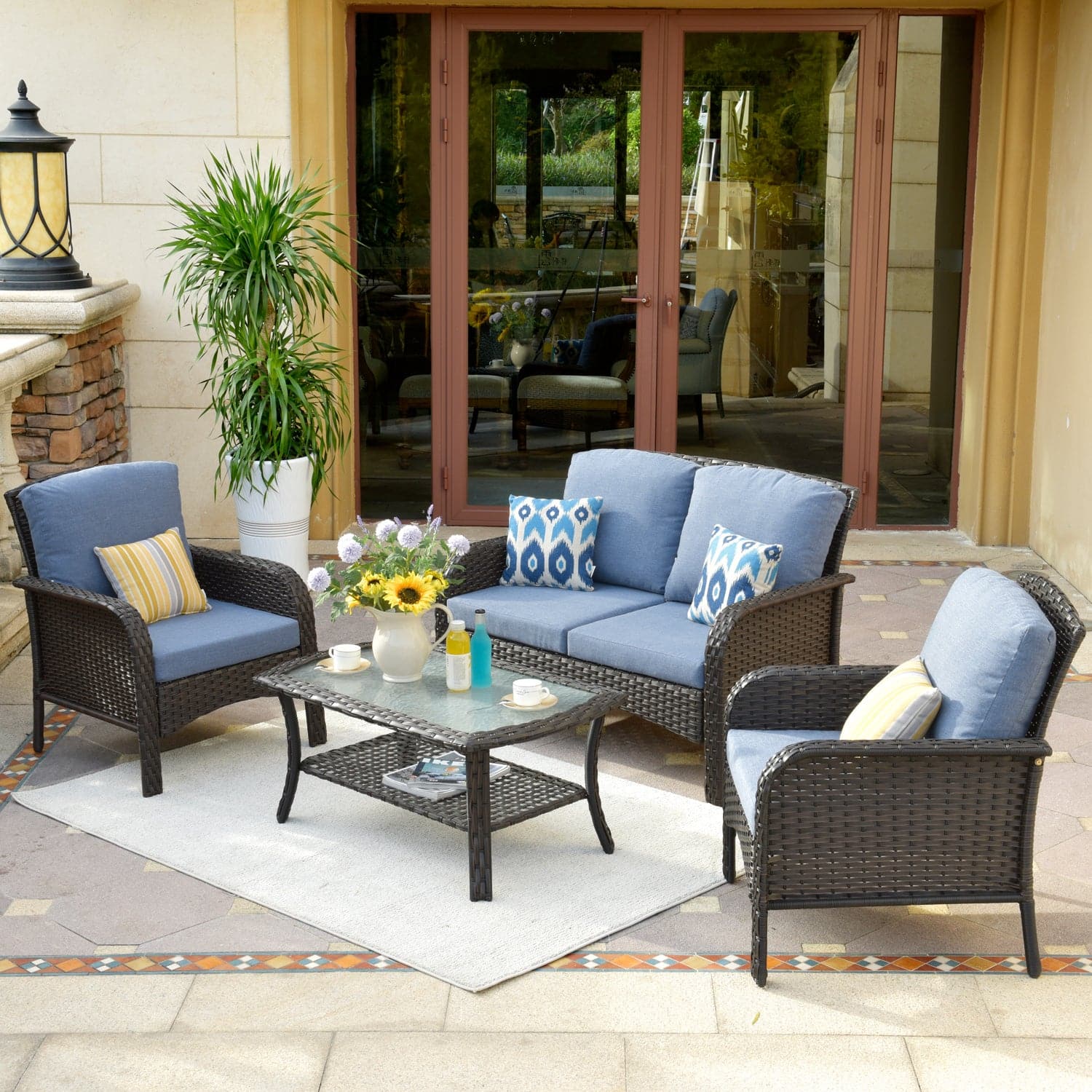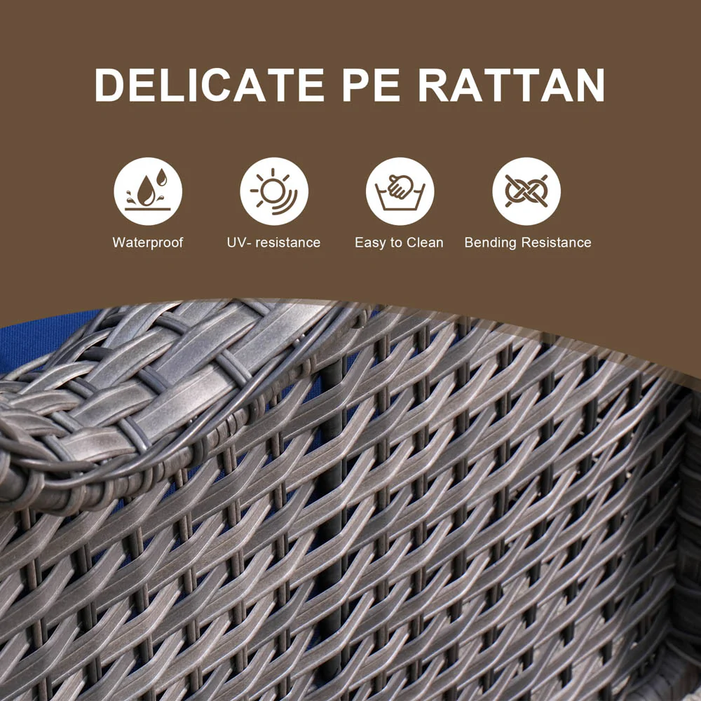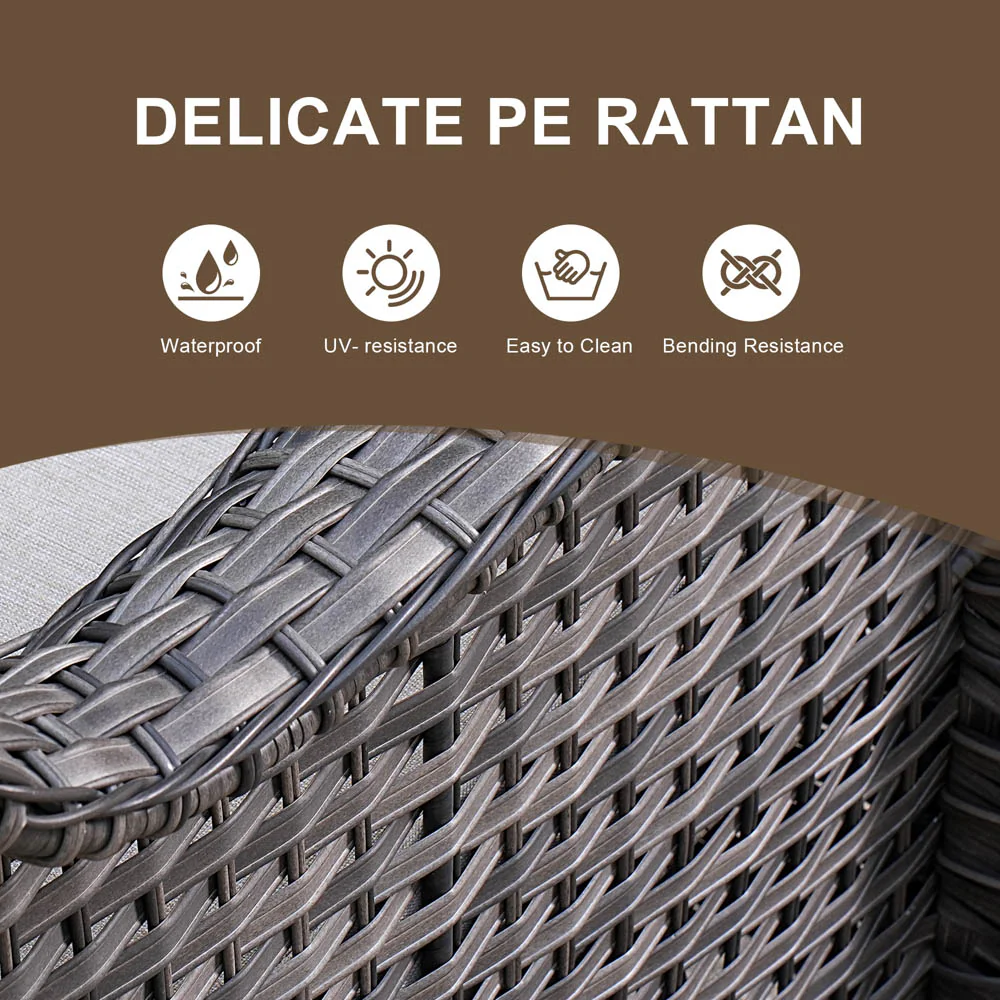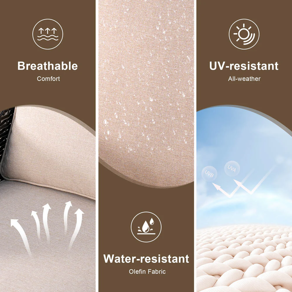 Ovios Outdoor Furniture 4 Piece High Back Brown Wicker with Cushion and Table