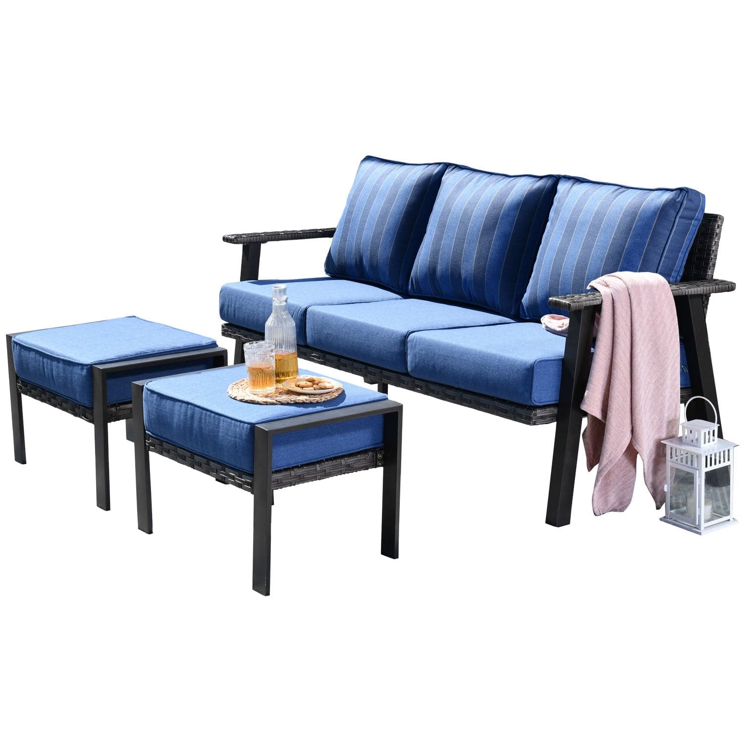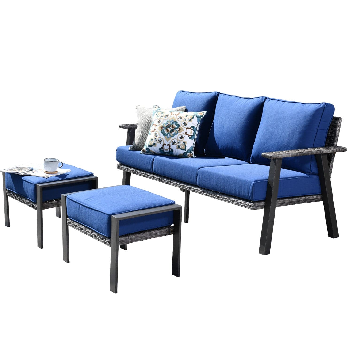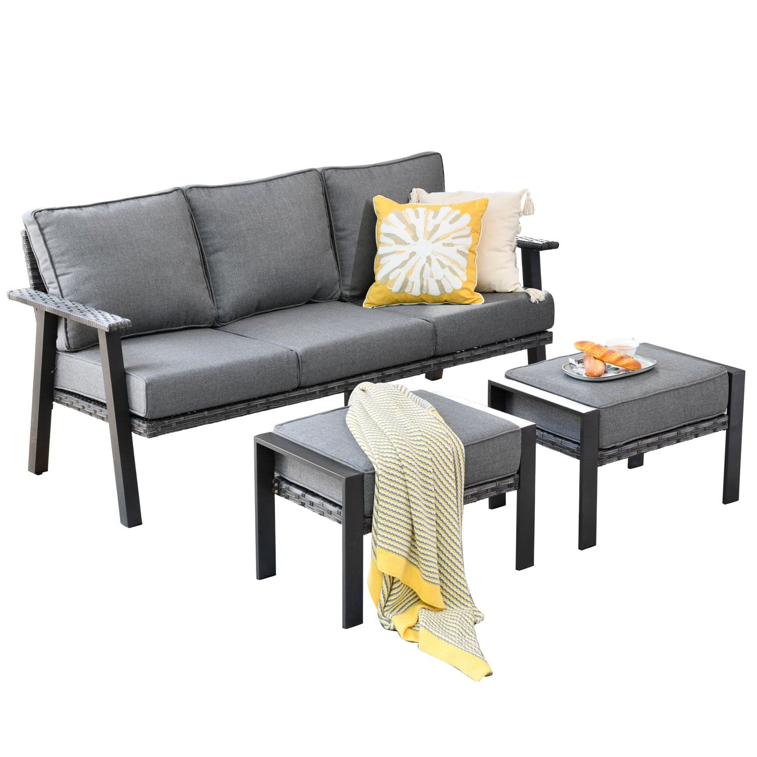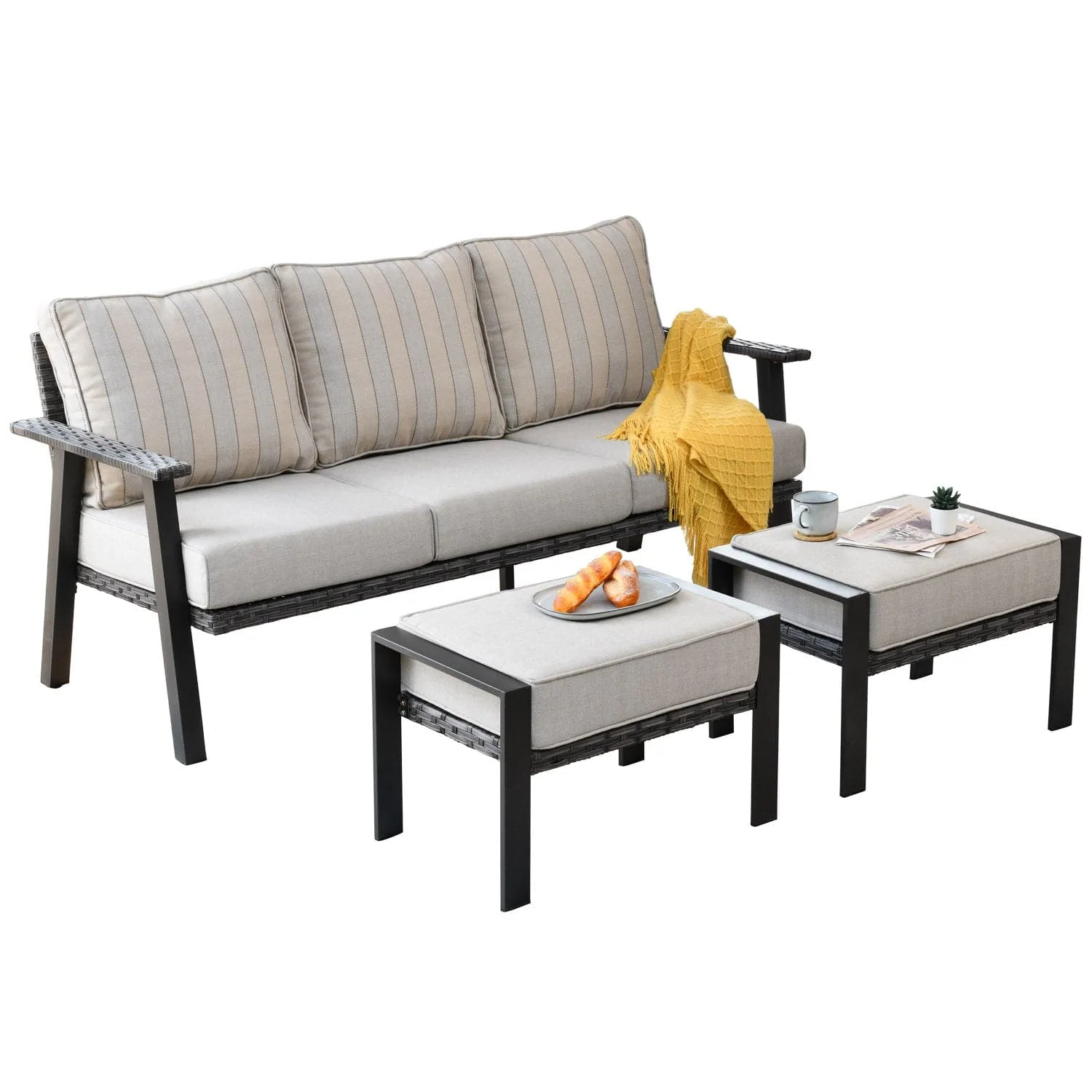 Ovios Outdoor Couch 3-Piece with Ottoman Kenard Curved Handrest