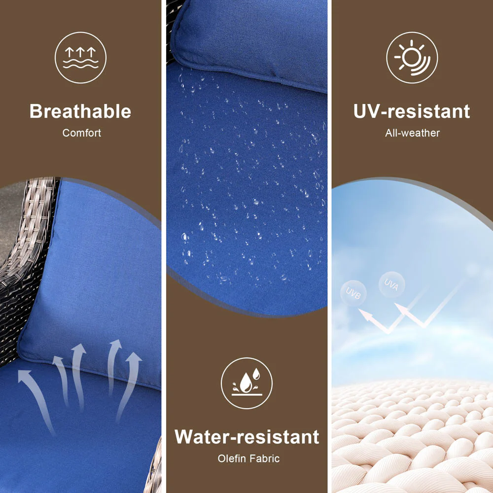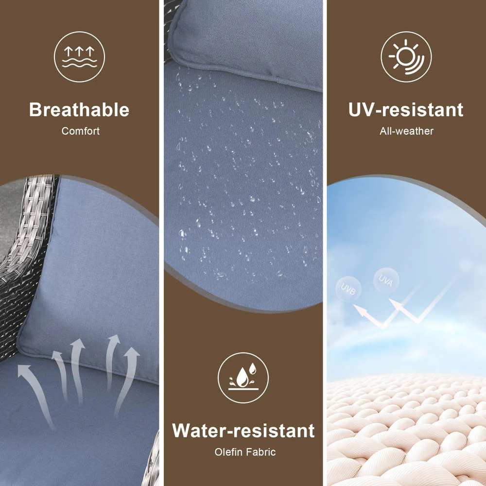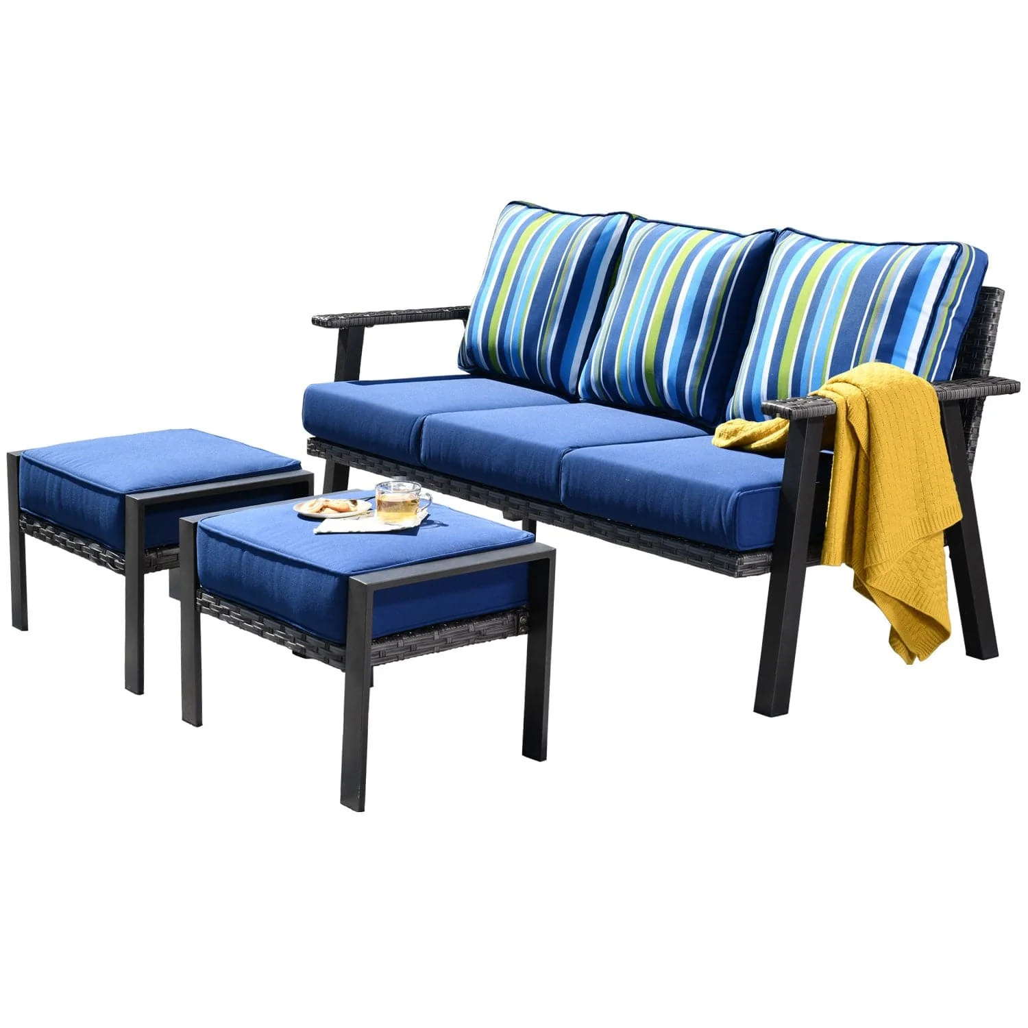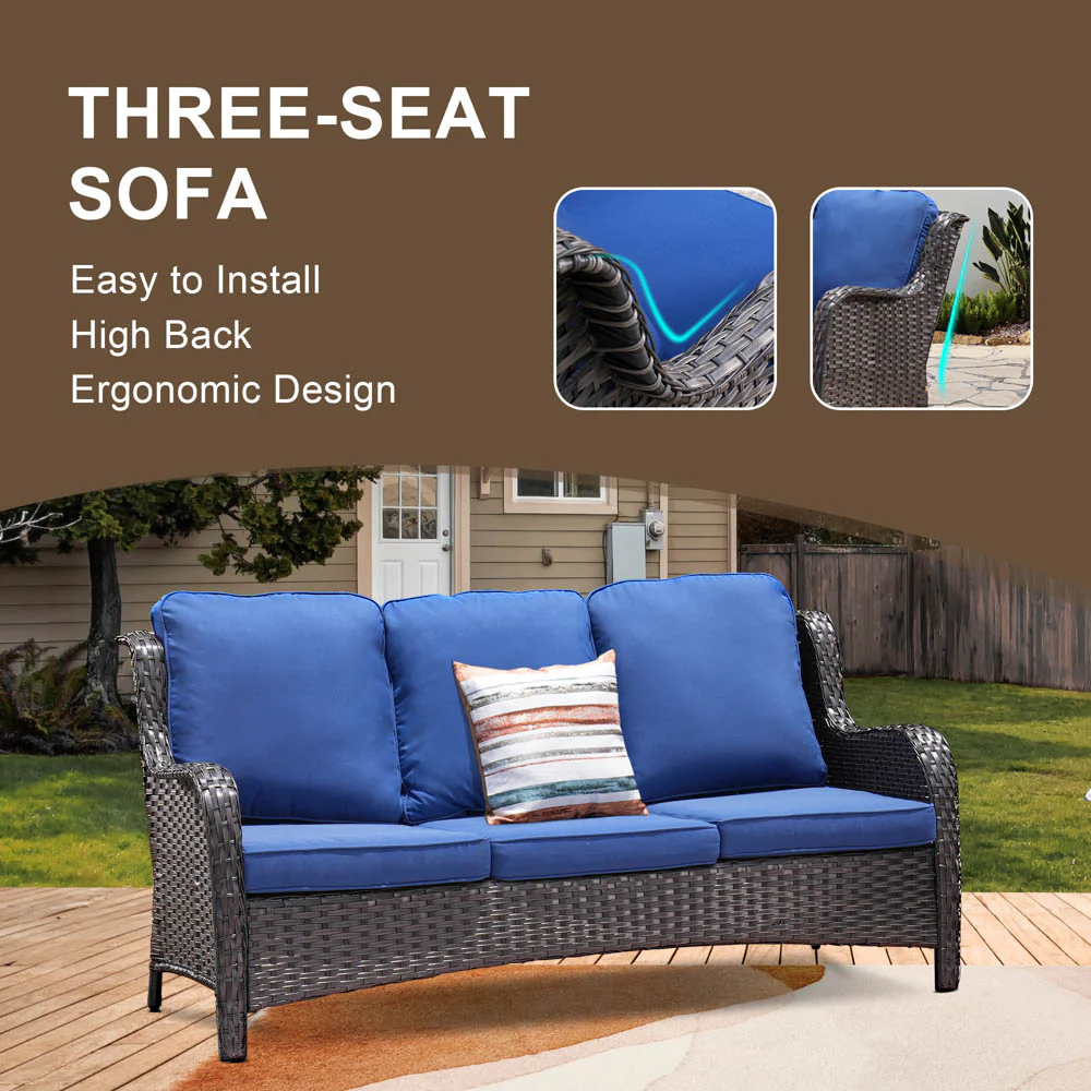 Ovios Outdoor Couch 3-Piece with Ottoman Kenard Curved Handrest