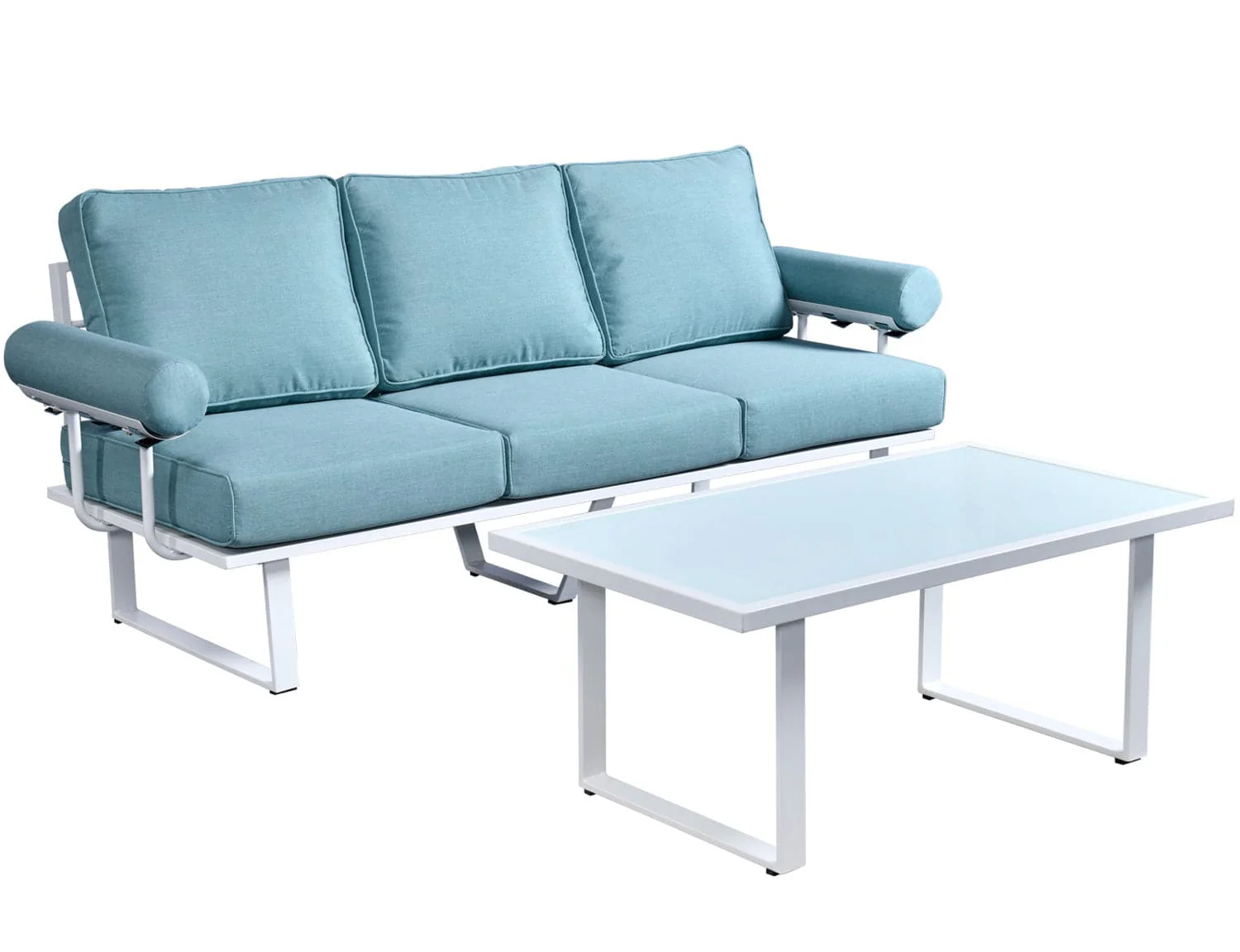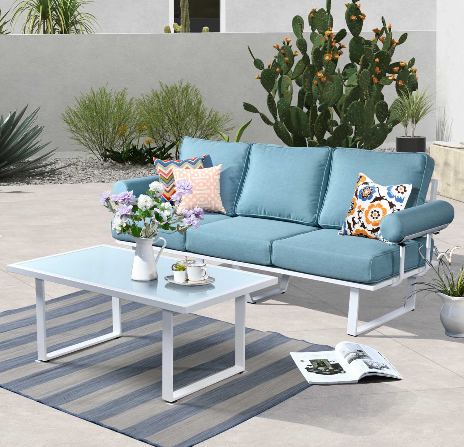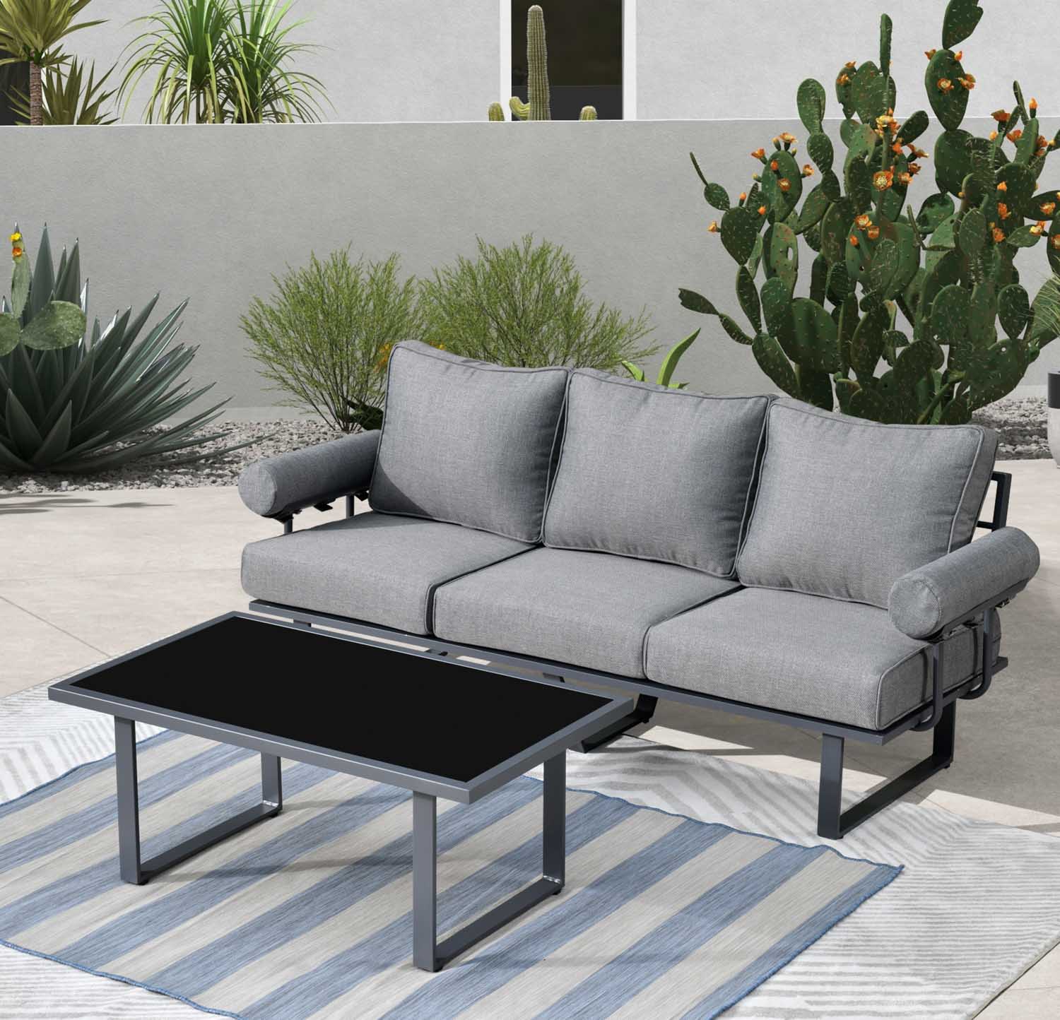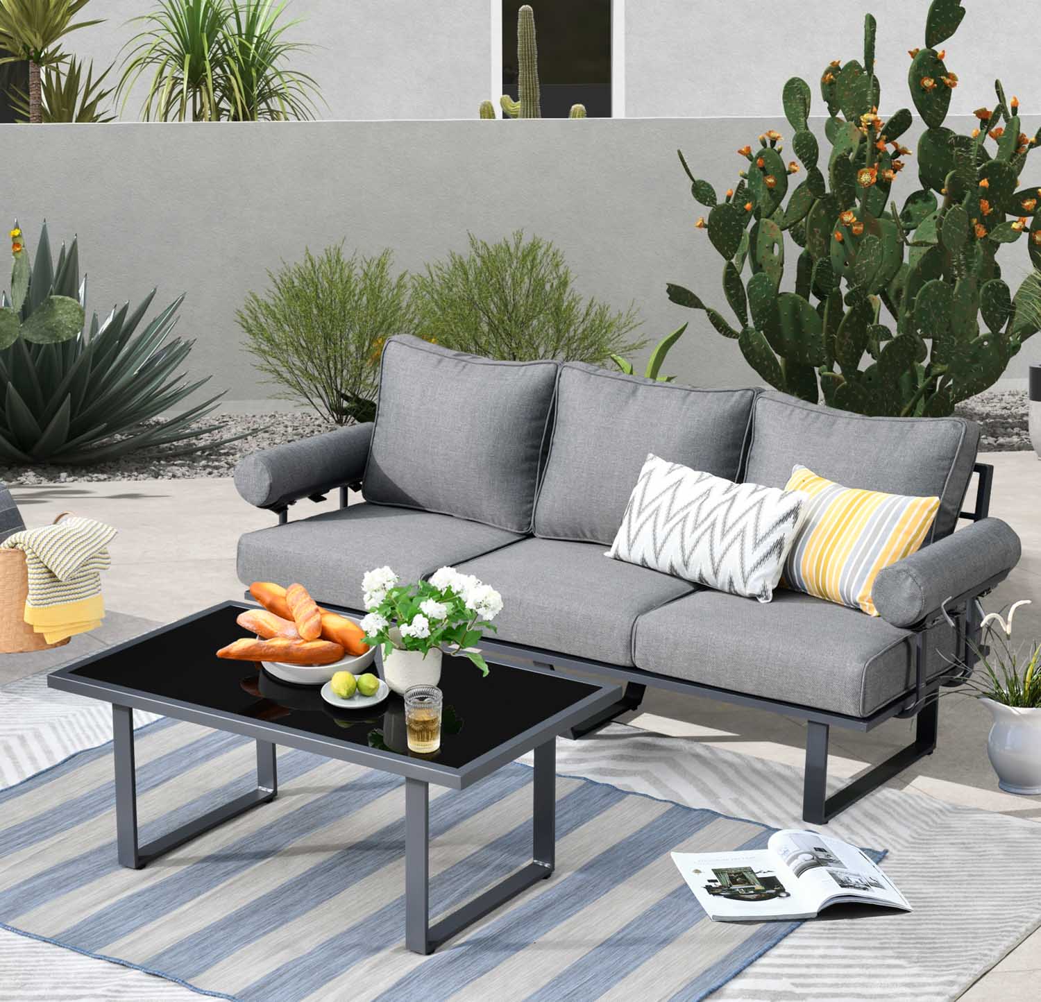 Ovios Patio Bistro Set Couch with Table, Aluminum Frame, 5'' Cushion
