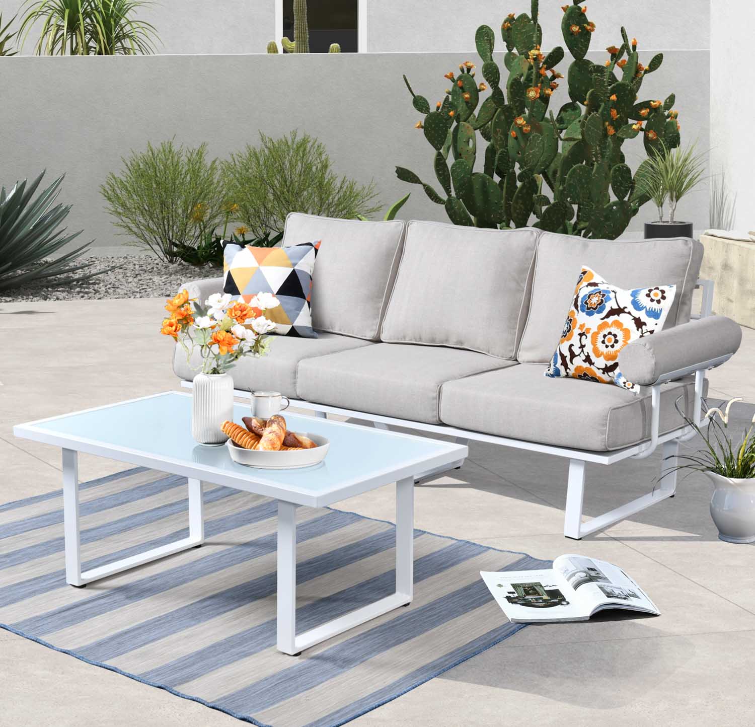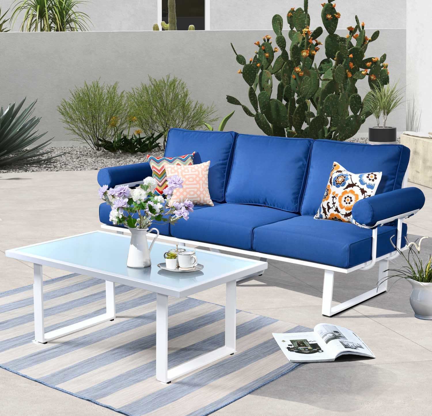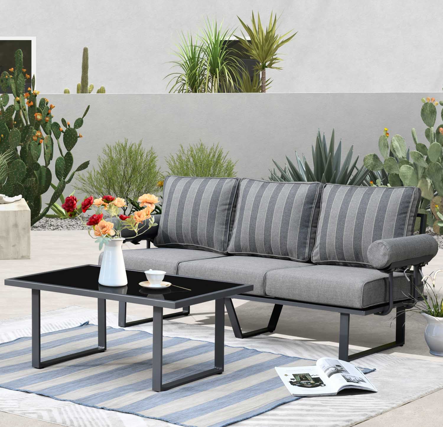 Ovios Patio Bistro Set Couch with Table, Aluminum Frame, 5'' Cushion