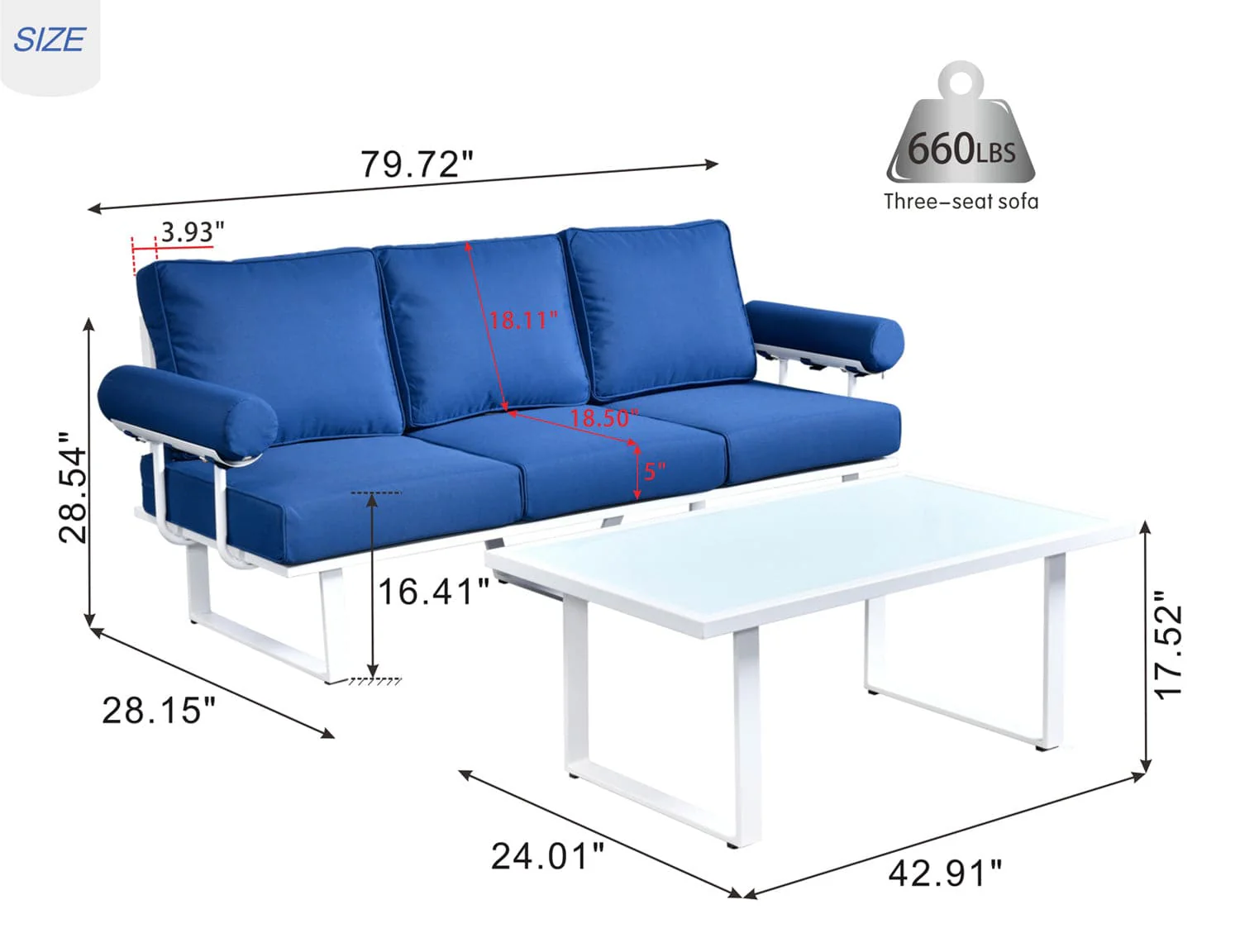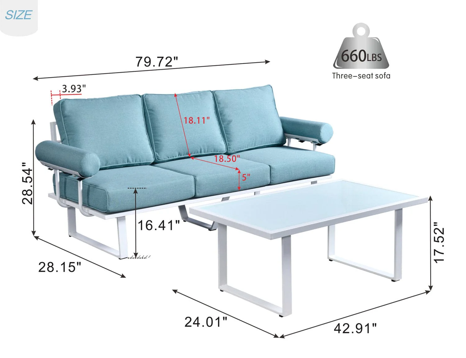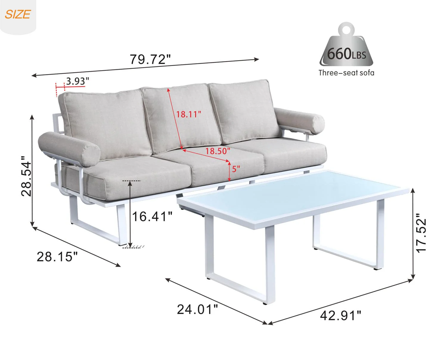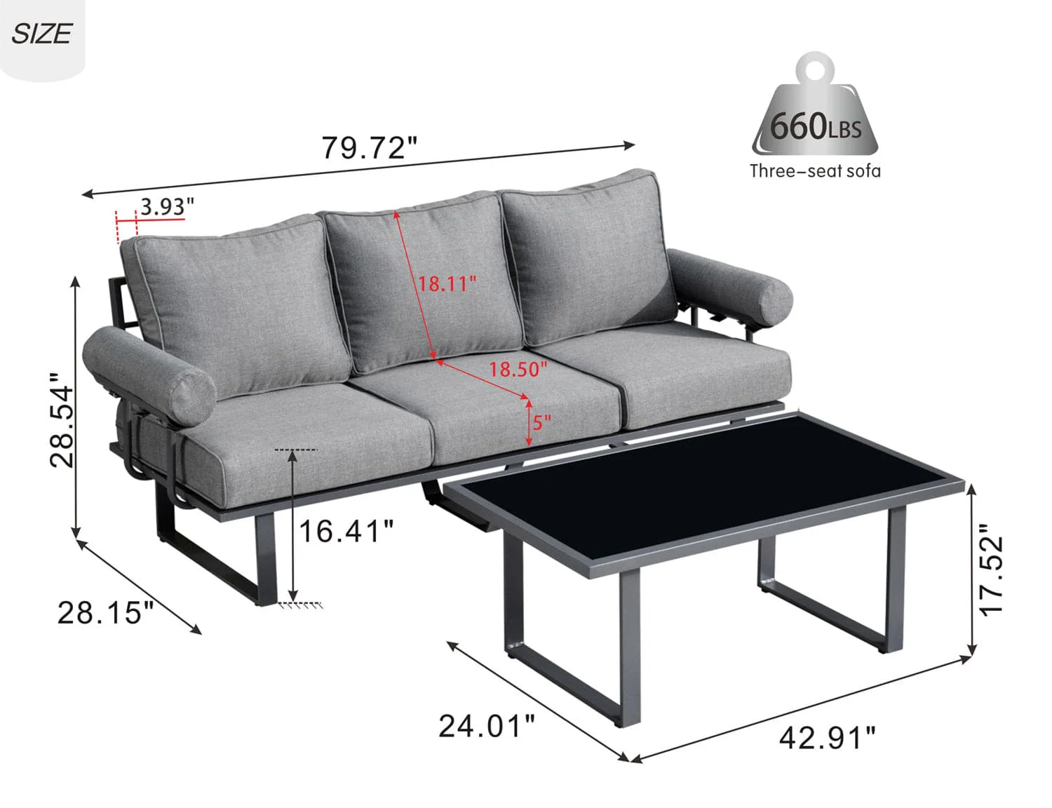 Ovios Patio Bistro Set Couch with Table, Aluminum Frame, 5'' Cushion