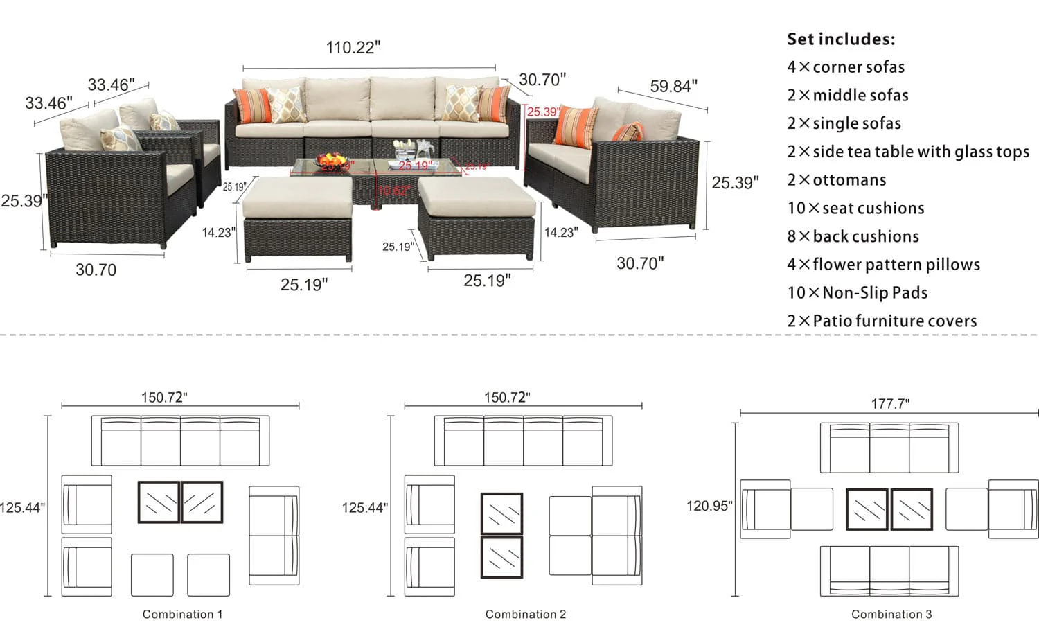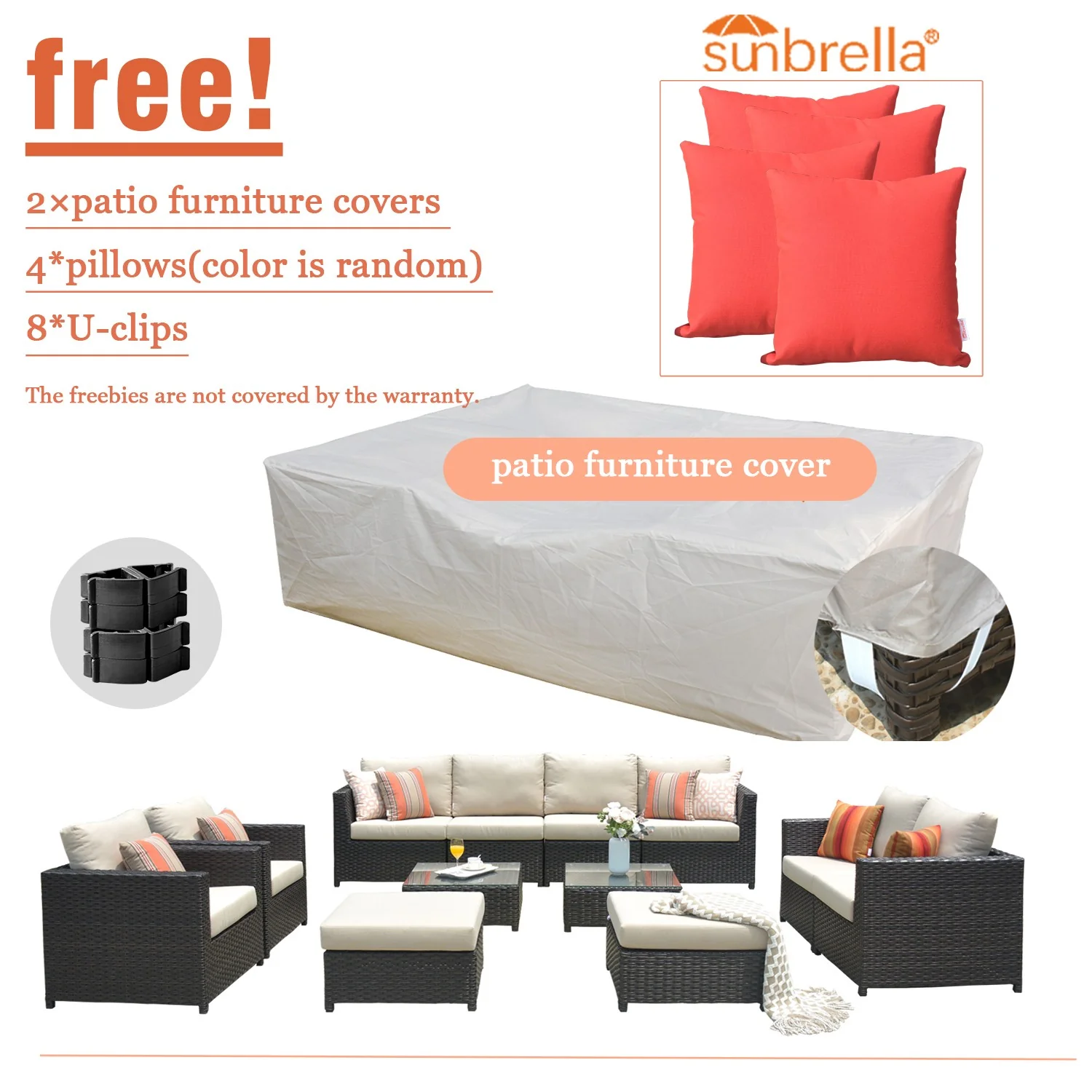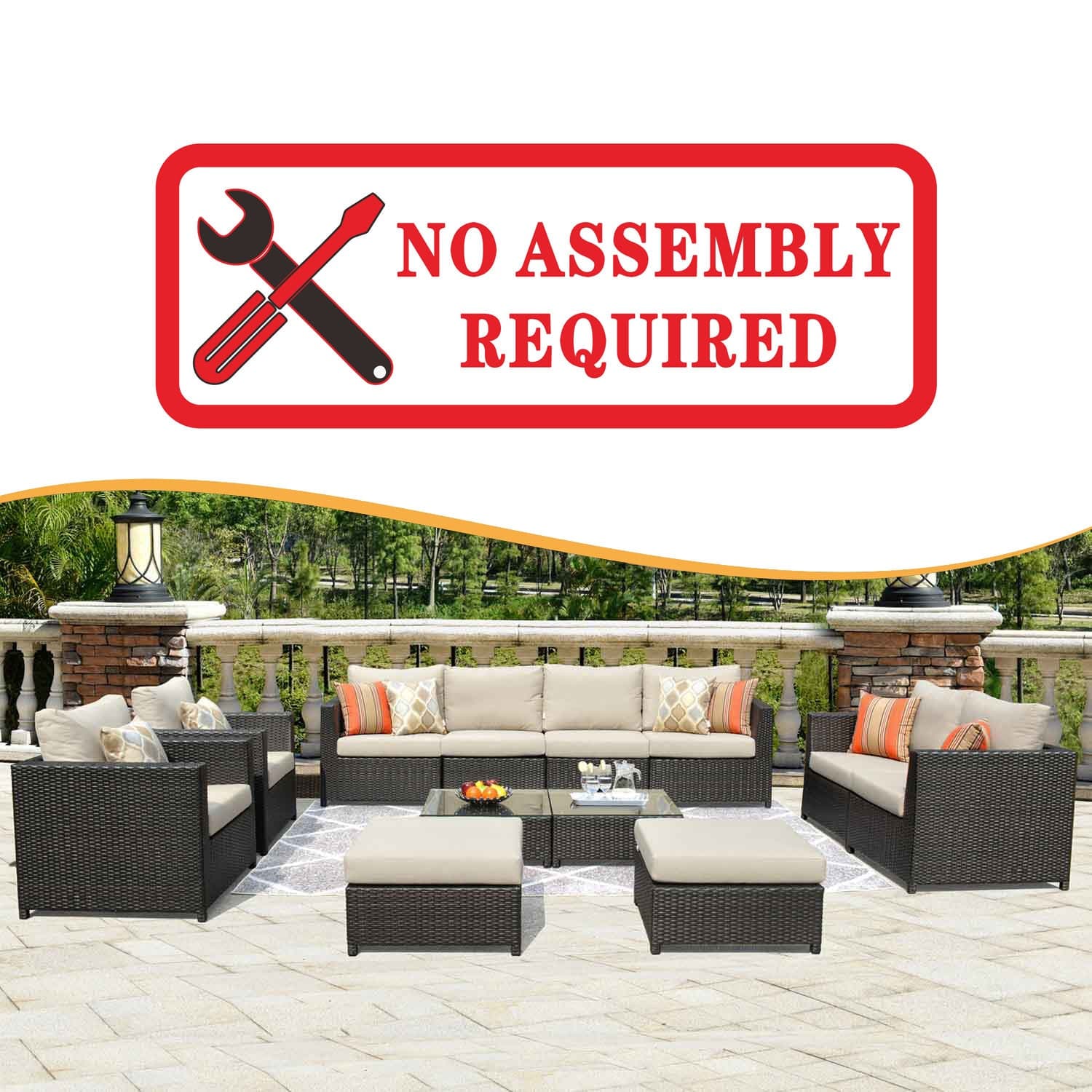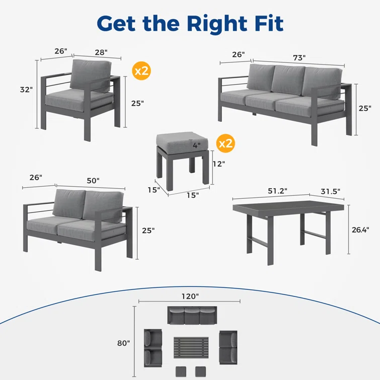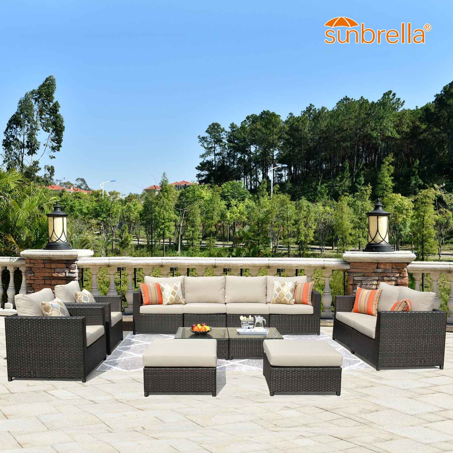 Ovios Patio Furniture Set Bigger Size Sunbrella 12-Piece, King Series, Fully Assembled, Couch is Separate
